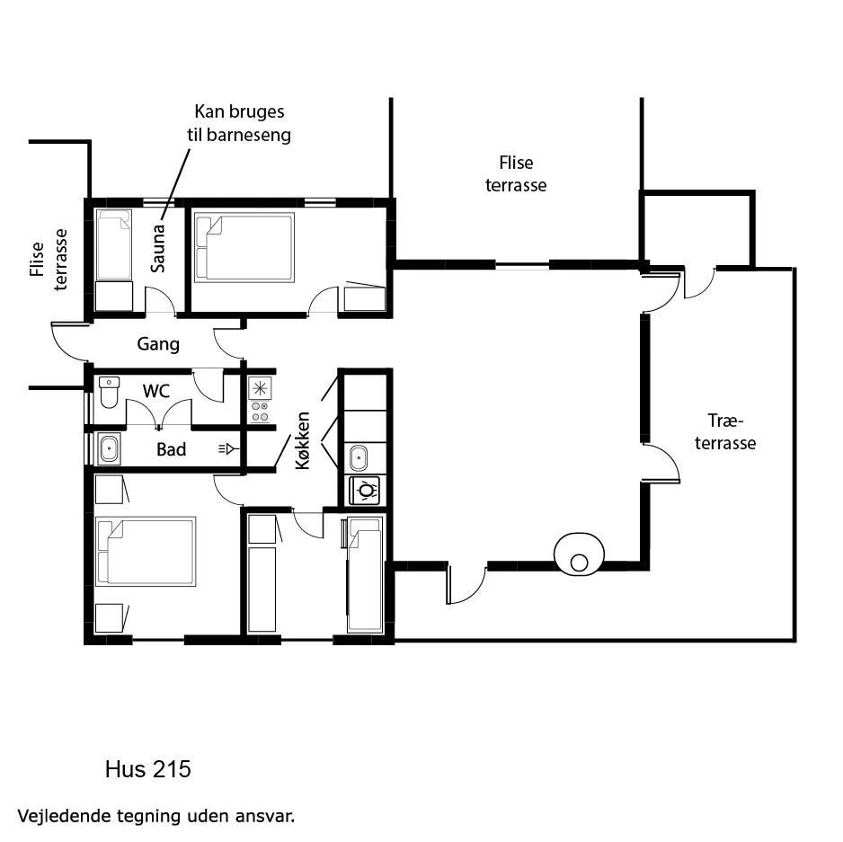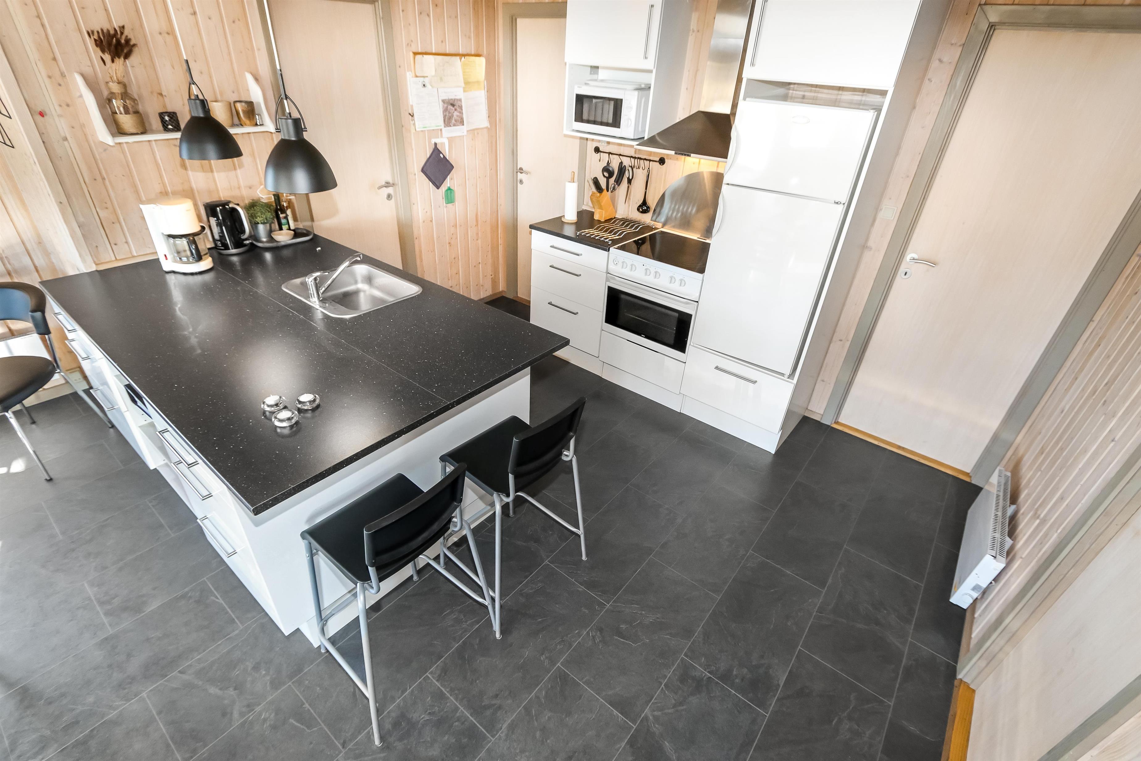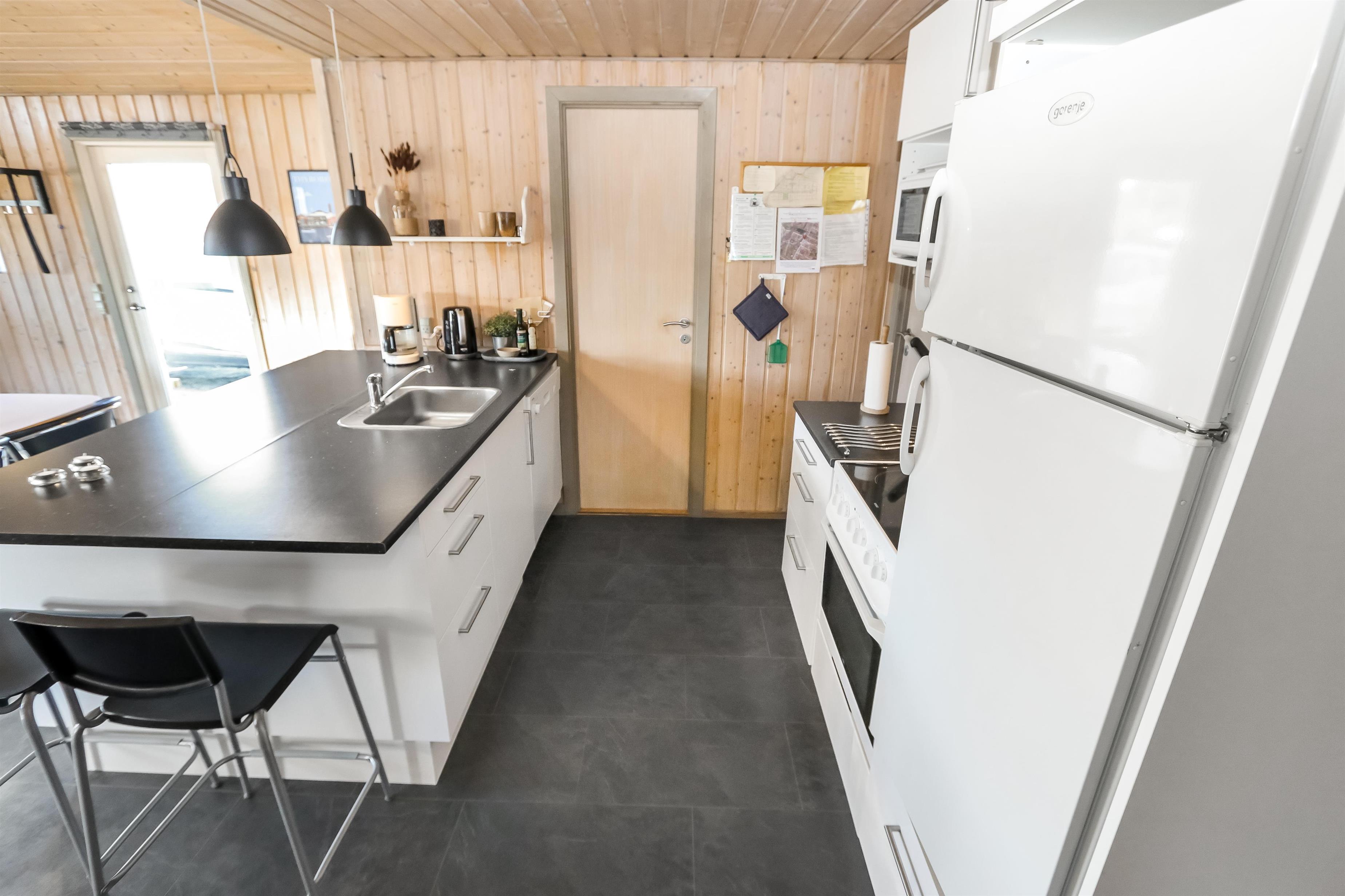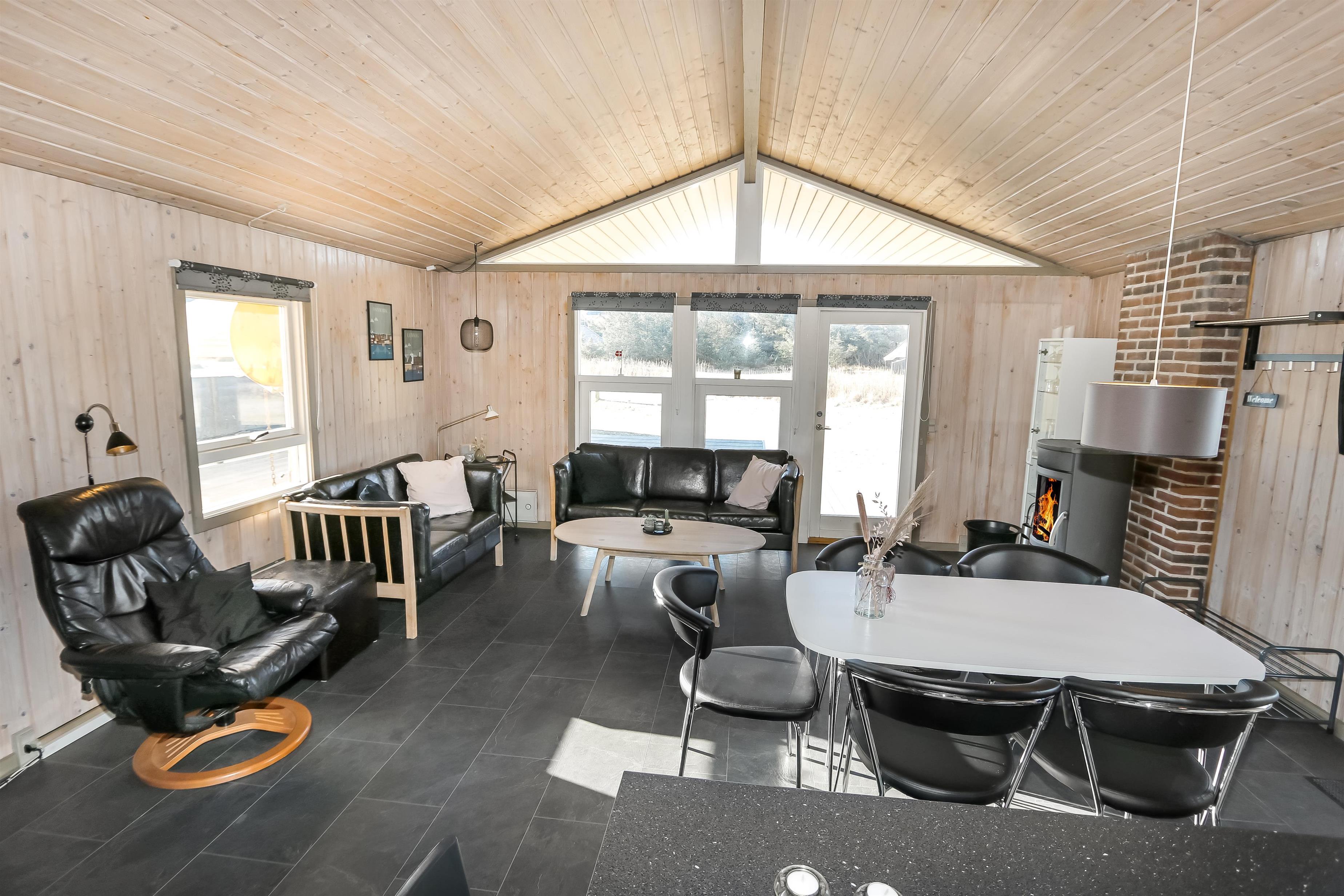 Offene Küche mit Wohn- und Essbereich. Wohnzimmer mit Holzofen, Flachbildschirm-TV mit dänischem (DR1, TV2) und deutschem Programm (Satellitenempfang). Die Küche ist gut ausgestattet mit Geschirrspüler und Mikrowelle. 3 Schlafzimmer mit Doppelbetten (DB) + 1 DB + 2B. Für die kleinsten Gäste gibt es ein Kinderbett und einen Hochstuhl. Das Badezimmer ist mit Waschbecken, Toilette, Dusche und Fußbodenheizung ausgestattet. Eine Waschmaschine ist vorhanden. Sie haben Zugang zur hauseigenen Sauna. 1 Haustier ist erlaubt. Nichtraucherhaus.
