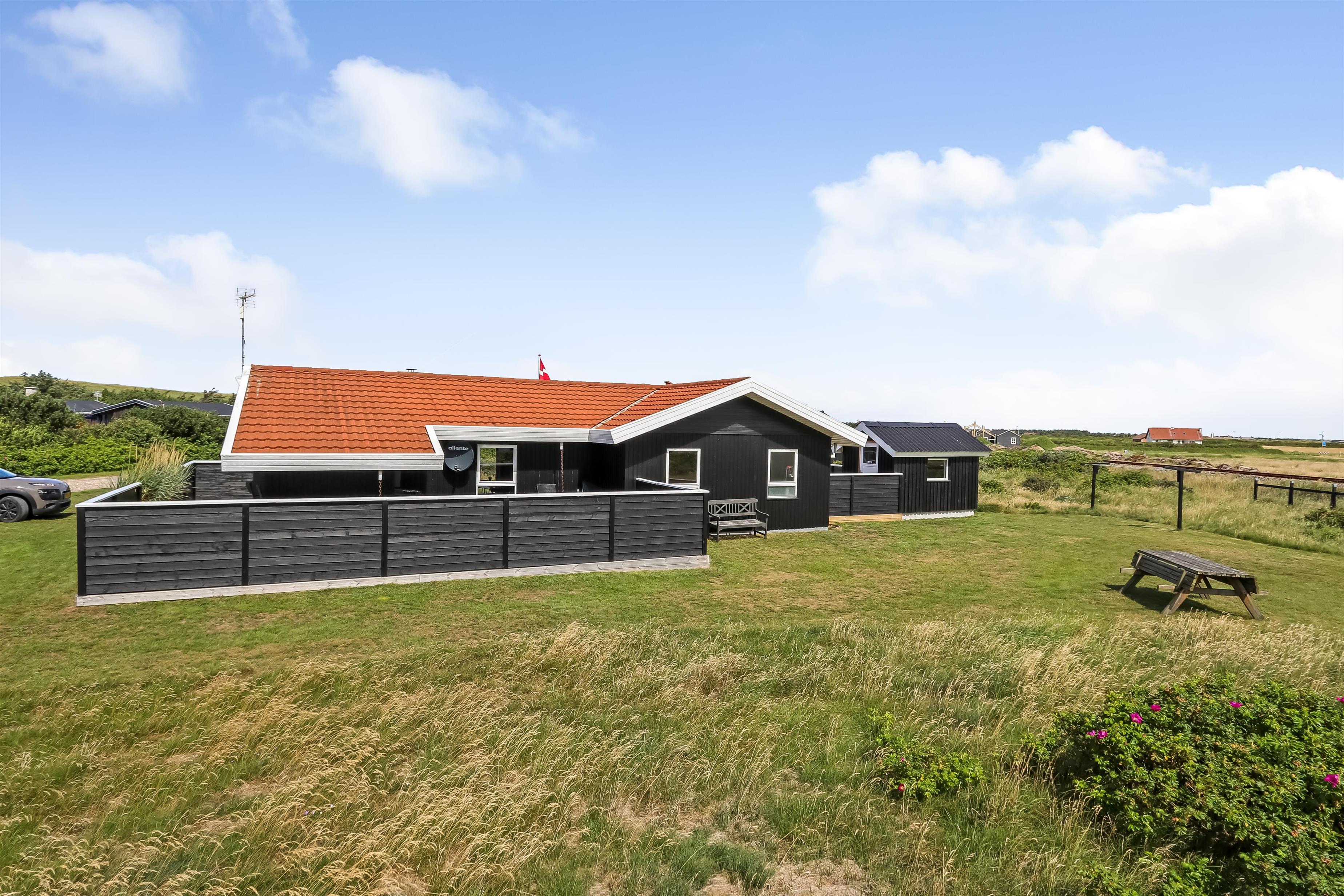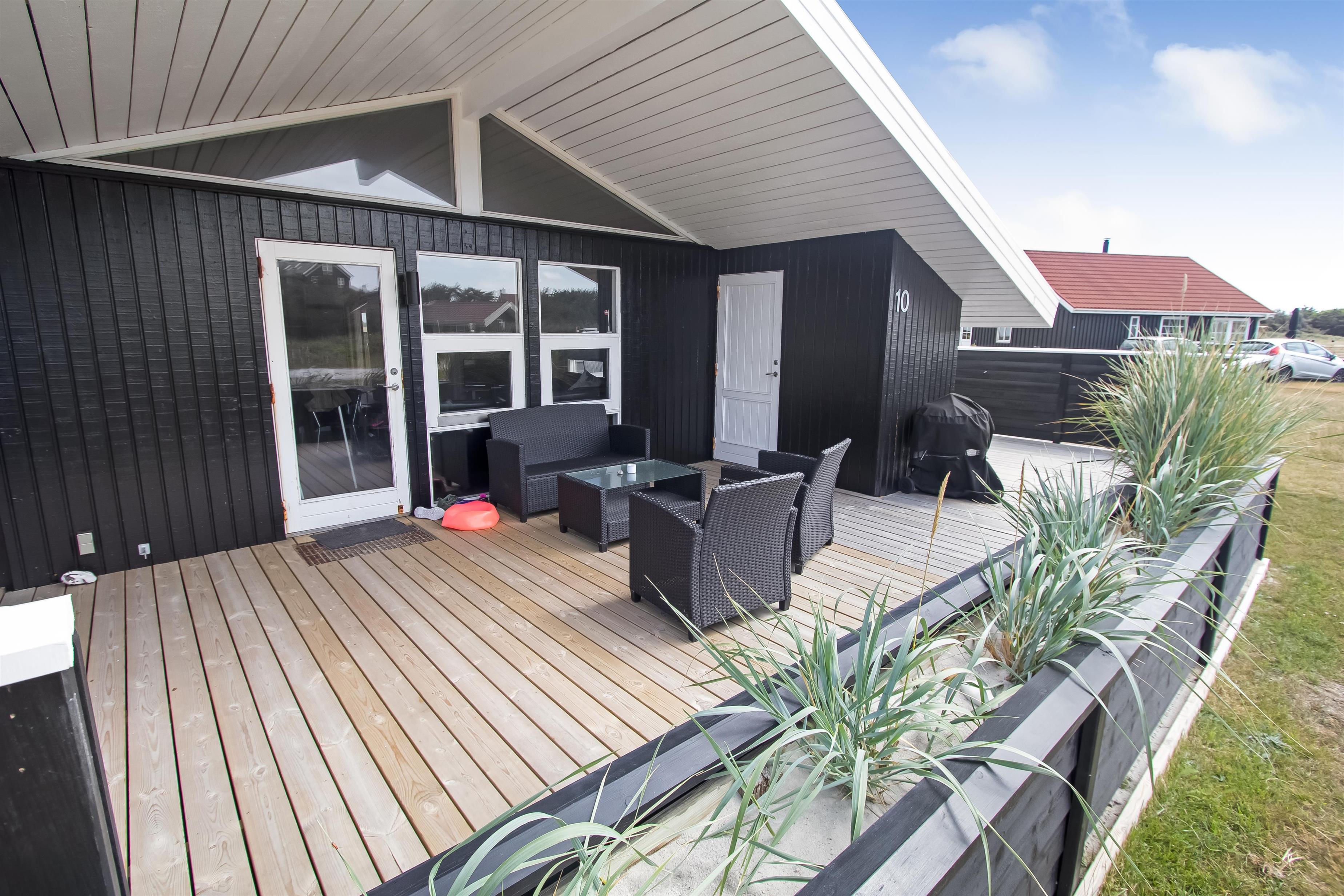 Schönes Naturgrundstück nur 200 m von der tosenden Nordsee entfernt. Vom Haus gibt es Zugang zu den Terrassen, von denen eine teilweise überdacht ist. Sie sind mit Gartenmöbeln, Sonnenschirm und Grill ausgestattet. Hier finden Sie immer ein windgeschütztes Plätzchen. Für die Kinder gibt es einen Sandkasten. Ein schönes Haus für die ganze Familie.