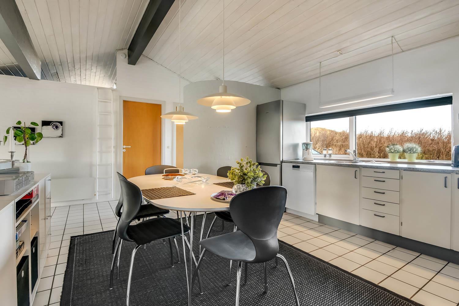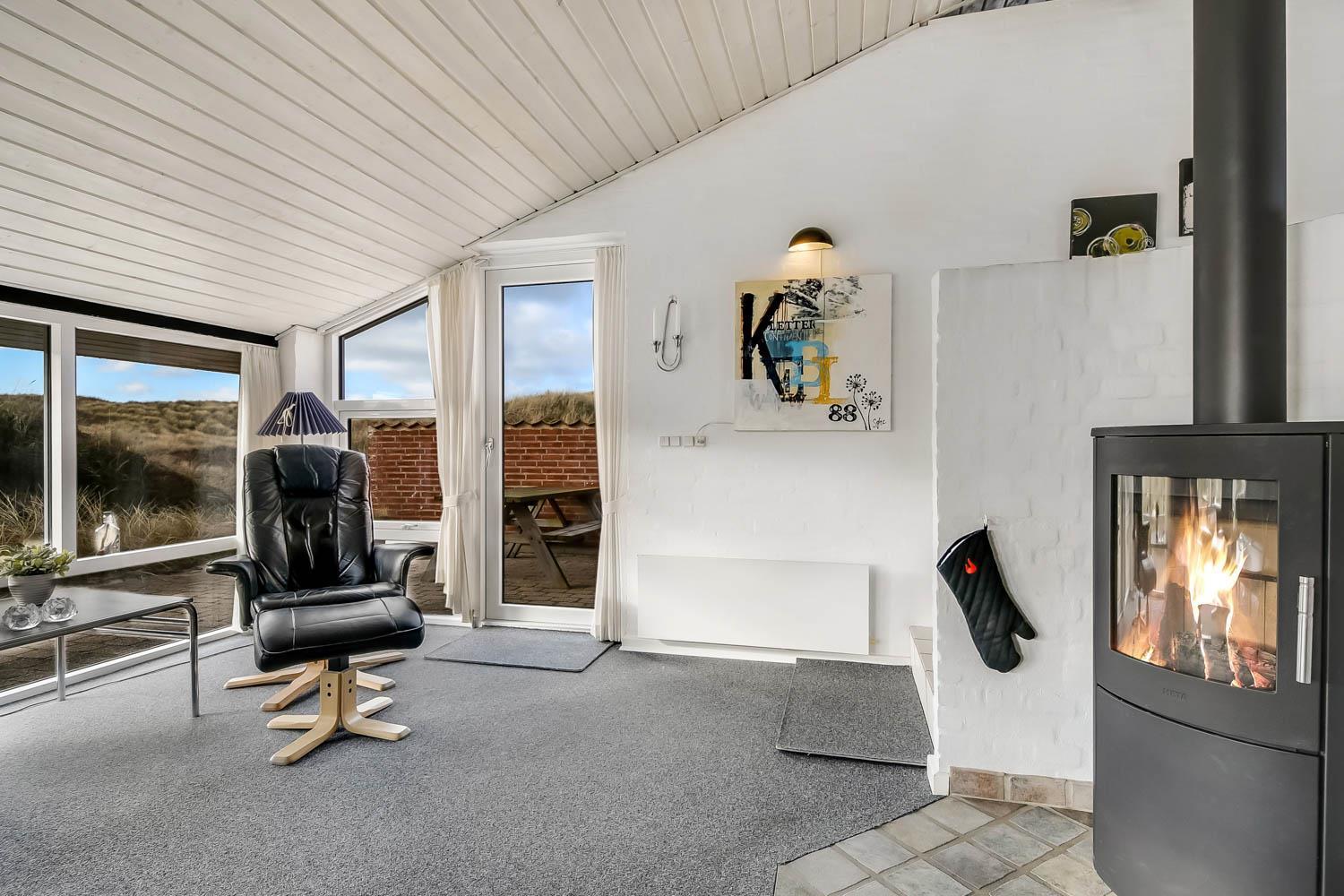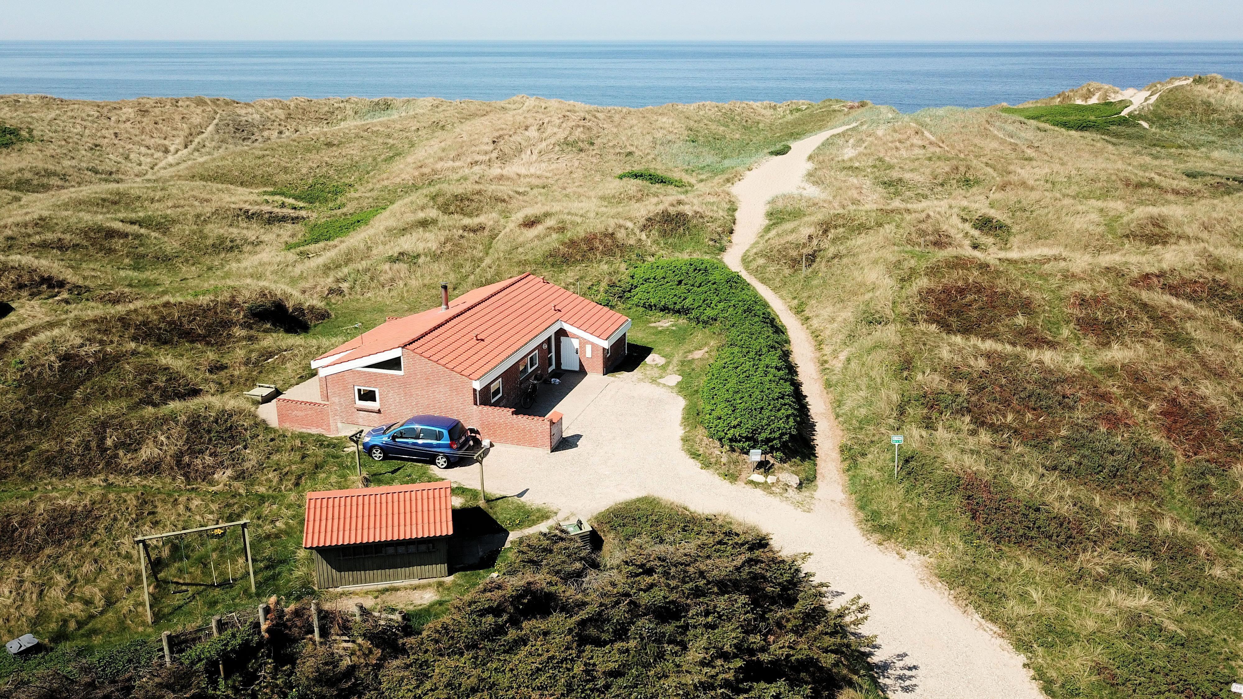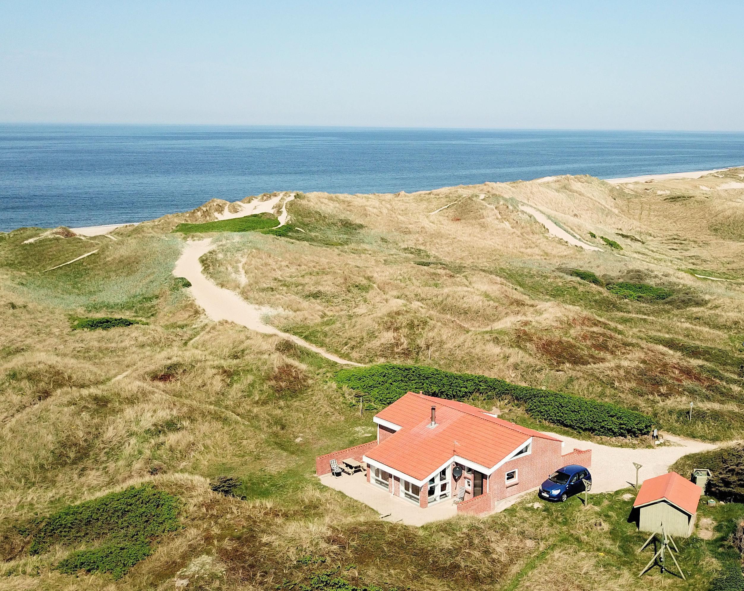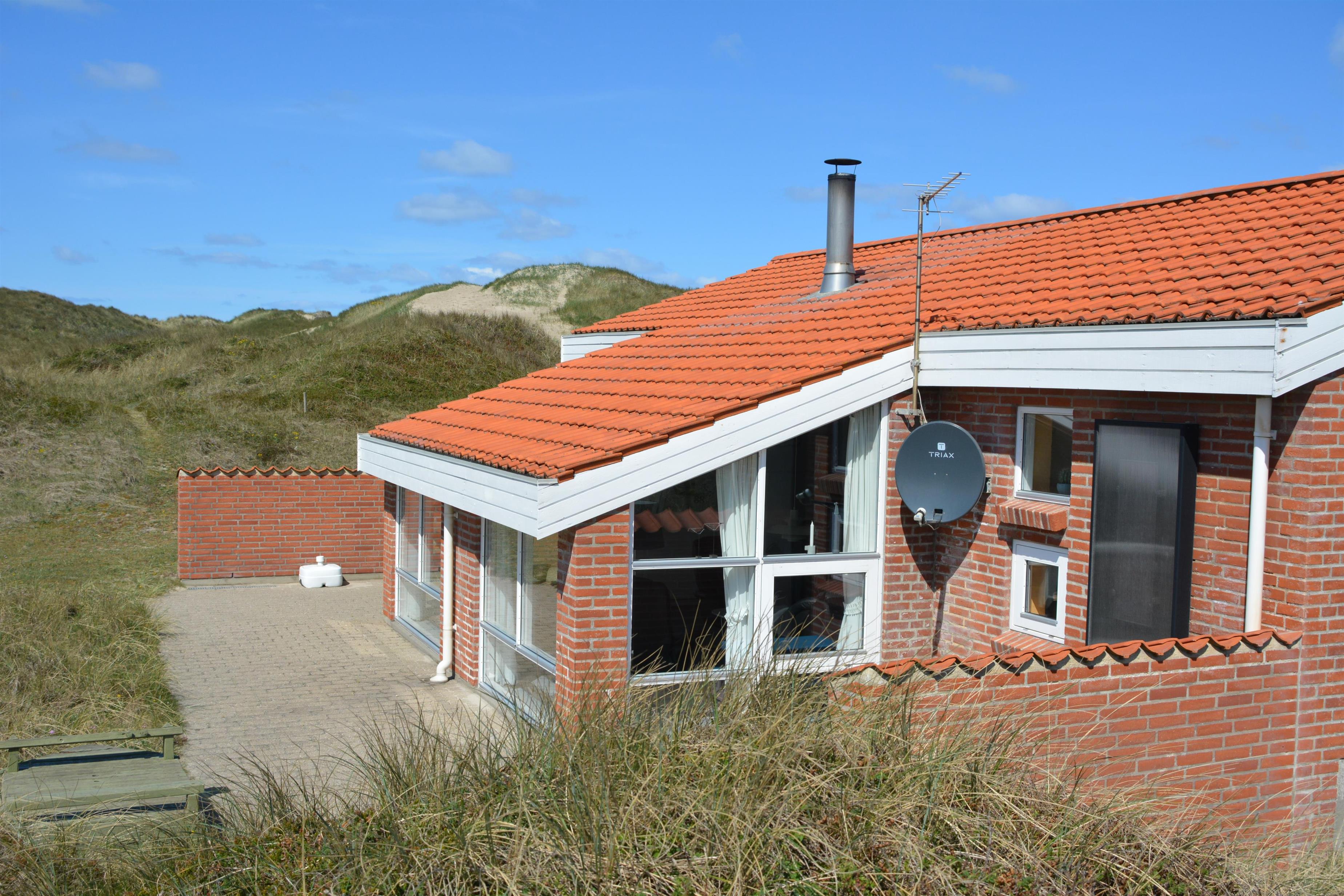 Der letzte Teil auf Ihrer Fahrt zum Haus geht durch die schöne Dünenlandschaft. Parken Sie das Auto auf dem schönen Parkplatz direkt vor dem Haus. Im Haus werden Sie eingeladen durch den ganz speziellen Flur, der die gut ausgerüstete Küchenecke abschirmt. In der Küche finden Sie alles, was Sie brauchen , z.B. Geschirrspüler, Ceranfeld, Abzugshaube, Mikrowelle, Kühlschrank mit Gefrierfach und einen schönen Essplatz für 6 Personen. Es gibt einen ganz tollen versenkten Wohnraum mit modernen Ledermöbeln, Fernseher mit dänischen und deutschen Programmen, DVD, CD. Geniessen Sie den einmaligen und schönen Blick auf die unberührte Dünenlandschaft und die hohen Dünen, oder öffnen Sie eins von den Fenstern oder die Terrassentür und hören das Meeresrauschen. Das Haus hat 3 schöne Schlafräume 1DB + 1DB + 2B. Das Badezimmer ist mit Dusche, Toilette, Waschbecken, Fliesenboden mit Fussbodenheizung und vielen schönen Mauerwerkdetails ausgestattet. Das Haus ist mit offener Decke gebaut und wurde laufend renoviert . Die vielen Fenster und die offene Decke geben einen sehr schönen Lichteinfall ins Haus. Kinderbett , Kinderstuhl und Kinderbadewanne stehen für die Kleinen bereit. Nichtraucherhaus. Haustiere nicht erlaubt.