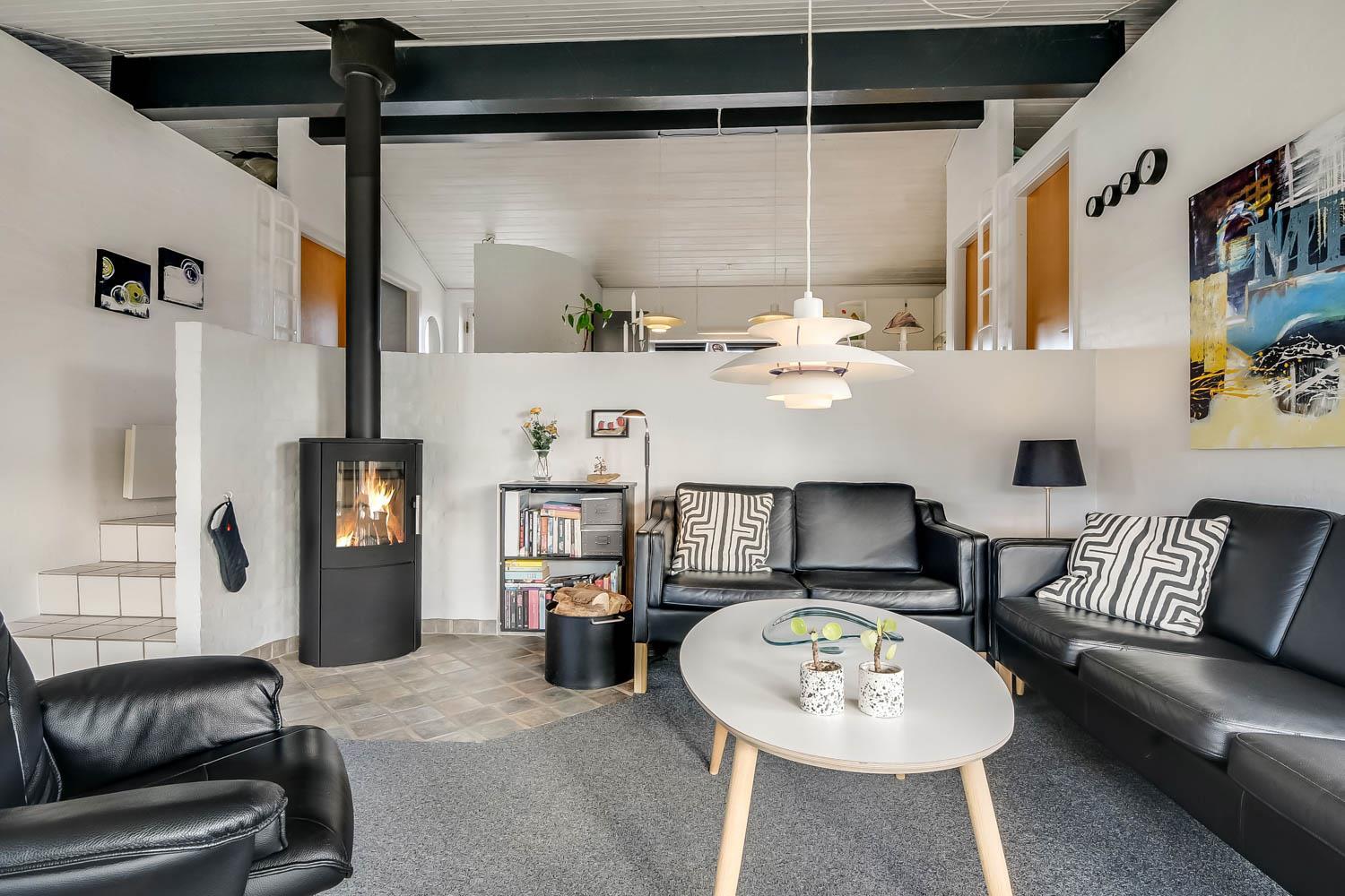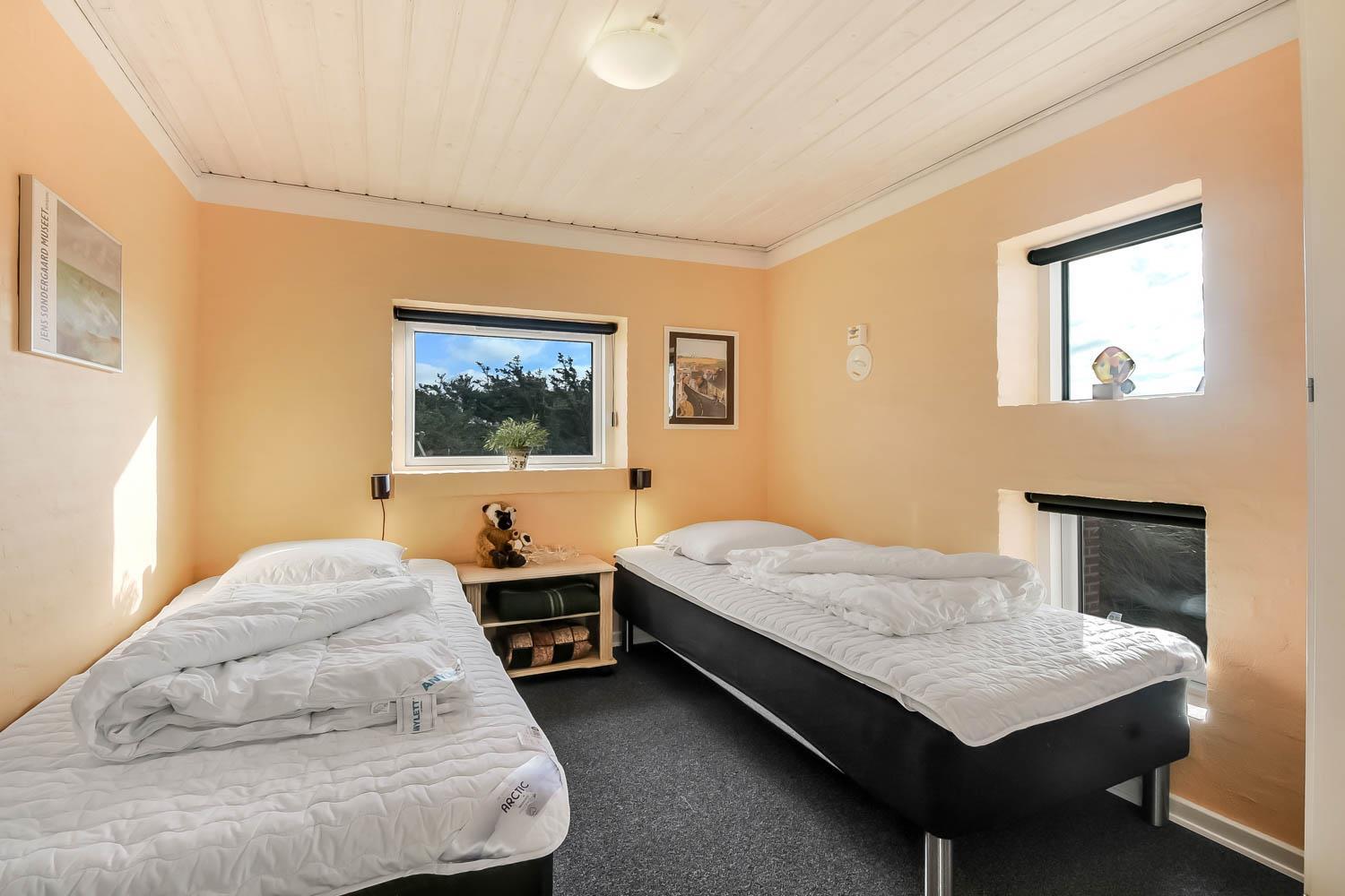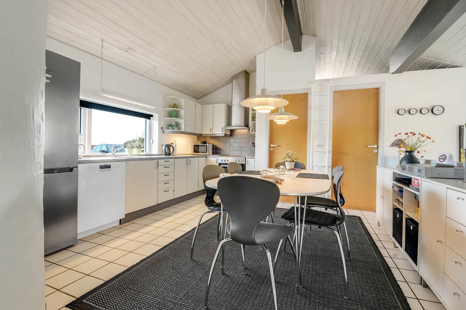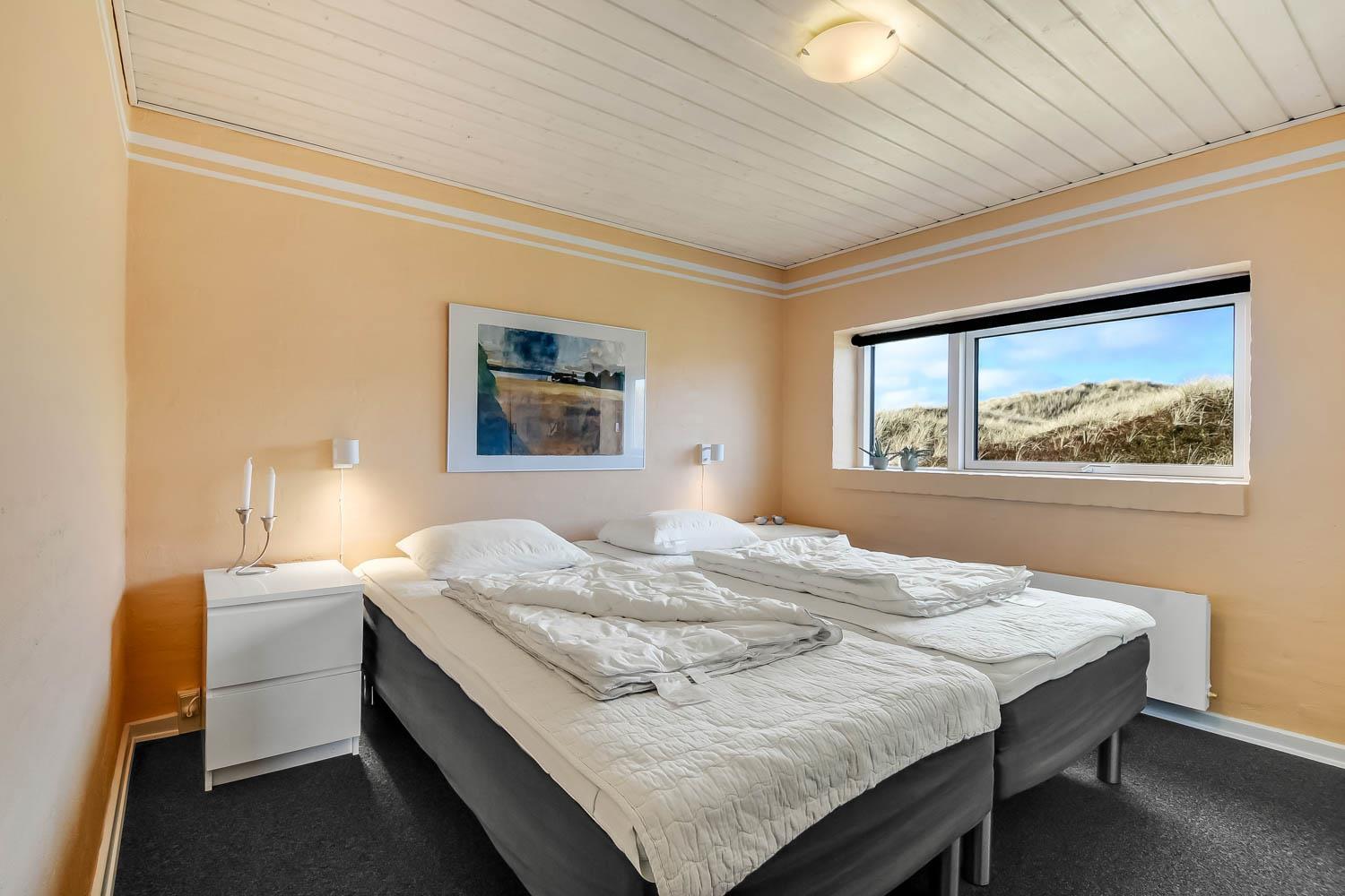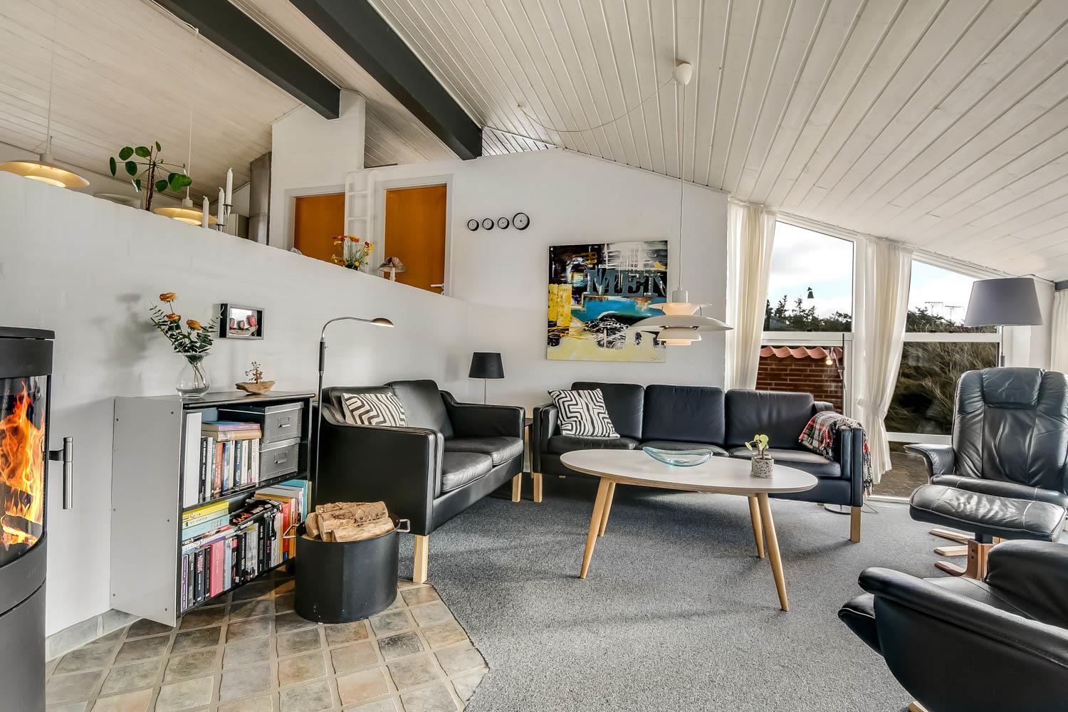 Der letzte Teil auf Ihrer Fahrt zum Haus geht durch die schöne Dünenlandschaft. Parken Sie das Auto auf dem schönen Parkplatz direkt vor dem Haus. Im Haus werden Sie eingeladen durch den ganz speziellen Flur, der die gut ausgerüstete Küchenecke abschirmt. In der Küche finden Sie alles, was Sie brauchen , z.B. Geschirrspüler, Ceranfeld, Abzugshaube, Mikrowelle, Kühlschrank mit Gefrierfach und einen schönen Essplatz für 6 Personen. Es gibt einen ganz tollen versenkten Wohnraum mit modernen Ledermöbeln, Fernseher mit dänischen und deutschen Programmen, DVD, CD. Geniessen Sie den einmaligen und schönen Blick auf die unberührte Dünenlandschaft und die hohen Dünen, oder öffnen Sie eins von den Fenstern oder die Terrassentür und hören das Meeresrauschen. Das Haus hat 3 schöne Schlafräume 1DB + 1DB + 2B. Das Badezimmer ist mit Dusche, Toilette, Waschbecken, Fliesenboden mit Fussbodenheizung und vielen schönen Mauerwerkdetails ausgestattet. Das Haus ist mit offener Decke gebaut und wurde laufend renoviert . Die vielen Fenster und die offene Decke geben einen sehr schönen Lichteinfall ins Haus. Kinderbett , Kinderstuhl und Kinderbadewanne stehen für die Kleinen bereit. Nichtraucherhaus. Haustiere nicht erlaubt.