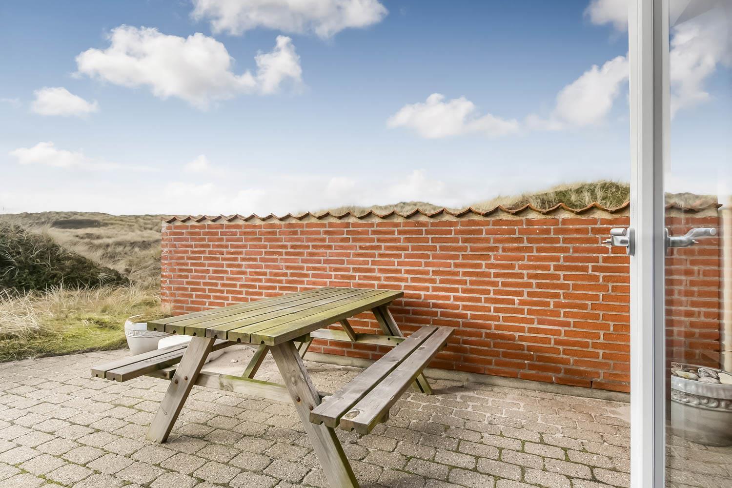 Sie haben vom Haus einen Ausgang zu einer idealen und ungestörten Terrassenanlage direkt mit Sicht auf die Dünen. Die Terrasse ist mit Gartenmöbeln und Sonnenliegen ausgestattet; - oder nutzen Sie die Morgenterrasse auf der anderen Seite vom Haus -. Das Haus liegt auf einem Grundstück direkt an der Nordsee. Eine architektonische Perle in einer einzigartigen Lage und sehr ruhiger Umgebung. Das perfekte Haus entweder für die Familie, oder für ein Paar, egal zu welcher Jahreszeit.