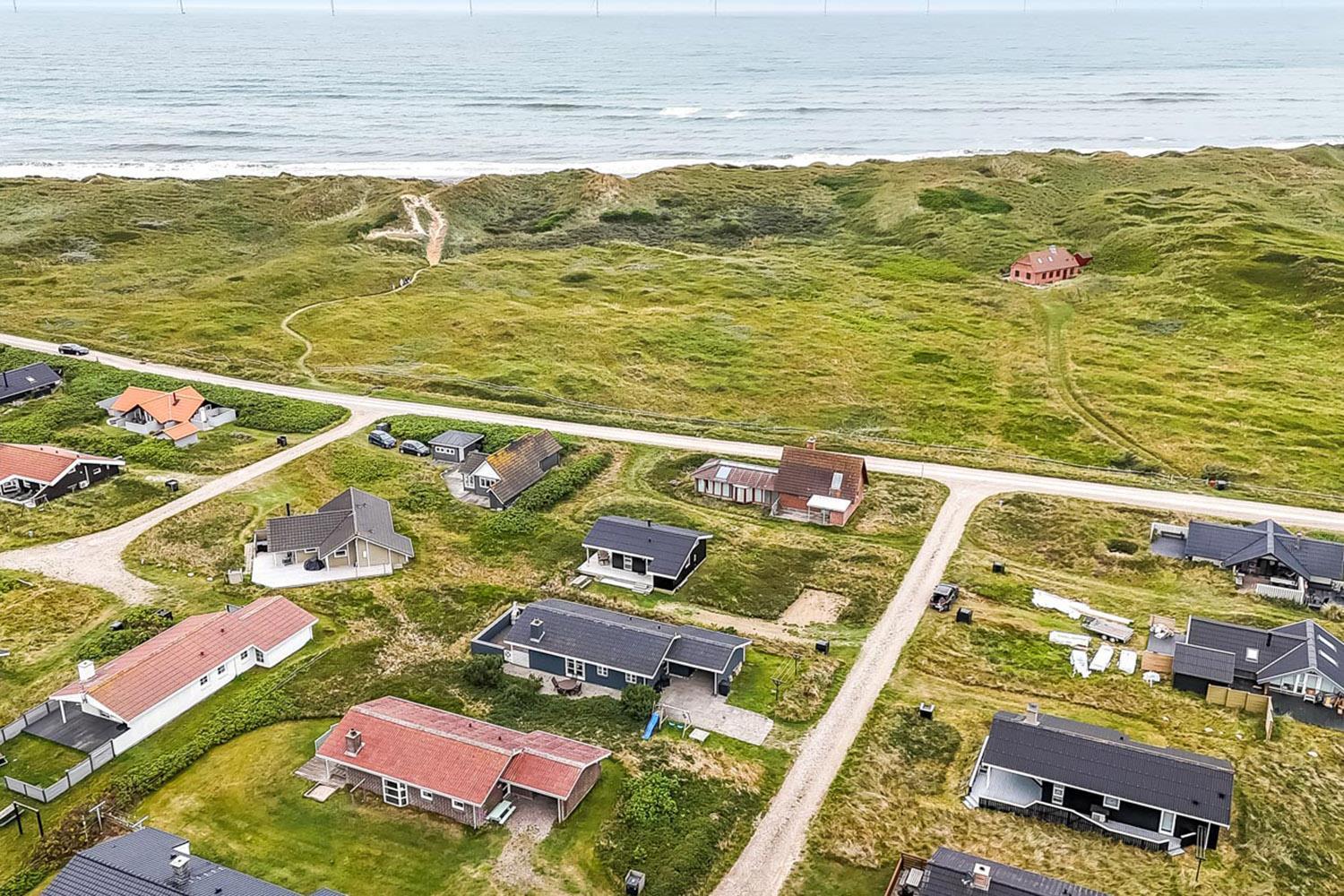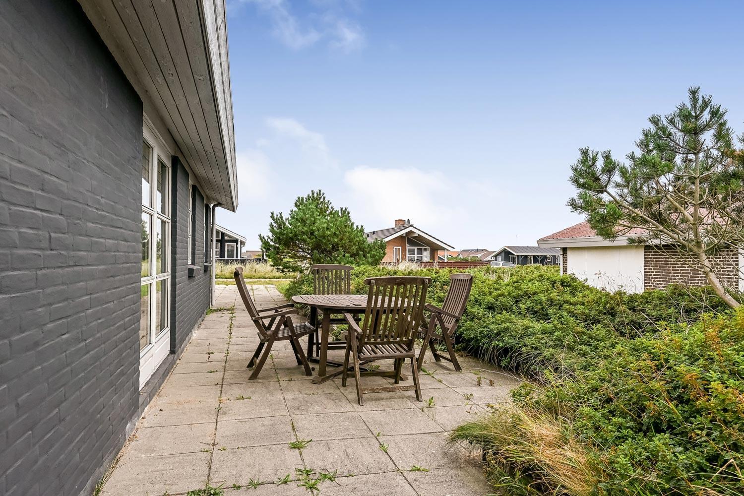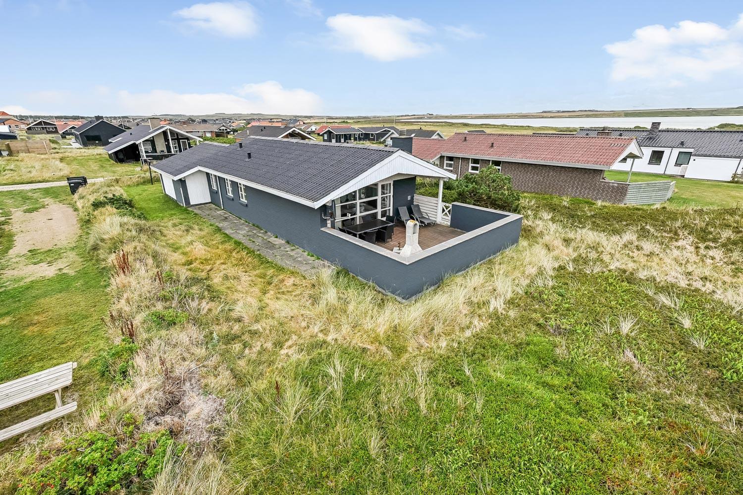 Das Haus liegt auf einem 703 qm großen Naturgrundstück. Vom Wohnraum gibt es einen Ausgang zu einer schönen eingezäunten Terrasse mit Gartenmöbeln, Sonnenliegen und Grill. Von der Terrasse haben Sie Blick zum Ferring See. Das Haus liegt 300 m von der Nordsee und 300 m vom Ferring See entfernt. Die Gegend ist perfekt für Wanderungen, egal ob es stürmisch im Herbst oder ein schöner Sommertag ist. Sie können um den Ferring See auf einer markierten Route, die etwa 10 km lang ist, wandern oder Sie können die Favoritenroute unserer Gäste nehmen - am Strand entlang nach Bovbjerg Fyr und zurück am Ferring See entlang-. Nehmen Sie Ihr Auto und fahren etwa 18 km, dann kommen Sie nach Thyborøn zu einem schönen Hafenort mit vielen Attraktionen, z.B. Akvarium und Seawar-Museum und den dazu gehörenden Erinnerungspark, oder genießen Sie nur die Hafenstimmung. 13 km vom Haus entfernt liegt der Ort Lemvig mit vielen guten Geschäften und einer schönen Hafenatmosphäre.
