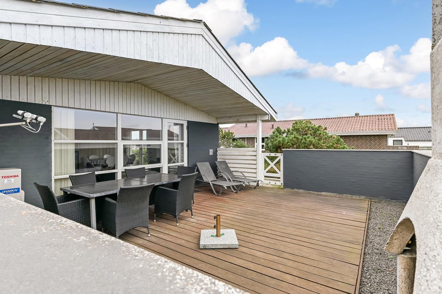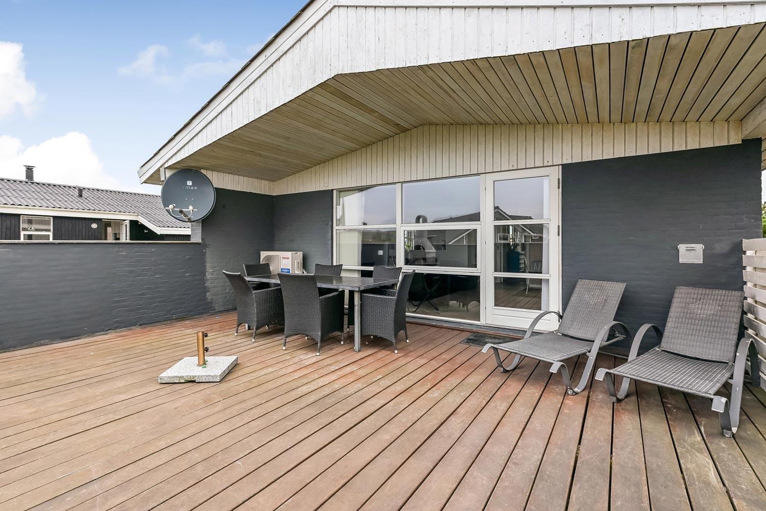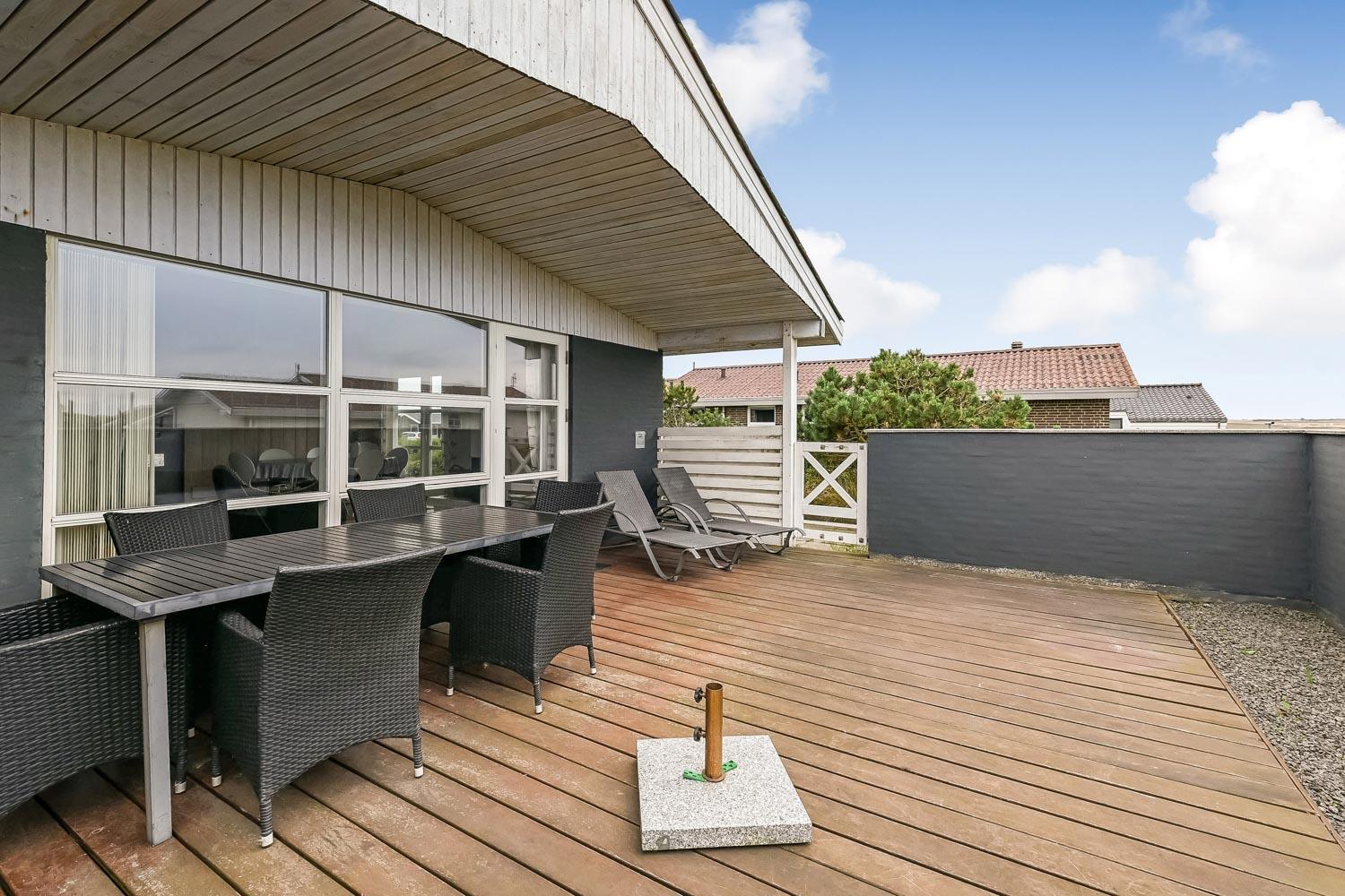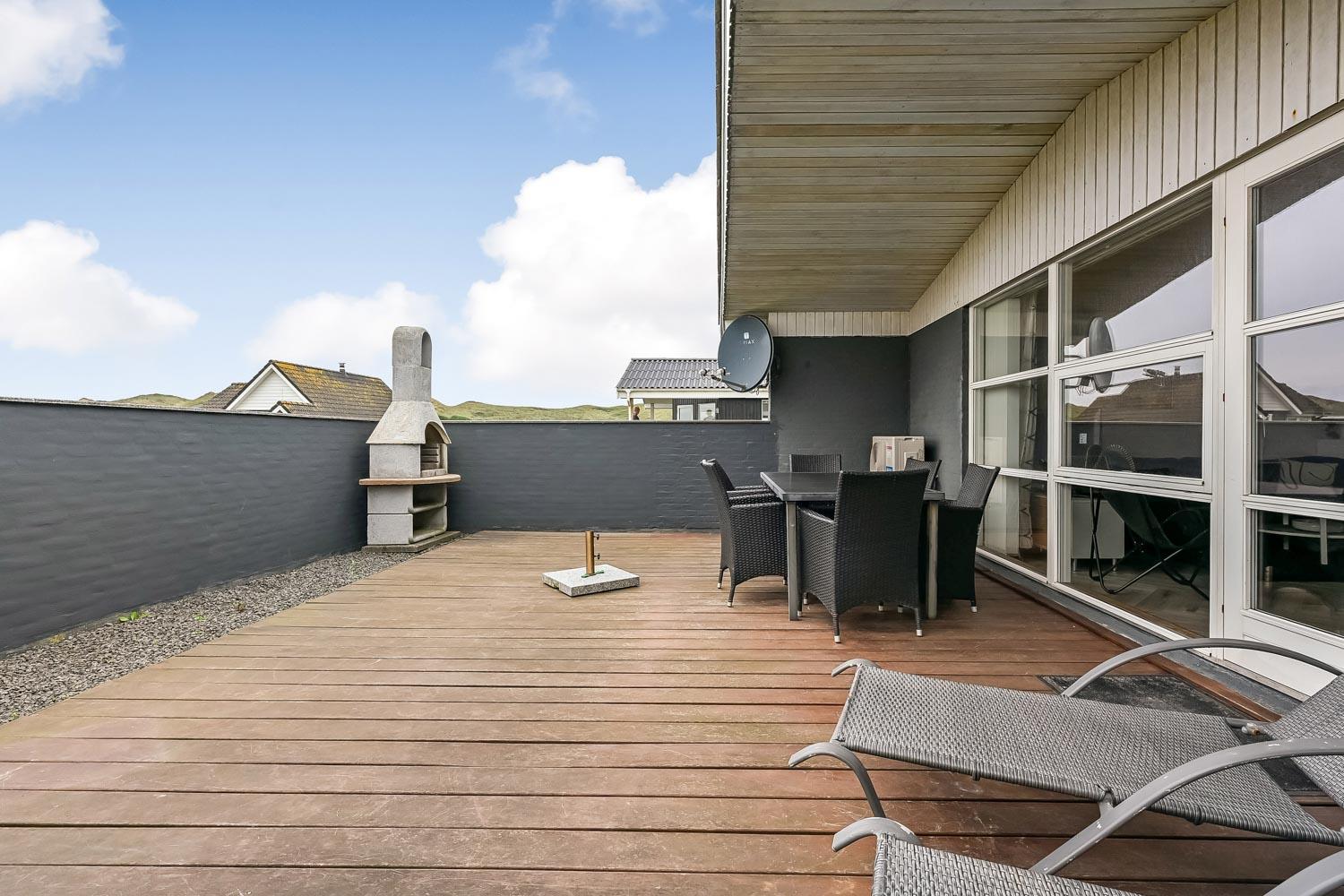 Das Haus liegt auf einem 703 qm großen Naturgrundstück. Vom Wohnraum gibt es einen Ausgang zu einer schönen eingezäunten Terrasse mit Gartenmöbeln, Sonnenliegen und Grill. Von der Terrasse haben Sie Blick zum Ferring See. Das Haus liegt 300 m von der Nordsee und 300 m vom Ferring See entfernt. Die Gegend ist perfekt für Wanderungen, egal ob es stürmisch im Herbst oder ein schöner Sommertag ist. Sie können um den Ferring See auf einer markierten Route, die etwa 10 km lang ist, wandern oder Sie können die Favoritenroute unserer Gäste nehmen - am Strand entlang nach Bovbjerg Fyr und zurück am Ferring See entlang-. Nehmen Sie Ihr Auto und fahren etwa 18 km, dann kommen Sie nach Thyborøn zu einem schönen Hafenort mit vielen Attraktionen, z.B. Akvarium und Seawar-Museum und den dazu gehörenden Erinnerungspark, oder genießen Sie nur die Hafenstimmung. 13 km vom Haus entfernt liegt der Ort Lemvig mit vielen guten Geschäften und einer schönen Hafenatmosphäre.