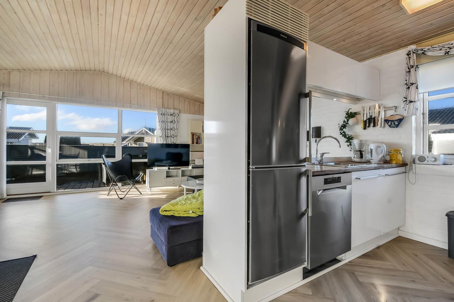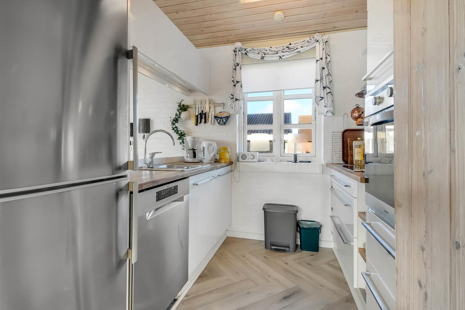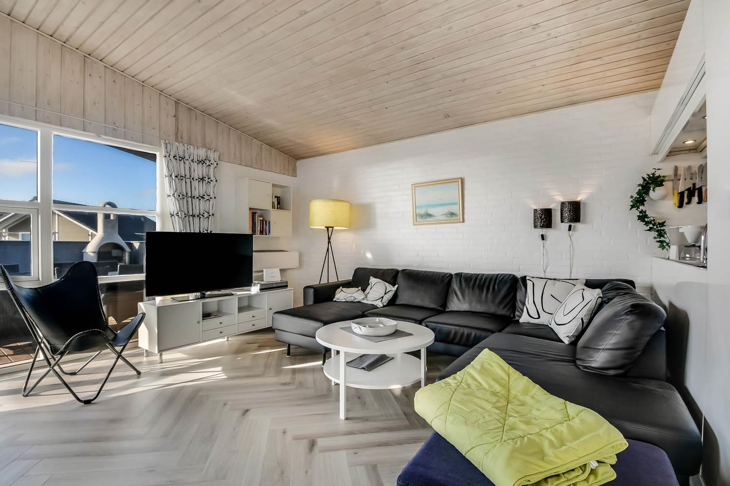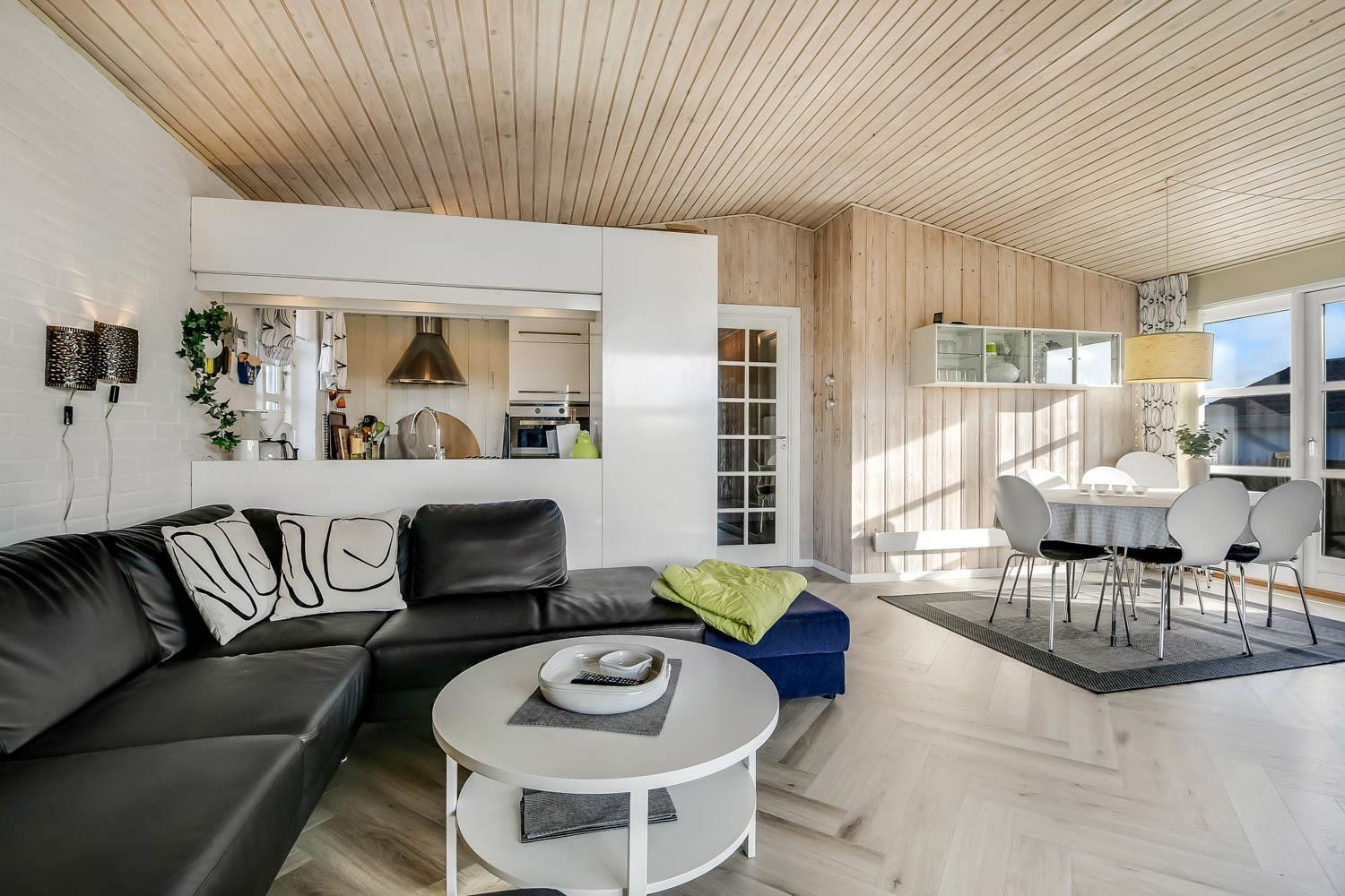 Schön eingerichtetes Steinhaus mit kombiniertem Wohnraum und Küche. Der Wohnraum ist mit Ledermöbeln, Smart-TV mit dänischen und deutschen Programmen und hat einen schönen Brennofen, der zusammen mit der Wärmepumpe für eine gute Wärme sorgt und beide helfen dabei eine günstigere Nebenkosten-Rechnung zu bekommen. Dicht an der Küche steht der Esstisch und im Wohnraum. Offene Küche mit Ceranfeld-Kochherd, Kühl-/Gefrierschrank, Abzugshaube, Geschirrspüler und Mikrowelle und Linoleumboden. Wohnzimmer und Küche hat neu Fischgrät-Pakett-Boden. 3 Schlafräume: 1DB + 1DB + 2B; alle Schlafräume haben neu Fischgrät-Pakett-Boden. Neurenoviert Badezimmer mit Toilette, Waschbecken, Dusche und Zugang zur Sauna und Fußbodenheizung. Für die kleinsten Gäste gibt es Kinderbett und Kinderstuhl. Nichtraucher-Haus. 1 Haustier ist erlaubt.