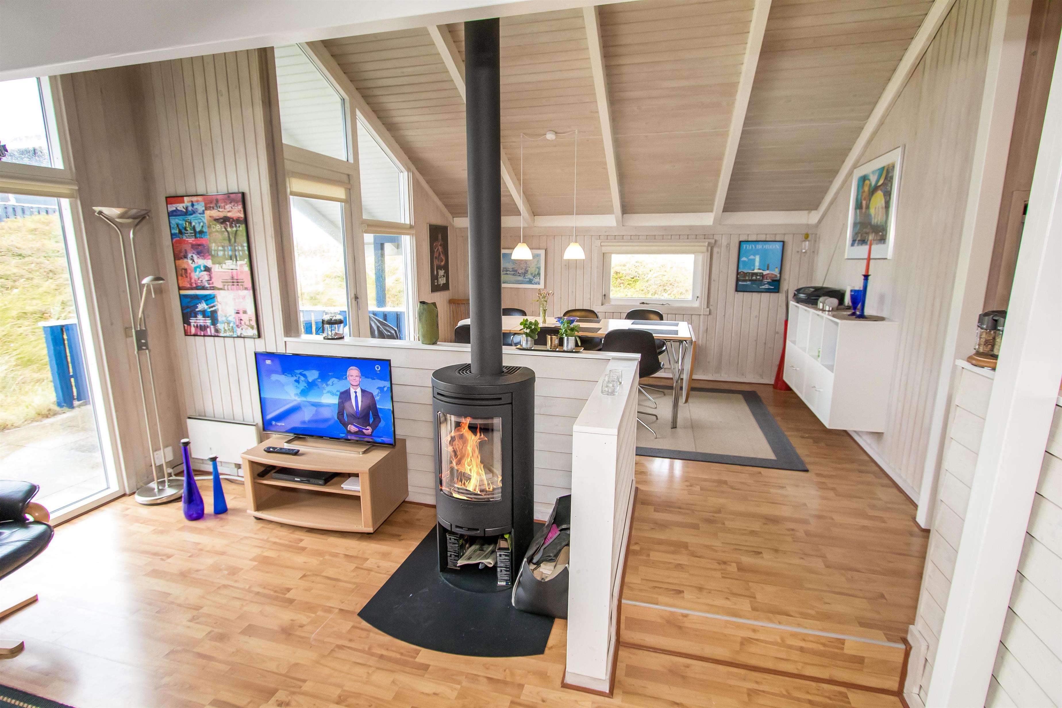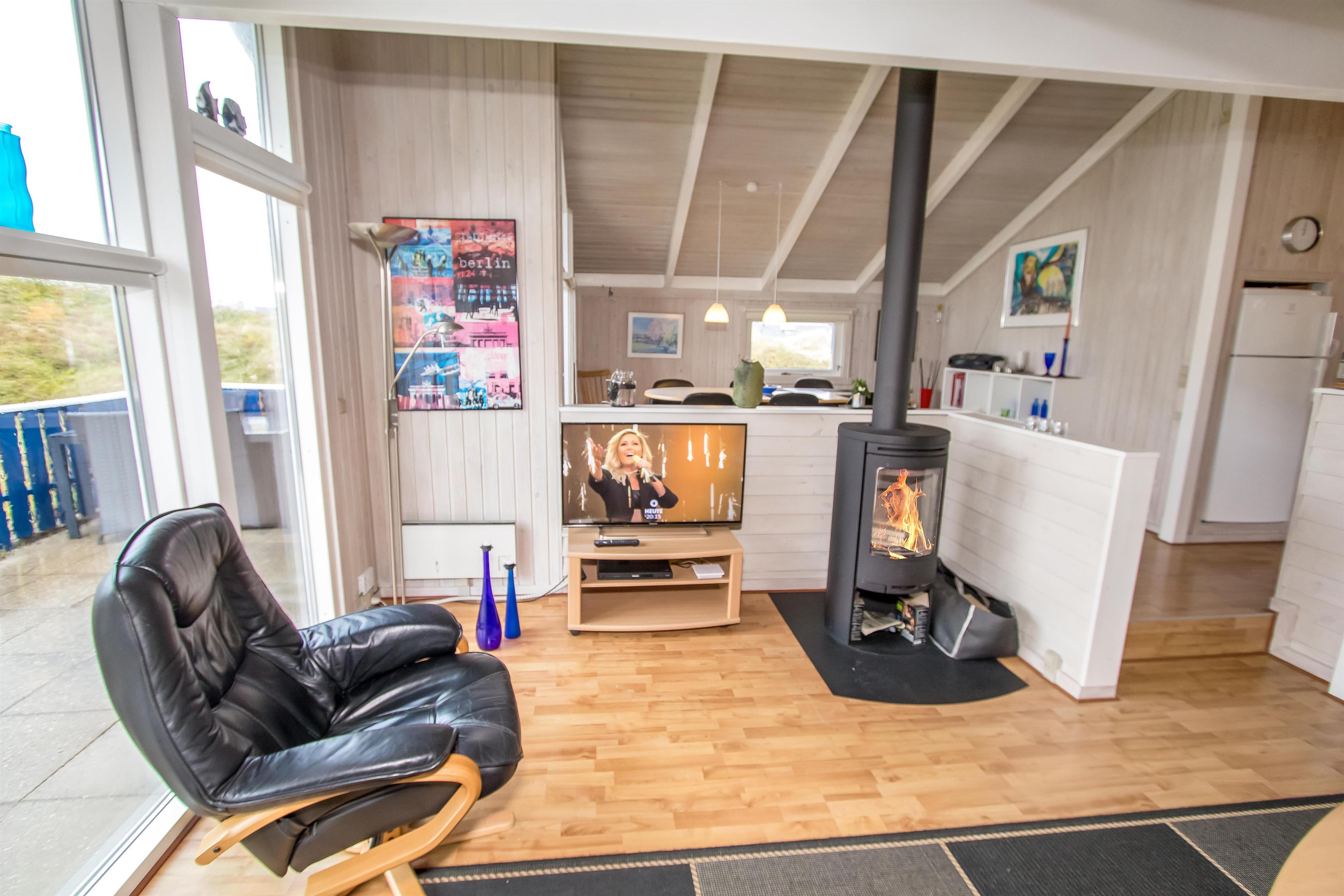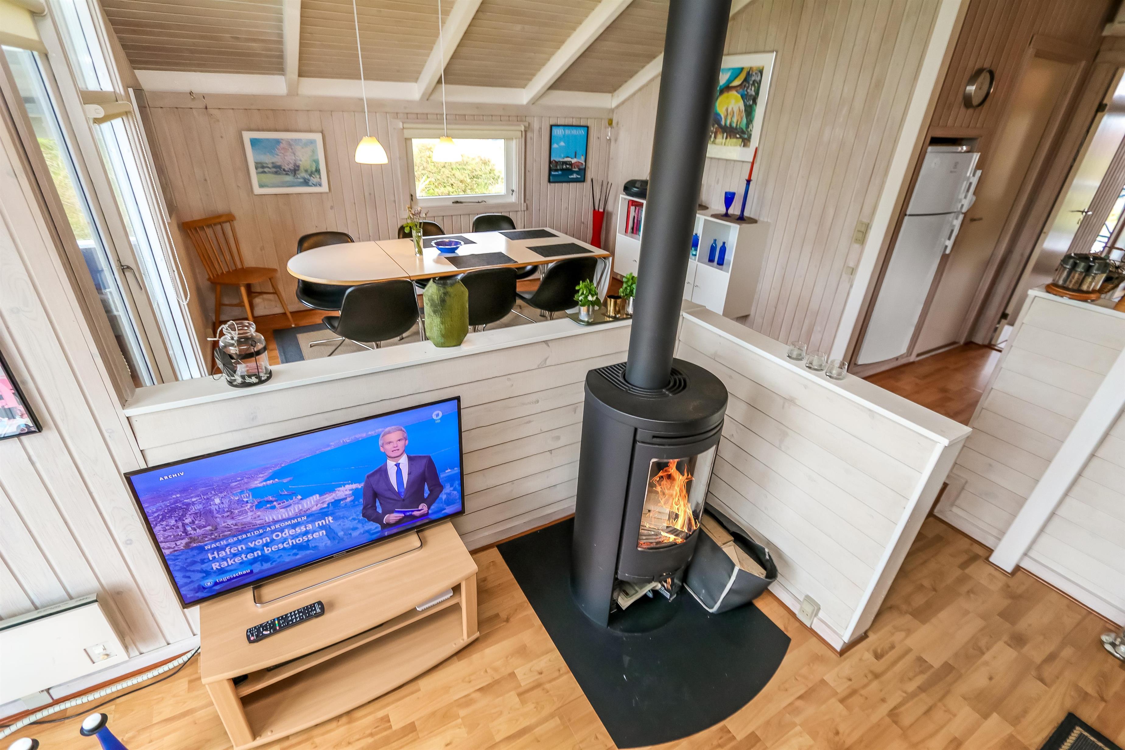 Das Haus ist gut eingerichtet mit Kaminzimmer in Verbindung mit Esszimmer und Küche. Die Küche verfügt über eine Fußbodenheizung, einen Glaskeramikofen, einen Geschirrspüler, einen eingebauten Backofen, einen Kühlschrank mit Gefrierfach. Von hier aus ist der Raum in zwei gemütliche Wohnzimmer unterteilt. Ein Wohnzimmer ist das Esszimmer, von dem aus man auch Zugang zur Terrasse hat. Das zweite Wohnzimmer ist der Kaminraum, in dem neben dem Kamin auch ein Flachbildschirm mit dänischem und deutschem Fernsehen, DVD und Stereoanlage mit CD vorhanden ist. Im Haus ist eine Wärmepumpe installiert, so dass Sie als Gast viel Strom sparen können - die Wärmepumpe liefert bis zu viermal so viel Strom wie sie verbraucht, d.h. für jede von der Wärmpumpe verbrauchte Kilowattstunde liefert sie Wärme entsprechend ca. 4 kW. Die Energie wird somit viel besser genutzt. Zusätzlich gibt es auch eine Spielekonsole. Hier sind 4 Schlafzimmer (1DB, 1DB, 1DB, 1DB Schlafcouch). Das Badezimmer mit Fußbodenheizung verfügt über ein Waschbecken, eine Dusche und eine Toilette. Es gibt auch eine Waschmaschine im Haus. 1 Haustier erlaubt. Dieses Haus ist ein Nichtraucher-Haus.