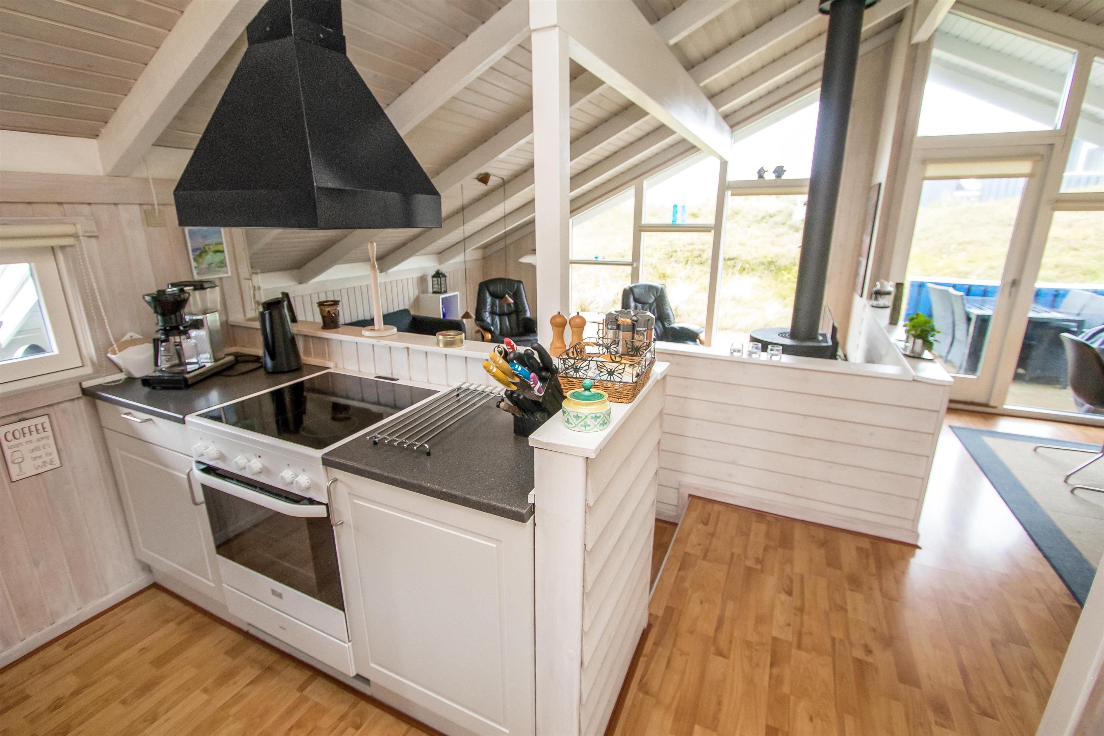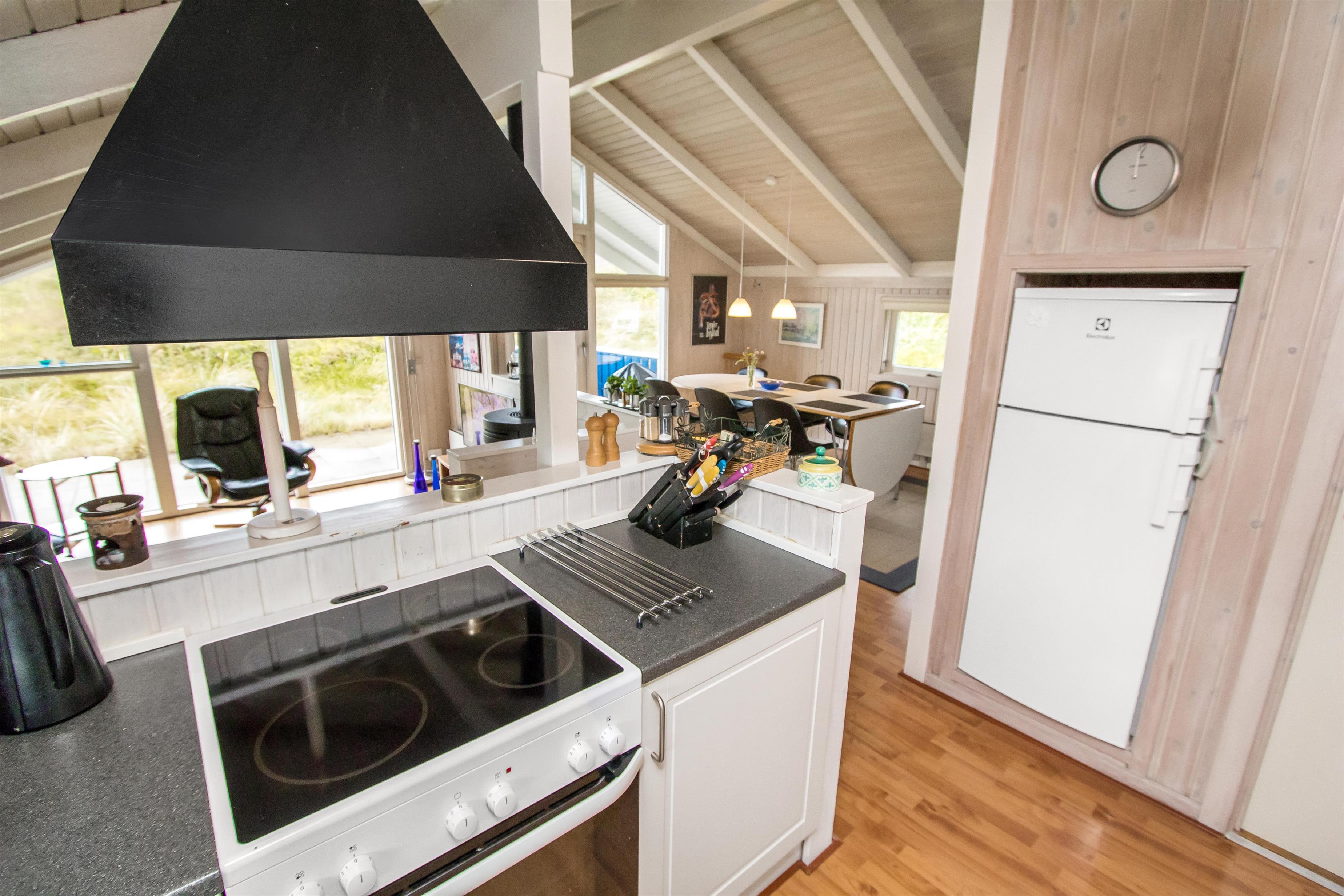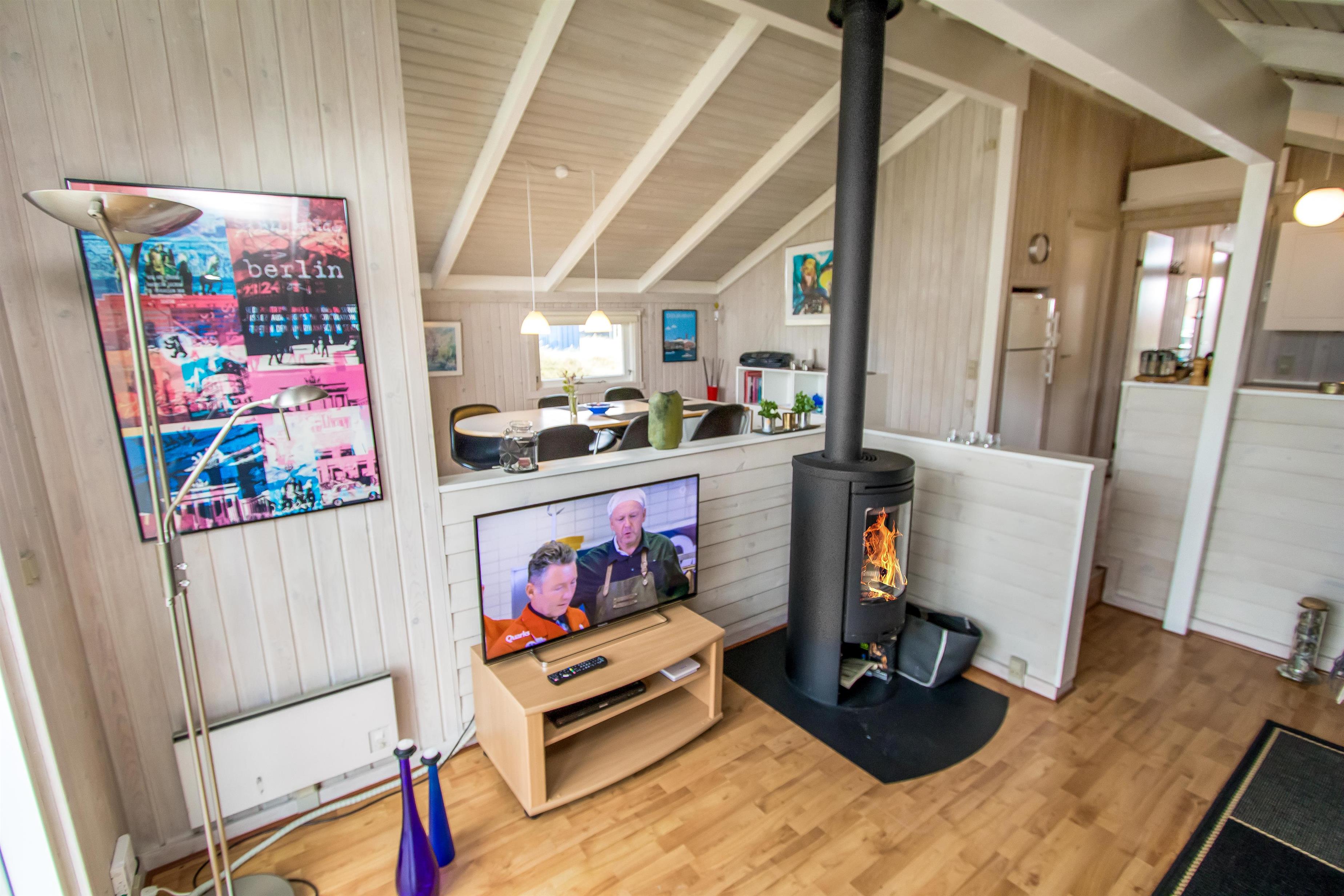 Das Haus ist gut eingerichtet mit Kaminzimmer in Verbindung mit Esszimmer und Küche. Die Küche verfügt über eine Fußbodenheizung, einen Glaskeramikofen, einen Geschirrspüler, einen eingebauten Backofen, einen Kühlschrank mit Gefrierfach. Von hier aus ist der Raum in zwei gemütliche Wohnzimmer unterteilt. Ein Wohnzimmer ist das Esszimmer, von dem aus man auch Zugang zur Terrasse hat. Das zweite Wohnzimmer ist der Kaminraum, in dem neben dem Kamin auch ein Flachbildschirm mit dänischem und deutschem Fernsehen, DVD und Stereoanlage mit CD vorhanden ist. Im Haus ist eine Wärmepumpe installiert, so dass Sie als Gast viel Strom sparen können - die Wärmepumpe liefert bis zu viermal so viel Strom wie sie verbraucht, d.h. für jede von der Wärmpumpe verbrauchte Kilowattstunde liefert sie Wärme entsprechend ca. 4 kW. Die Energie wird somit viel besser genutzt. Zusätzlich gibt es auch eine Spielekonsole. Hier sind 4 Schlafzimmer (1DB, 1DB, 1DB, 1DB Schlafcouch). Das Badezimmer mit Fußbodenheizung verfügt über ein Waschbecken, eine Dusche und eine Toilette. Es gibt auch eine Waschmaschine im Haus. 1 Haustier erlaubt. Dieses Haus ist ein Nichtraucher-Haus.
