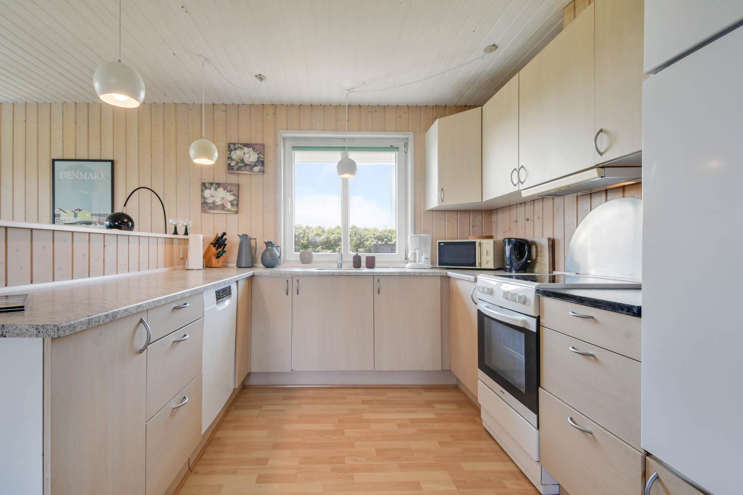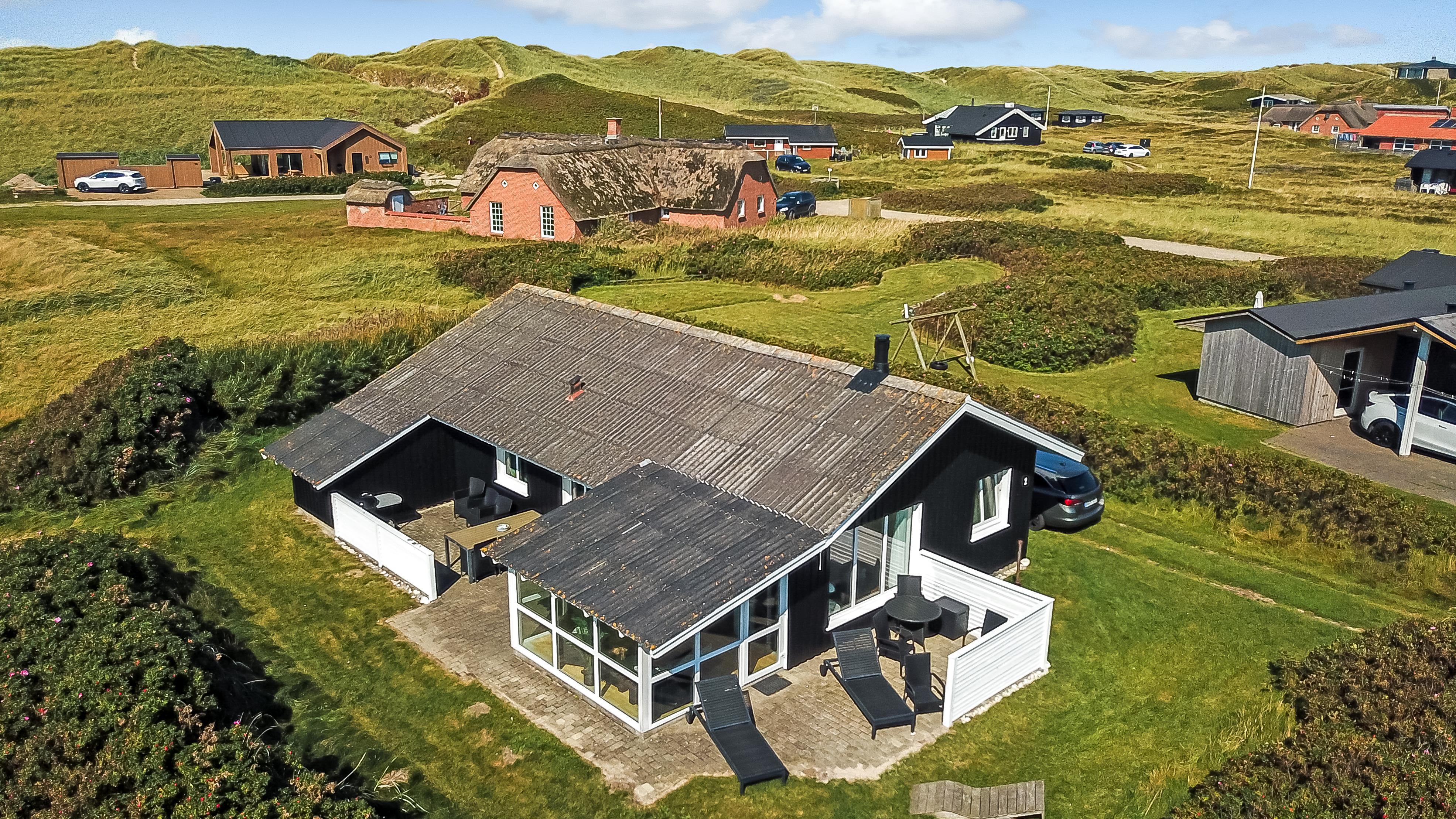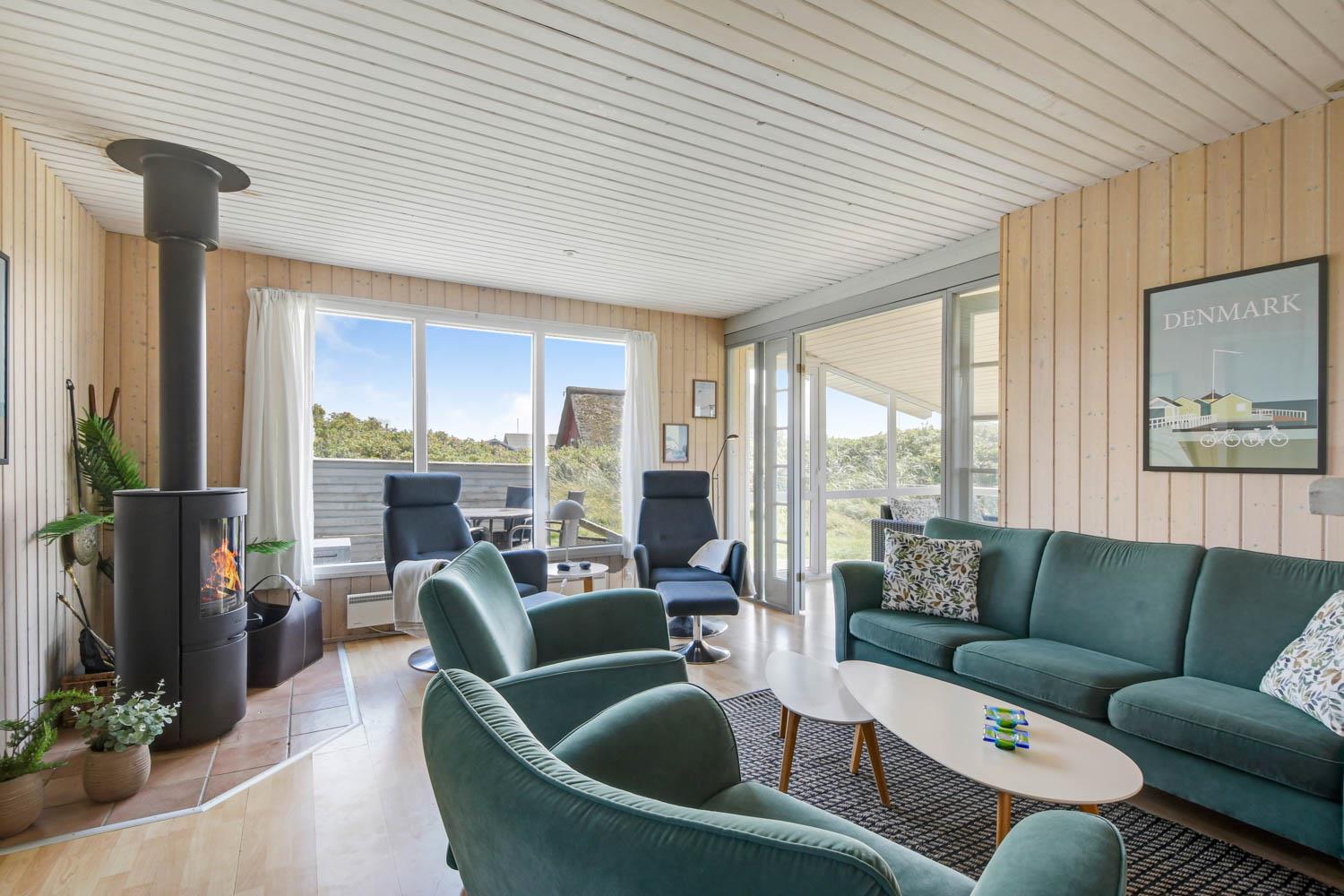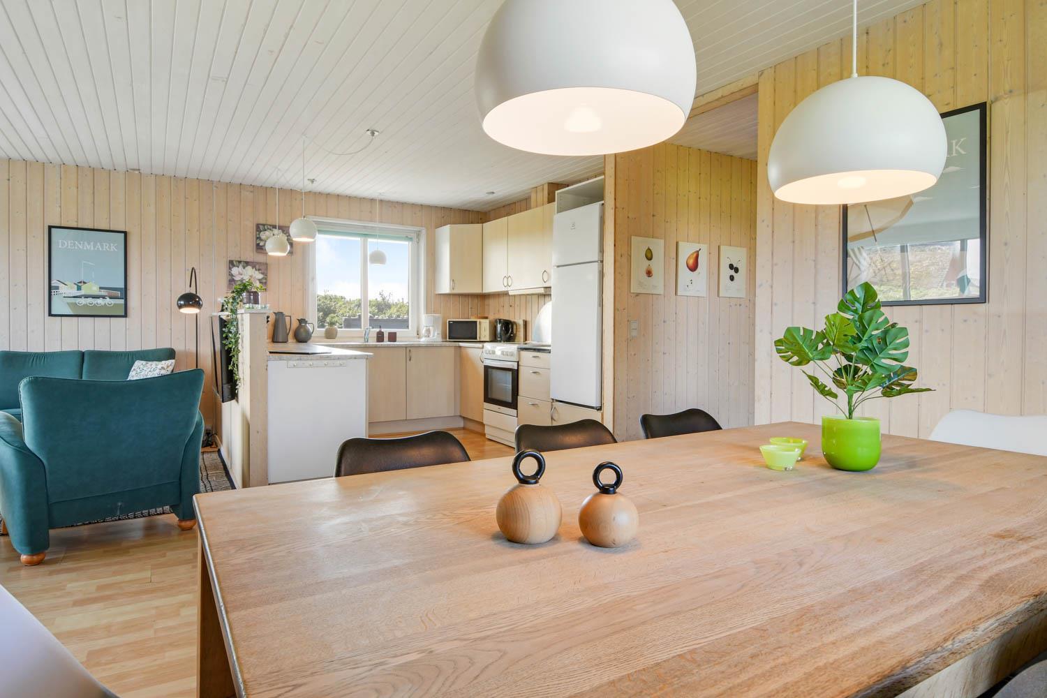Das Haus ist max. für 6 Personen und 2 Haustiere. Es gibt 4 Schlafräume: 1DB + 1DB + 2B + 2B. Es gibt eine kombinierte Küche/Wohnraum. Die Küche ist mit Ceranfeld-Kochherd, Kühl-/Gefrierschrank, Geschirrspüler und Mikrowelle ausgestattet. Das Haus ist im Juni 2024 renoviert worden. Neue Betten, Decken, Kissen, TV, Brennofen, Wärmepumpe, Möbel, Porzellan u.a. Im Wohnraum gibt es Glasfasernetz, Smart-TV mit dänischen, deutschen, schwedischen und norwegischen TV-Programmen. Es besteht die Möglichkeit, Radio- und Musikprogramme über eine App auf dem Smart-TV zu empfangen. Gartenstube mit Loungemöbeln. Von hier aus haben Sie einen Panoramablick zur 1. Dünenreihe. Badezimmer mit Dusche und Fußbodenheizung. Im Flur gibt es Waschmaschine, 2 Hochstühle und 2 Kinderbetten.