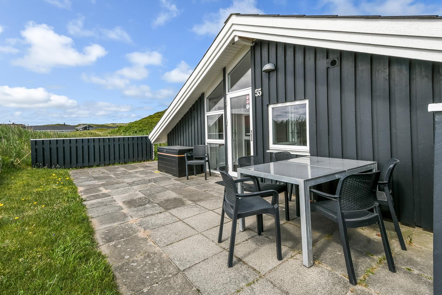 Die überdachte Westterrasse zeigt von der Straße weg auf die Dünen, sodass Sie relativ ungestört auf einem der 4 Sonnenliegen liegen können. Gartenmöbel und Grill gehören ebenfalls zur Grundausstattung, so dass man in angenehmer Umgebung wirklich viele angenehme Stunden in der Natur verbringen kann. Natürlich empfehlen wir die unmittelbare Nähe zum Meer, um alle Aktivitäten nutzen zu können, die Sie am breiten Sandstrand unternehmen können. Im Sommer sollten Sie sich nicht betrügen, um in reinem Wasser zu baden, und wenn der Westen frischen Wind bringt, können Sie stundenlang Drachen steigen lassen. Die Kinder lieben es, Sandburgen am Strand zu bauen, während die Erwachsenen die Angelrute finden und für viele Stunden Ruhe finden, während sie sich über das Meer in seiner ganzen Unendlichkeit wagen. Die Gegend bietet auch gute Möglichkeiten für Spaziergänge - entweder am Strand entlang oder zum Beispiel auf der 10 km langen Route um den nahe gelegenen Ferringsee. Bringen Sie auch Ihre Fahrräder mit - die Gegend ist sehr fahrradfreundlich. Wenn Sie einen ruhigen Urlaub mit der Familie im Zentrum oder mit der Möglichkeit für verschiedene Aktivitäten während der Ferien wollen, dann ist dieses Haus eine gute Wahl!