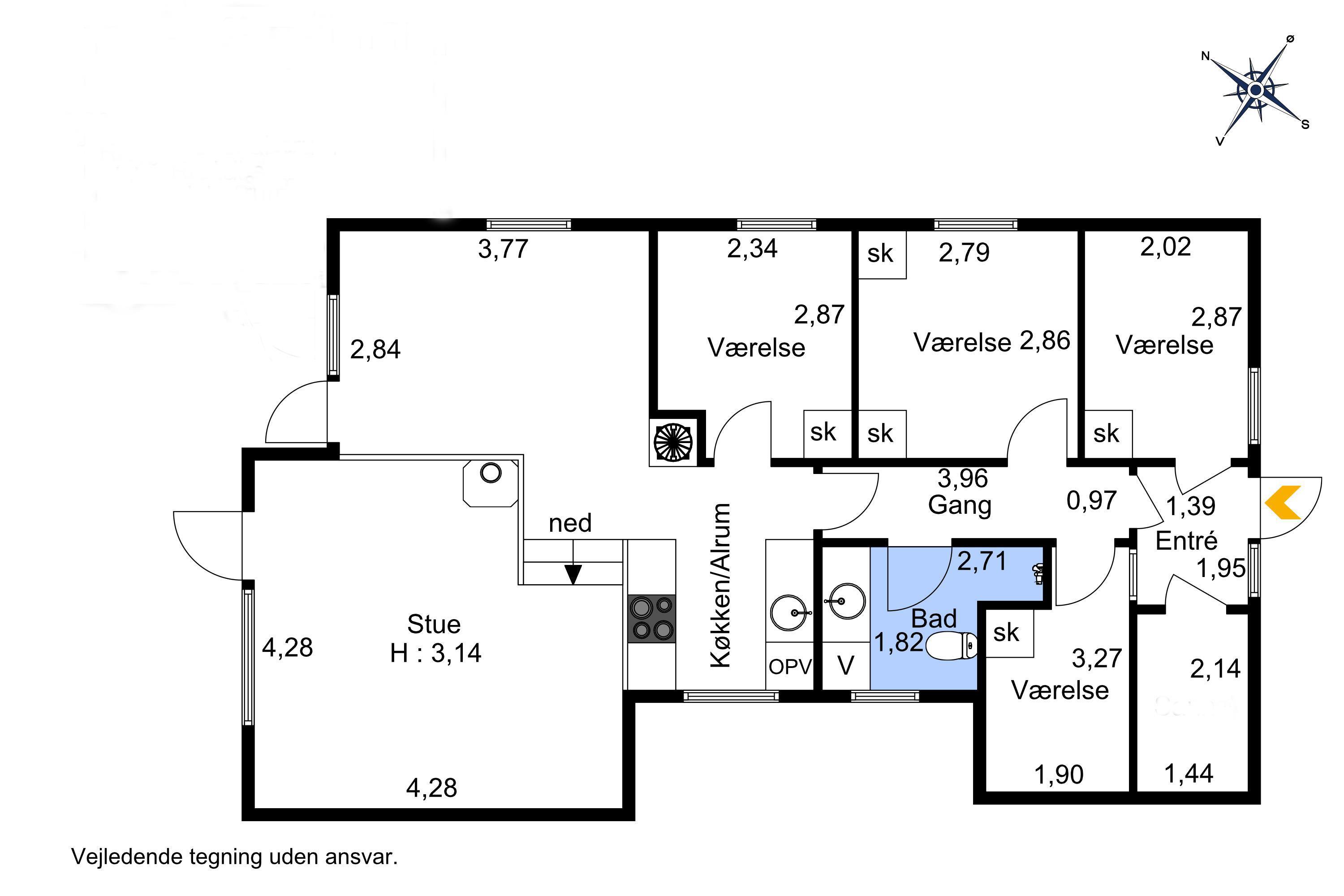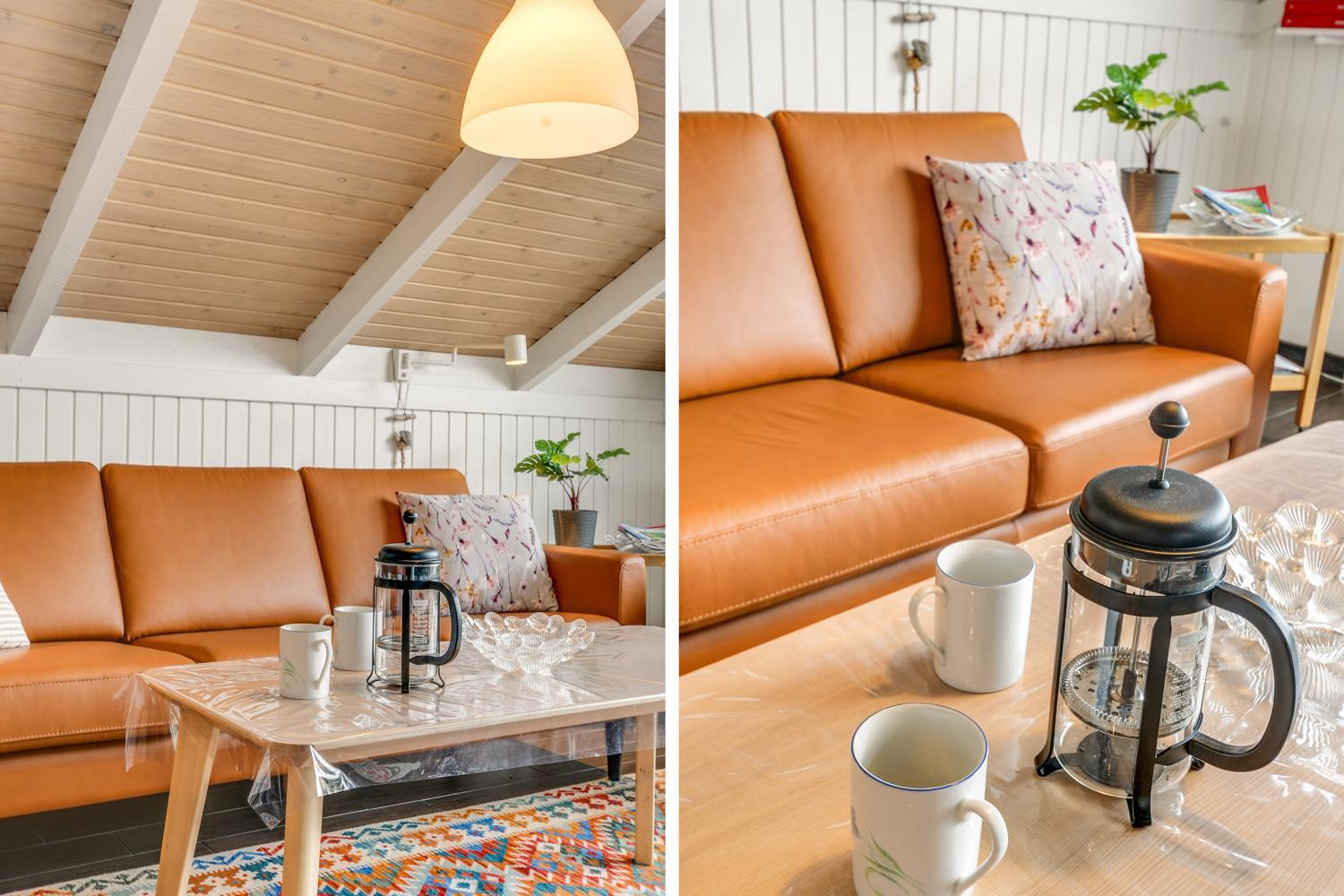Das Haus ist gut eingerichtet mit Kaminstube in Verbindung mit dem Esszimmer und der Küche. Die Küche hat Fussbodenheizung, Herd mit Cerankochfeld, Geschirrspüler, eingebautem Ofen und separater Gefriertruhe. Von der Küche aus ist der Raum in 2 gemütliche Wohnzimmer aufgeteilt. Der eine Wohnraum ist das Esszimmer, wovon Sie auch Ausgang zur Terrasse haben. Der andere Wohnraum ist die Kaminstube, wo Sie ausser dem Kaminofen auch TV mit dänischen und deutschen Programmen haben, DVD und CD-Anlage. Eine Wärmepumpe ist im Haus installiert und das bedeutet, daß Sie als Gast an den Heizkosten sparen - die Wärmepumpe liefert bis zu 4-mal so viel Strom. Für die Anwender bedeutet dies, dass jede Kilowattstunde, die die Pumpe verbraucht, als Wärme auf ca. 4 kW Energie ausgenutzt werden kann. Ausserdem haben Sie eine Spielkonsole. Es gibt 4 Schlafräume: 1DB + 1DB + 2B + 1B. Haus muss mit max. 6 Personen bewohnt werden. Badezimmer mit Fussbodenheizung, Waschbecken, Toilette und Dusche. Es gibt auch eine Waschmaschine im Haus. Dieses Haus ist ein Nicht Raucherhaus.