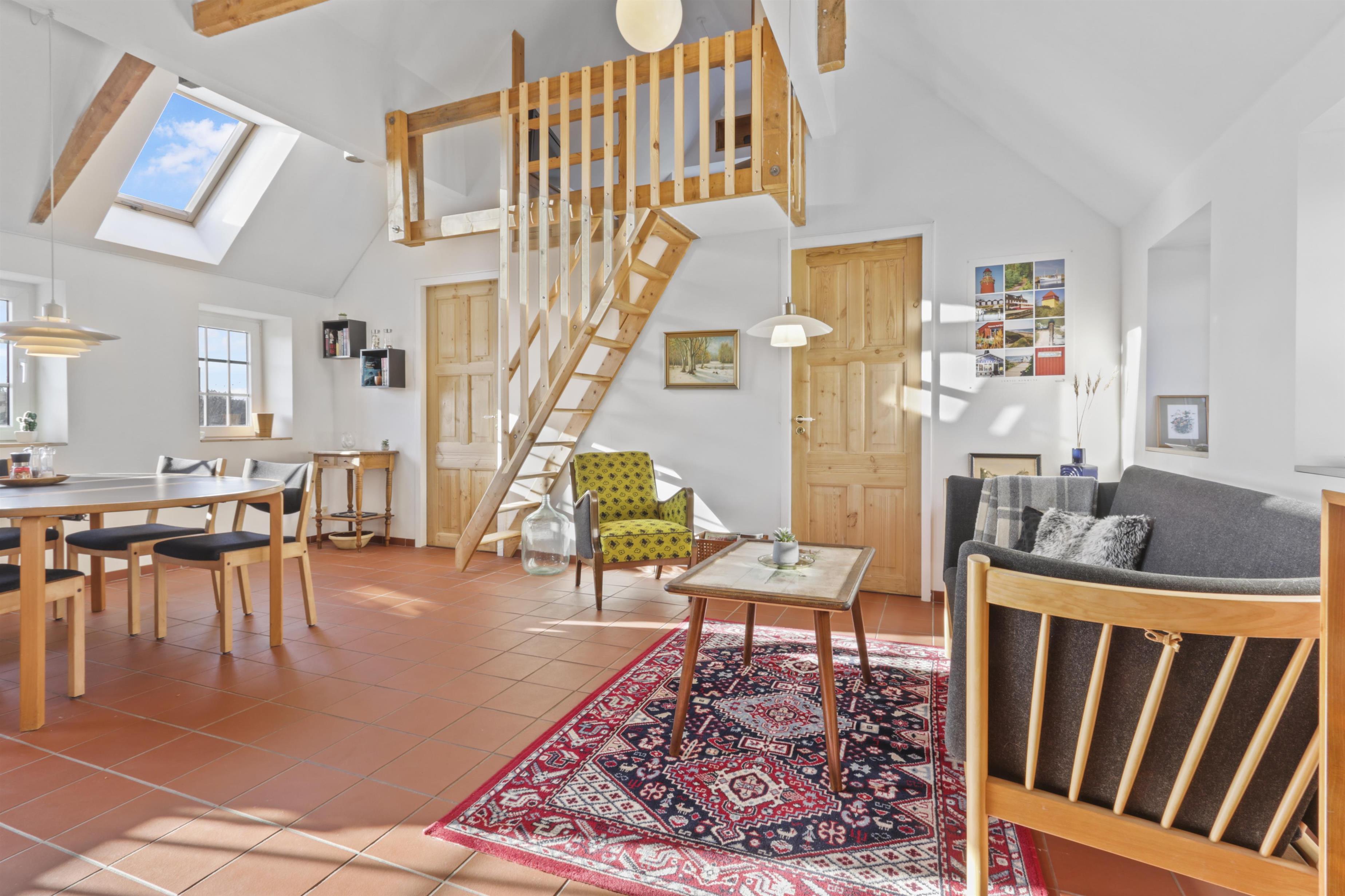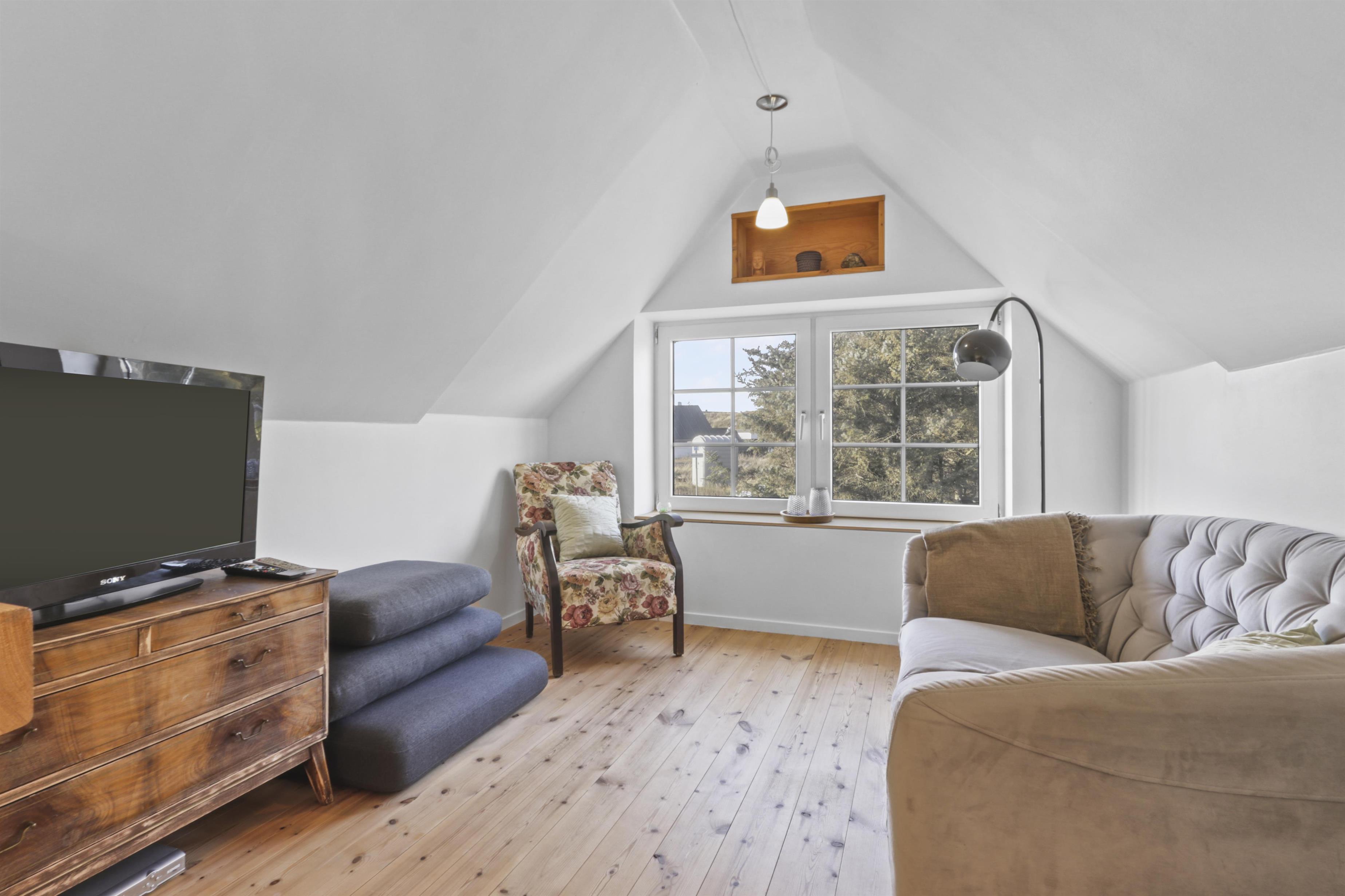 Im Obergeschoss finden Sie auch ein Wohnzimmer mit Panoramablick auf die beeindruckenden Dünen, die Sie genießen können, während Sie sich entspannen.
