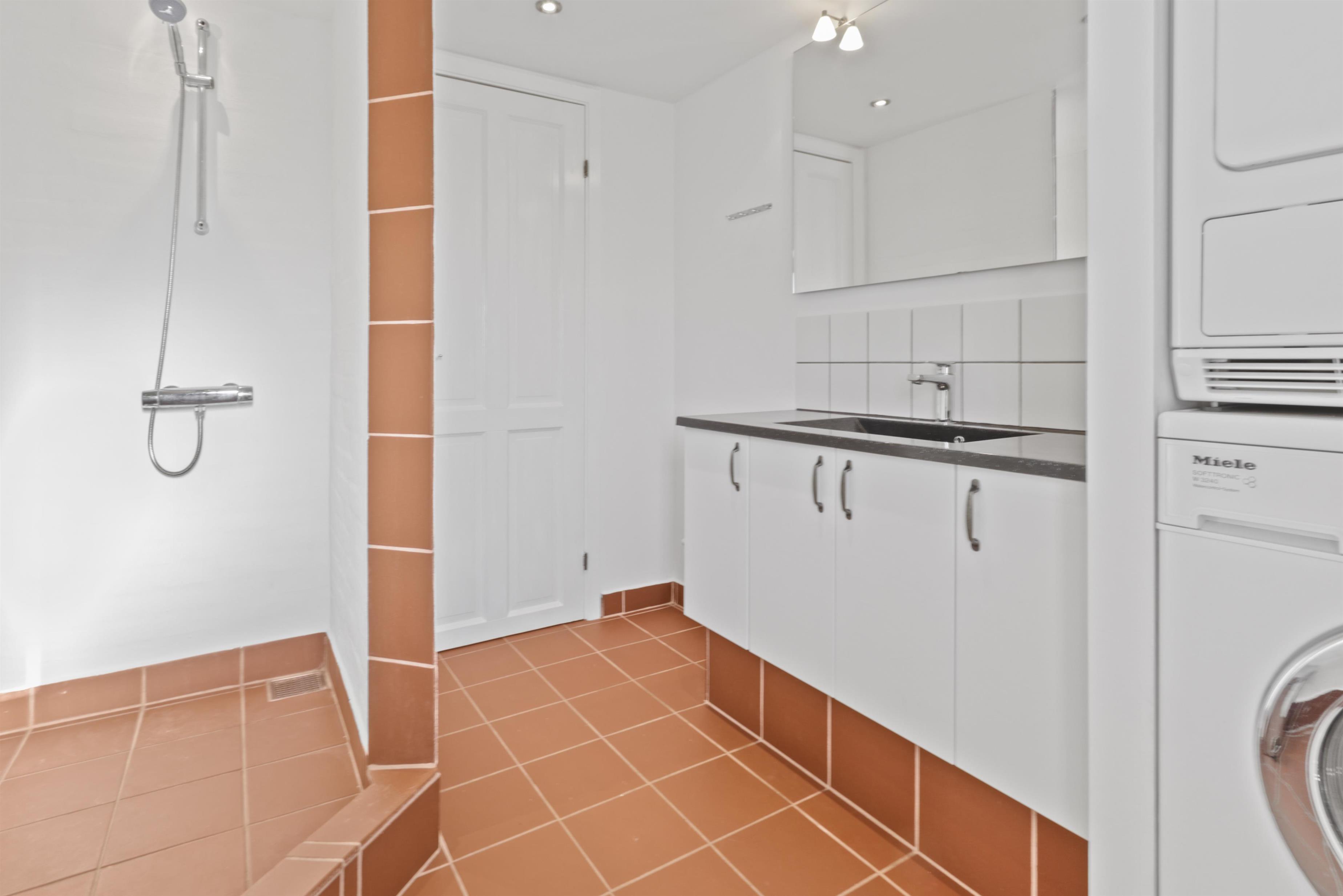Dieses moderne Ferienhaus mit 134 m² ist funktional und gemütlich eingerichtet. Das Wohnzimmer ist das Herz des Hauses, mit einem hohen Deckenraum, der eine helle und luftige Atmosphäre schafft. Vom großzügigen Eingangsbereich gelangen Sie ins Badezimmer mit Waschmaschine, Trockner und einer geräumigen Dusche.