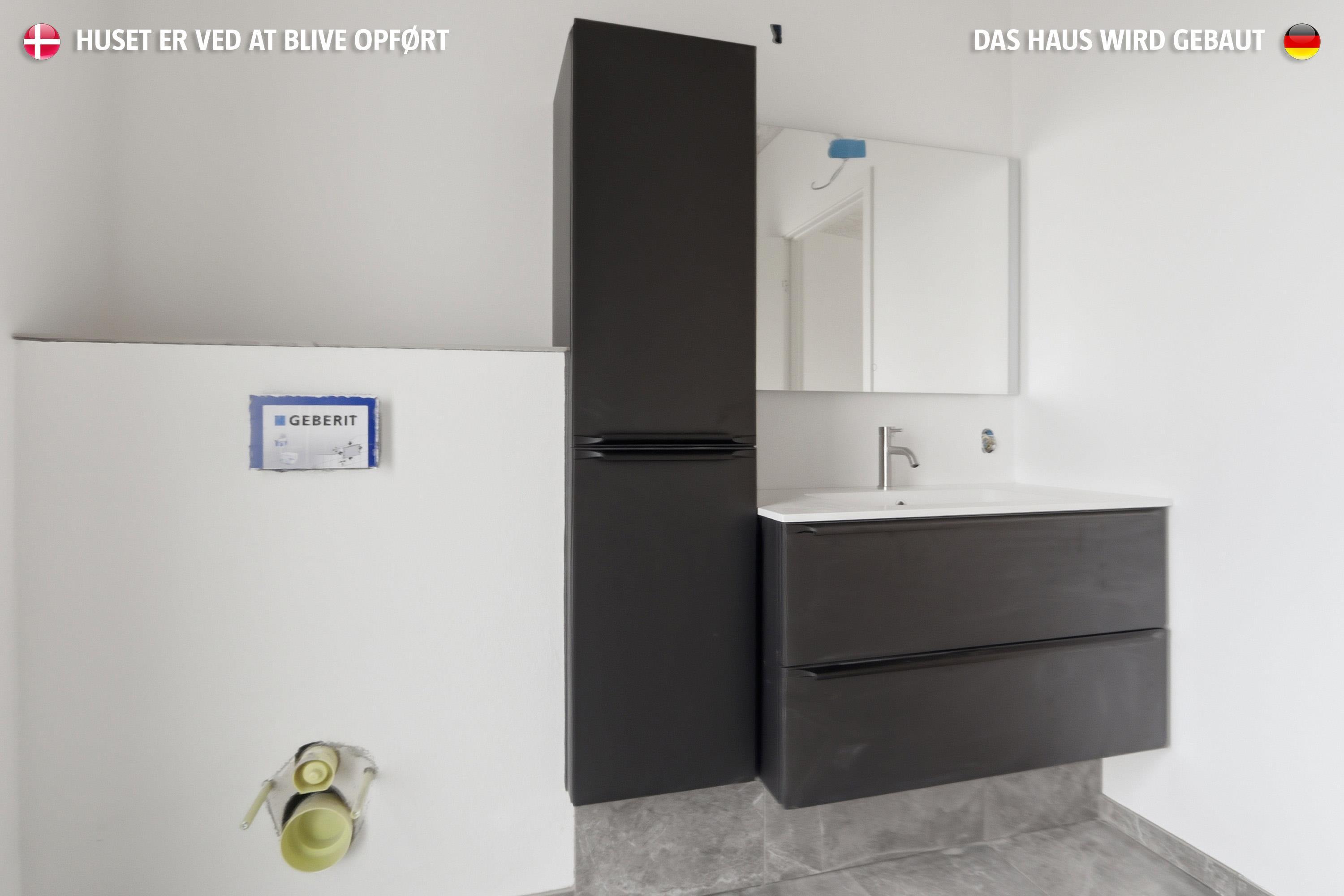 Das große Badezimmer bietet WC, Waschbecken, Dusche sowie direkten Zugang zu einer absolut fantastischen Sauna mit Panoramablick auf den Ferring See – einzigartig und beeindruckend. Zusätzlich gibt es ein weiteres Badezimmer mit WC, Dusche und Waschbecken. Beide Badezimmer verfügen über Fliesenböden mit Fußbodenheizung.
