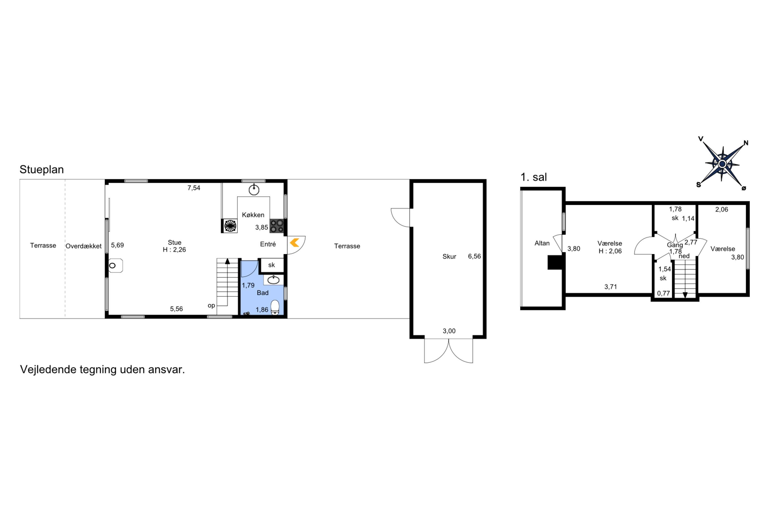 Im Obergeschoss des Hauses befinden sich zwei Schlafzimmer. Eines der Zimmer ist mit einem Doppelbett ausgestattet, während das andere über zwei Einzelbetten verfügt. Vom großen Schlafzimmer aus haben Sie direkten Zugang zu einem gemütlichen Balkon mit Blick auf die Dünen – der perfekte Ort, um die frische Meeresluft zu genießen.