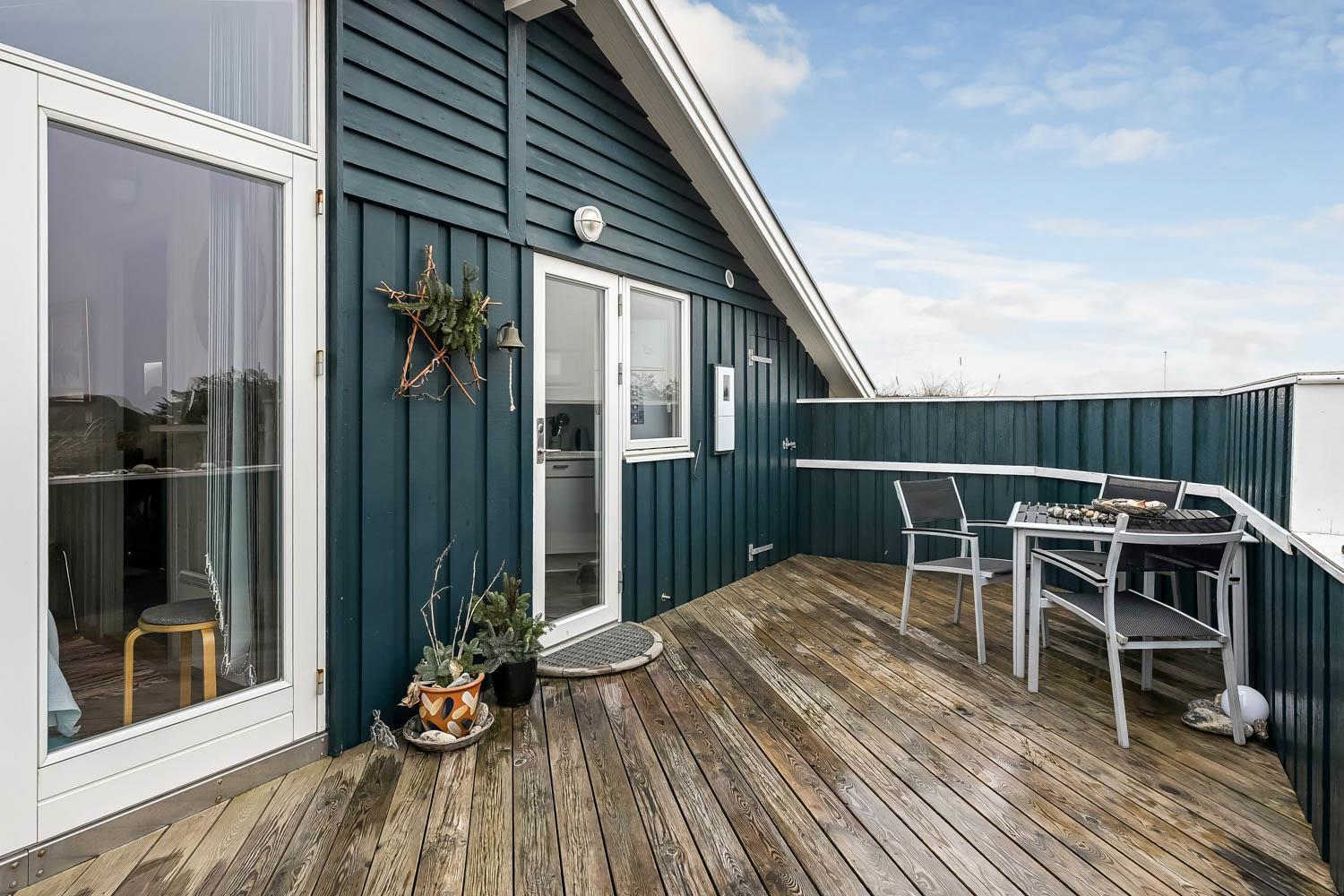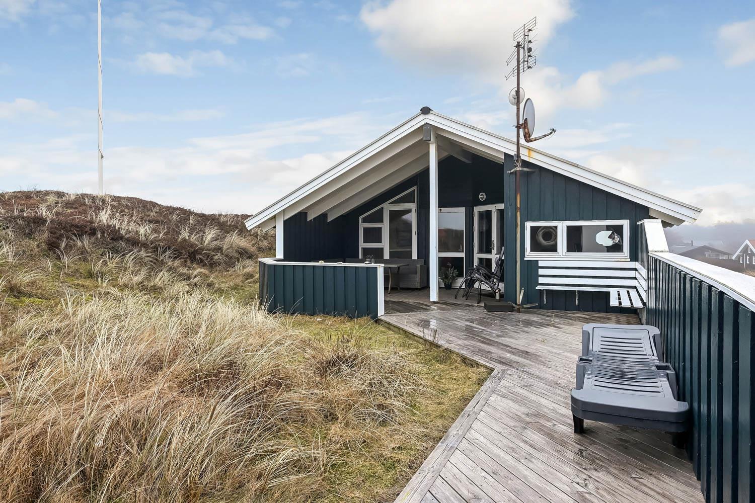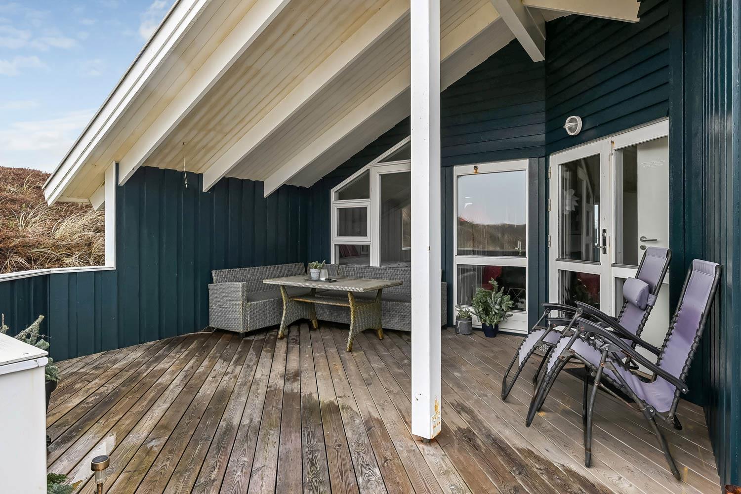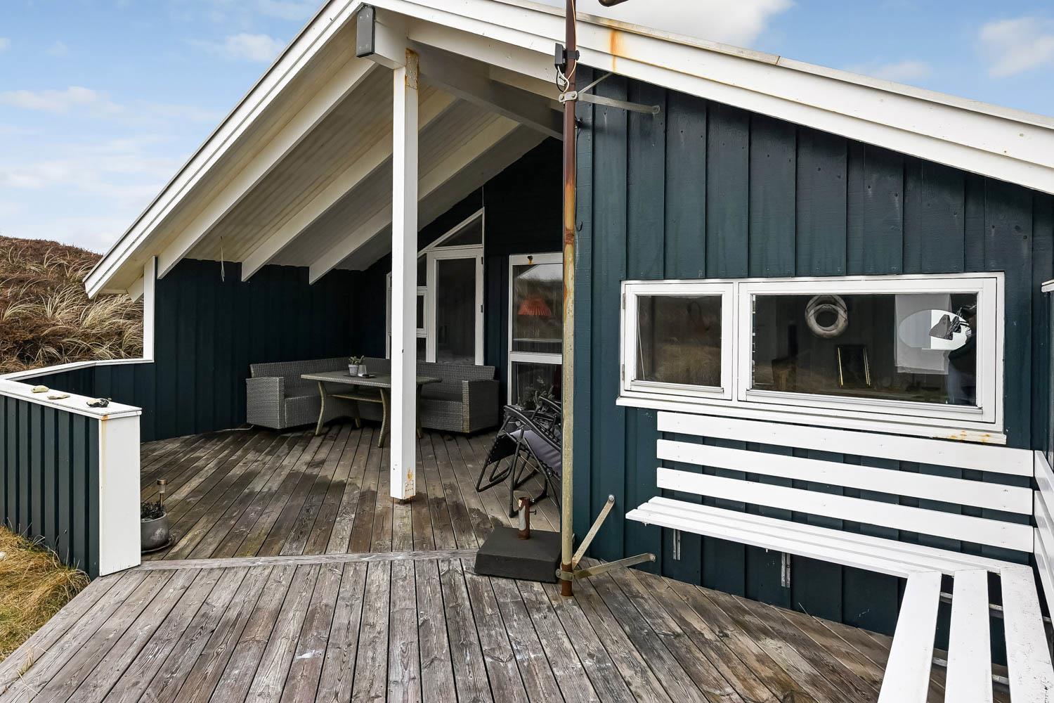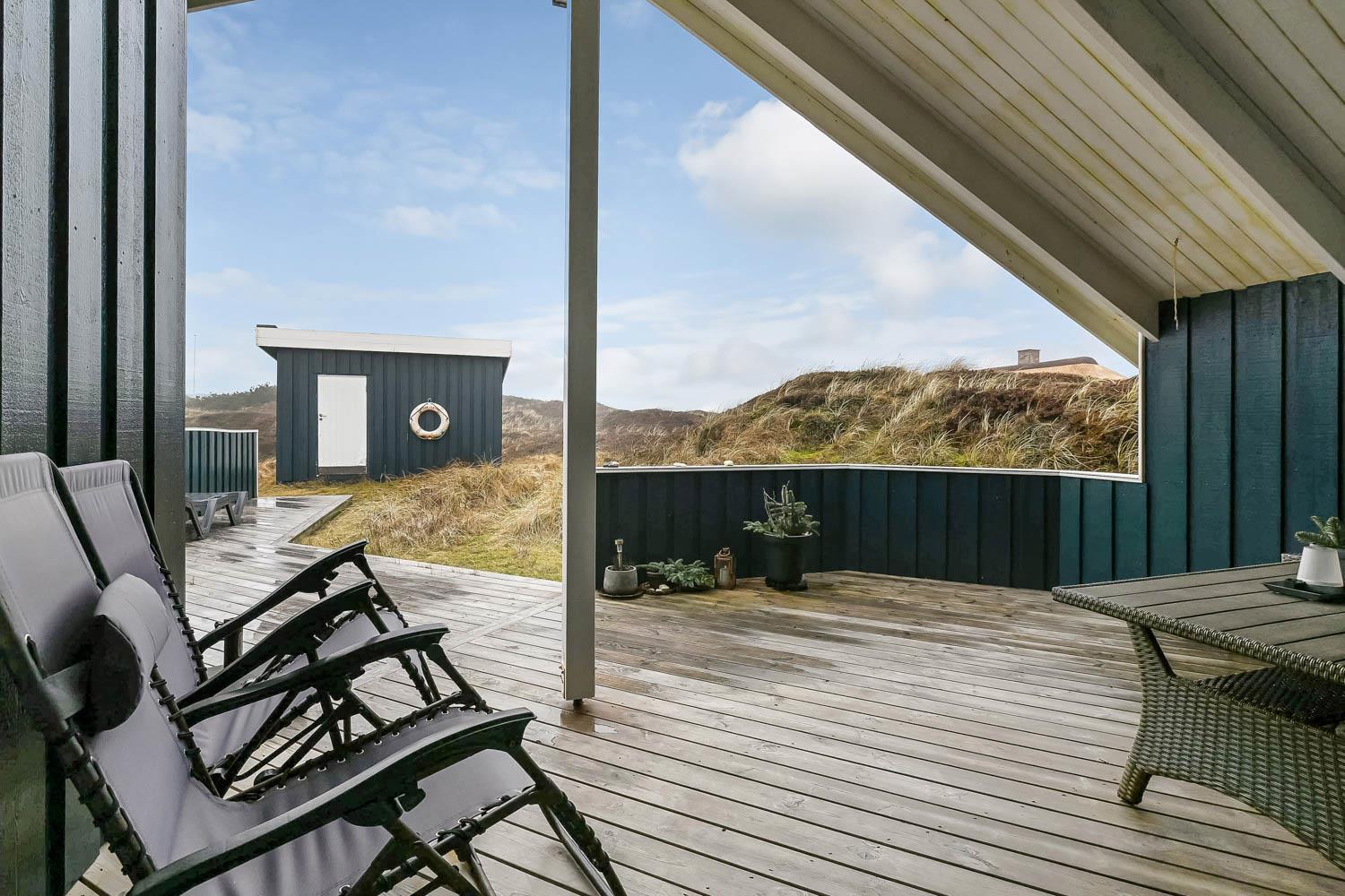 Von den 2 Terrassen mit etwa 60 m² haben Sie einen prachtvollen Blick über die Ferienhaussiedlung mit den vielen Dünen. Zum Haus gehören Grill, Gartenmöbel und 2 Sonnenliegen, so können Sie in der Saison fast den ganzen Urlaub auf der Terrasse verbringen, mit z.B. einem guten Buch. Der Strand liegt bloss 150 m entfernt, so können Sie hier z.B. den Sonnenuntergang über die Nordsee sehen. Der Strand bietet viel Platz und reichliche Möglichkeiten für viele Aktivitäten, wie z.B. Wassersport, sonnenbaden, Drachen steigen lassen, oder die Kinder können Sandburgen bauen. Besuchen Sie auch gerne das Fischerdorf Thyborøn, wo es Attraktionen wie Jyllands Akvariet, Kystcenter, SeaWar Museum und ein Hafenmilleu gibt. Nehmen Sie auch Ihren Badeanzug mit, weil es hier einen sehr kinderfreundlichen Sandstrand gibt. Lemvig liegt bloss 13 km weg beim Limfjord und bietet auch ein gemütliches Hafenmilleu und ein altes Stadtzentrum mit guten Einkaufsmöglichkeiten. Es ist auch naheliegend, Wanderwegen in der hügeligen Landschaft zu unternehmen; die Hügel erstrecken sich bis zu 80 m über dem Meeresspiegel.