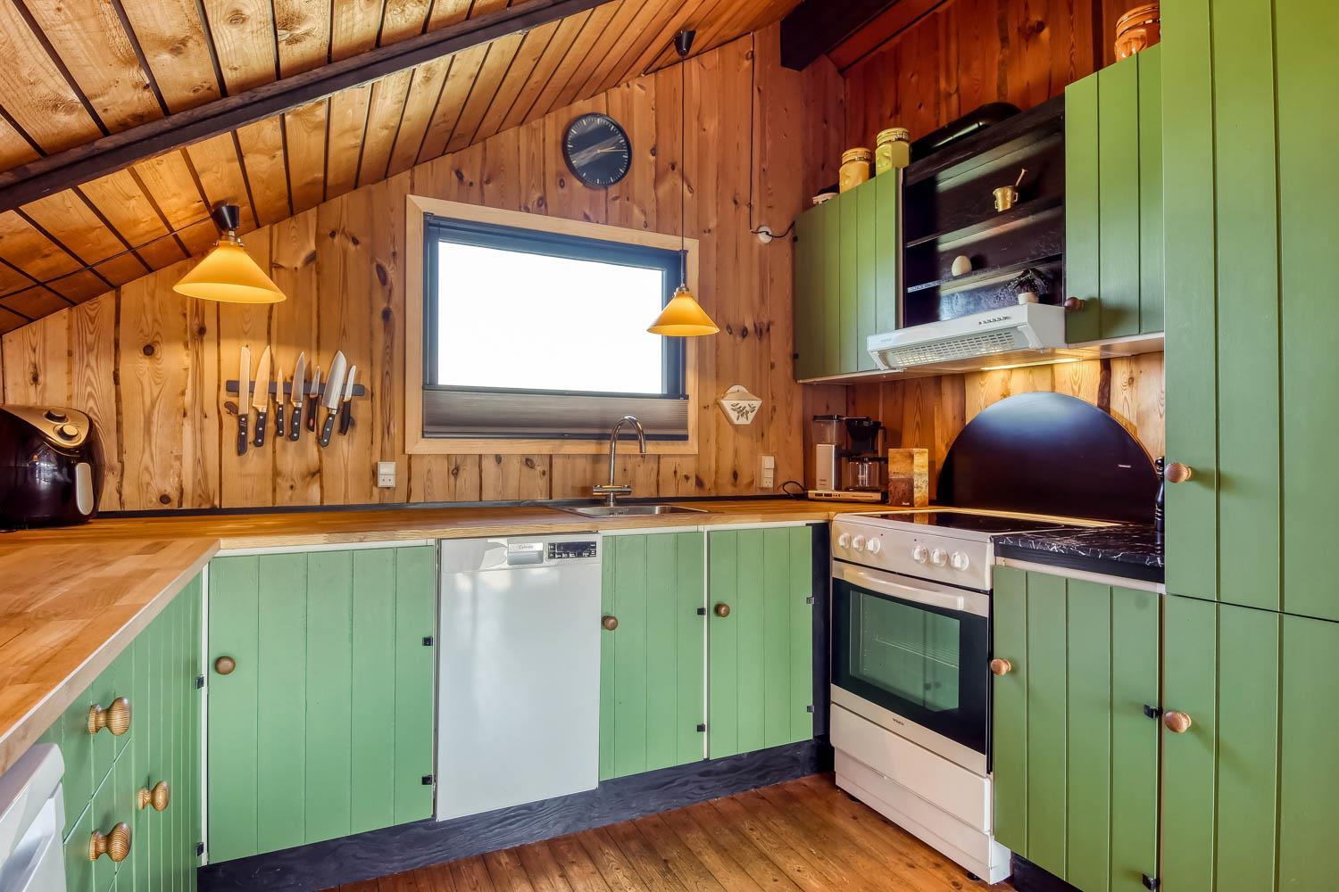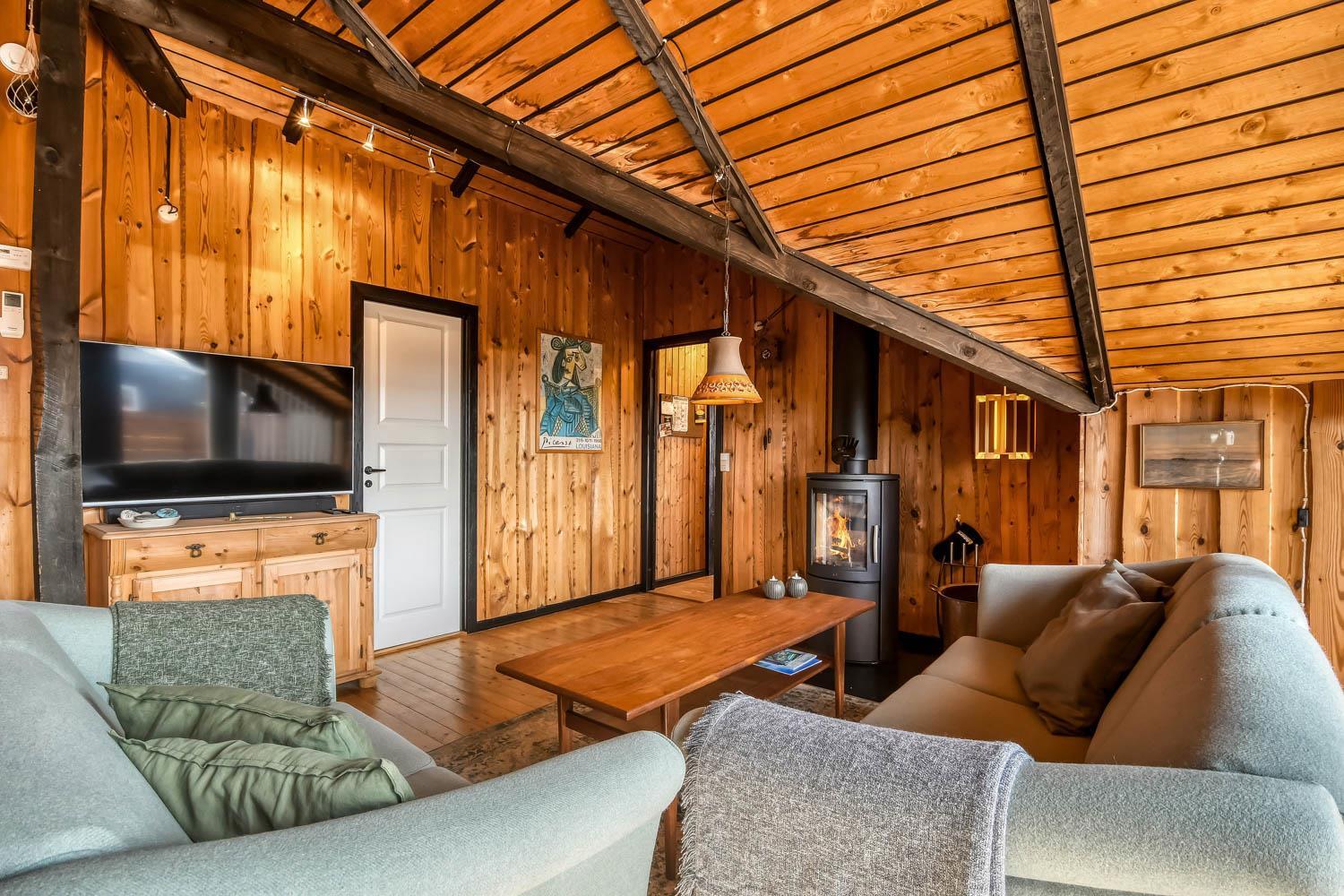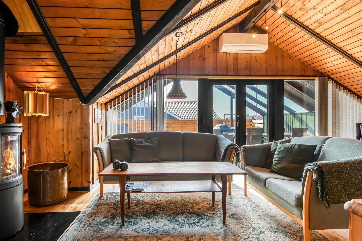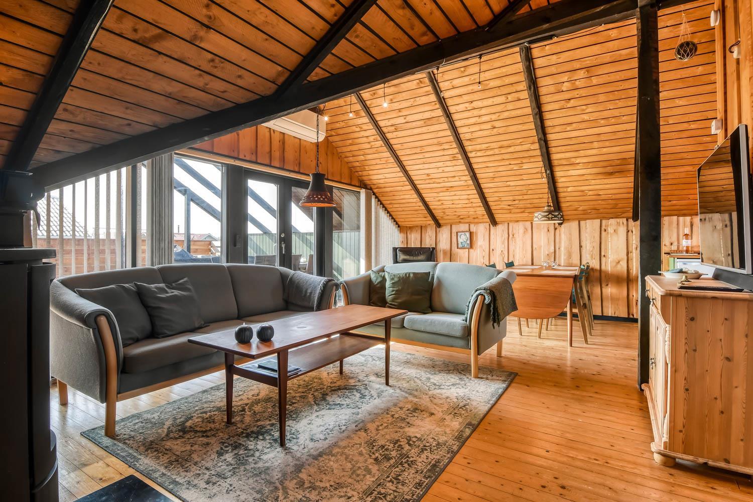 In diesem Haus können Sie viel Zeit in dem gemütlichen Wohnraum verbringen, der mit der Küche kombiniert ist. Es gibt eine Couchgruppe, Sessel und einen Esstisch. Außerdem gibt es einen schönen Kaminofen, der zusammen mit der Wärmepumpe für eine schöne Wärme sorgt und dabei hilft Nebenkosten zu sparen. Außerdem gibt es einen Smart-TV mit Soundbar mit dänischen und deutschen Programmen, und die Möglichkeit für Streaming von TV / Radio / Apps via Chromecast. Über Chromecast können Sie Filme und Musik über eigene Abonnements streamen, das können Sie auch über Playstation3 machen. In der Küche gibt es Geschirrspüler, Kühlschrank, Mikrowelle und Ceranfeld-Herd mit Abzugshaube. Vom Wohnraum gibt es Zugang zu einem Schlafraum mit einem Doppelbett (140 cm breit) und einem großen Kleiderschrank. Vom Flur gibt es Zugang zum Badezimmer und 2 Schlafräumen. Der eine Schlafraum hat ein Doppelbett (140 cm breit), Smart-TV incl. Chromecast und Hochschrank und der andere Schlafraum hat 2 Einzellbetten, ideal für den Familienurlaub. Das Badezimmer hat alles was man braucht, Toilette, Dusche, Waschbecken und kombinierte Waschmaschine und Trockner. Vom Flur gibt es auch einen Zugang zu einem extra Raum, wo es einen Gefrierschrank und einen extra Kleiderschrank gibt. Es gibt Bügeleisen, Bügelbrett und Haarföhn im Haus. Für die kleinsten Gäste gibt es Kinderbett und Kinderstuhl. Nichtraucher-Haus.