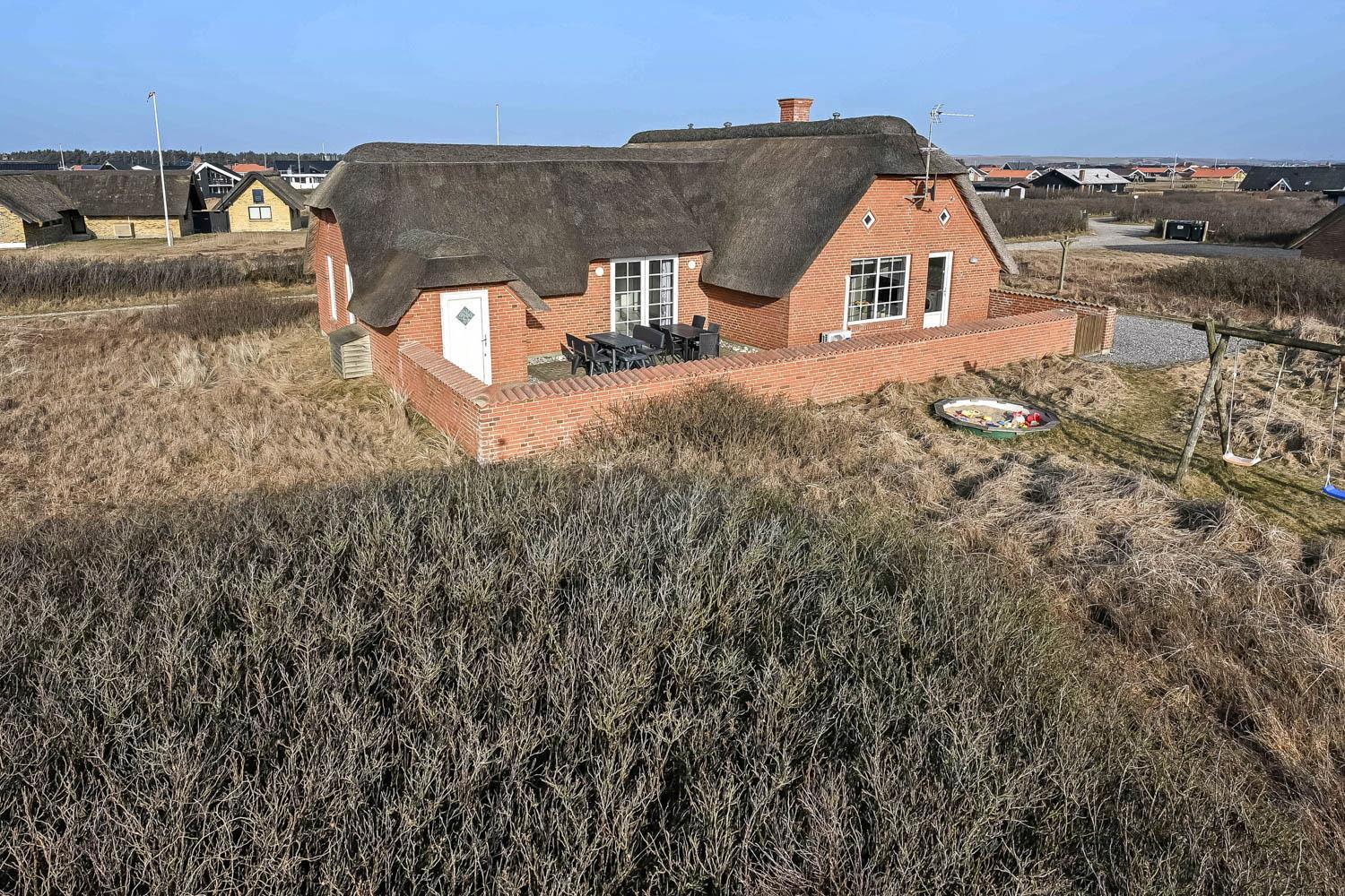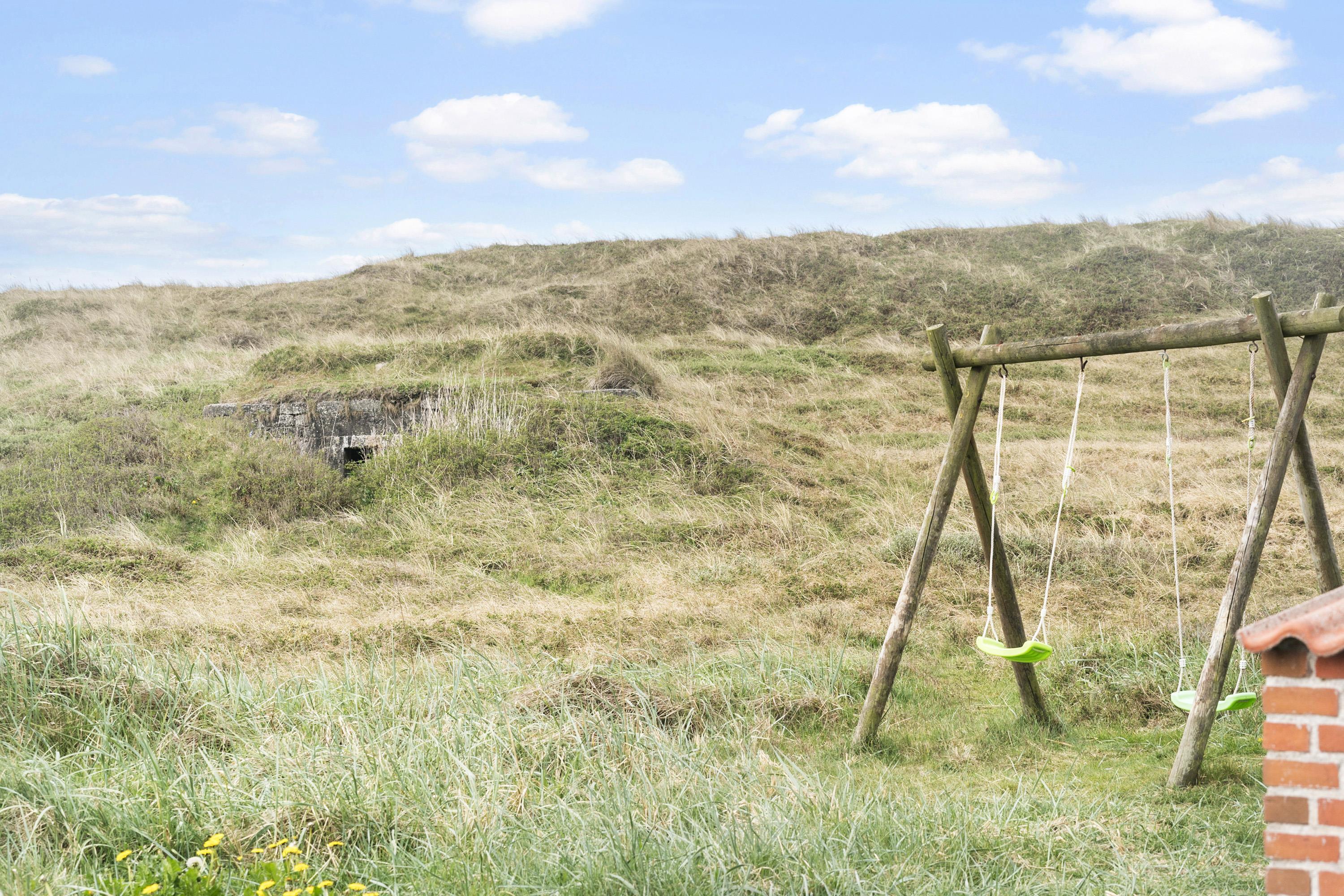Vom Haus hat man Zugang zu einer großen, geschlossenen und sonnigen Terrasse mit Gartenmöbeln und Sonnenliegen. Es gibt einen Grill für gemeinsame Sommerabende im Freien. Vom Haus und von der Terrasse hat man einen tollen Blick auf die Landschaft und die Dünen. Für Kinder stehen Sandkasten und Schaukeln zur Verfügung. Das Haus liegt nur 130 m von der Nordsee und 400 m von den Einkaufsmöglichkeiten und einem Restaurant entfernt.