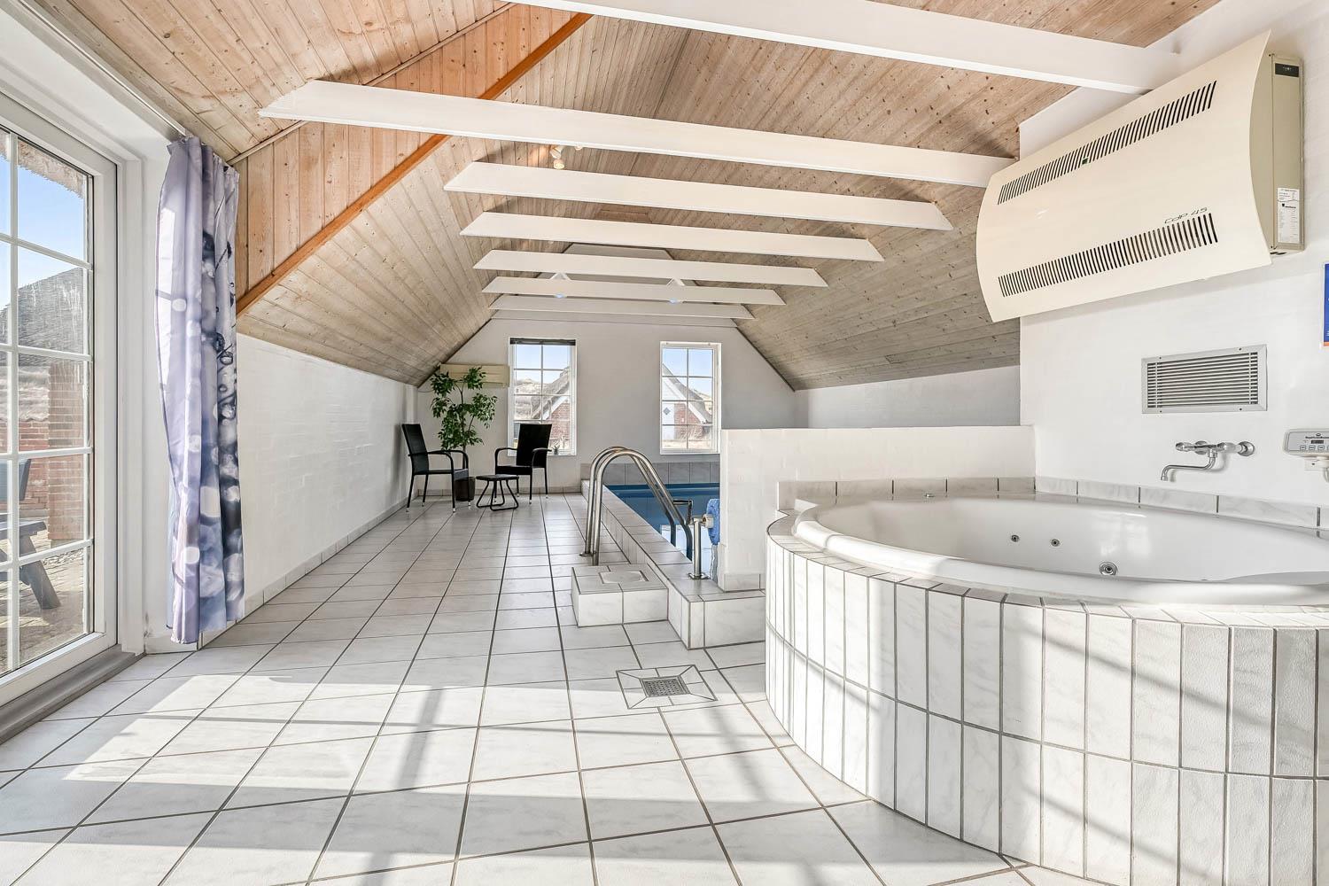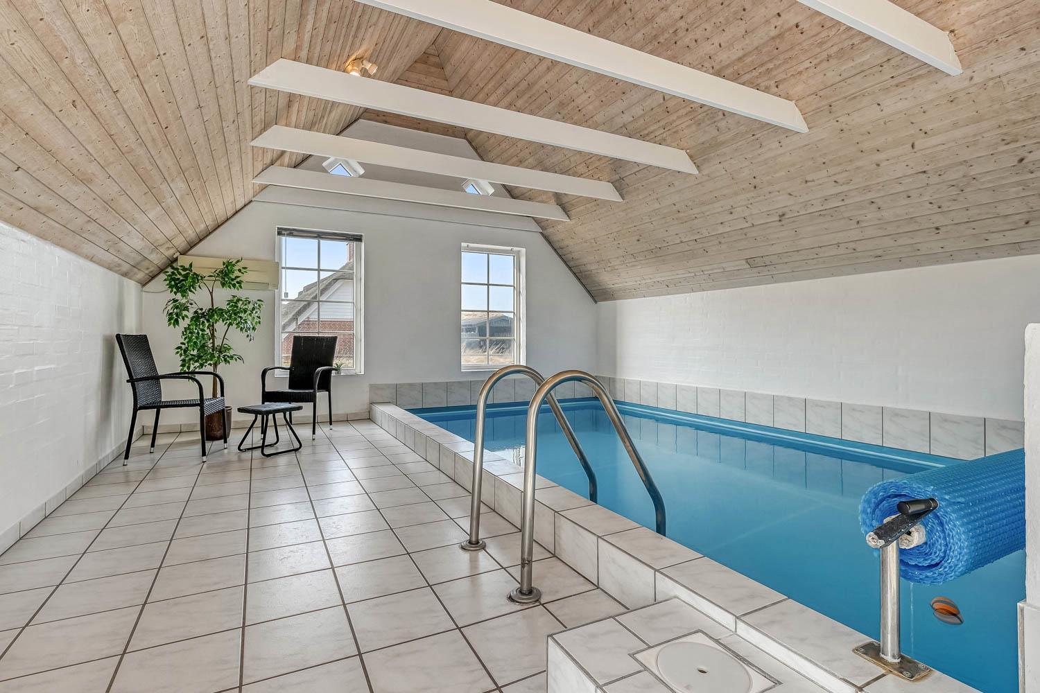 Das Haus verfügt über 4 Schlafzimmer mit Doppelbetten (DB) und Einzelbetten (EB): 1 DB + 1 DB + 2 EB + 2 EB. Kinderbett. Die 2 Badezimmer sind mit Dusche und Fußbodenheizung ausgestattet. Eines der Badezimmer befindet sich im Poolraum, wo auch ein großer neuer Whirlpool zur Verfügung steht. Hier gibt es einen 3 x 6 m großen und 1,50 m tiefen Pool mit Unterwasserbeleuchtung und Gegenstromanlage, der Pool wird mit die Wärmepumpe aufgeheisst und es hilft dabei die Nebenkosten Rechnung niedriger zu machen. Im Pool schwimmen Sie entspannt Ihre Runden um sich anschließend in der Sauna aufzuwärmen. Ab 2026 gibt es eine Luft zu Luft Wärmepumpe im Haus. 2 Hunde sind erlaubt. Nichtraucherhaus. Wenn Sie ein Elektroauto oder einen Plug-in-Hybrid haben, verfügt das Haus über eine Ladegerät, Type 2 die bis zu 11 kWh aufladen kannKaution Wintersaison EUR 400 und Sommersaison EUR 300.