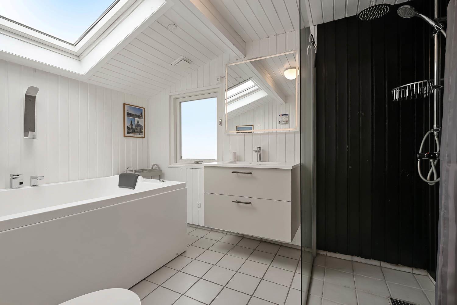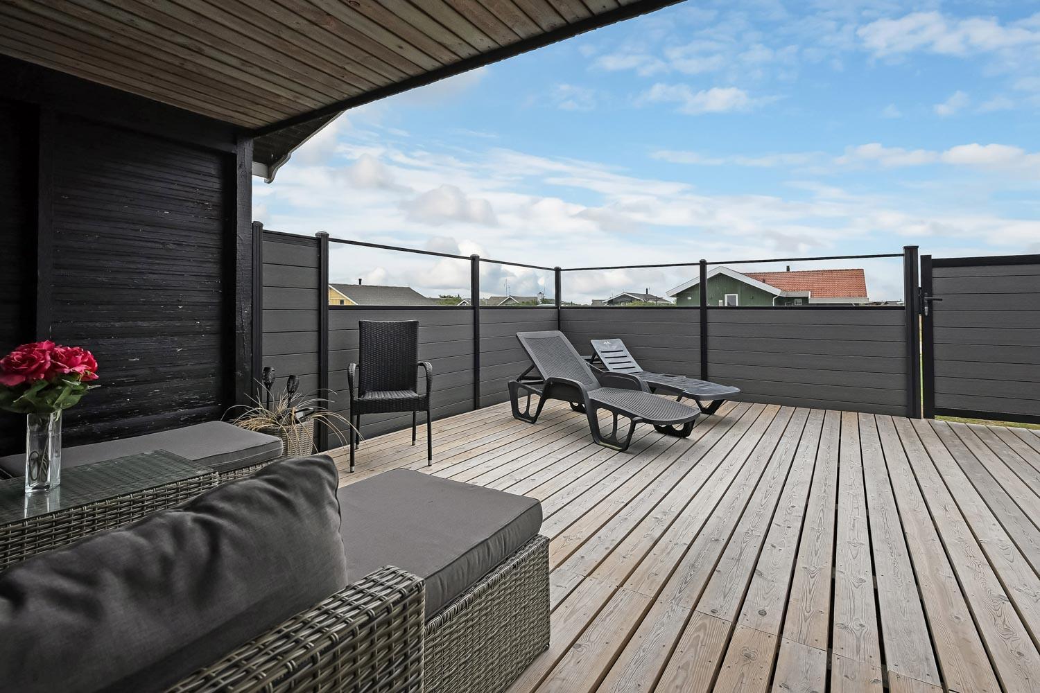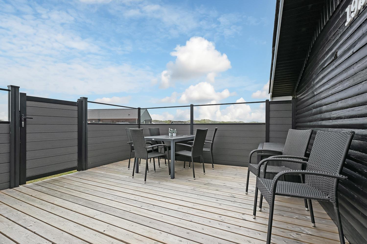 Dieses schöne Ferienhaus liegt auf einem 768 m² großen Grundstück in Gehweite zur Nordsee und bietet eine fantastische Holzterrasse, die teilweise überdacht und eingezäunt ist. Hier stehen Gartenmöbel, Sonnenliegen und ein Grill zur Verfügung, wobei die Sonnenliegen und der Grill nach Bedarf verschoben werden können. Es gibt reichlich Gelegenheit, sich zu sonnen, eine Tasse Kaffee zu genießen oder zu grillen, wenn das Wetter es zulässt. In Vejlby Klit, wo das Haus liegt, und in der Umgebung gibt es viele Möglichkeiten, Zeit zu verbringen. Man kann gemeinsam am Strand spazieren gehen, der nur wenige hundert Meter vom Haus entfernt ist, Steine und Muscheln sammeln, Sandburgen bauen, Drachen steigen lassen, Rad fahren, angeln und vieles mehr. Nicht weit von Vejlby Klit erreicht man mit dem Auto schnell die Hafenstädte Lemvig und Thyborøn, wo man ein Eis im Hafen genießen, frischen Fisch kaufen oder in den lokalen Geschäften einkaufen kann. Das Ferienhaus ist ideal für eine kleine Familie oder Paare, die die Nordseeluft genießen und eine Pause vom Alltag machen möchten.