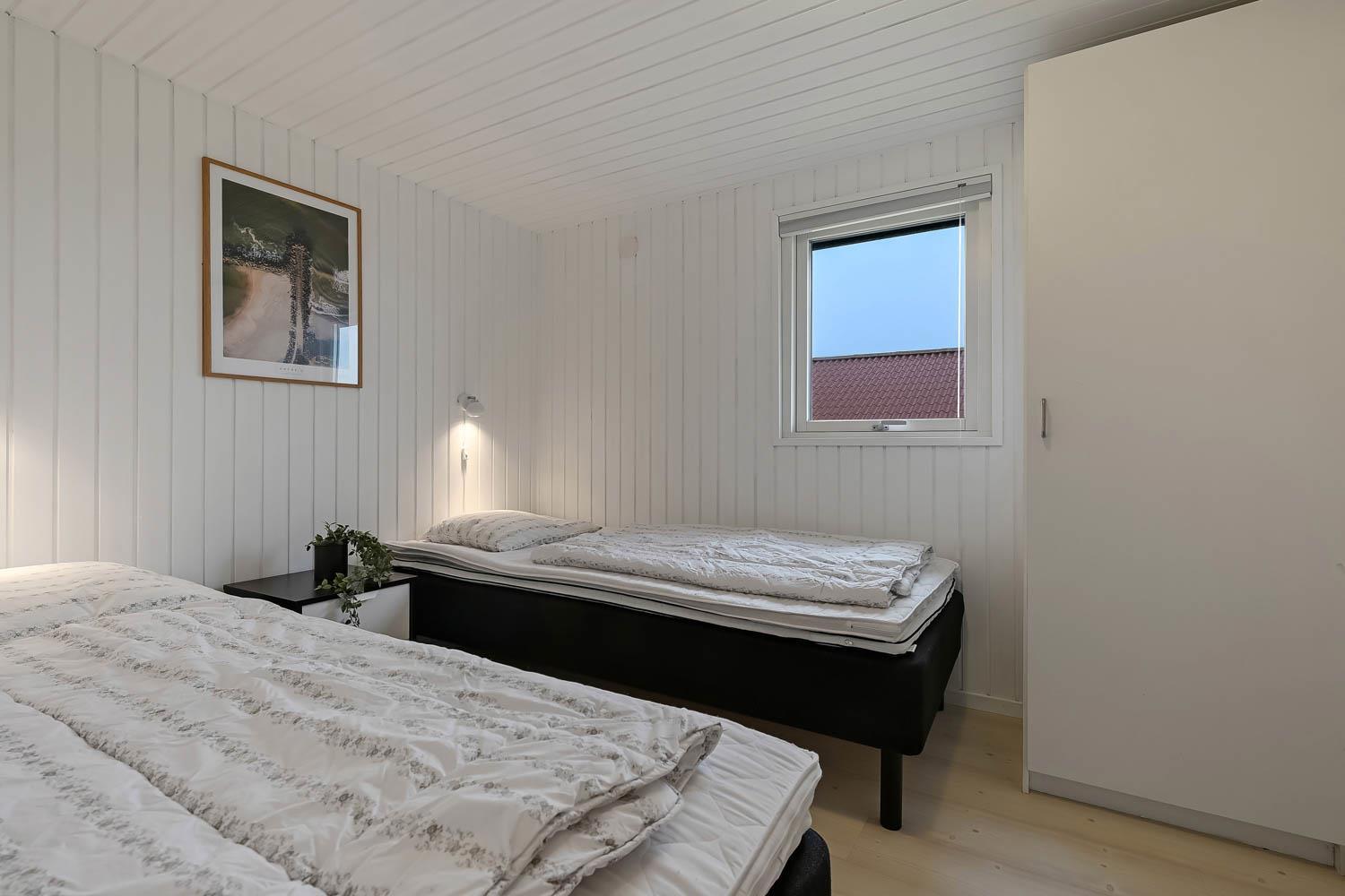 Schönes Holzferienhaus von 63 m² aus dem Jahr 1994, das seitdem laufend renoviert wurde. Das größte Zimmer des Hauses ist eine offene Küche und ein Wohnzimmer mit Paketboden aus 2025. Das Wohnzimmer ist gemütlich mit Ecksofa, TV mit dänischen und deutschen Kanälen, und Möglichkeit zum Streamen über Chromecast auf eigene Streamingdienste. Einem Essbereich eingerichtet, von dem man durch das große Fenster auf die Terrasse blickt, was für einen guten Lichteinfall sorgt. Im Wohnzimmer gibt es auch einen Kaminofen, der zur energieeffizienten Beheizung des Hauses beiträgt. Die offene Küchenecke ist mit dem notwendigen Küchenzubehör sowie einem Glaskeramikherd,eingebaute Bachofen, Dunstabzugshaube, Mikrowelle, Kühl-/Gefrierschrank und Geschirrspüler ausgestattet. Der Wohnraum lädt die ganze Familie zum Verweilen an einem Ort ein. Vom Wohnraum aus gelangt man in den Flur, von dem aus man in die 3 Schlafzimmer des Hauses (1B, 1DB, 1DB) und das Badezimmer kommt. Das Badezimmer ist mit Toilette, Waschbecken, Dusche, Whirlpool, und Fliesenboden mit Fußbodenheizung ausgestattet. Nichtraucher-Haus. Maximal 1 Haustier erlaubt.