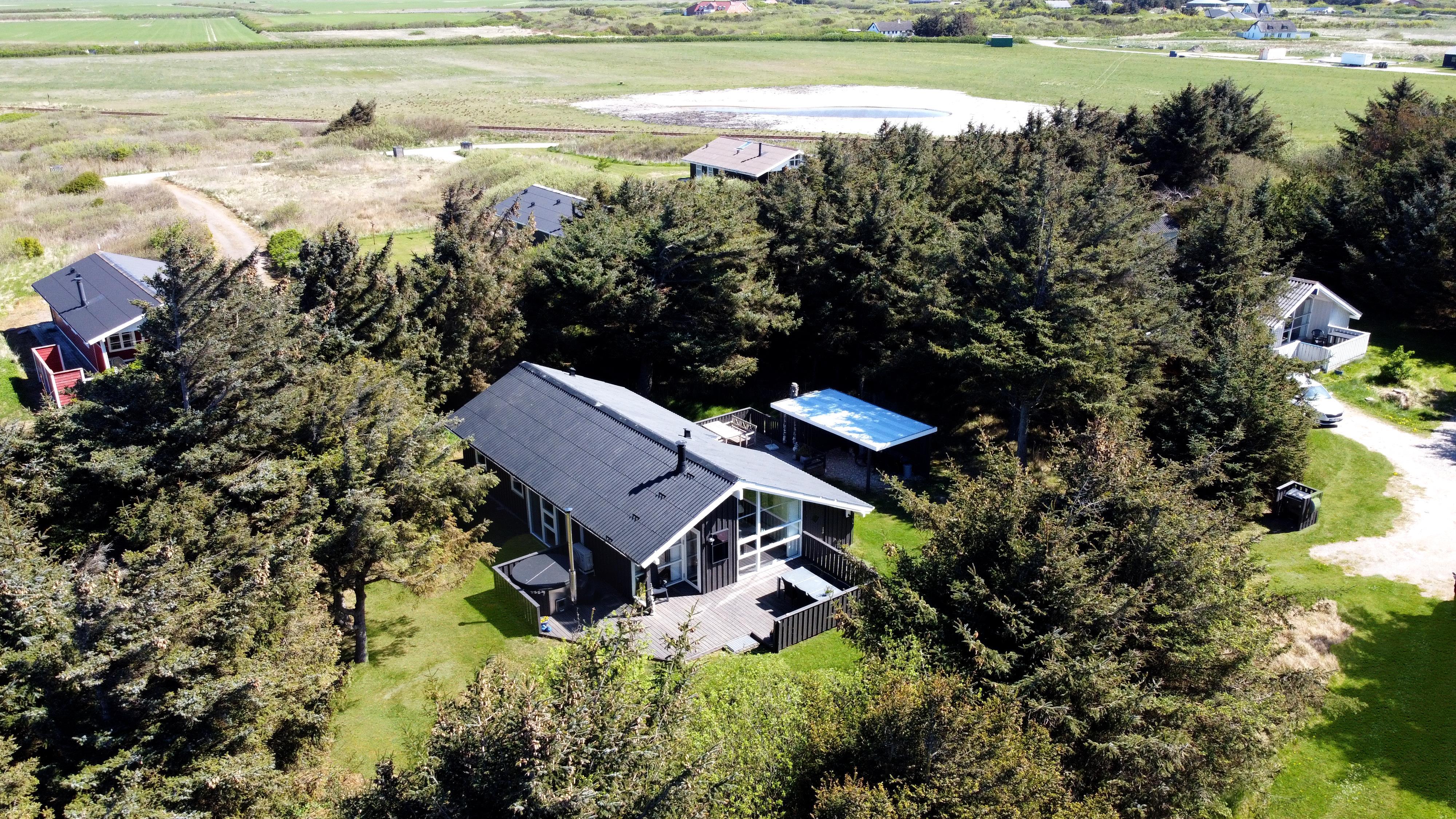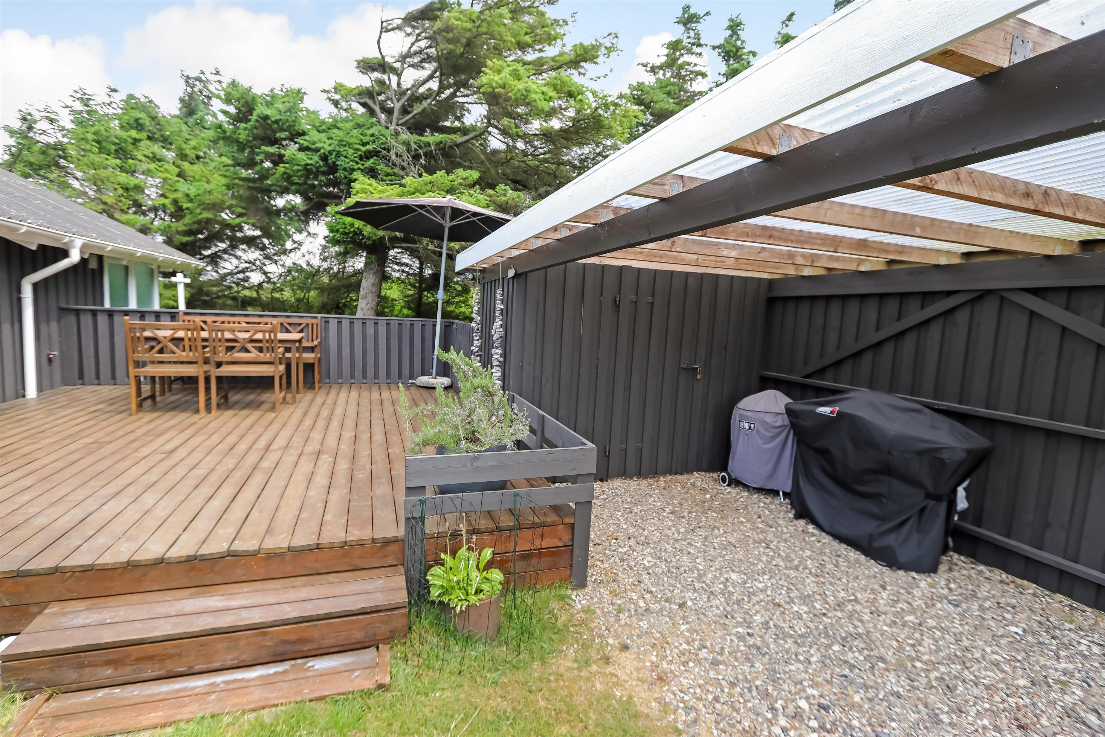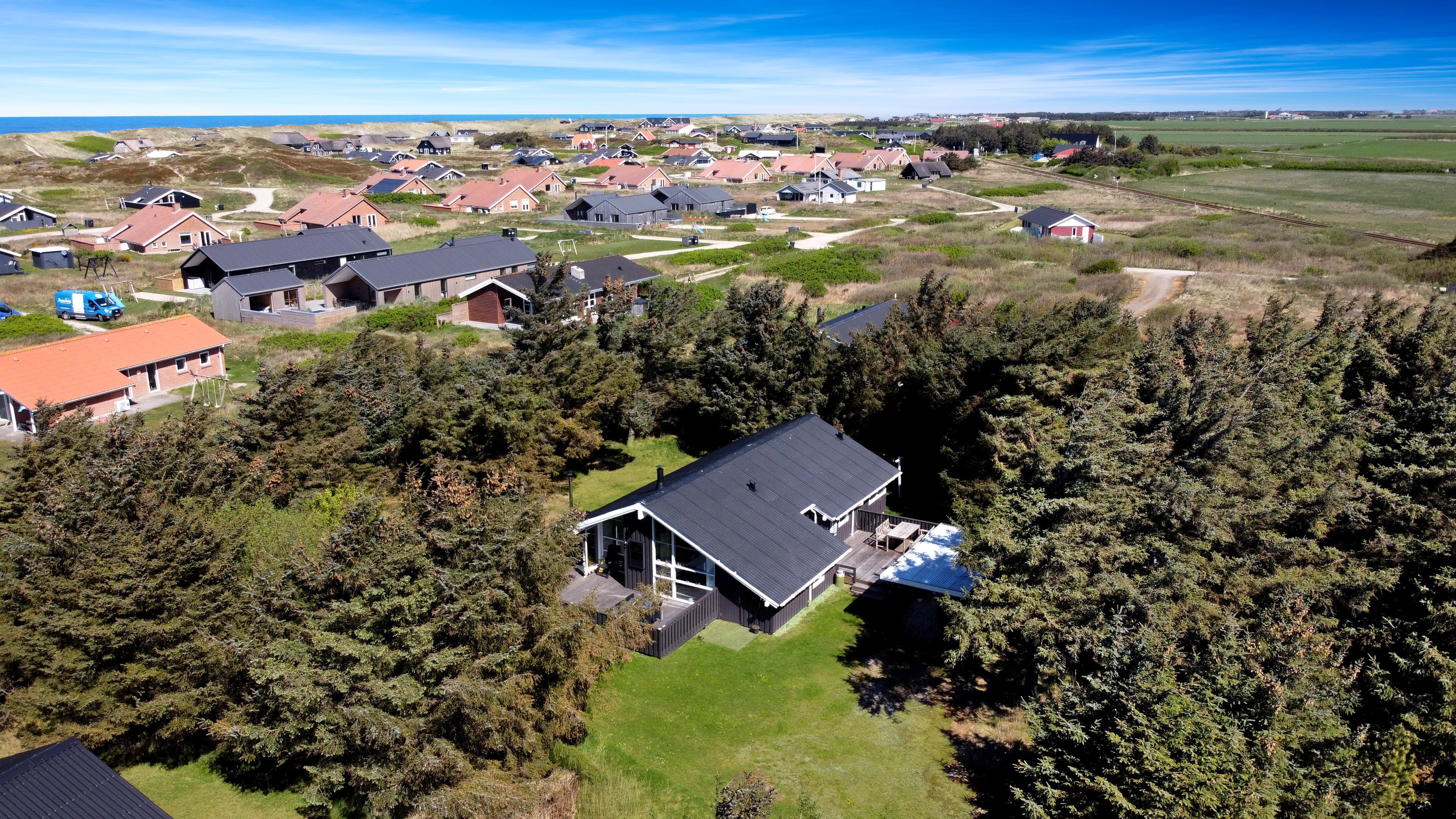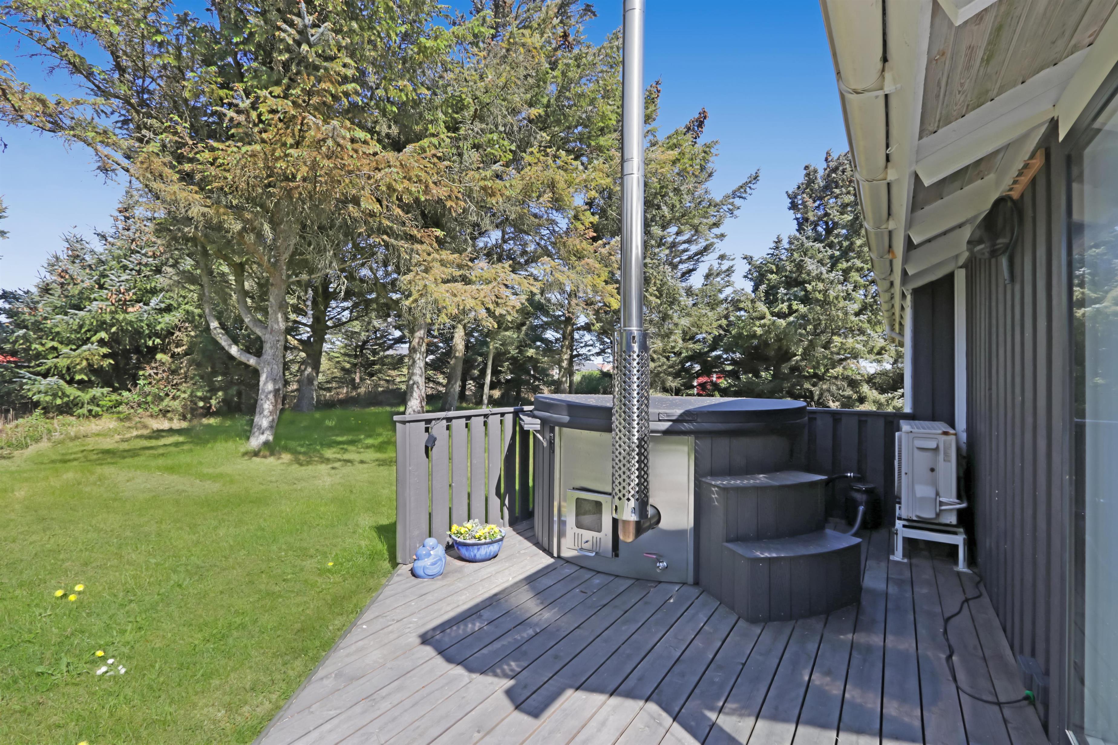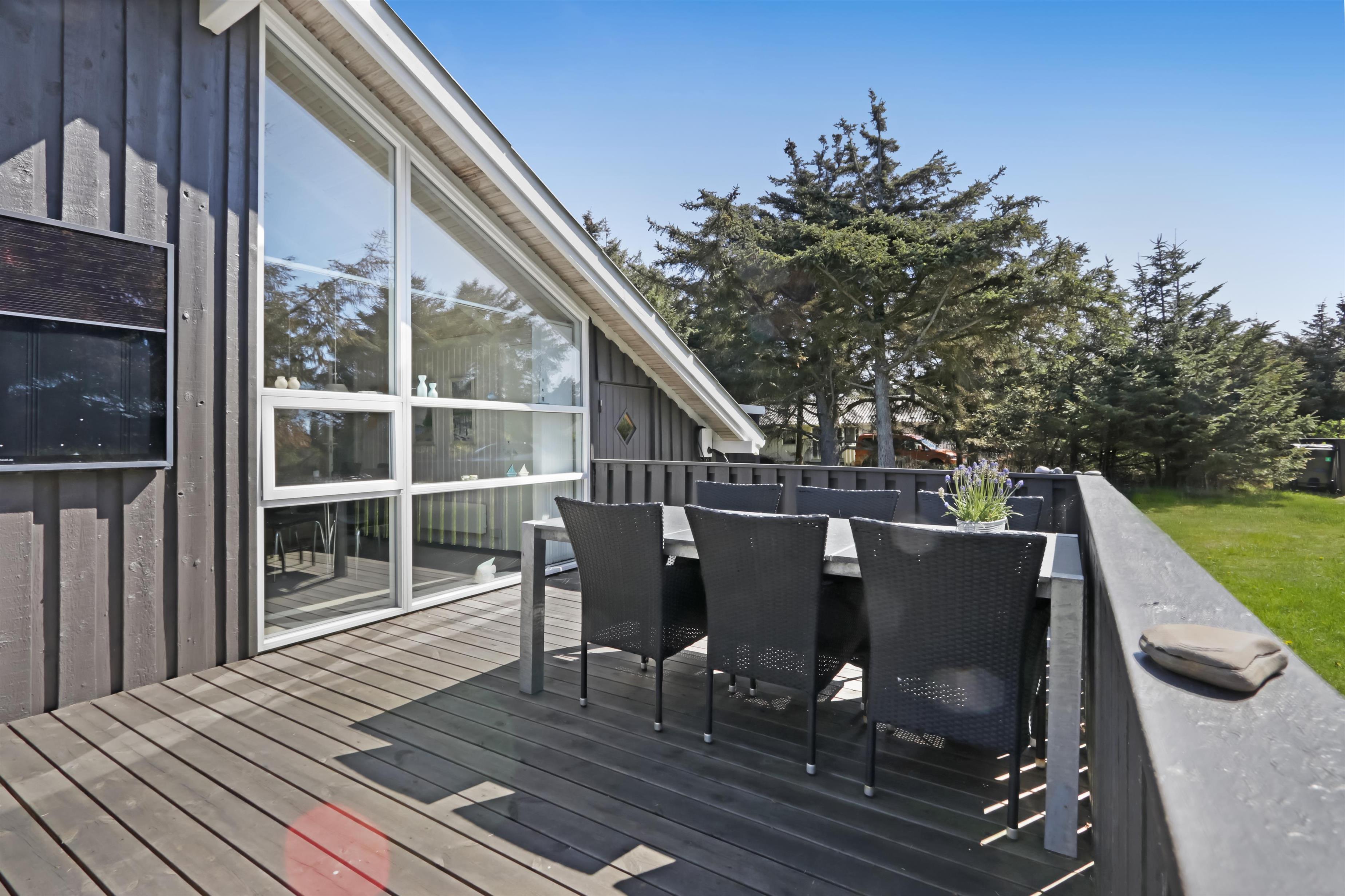 Das Haus liegt auf einem etwa 1.400 m² grossen, fantastischen Naturgrundstück bloss 250 m von der Nordsee entfernt. Es gibt einen Ausgang zu einer teilweise überdachten Holzterrassenanlage mit Gartenmöbeln, Sonnenliegen, Weber-Gasgrill und Weber Kohlegrill, die Sie nach Bedarf umstellen können - in die Sonne oder in den Schatten - Wunderbare Möglichkeit für “Grillenthusiasten“. Parken Sie das Auto im Carport und unmittelbar danach werden Sie das parkähnliche Gelände mit vielen schönen Bäumen bemerken, was bedeutet, dass das Haus und die Terrassen immer geschützt sind. In Vejlby Klit und Umgebung gibt es wirklich gute Möglichkeiten zum Radfahren, Wandern oder Laufen und nur etwa 250 m vom Haus entfernt liegt die sprudelnde Nordsee, die jeden Tag ein neues malerisches Erlebnis bietet. In der Saison können Sie nur ca. 10 Min. vom Haus entfernt Frühstück oder Lebensmittel einkaufen, oder vielleicht die Familie zum Essen einladen. Egal, ob Sie einen aktiven oder total entspannten Urlaub wünschen,, dieses schöne Ferienhaus bietet den perfekten Rahmen in Bezug auf Haus, Lage und Umgebung.