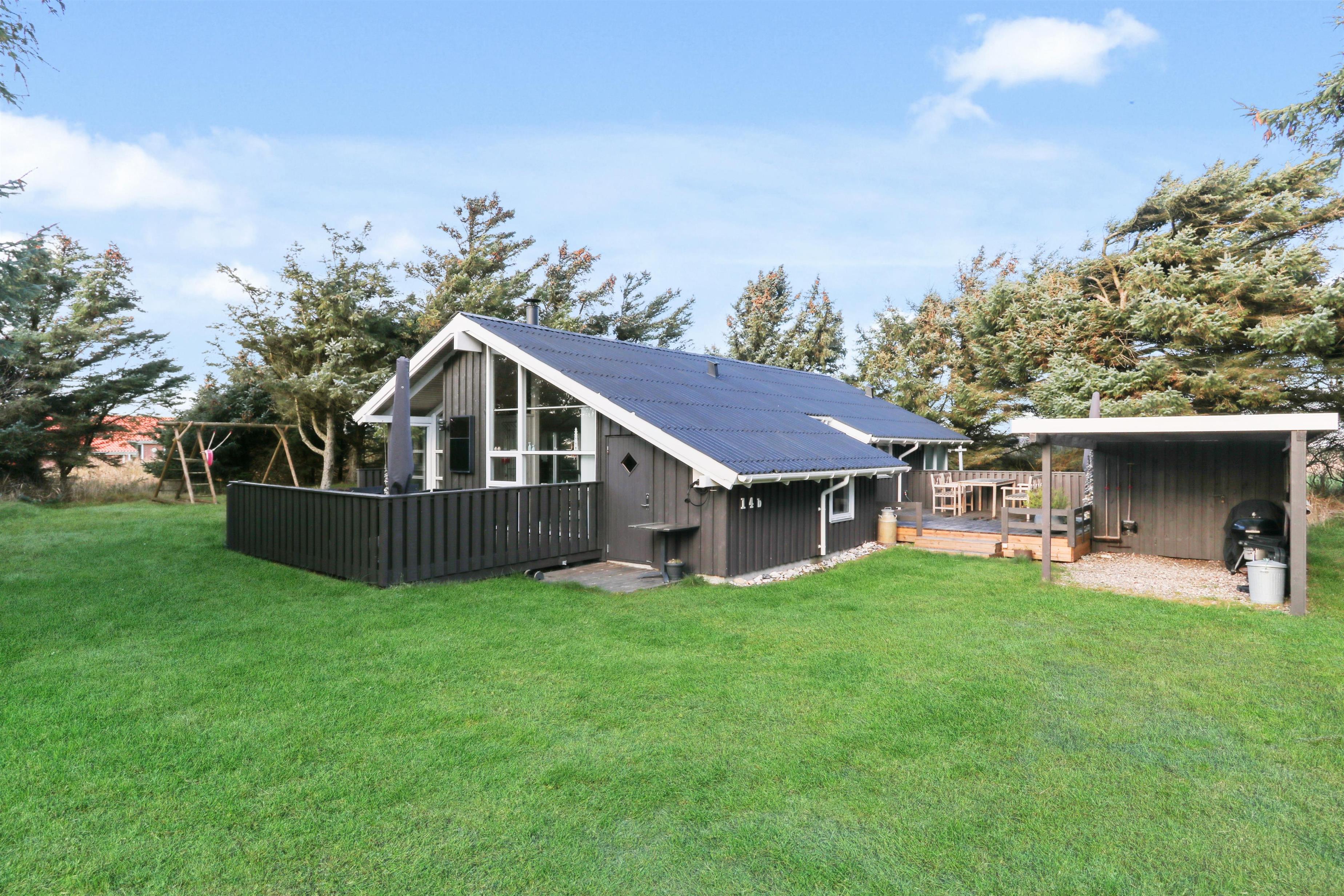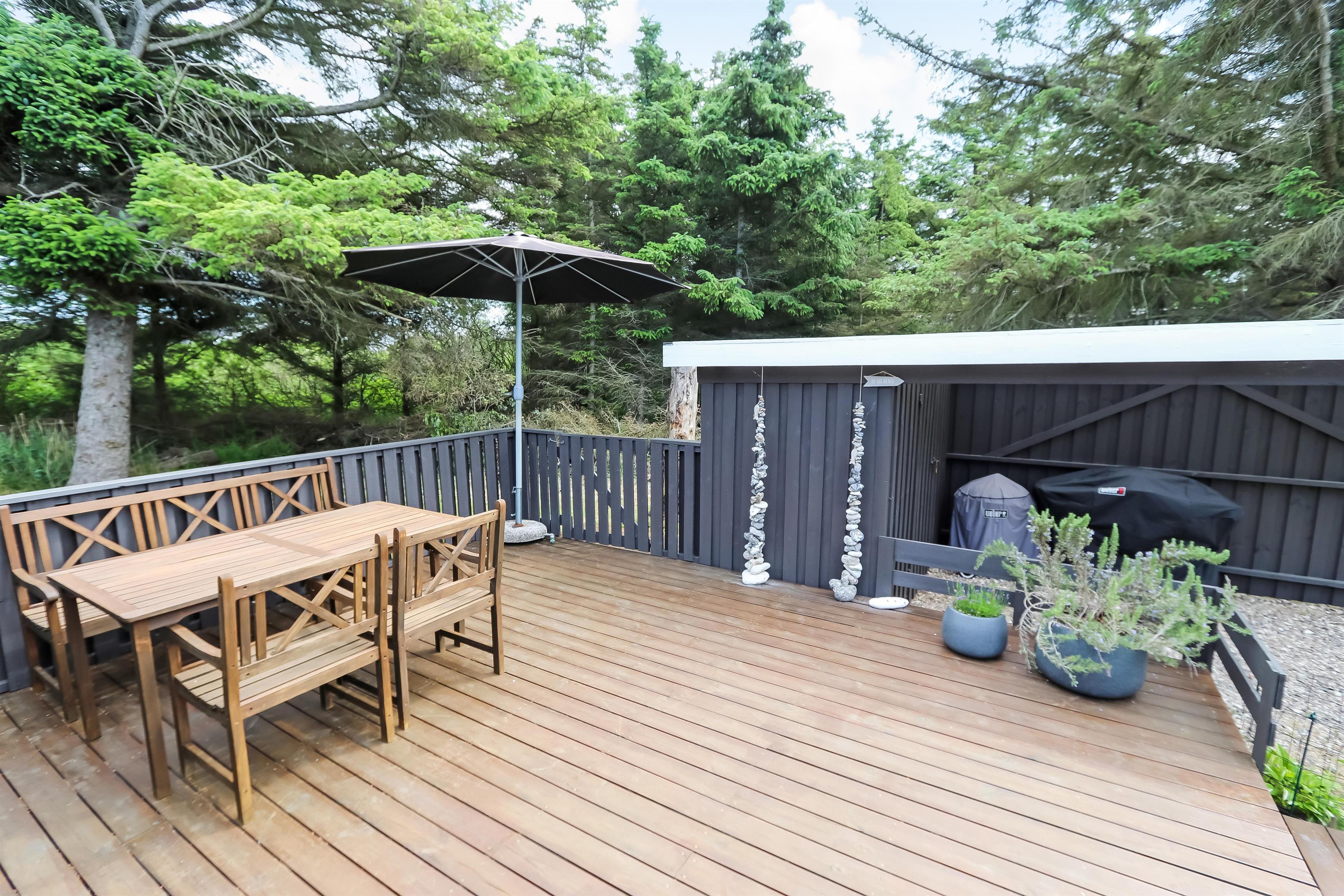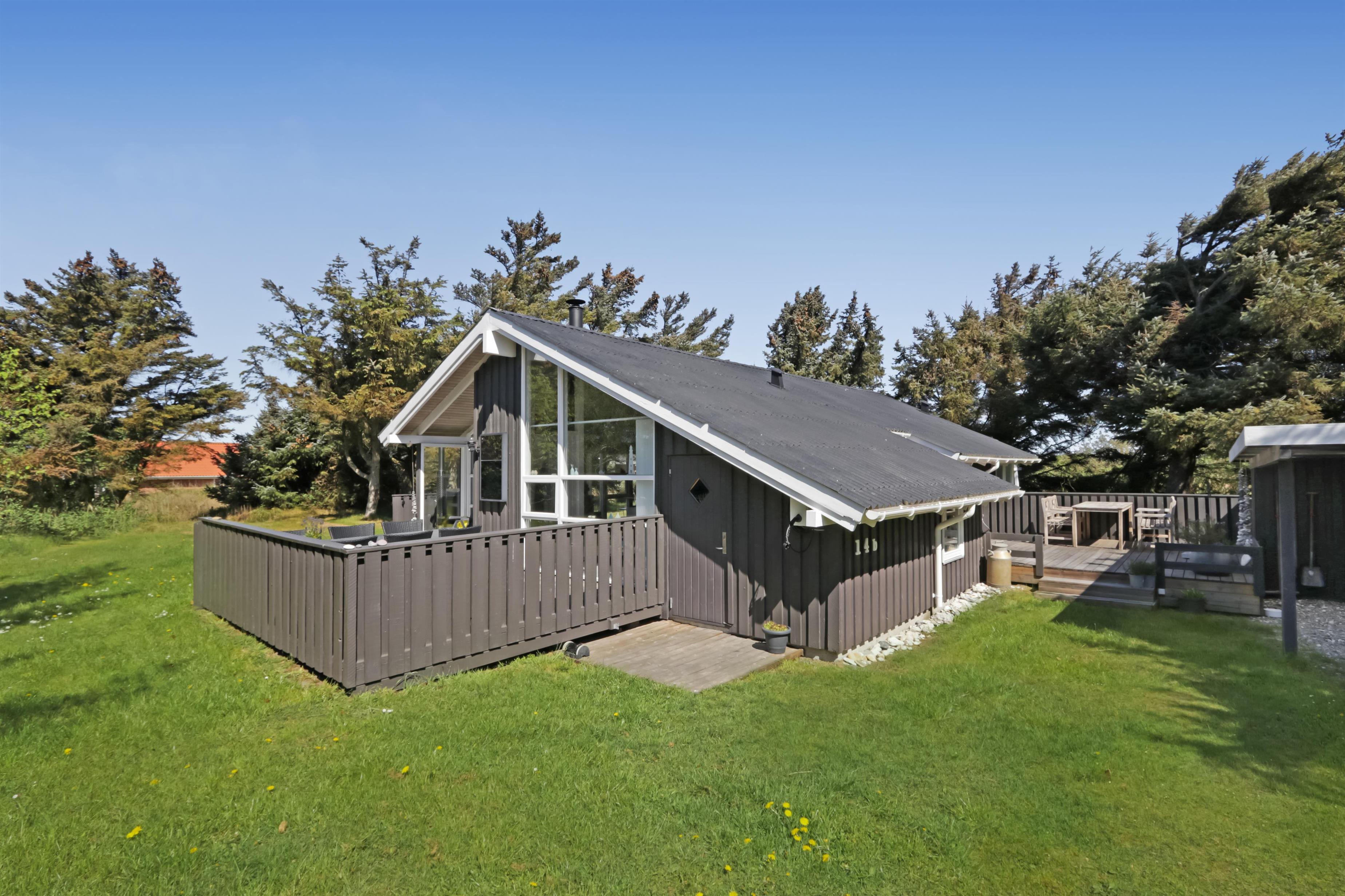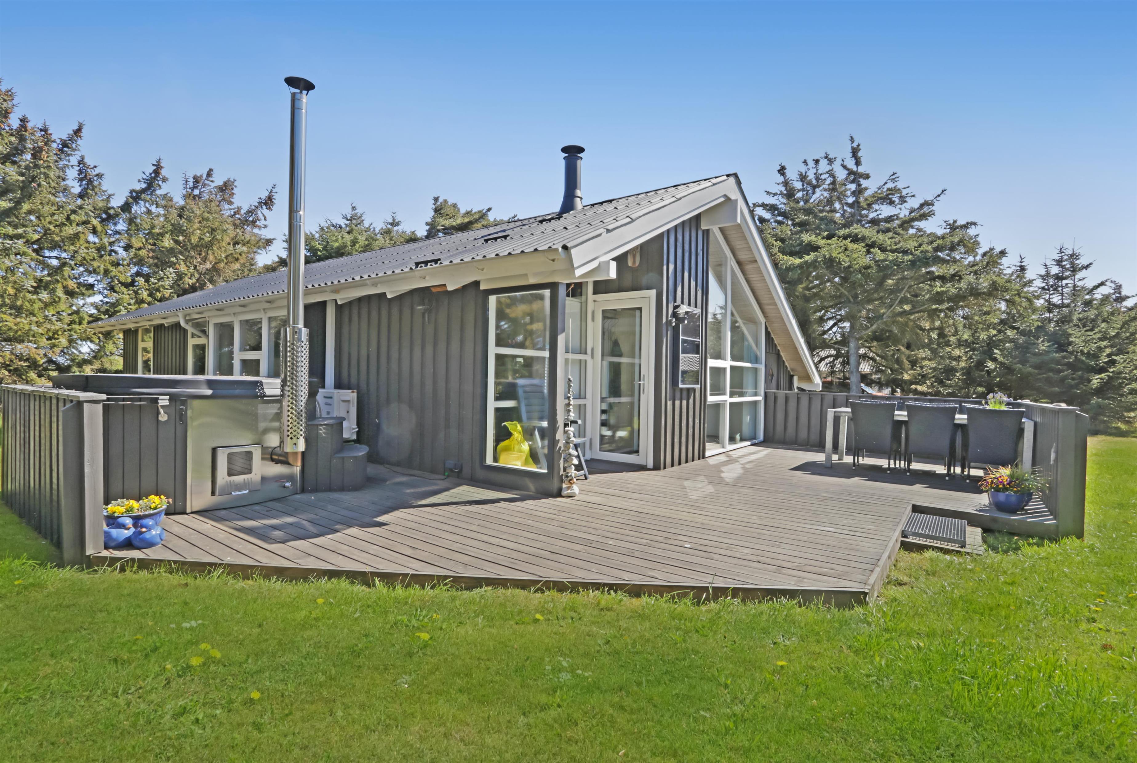 Das Haus liegt auf einem etwa 1.400 m² grossen, fantastischen Naturgrundstück bloss 250 m von der Nordsee entfernt. Es gibt einen Ausgang zu einer teilweise überdachten Holzterrassenanlage mit Gartenmöbeln, Sonnenliegen, Weber-Gasgrill und Weber Kohlegrill, die Sie nach Bedarf umstellen können - in die Sonne oder in den Schatten - Wunderbare Möglichkeit für “Grillenthusiasten“. Parken Sie das Auto im Carport und unmittelbar danach werden Sie das parkähnliche Gelände mit vielen schönen Bäumen bemerken, was bedeutet, dass das Haus und die Terrassen immer geschützt sind. In Vejlby Klit und Umgebung gibt es wirklich gute Möglichkeiten zum Radfahren, Wandern oder Laufen und nur etwa 250 m vom Haus entfernt liegt die sprudelnde Nordsee, die jeden Tag ein neues malerisches Erlebnis bietet. In der Saison können Sie nur ca. 10 Min. vom Haus entfernt Frühstück oder Lebensmittel einkaufen, oder vielleicht die Familie zum Essen einladen. Egal, ob Sie einen aktiven oder total entspannten Urlaub wünschen,, dieses schöne Ferienhaus bietet den perfekten Rahmen in Bezug auf Haus, Lage und Umgebung.