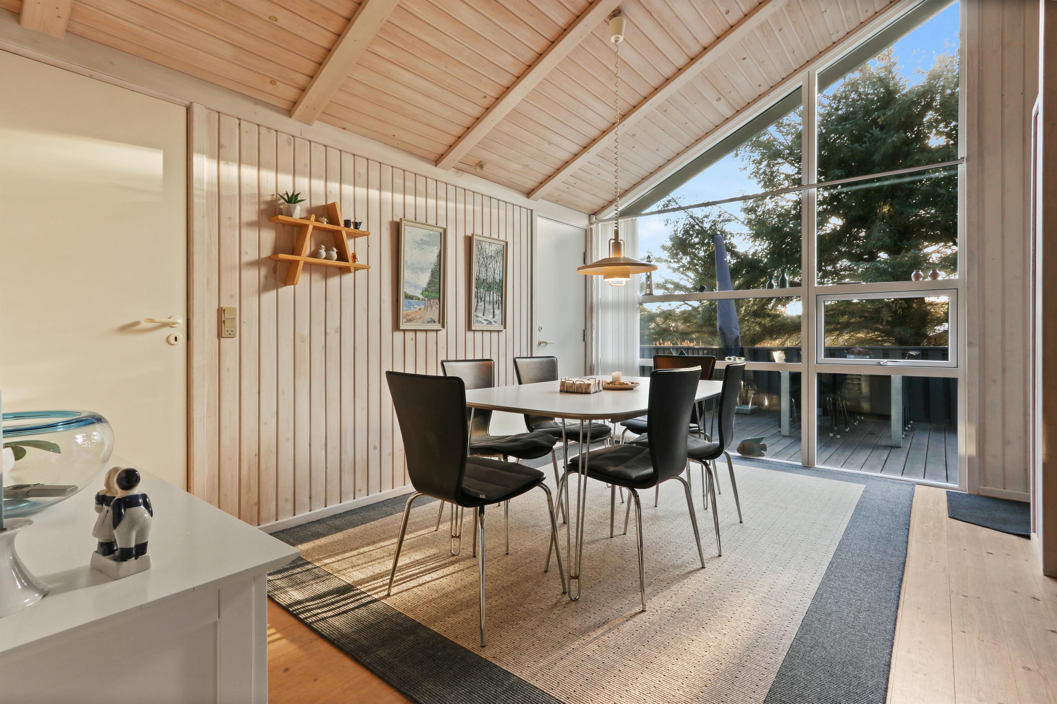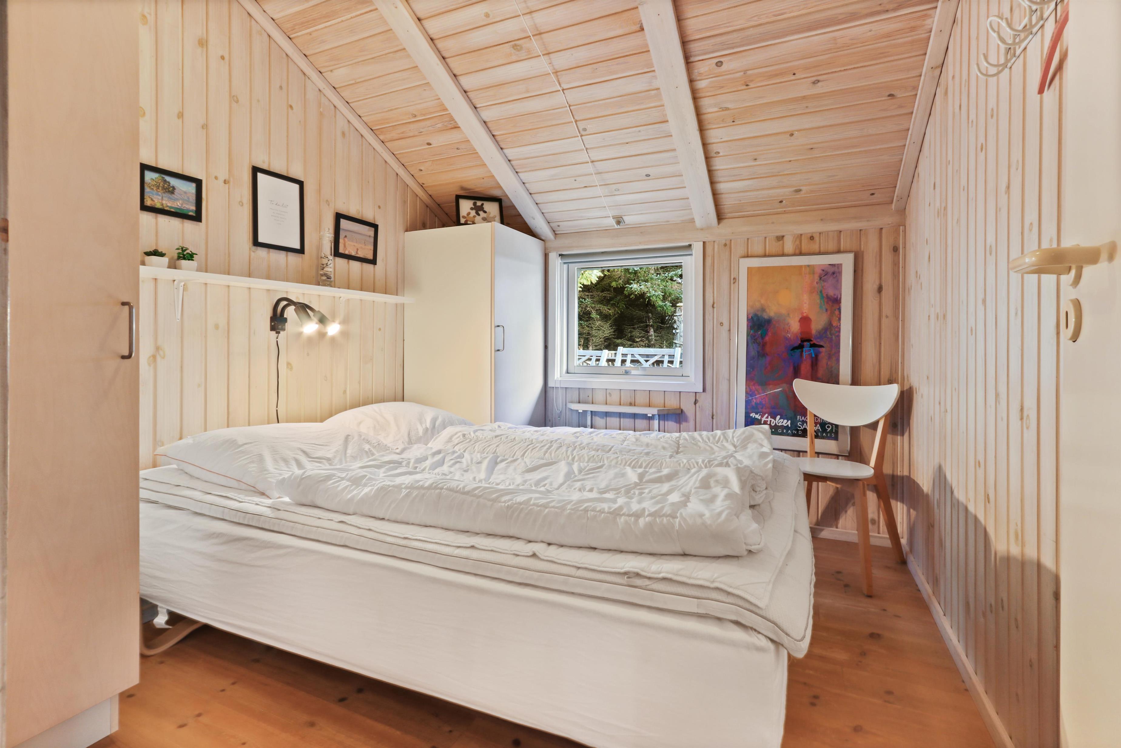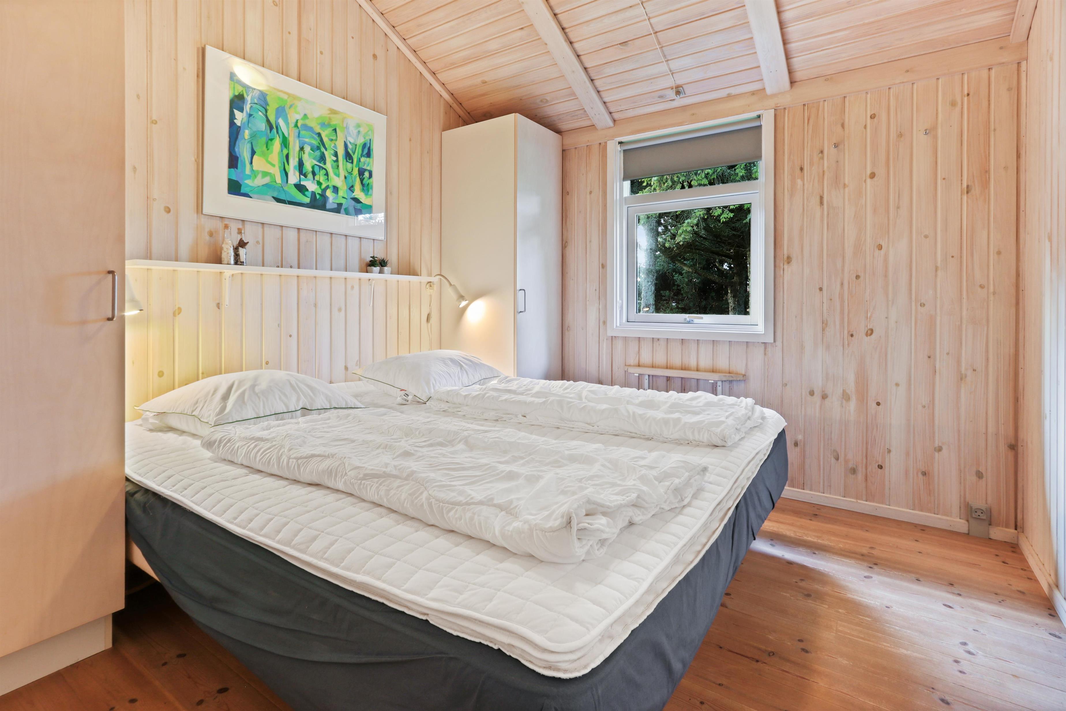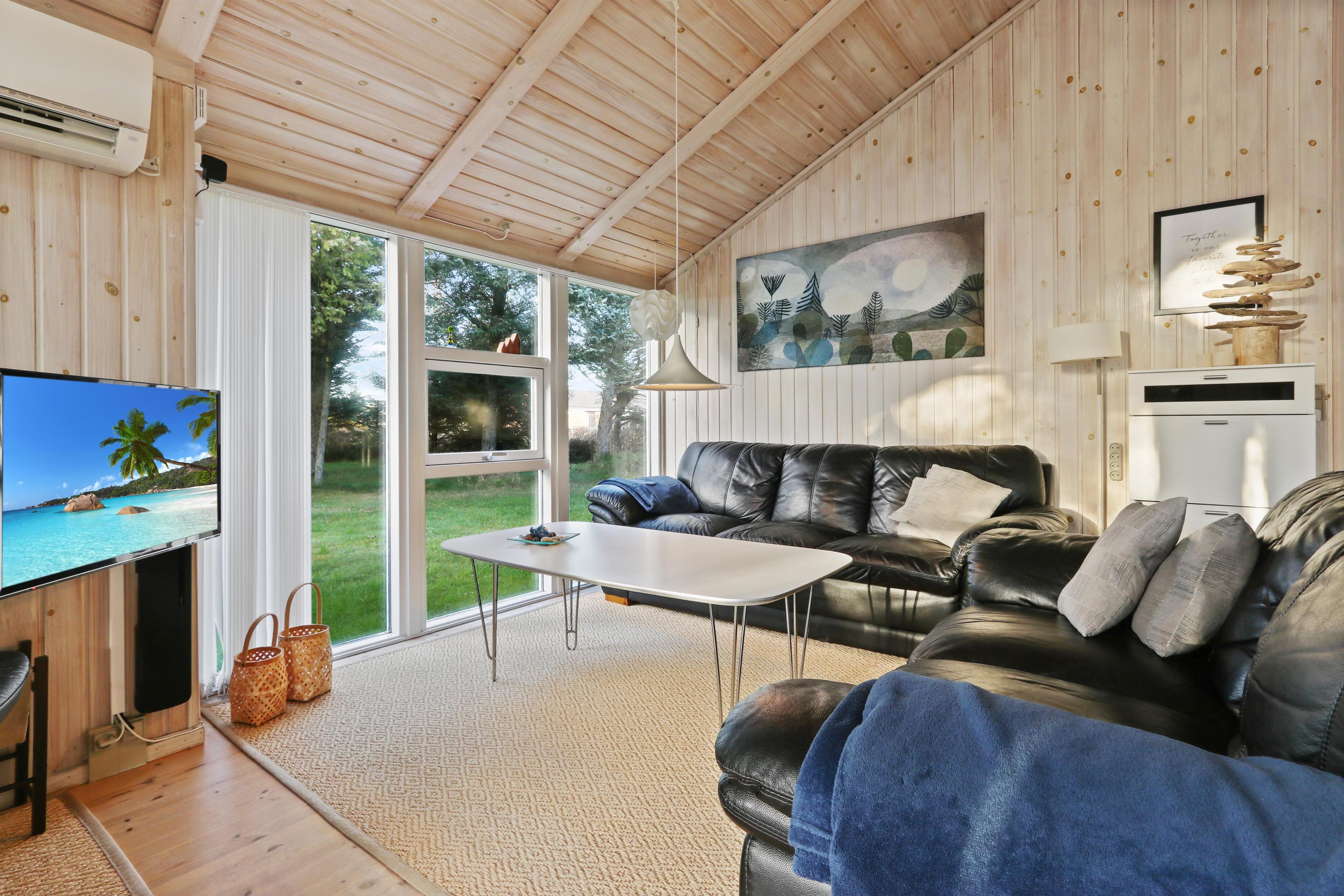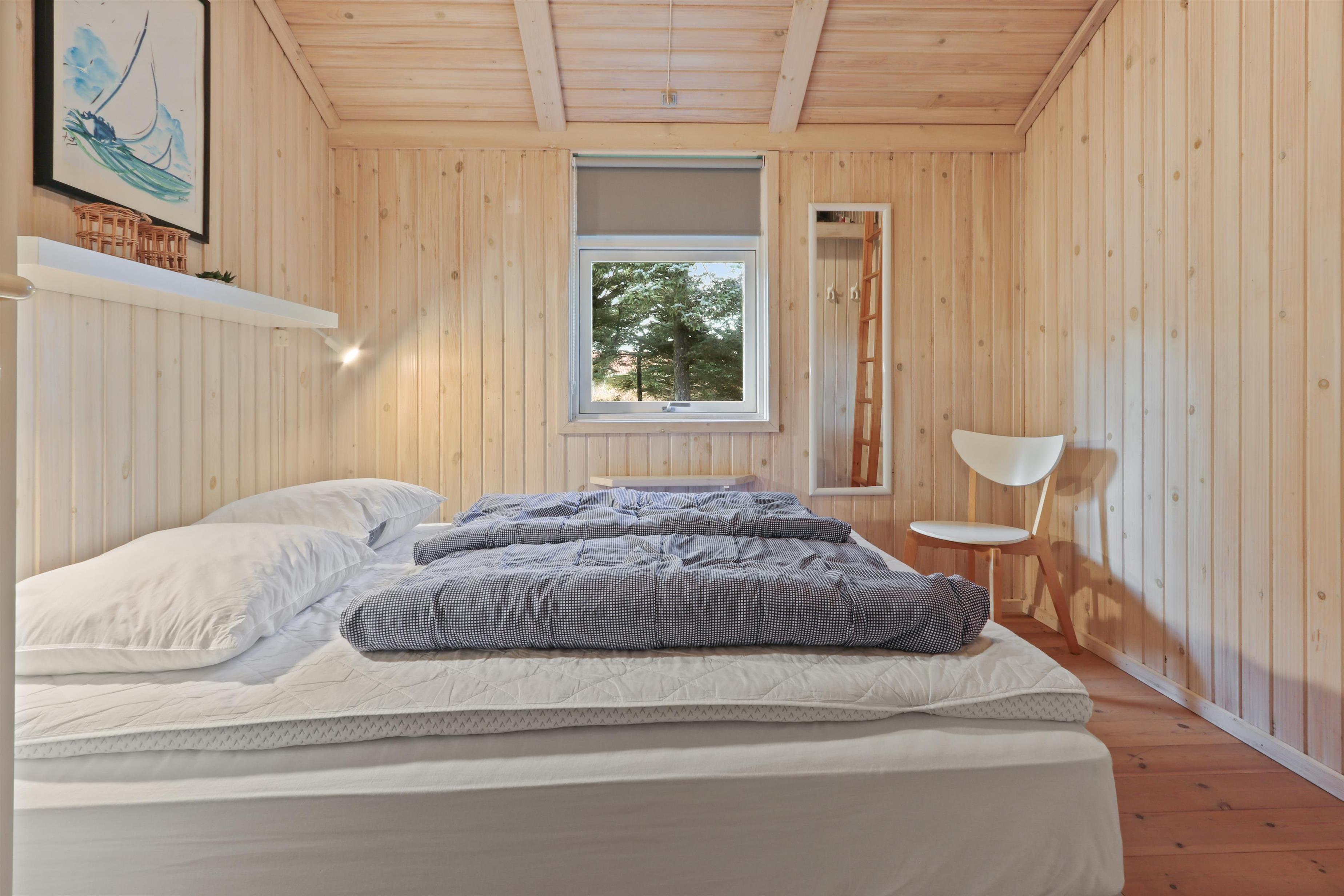 96 m² grosses, geräumiges, komfortabel eingerichtetes Holzhaus. Wohnraum mit offener Decke und sehr gemütlich und persönlich eingerichtet. Der Wohnraum ist aufgeteilt in Wohn- und Essraum, die mit der Küche kombiniert sind. Der Wohnraum ist mit Ledermöbeln, Esstisch und TV mit dänischen und deutschen Programmen eingerichtet. Entspannen Sie sich vor dem Kaminofen, der zusammen mit der Warmepumpe für eine reduzierte Stromrechnung sorgt. Praktische Holzböden im ganzem Haus. 4 gute Schlafräume: 1DB + 1DB + 1DB + 2B aber max 6 Personen darf das Haus bewohnen. Die Küchenecke mit allem an Service/Kochgeschirr, Herd mit Cerankochfeld, eingebautem Ofen, Abzugshaube, Geschirrspüler und Kühlschrank mit Gefrierfach ausgestattet. Extra Aufbewahrungsraum mit z.B. Mikrowelle. Das Haus hat 2 Badezimmer, beide mit Fliesenboden und Fussbodenheizung, Toilette und Waschbecken. Eines von den Bädern ist mit Whirlpool und direktem Zugang zur Sauna, Dusche und kombinierter Wachmaschine/Trockner. Nichtraucher-Haus. Haustiere sind nicht erlaubt. Wenn Sie ein Elektroauto oder einen Plug-in-Hybrid haben, verfügt das Haus über eine Ladebox.