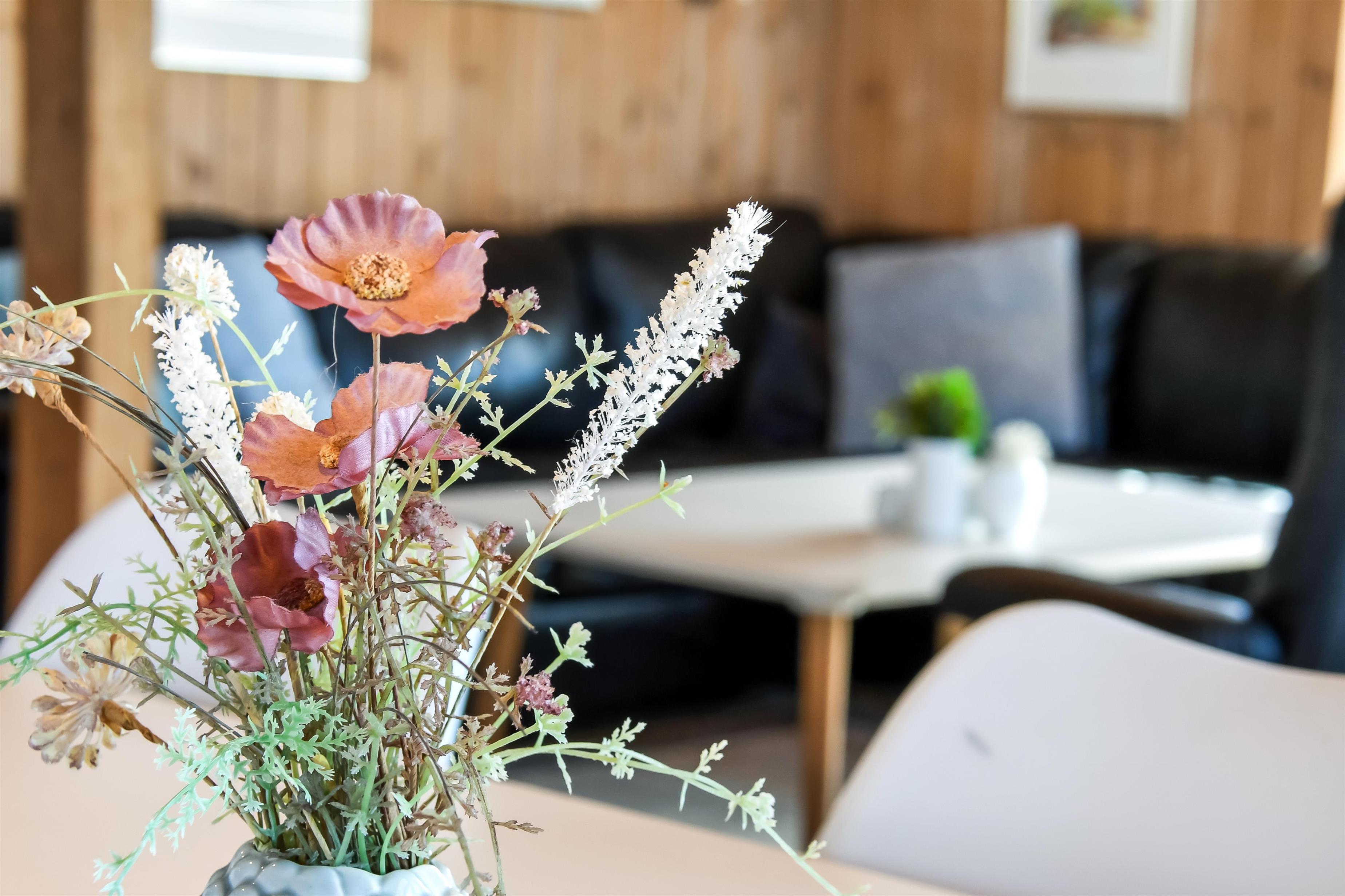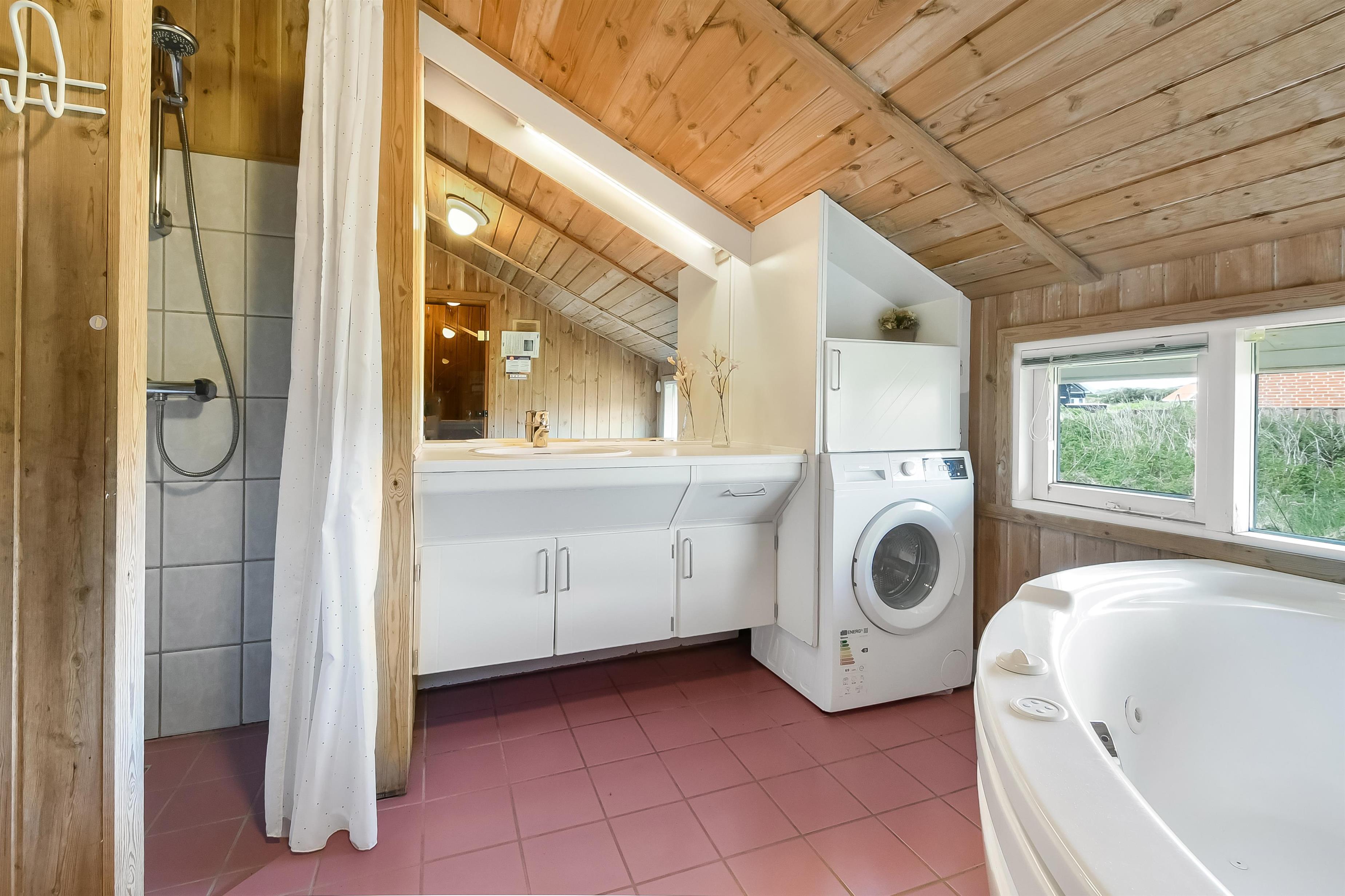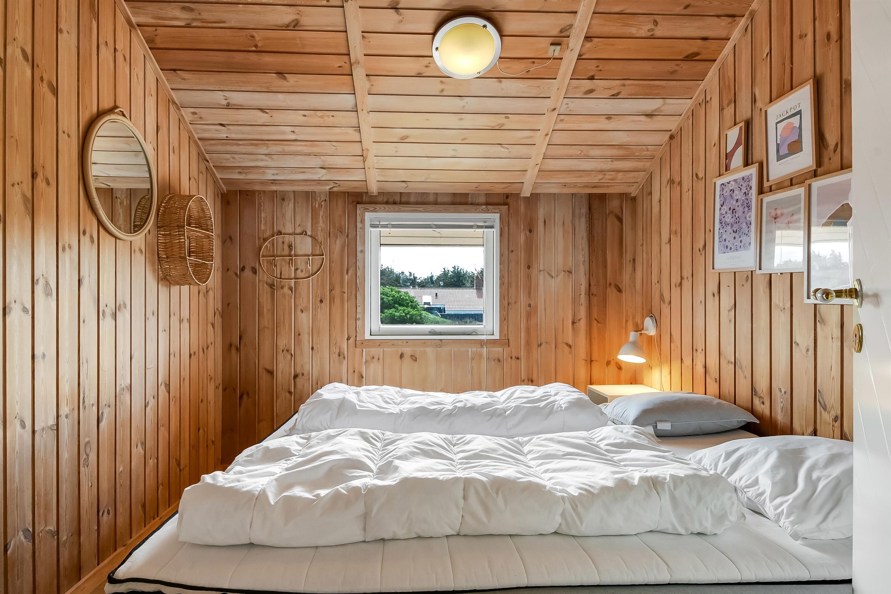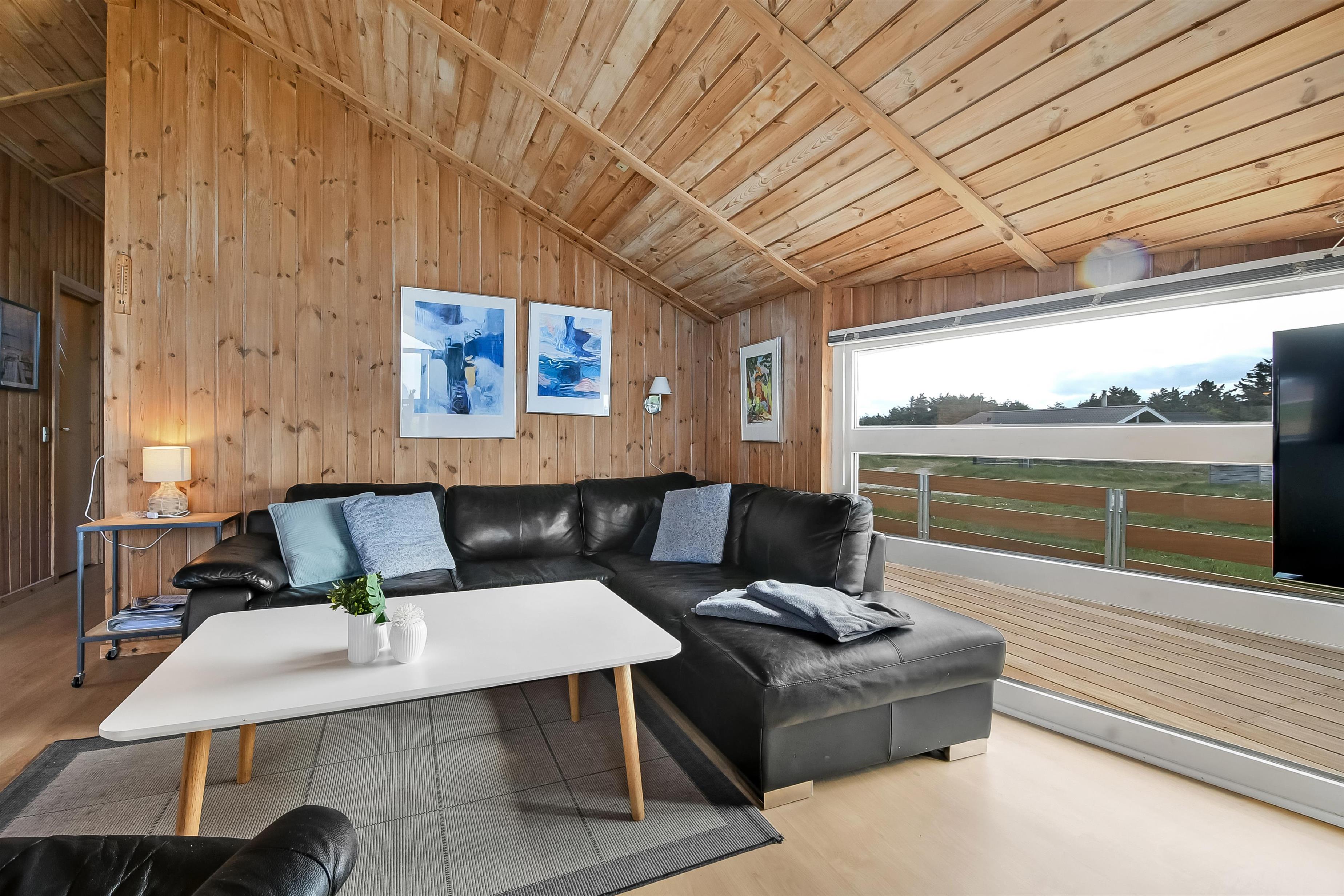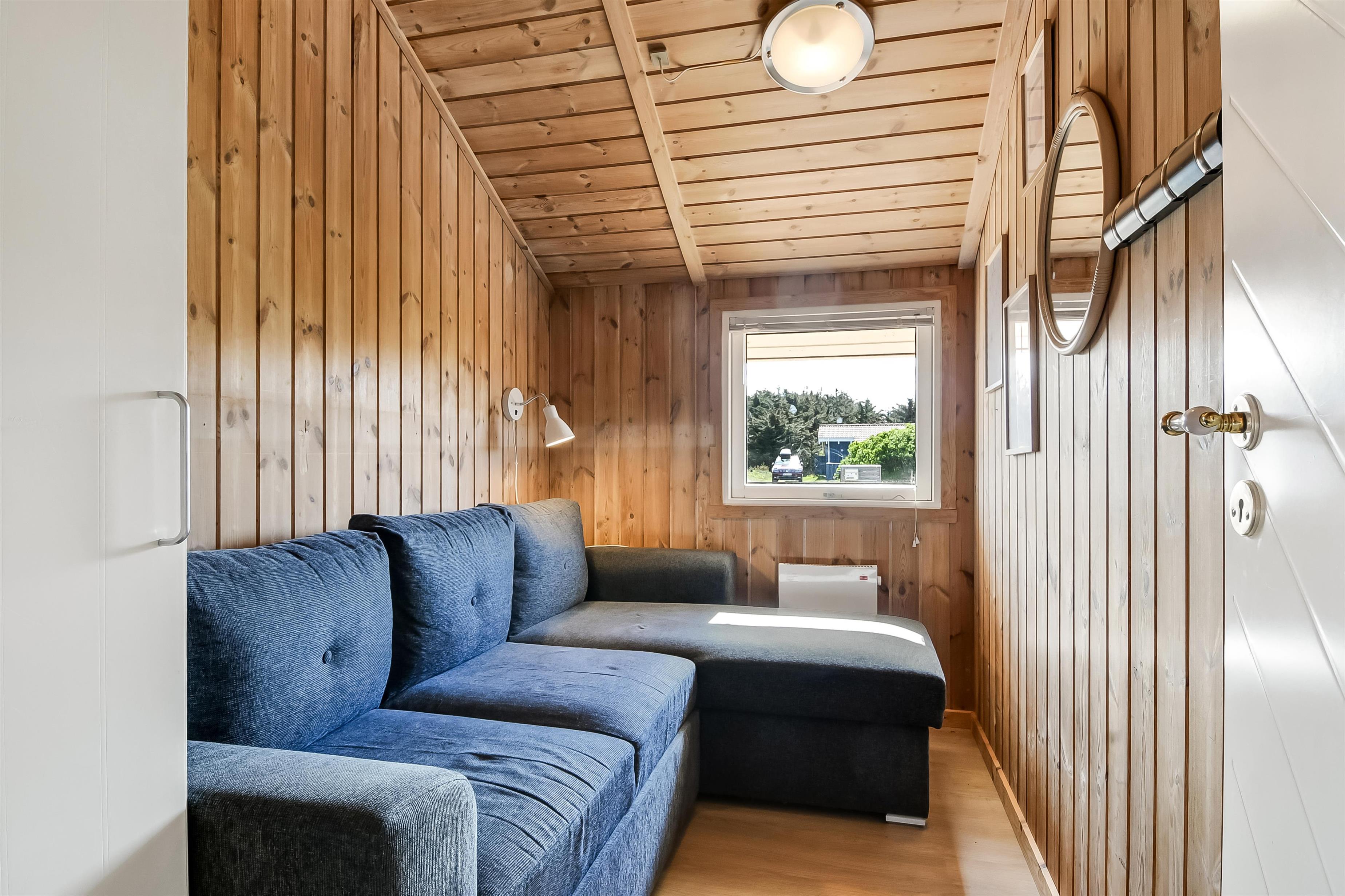 Die Küche und der Wohnraum sind kombiniert und die Wände im Haus sind mit Holz verkleidet, damit Sie das Gefül der Natur im ganzen Haus bekommen. Die Küche ist mit Abzugshaube, Herd mit Cerankochfeld, eingebautem Ofen, Kühl-/Gefrierschrank, Mikrowelle und Geschirrspüler ausgestattet. Im Wohnraum gibt es eine Sofagruppe, Esstisch,Kaminofen der zusammen mit der Wärmepumpe für niedrige Nebenkosten sorgt. Die Unterhaltung können Sie vom DVD-Spieler, der Stereoanlage mit CD und dem Fernseher mit DR 1, TV2 und deutschen Programmen bekommen. Am Ende des Wohnraums befinden sich grössere Fensterbereiche, die den Blick auf die Umgebung gewährleisten. Es gibt auch einen Ausgang vom Wohnraum, der zur Südterrasse führt. Es gibt 2 Badezimmer im Haus, eines davon ist mit Dusche, Toilette und Waschbecken, das andere hat Dusche, Waschbecken, Toilette, Sauna und Whirlpool. Es gibt Fussbodenheizung und Waschmaschine. Im Haus gibt es 4 Schlafräume: 1DB + 1DB + 1DB +1Schlafcoucht. Ausserdem gibt es 2 Schlafmöglichkeiten im Alkoven im Wohnraum.