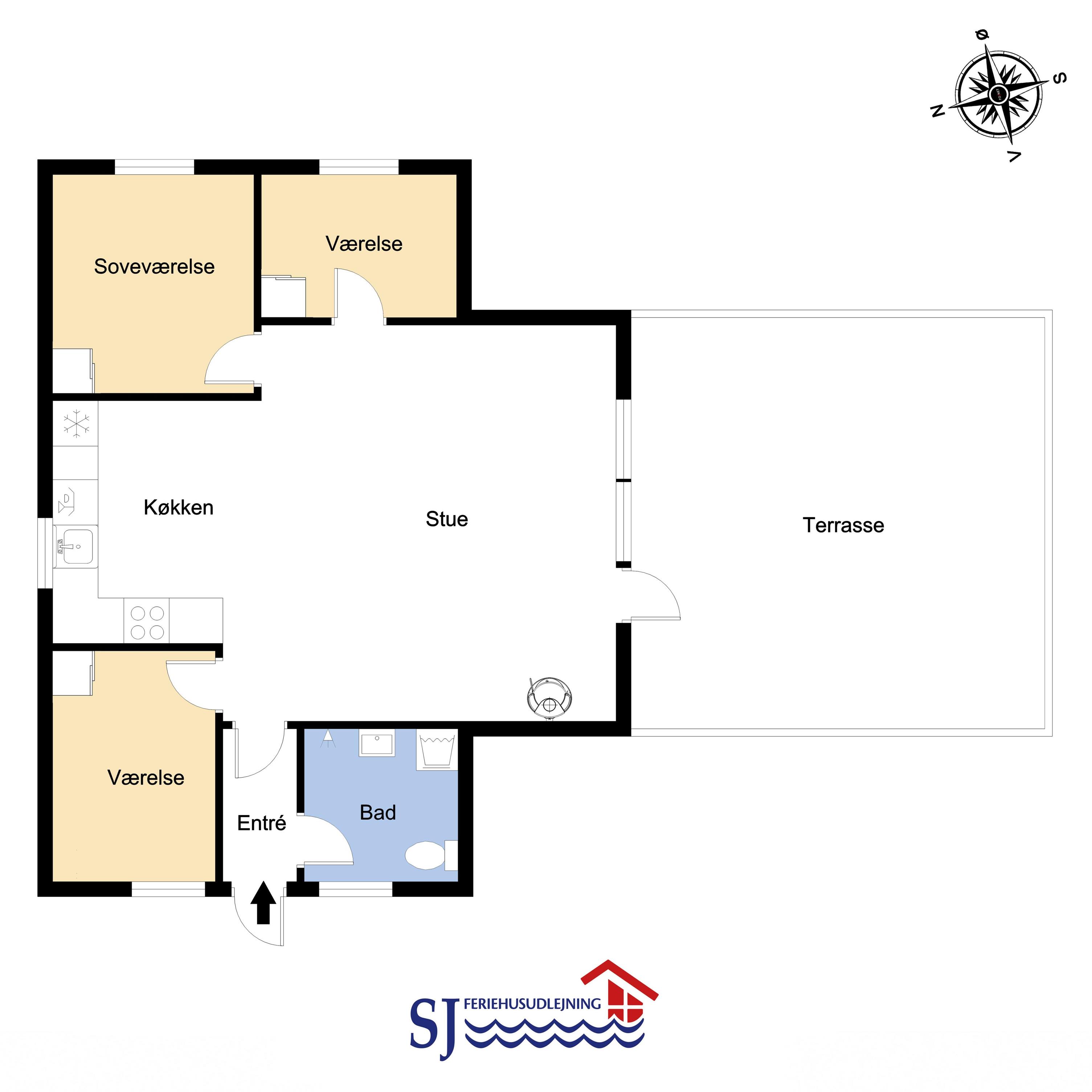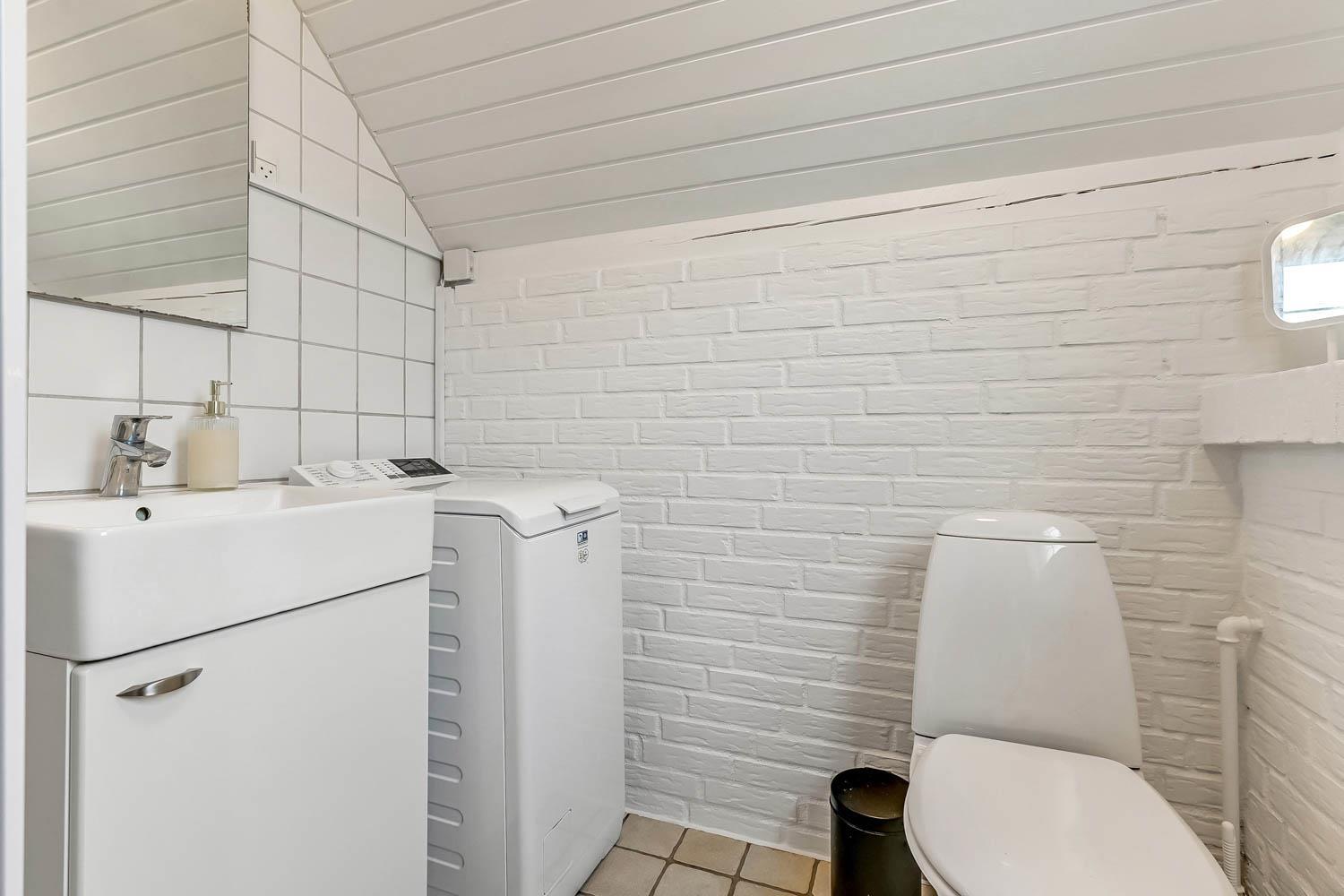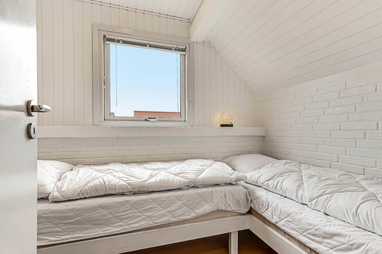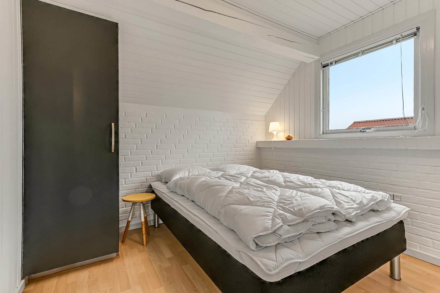 Das Ferienhaus bietet Platz für bis zu 6 Personen und verfügt über 3 Schlafzimmer – zwei mit Doppelbett und eines mit zwei Einzelbetten. Das Badezimmer ist hell und funktional eingerichtet und bietet Dusche, WC, Waschmaschine sowie eine angenehme Fußbodenheizung.
