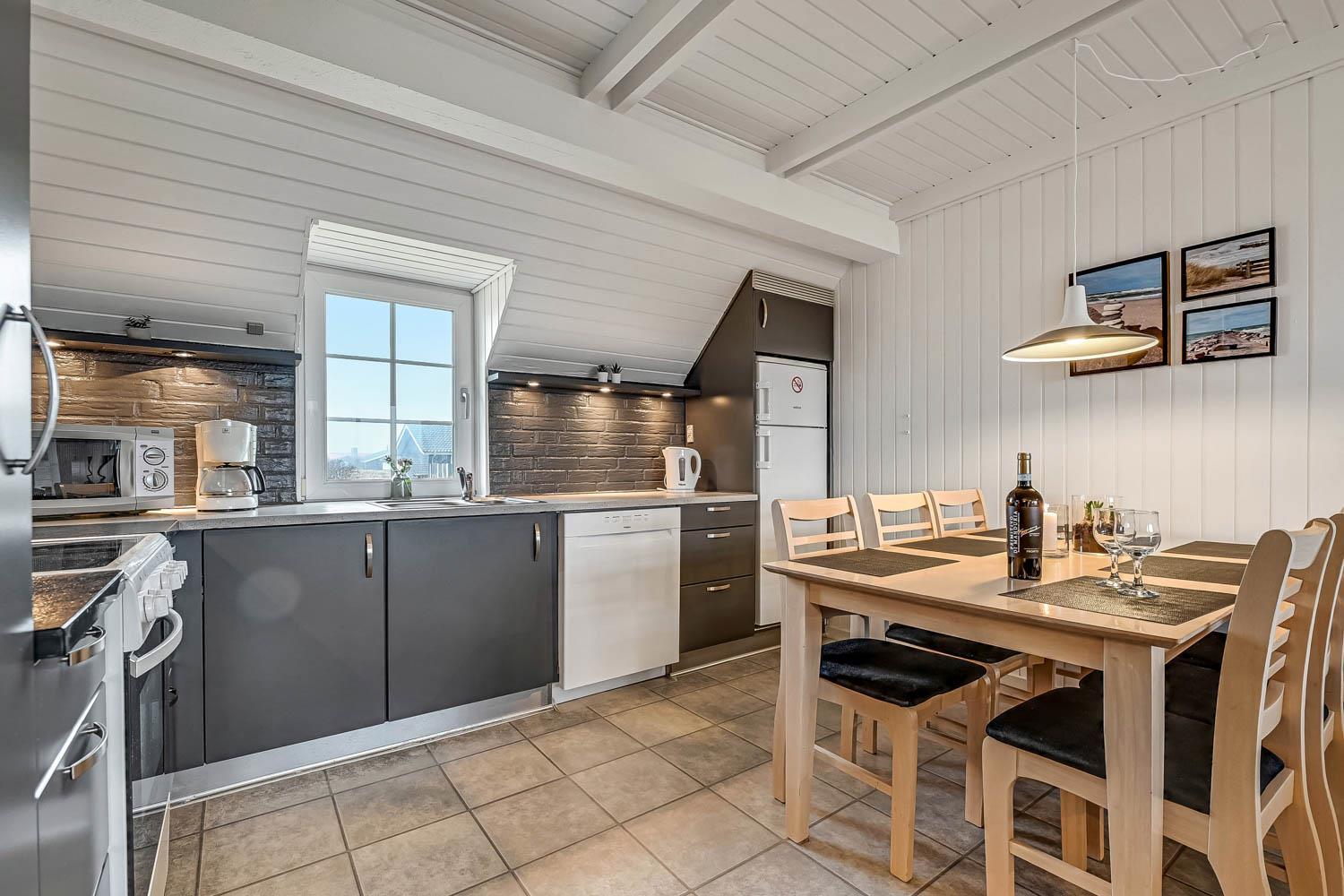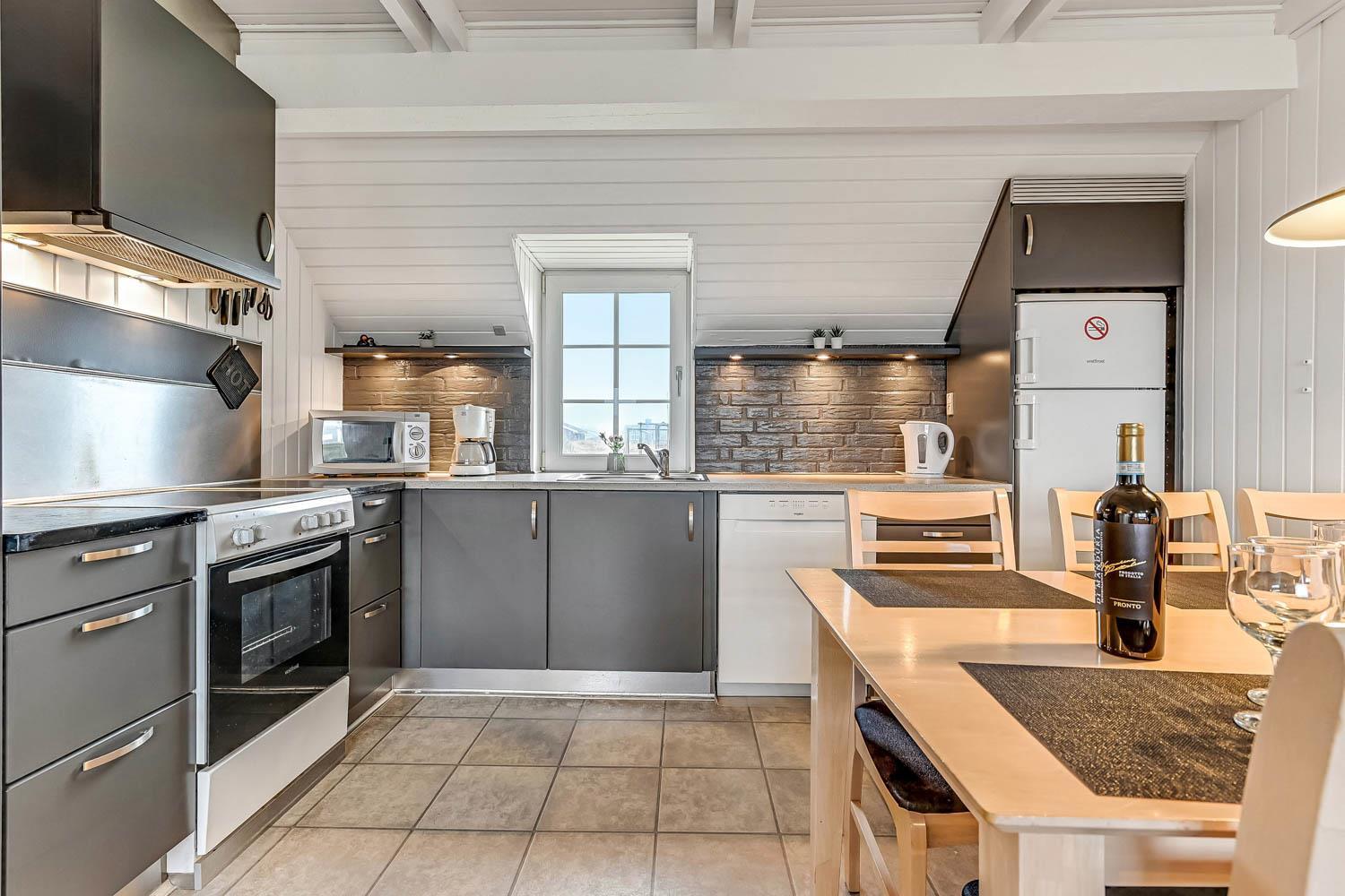 Die Küche ist gut ausgestattet mit Cerankochfeld, Kühl-/Gefrierkombination, Geschirrspüler und Mikrowelle, sodass die Zubereitung von Mahlzeiten im Urlaub ganz unkompliziert ist.