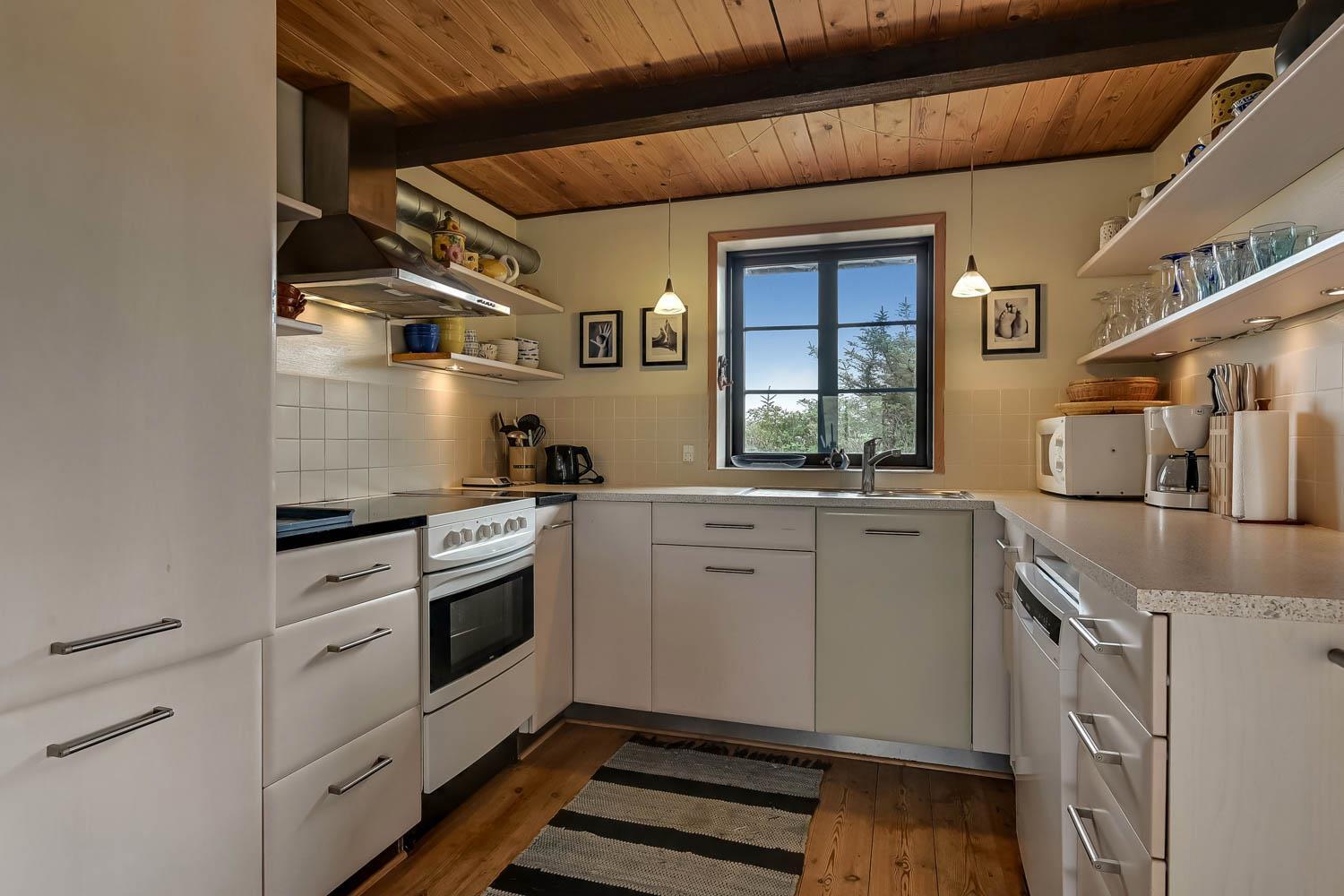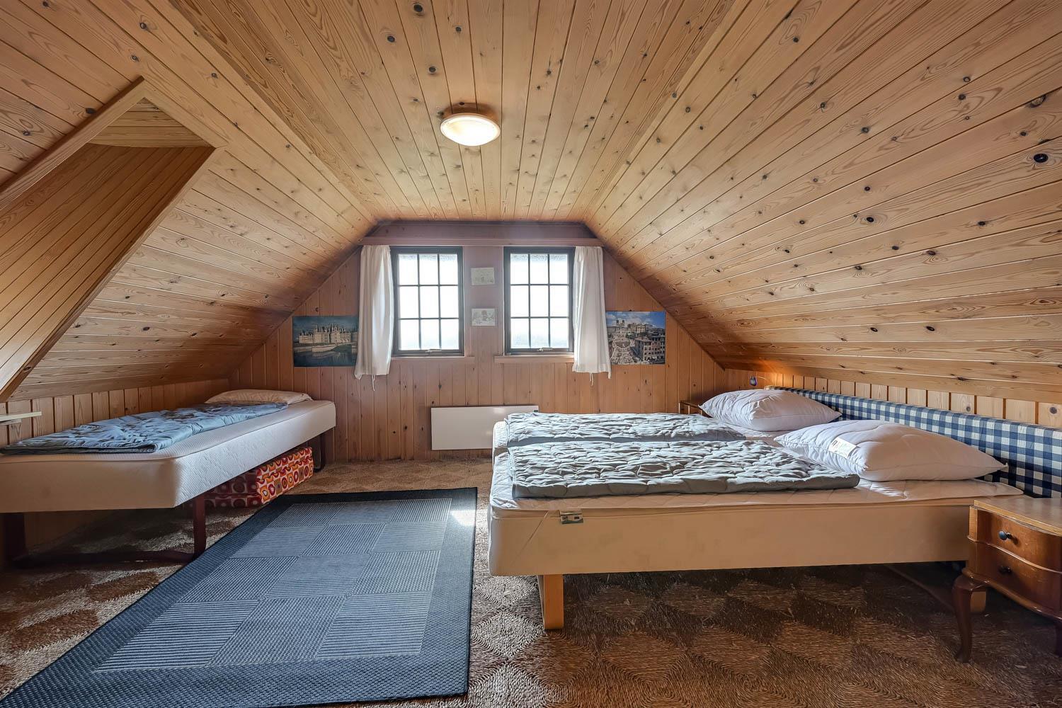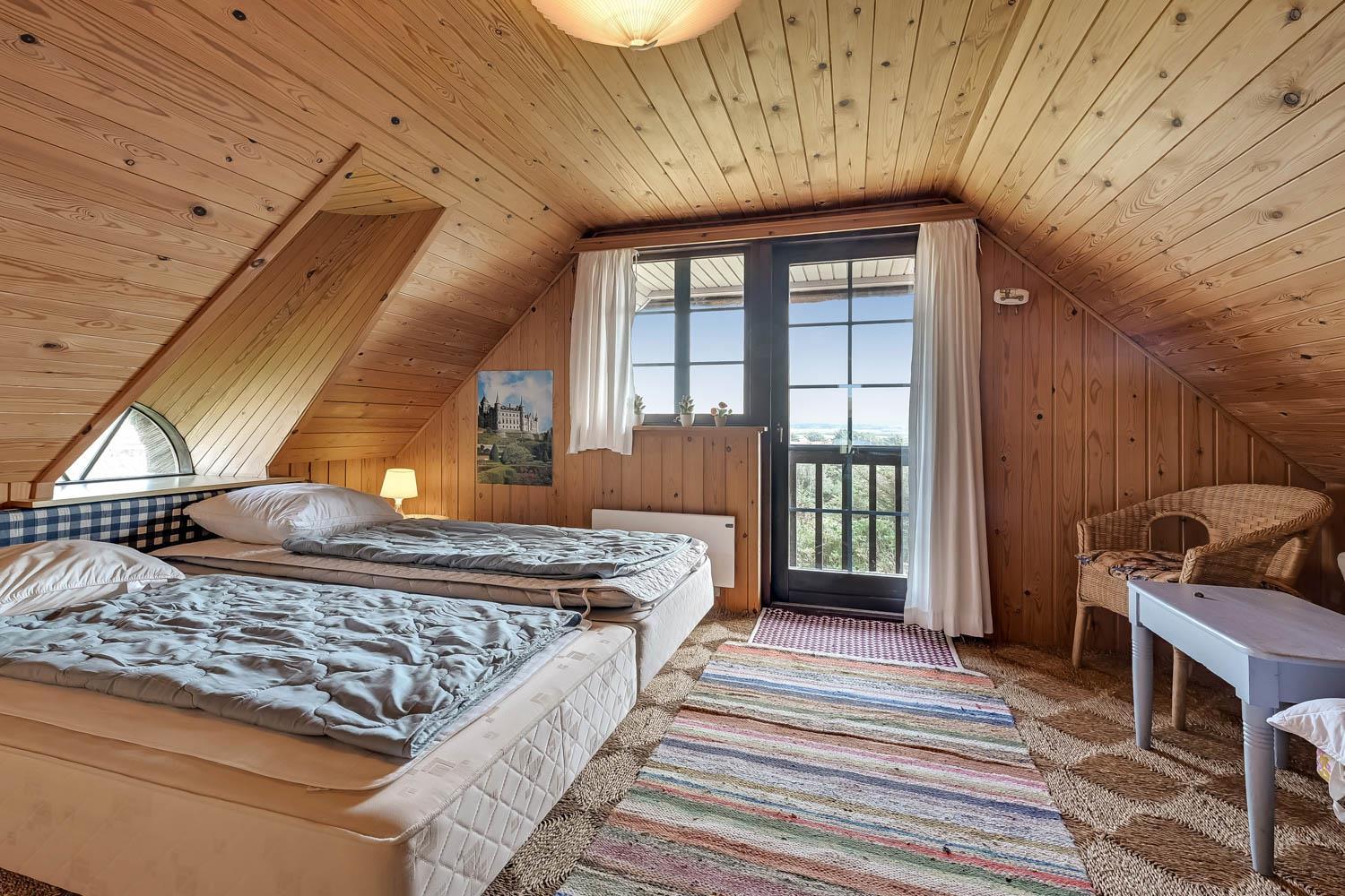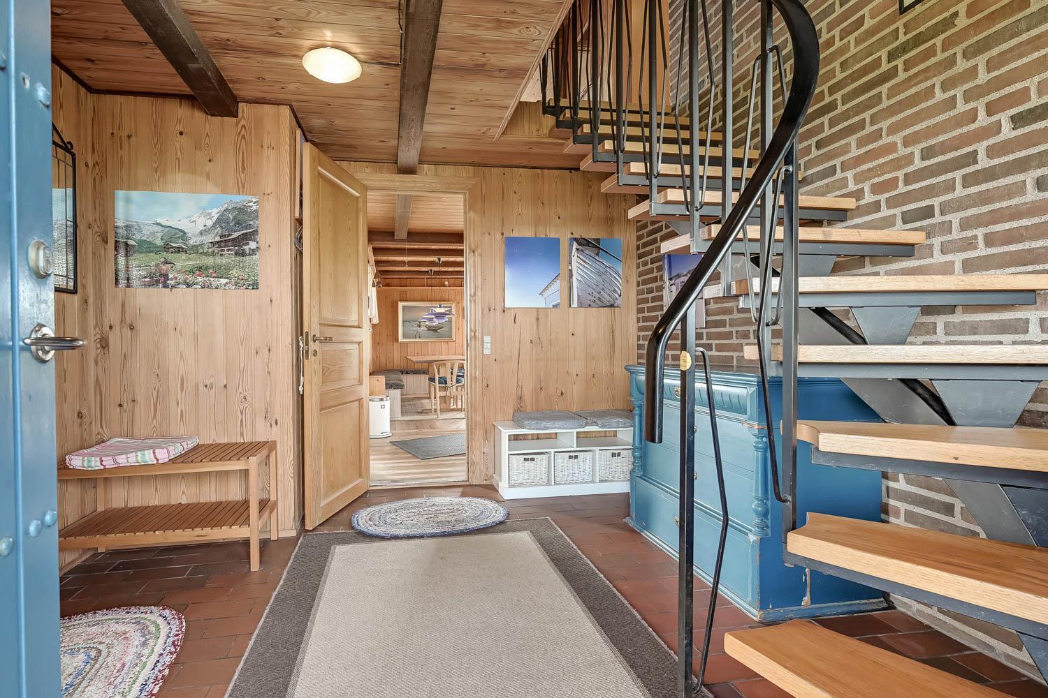Schönes Steinhaus auf 2 Etagen mit 160 m², gebaut im Jahr 1977. Ein steiler, gepflasterter Weg führt zum Haus hinauf. Der erste Raum, den man betritt, ist der Eingangsbereich des Hauses. Hier gibt es Platz, um Jacken aufzuhängen und Schuhe abzustellen. Vom Eingangsbereich aus gelangt man ins Badezimmer des Hauses: Toilette, Waschbecken, Dusche und Waschmaschine. Weiter vom Eingang gelangt man in den Wohnbereich des Hauses, der aus der Küche, dem Esszimmer und dem Wohnzimmer besteht, alle Räume sind mit Holzböden ausgestattet. Die Küchenecke mit hellen Küchenelementen ist mit einem Glaskeramikherd, Dunstabzugshaube, Mikrowelle, Kühl-/Gefrierschrank und Geschirrspüler ausgestattet. Um die Ecke von der Küche befindet sich das Esszimmer, wo alle Bewohner des Hauses Platz finden. Im Wohnzimmer gibt es eine gemütliche Sofaecke mit Polstermöbeln und eine Sitzecke mit Kissen, wo man sich beispielsweise hinsetzen und ein Buch lesen oder fernsehen kann. Der Fernseher ist ein Smart-TV mit DR1, deutschen Kanälen und der Möglichkeit, eigene Streamingdienste zu nutzen, für die man selbst ein Abonnement hat.Im 1. Stock befinden sich die 3 Schlafzimmer des Hauses, von denen 2 Zimmer Zugang zu einem überdachten Balkon haben. In jedem Schlafzimmer gibt es 2 Einzelbetten, die zu einem Doppelbett zusammengeschoben sind, und in 2 der Zimmer befindet sich zusätzlich ein weiteres Einzelbett. (1DB + 1EB, 1DB + 1EB, 1DB). Im 1. Stock gibt es auch eine Gästetoilette mit Toilette und Waschbecken.