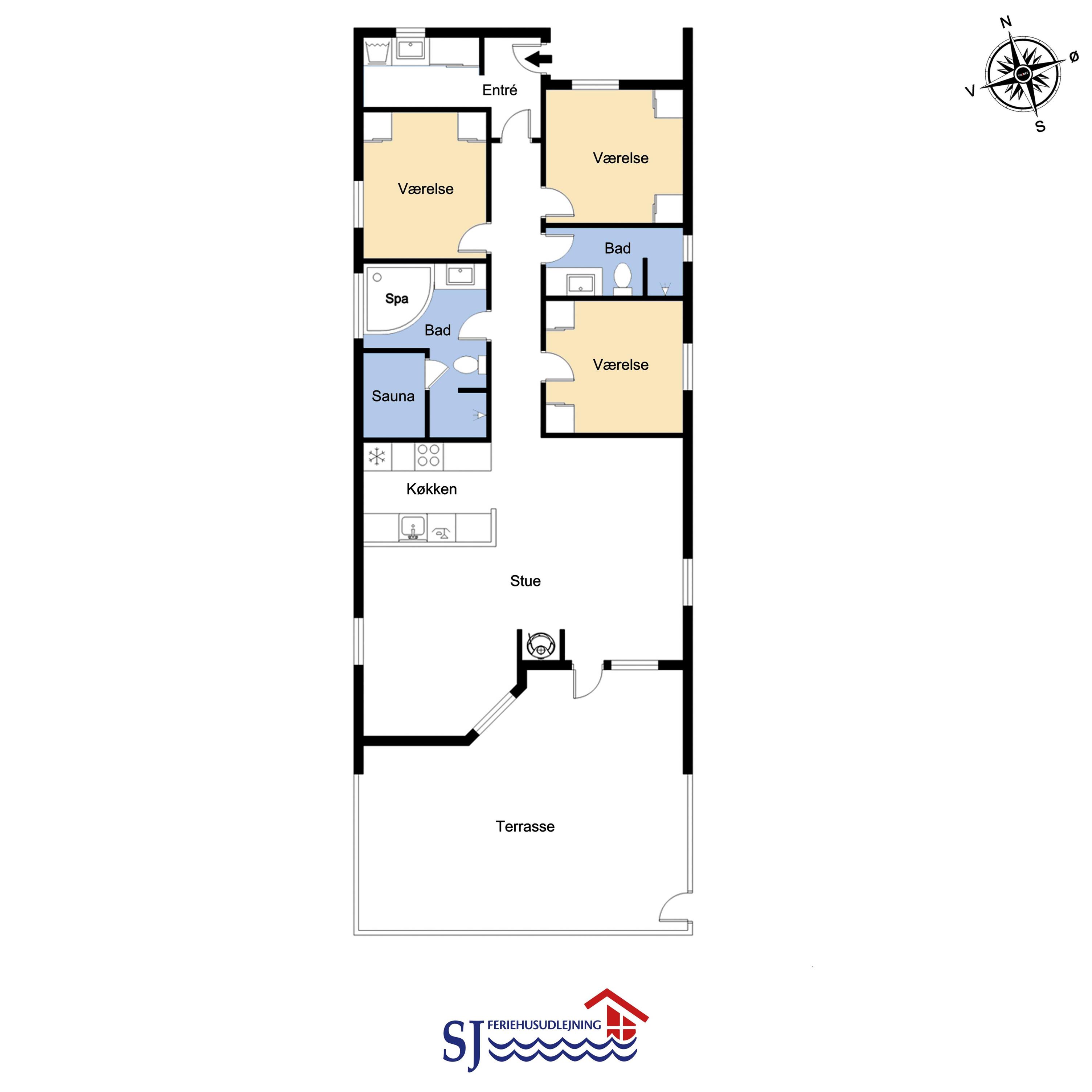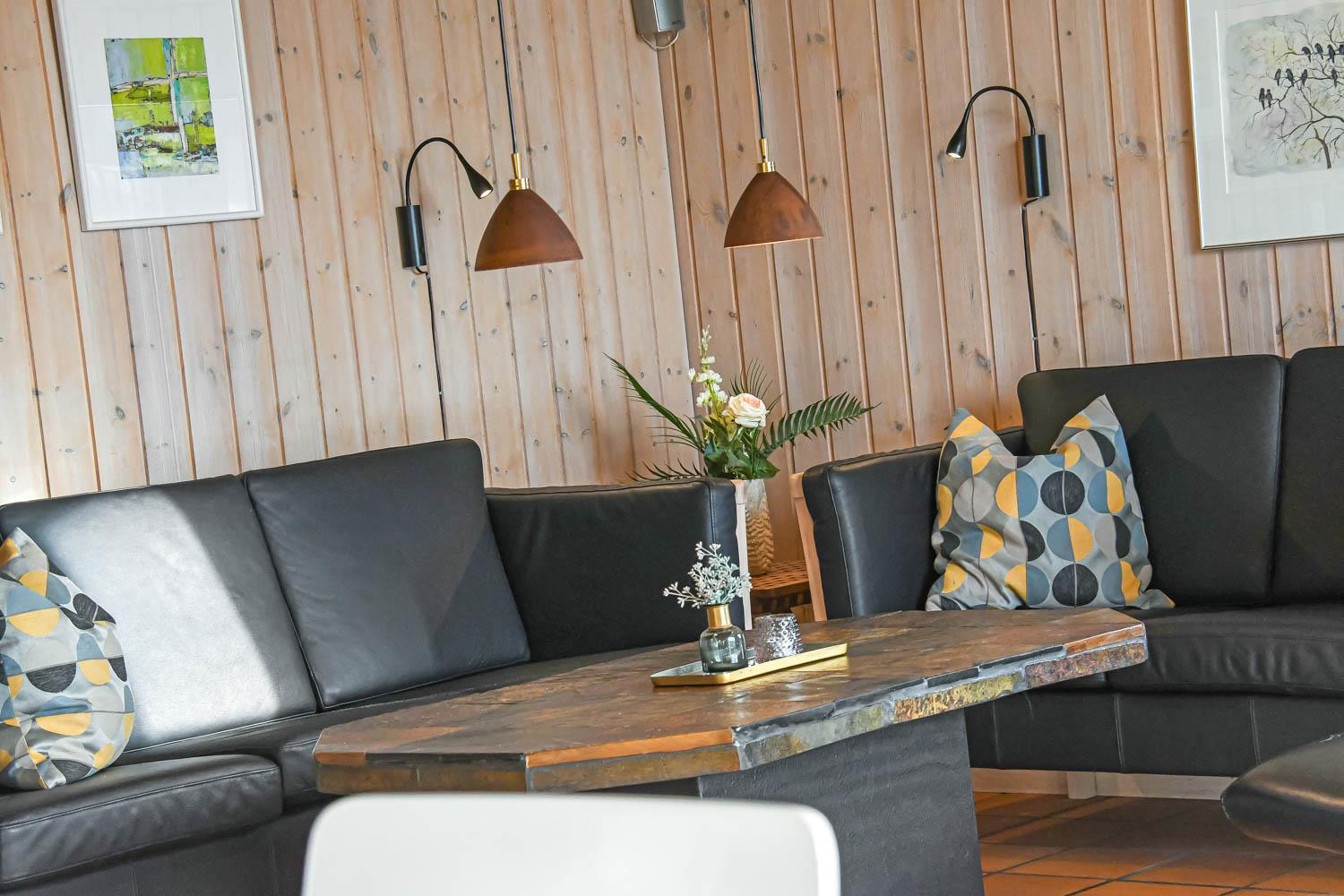 Schöner Eingangbereich, wo Sie viel Platz haben, Jacken usw. aufzuhängen, hier steht auch die Waschmaschine. Vom Flur gelangen Sie ins Haus, wo es eine kombinierte Küche und Wohnraum gibt; die Decken sind bis ganz oben geöffnet, und die großen Fensterpartien zur Terrasse geben einen schönen Lichteinfall in den Raum. Die Küche ist mit Herd mit Cerankochfeld, Abzugshaube, Kühl-/Gefrierschrank, Geschirrspüler und Fliesenboden mit Fußbodenheizung ausgestattet. Der Wohnraum ist mit guten Ledermöbeln, TV mit Kabeltv mit dänischen und deutschen Programmen und einem Chromecast ausgestattet, wo Sie Ihre eigenen Programme, für die Sie selber ein Abonnement haben, streamen können. Der Wohnraum ist auch mit Fliesenboden mit Fußbodenheizung ausgestattet. Auf der Seite, wo die Küche ist, steht der Esstisch. Es gibt einen schönen Brennofen, der zusammen mit der Wärmepumpe für eine schöne Wärme sorgt, egal zu welcher Jahreszeit und dabei hilft, die Nebenkosten-Rechnung niedriger zu machen. Das Haus hat 3 Schlafräume: 2B + 1DB + 1DB. Vom Flur gibt es über eine steile Leiter Aufgang zum offenen Schlafboden mit 2 Schlafmöglichkeiten. Die Wohnräume sind mit Holzböden ausgestattet. Das Haus hat 2 Badezimmer. Das große Badezimmer verfügt über Toilette, Waschbecken, Dusche, Sauna und Whirlpool und Fußbodenheizung; das andere ist mit Toilette, Waschbecken, Dusche und Fußbodenheizung ausgestattet. Zusätzlich gibt es einen kleinen Hauswirtschaftsraum mit Waschbecken und Waschmaschine. Nichtraucher-Haus. 2 Hunde sind erlaubt. Eintritt zu Harboøre Center mit u.a. Fitness und Internetcafé. Klicken Sie bitte an: www.h-centeret.dk.