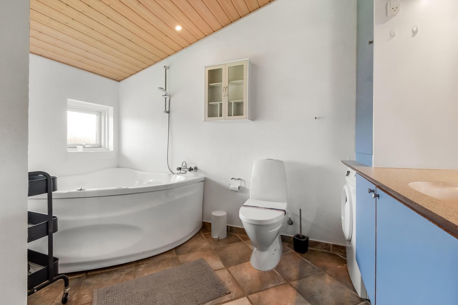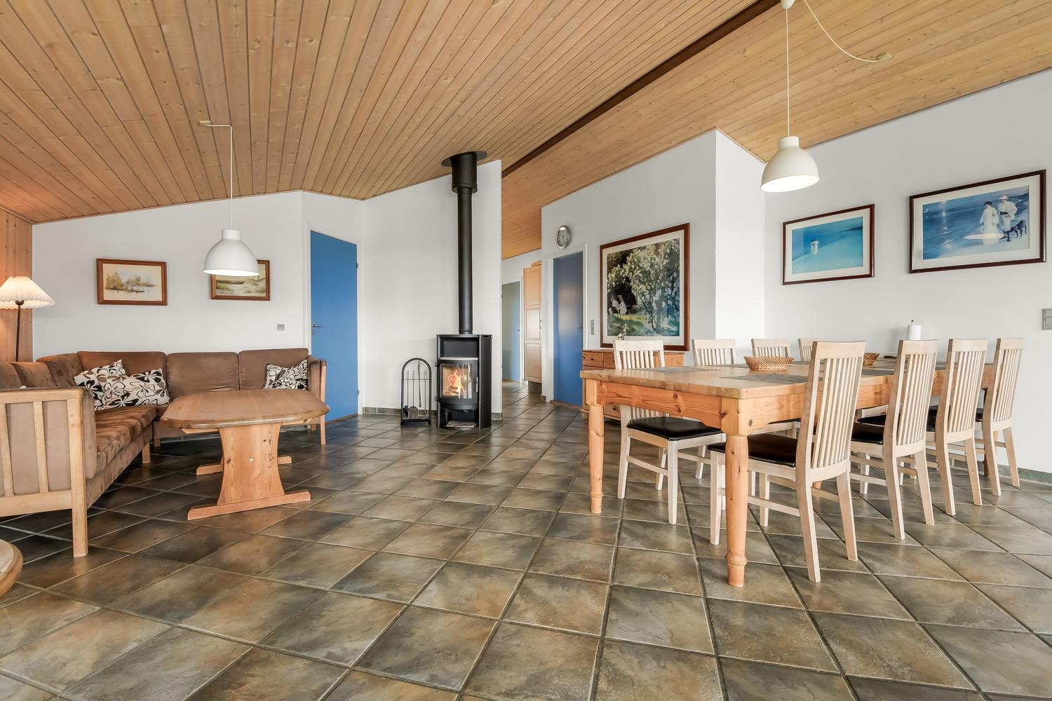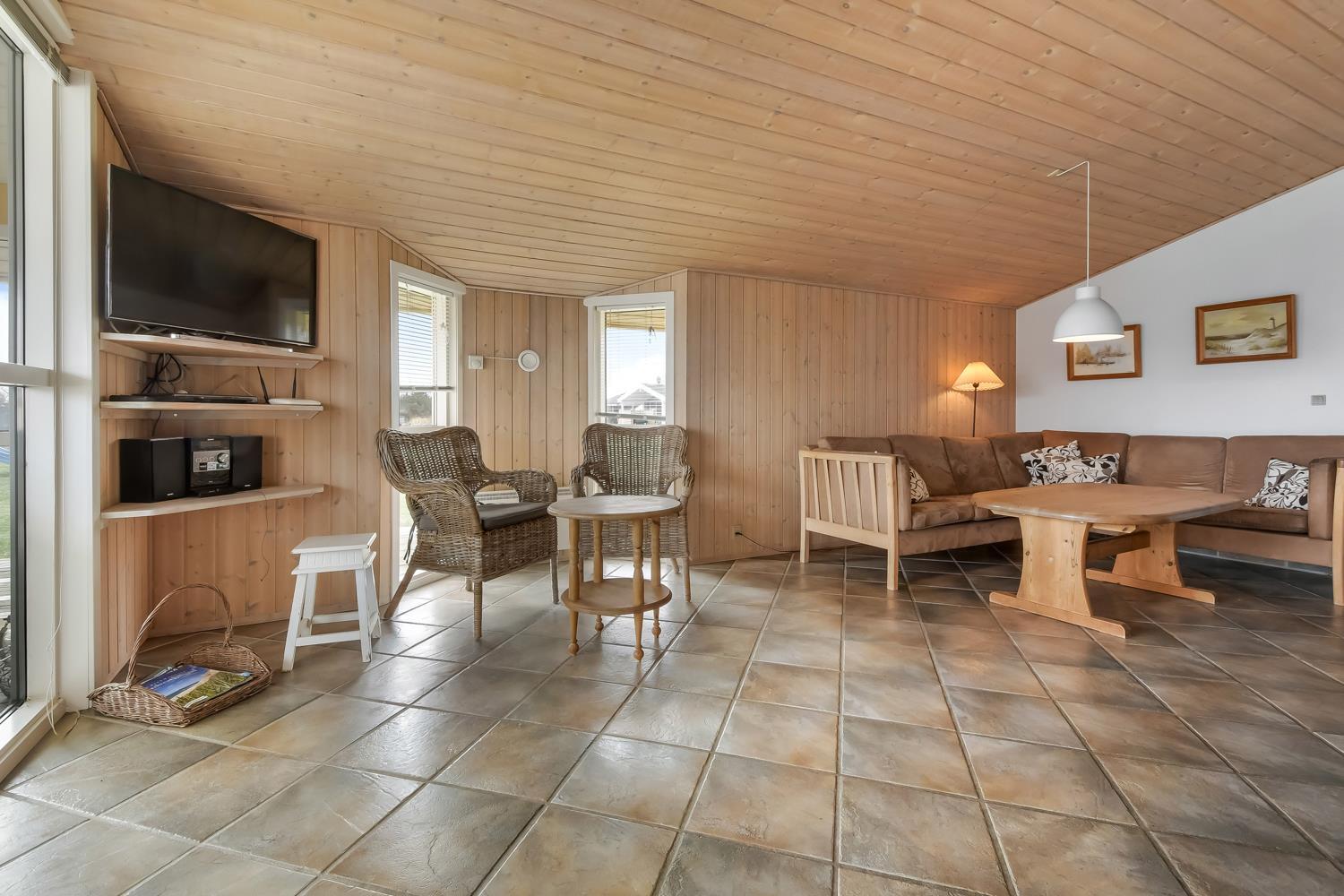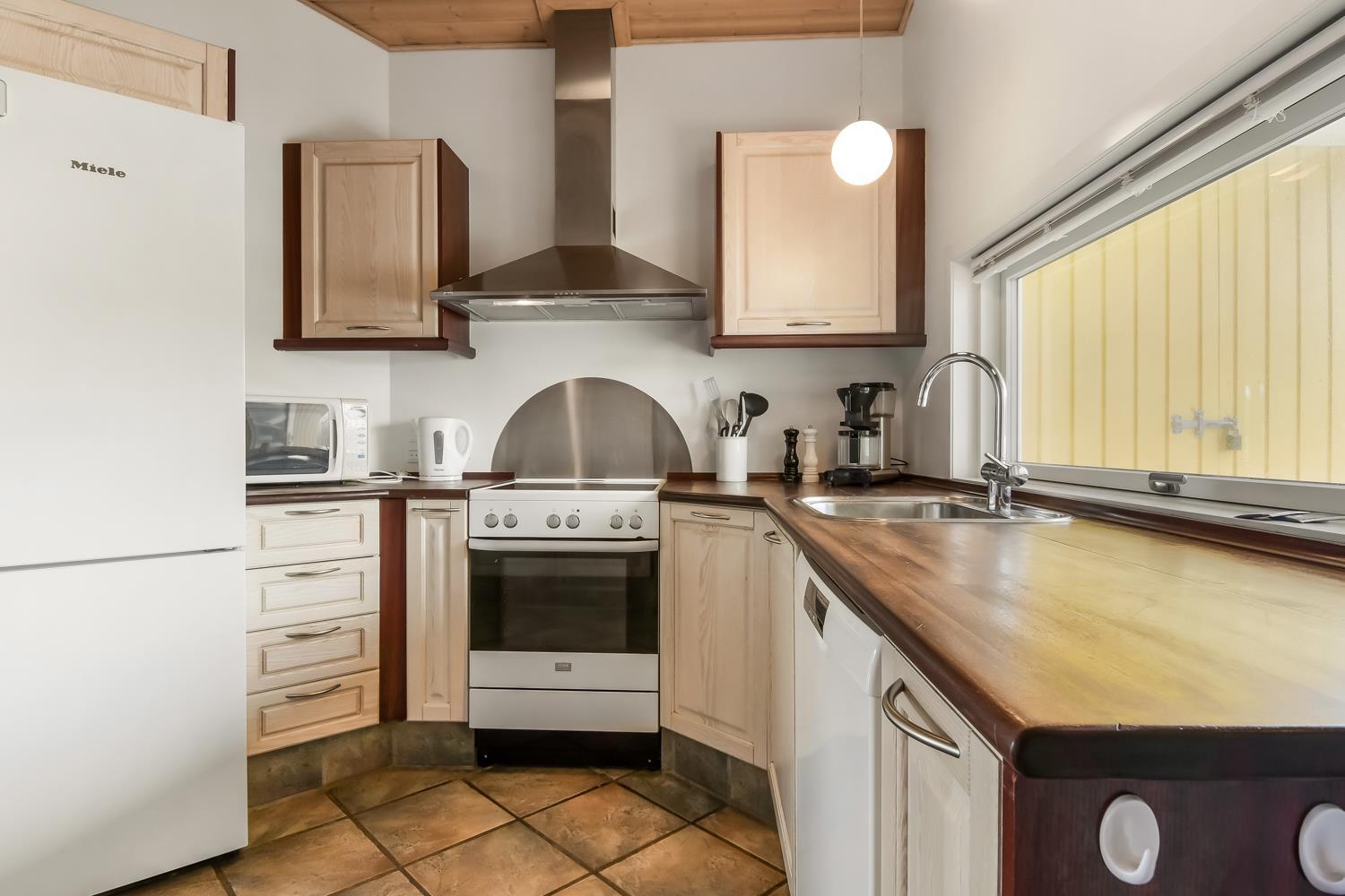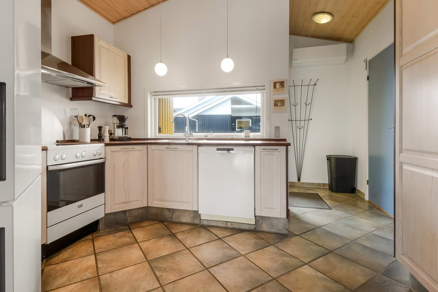 Die 115 m² große Wohnfläche ist wunderschön dekoriert und mit Fliesenboden in allen Aufenthaltsräumen. 4 gute Schlafräume: 1DB + 1DB + 2B + 2B mit Holzboden. Fühlen Sie sich wohl in dem Wohnraum mit Polstermöbeln, TV mit dänischen und deutschen Programmen, DVD/CD/Radio, Esstisch und einem schönen Kaminofen. Schöne und stilvoll ausgestattete Küchenecke mit Herd mit Cerankochfeld, Abzugshaube, Mikrowelle, Geschirrspüler, Kühlschrank mit Gefrierfach und alles an Geschirr und Kochgeschirr. Tolles Badezimmer mit allem, was das Herz begehrt. Hier gibt es Toilette, Waschbecken, eine gemauerte Duschnische, Waschmaschine, Trockner, Whirlpool und einem direkten Zugang zur Sauna, Fliesenboden mit Fussbodenheizung. Extra Badezimmer mit Toilette, Waschbecken und Fliesenboden mit Fussbodenheizung. Kinderstuhl und Kinderbett für die Kinder. Max. 1 Haustier ist erlaubt. Nichtraucher-Haus.
