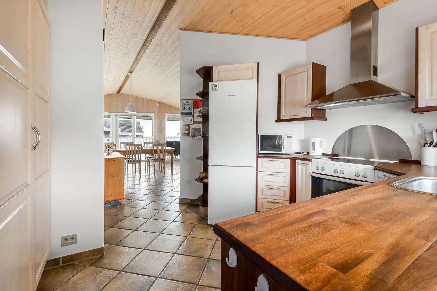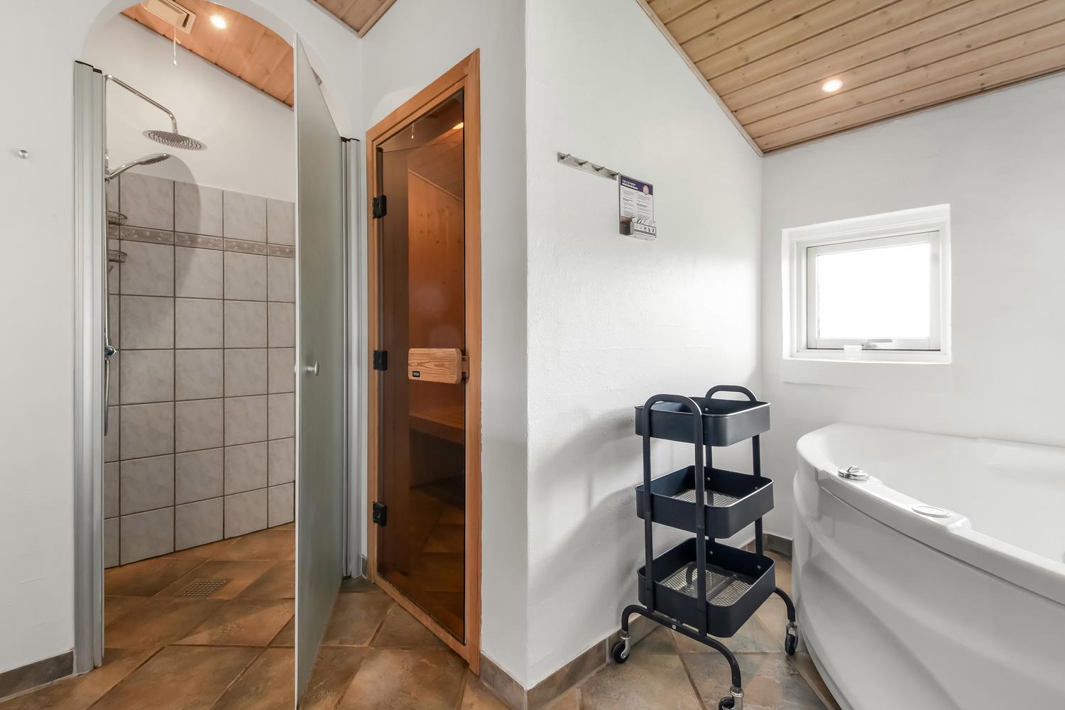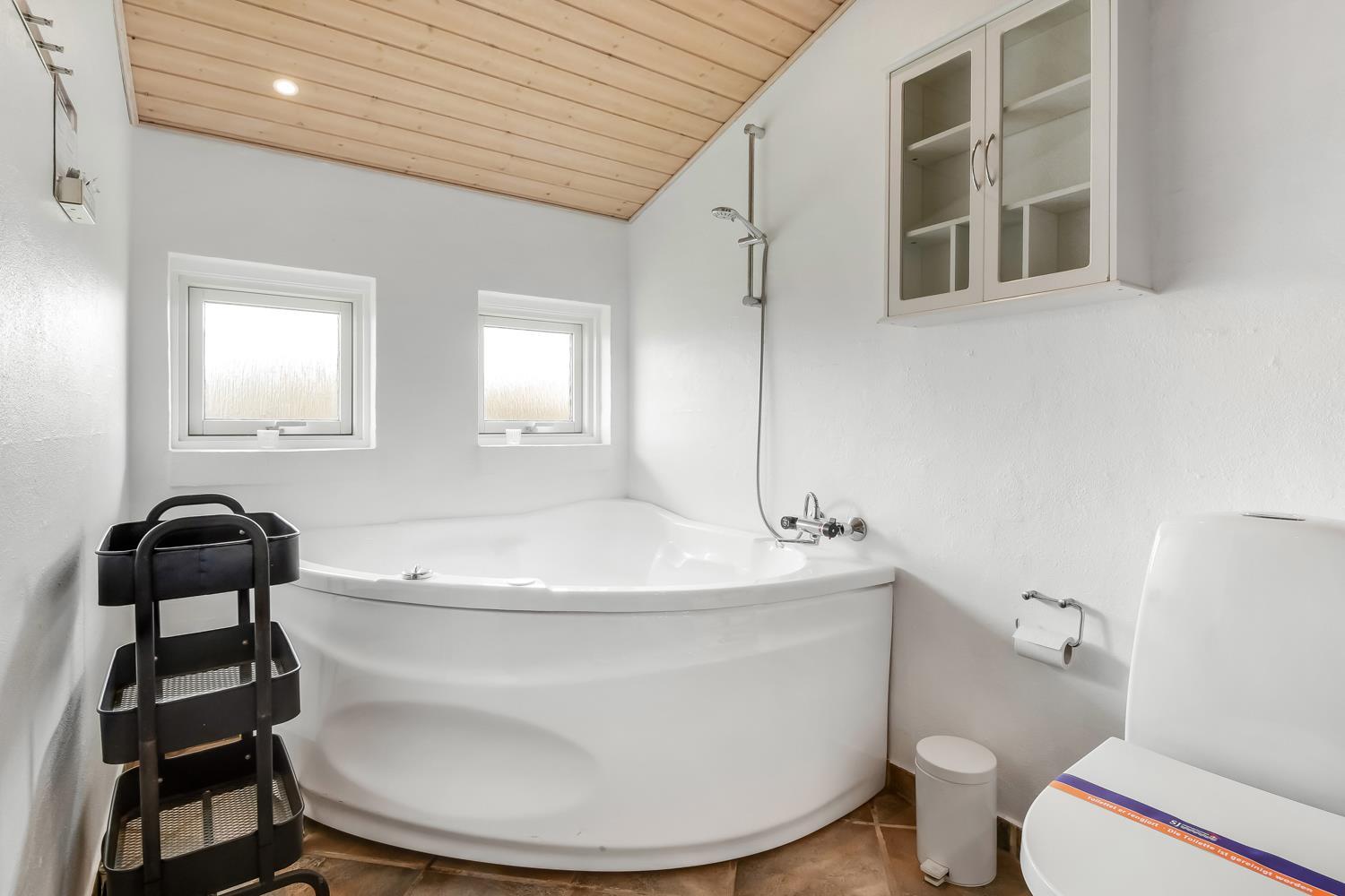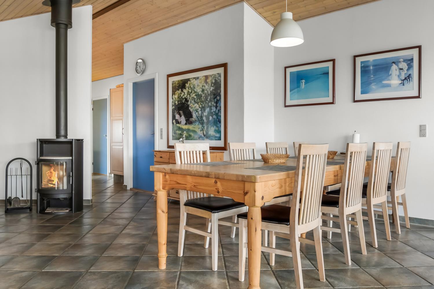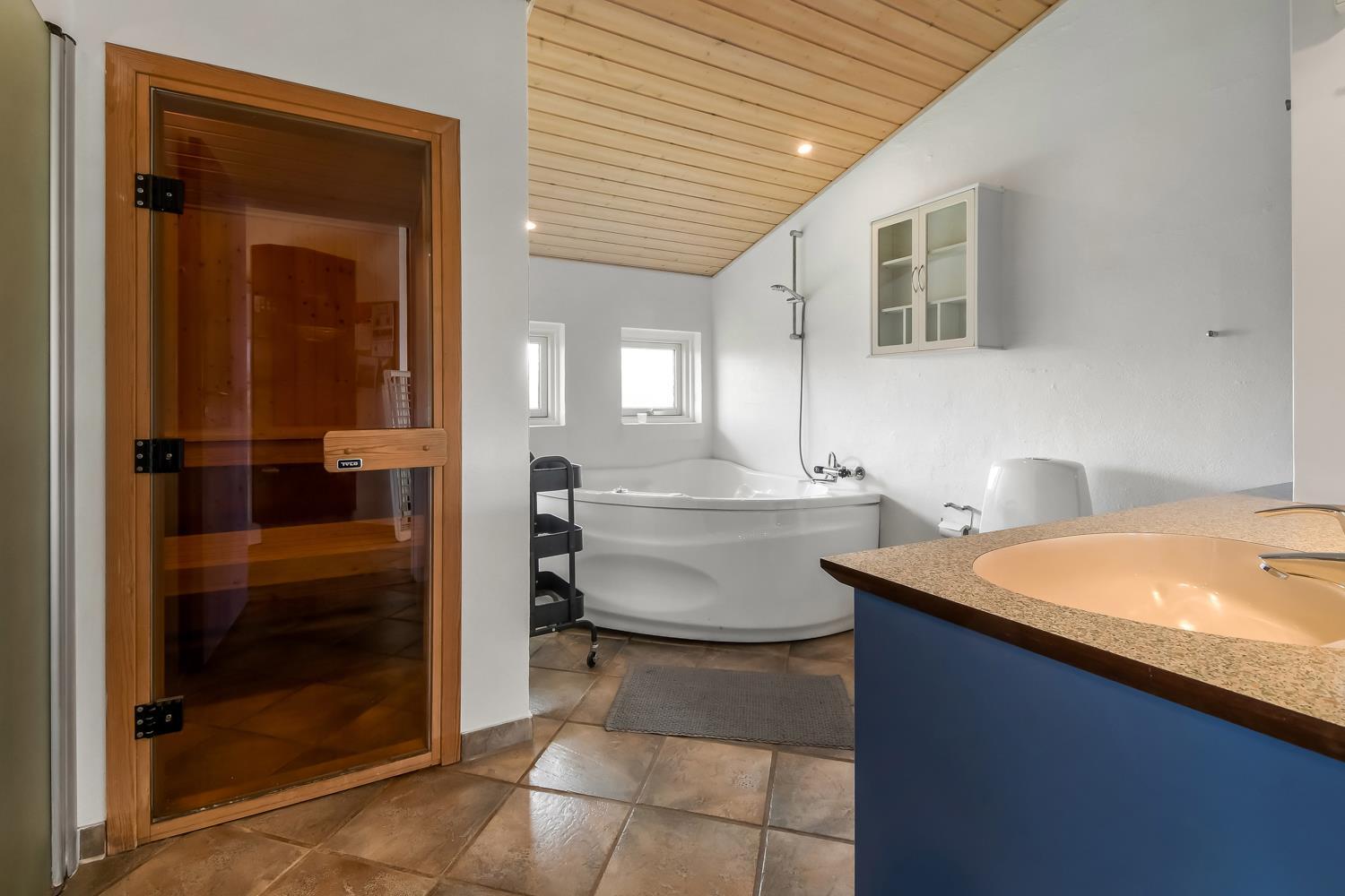 Die 115 m² große Wohnfläche ist wunderschön dekoriert und mit Fliesenboden in allen Aufenthaltsräumen. 4 gute Schlafräume: 1DB + 1DB + 2B + 2B mit Holzboden. Fühlen Sie sich wohl in dem Wohnraum mit Polstermöbeln, TV mit dänischen und deutschen Programmen, DVD/CD/Radio, Esstisch und einem schönen Kaminofen. Schöne und stilvoll ausgestattete Küchenecke mit Herd mit Cerankochfeld, Abzugshaube, Mikrowelle, Geschirrspüler, Kühlschrank mit Gefrierfach und alles an Geschirr und Kochgeschirr. Tolles Badezimmer mit allem, was das Herz begehrt. Hier gibt es Toilette, Waschbecken, eine gemauerte Duschnische, Waschmaschine, Trockner, Whirlpool und einem direkten Zugang zur Sauna, Fliesenboden mit Fussbodenheizung. Extra Badezimmer mit Toilette, Waschbecken und Fliesenboden mit Fussbodenheizung. Kinderstuhl und Kinderbett für die Kinder. Max. 1 Haustier ist erlaubt. Nichtraucher-Haus.