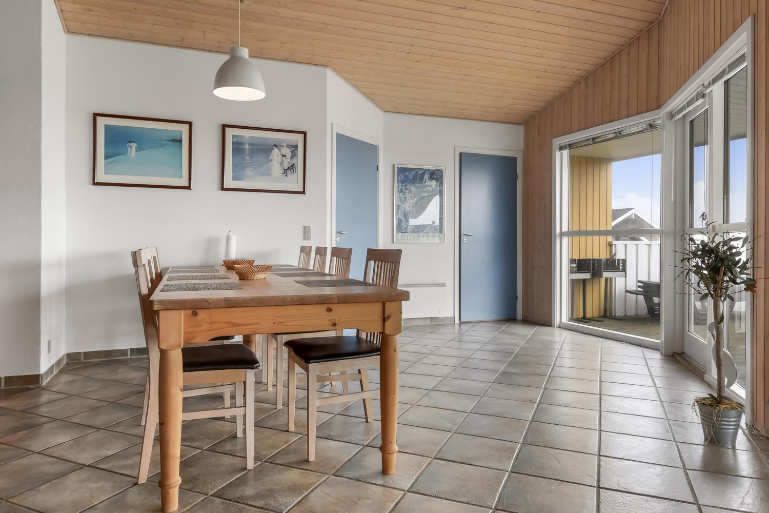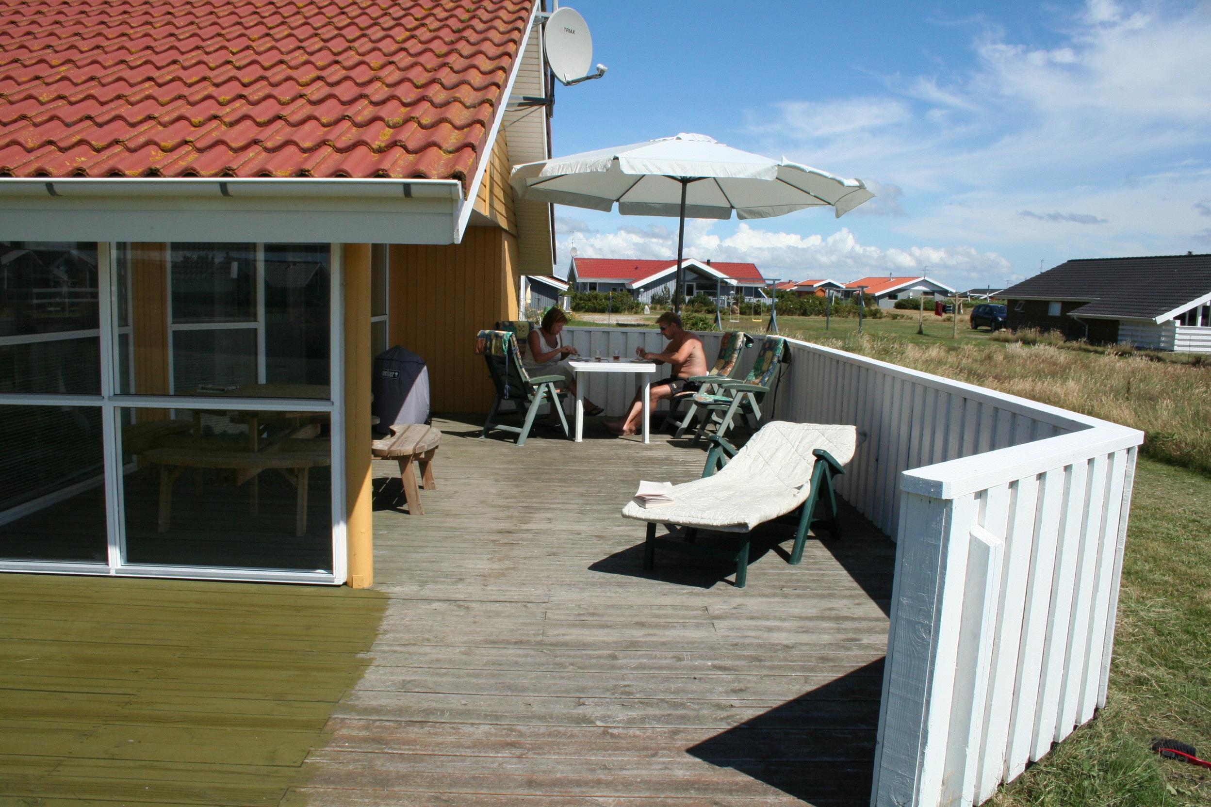 Vom Wohnraum haben Sie einen Ausgang zur grossen und teilweise überdachten Terrasse. Teile der Terrasse sind von einem Lattenzaun und der überdachte Teil der Veranda ist mit Glas umgeben. Sie bieten Schutz vor dem Wind. Gartenmöbel, Sonnenliegen und ein Grill runden die Erlebnisse auf der Terrasse ab. Das Haus verfügt auch über 2 Fahrräder; wir sind aber nicht für den Zustand der Fahrräder verantwortlich. Die Umgebung bei Vejlby und Ferring See sind nicht weit entfernt vom Haus; die Natur bietet hier viele Aussenaktivitäten zu jeder Jahreszeit – egal ob es Spaziergänge um den See oder am Strand entlang sind -. Zum Einkauf haben Sie es auch nicht weit in Vejlby und Harboøre. Nehmen Sie das Auto nach Lemvig oder zum Hafenort Thyborøn. Beide Orte bieten mehrere gute Einkaufsmöglichkeiten an.