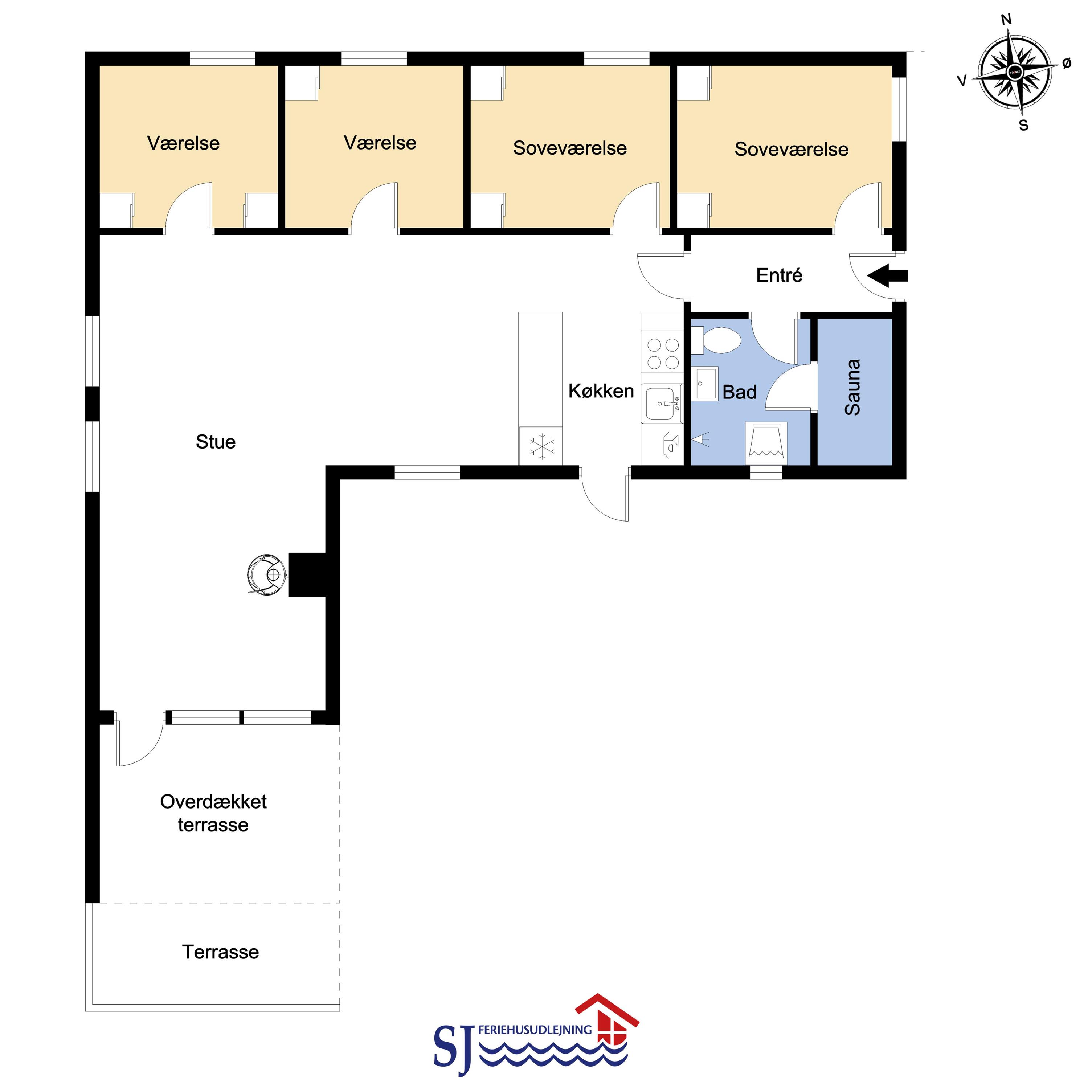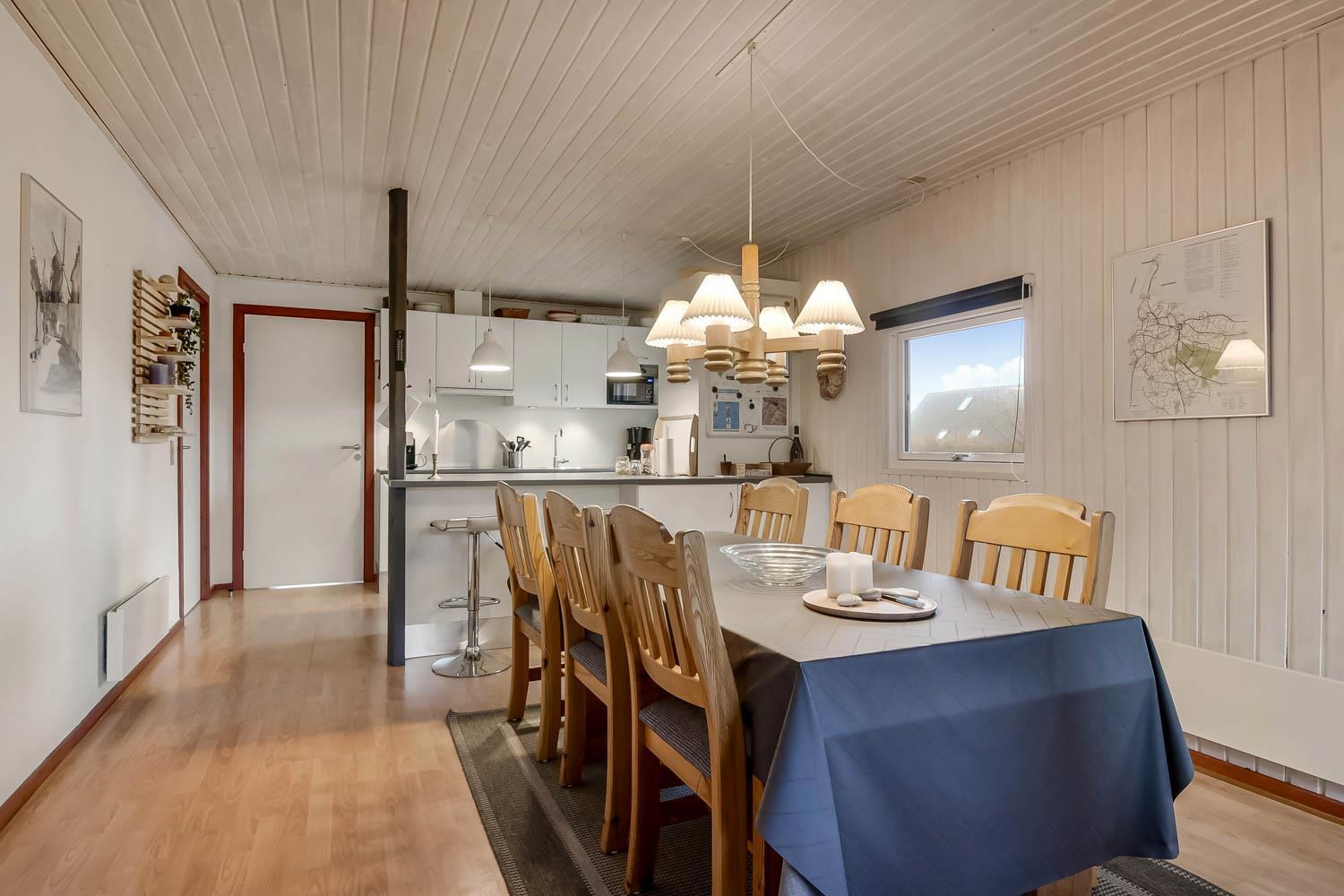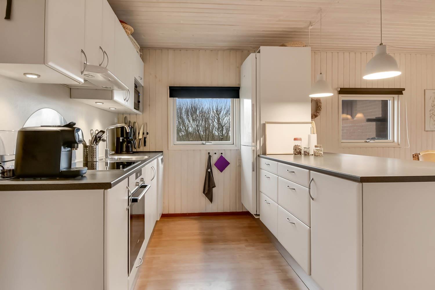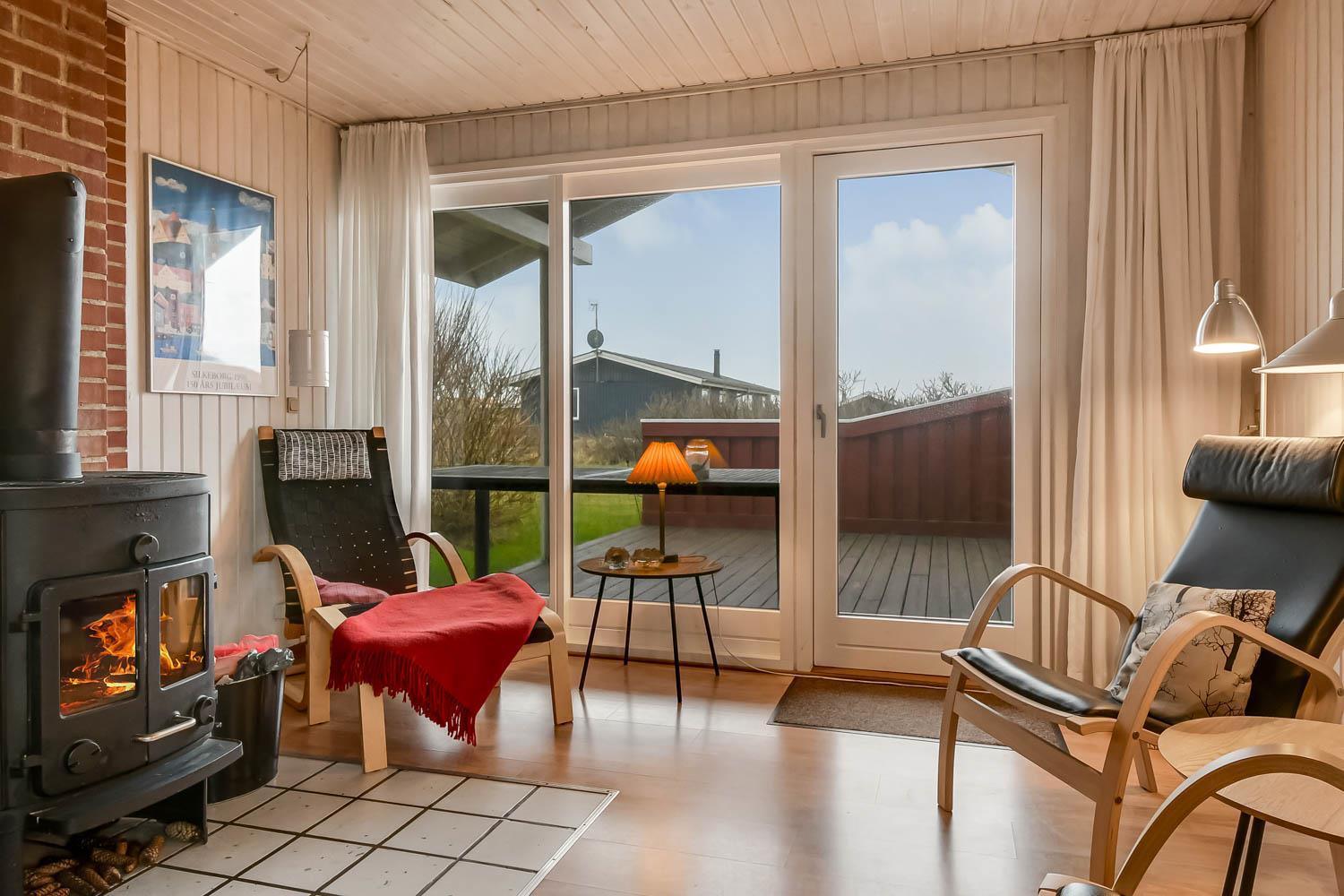 Gut eingerichtetes Ferienhaus auf 96 m² mit 4 Schlafräumen: 1DB + 1DB + 2B + 1E. Gemütlicher Wohnraum mit Polstermöbeln, Esstisch, Smart-TV mit dänischen und deutschen Programmen und Radioprogrammen, DVD, Chromecast mit möglichkeit für streaming von Apps / TV / Radio wofür Sie selber einen abonnement haben. Gemütlicher Kaminofen und eine energiesparende Wärmepumpe sorgen dafür, dass Sie auch in den kühlen Zeiten die Wärme halten können. Schöne, neue Küche mit Geschirrspüler, Ceranfeld, eingebauten Ofen, Abzugshaube, Mikrowelle und Kühlschrank mit Gefrierfach. Badezimmer mit Toilette, Dusche, Waschmaschine, Fliesenboden mit Fussbodenheizung und Zugang zur Sauna. Nichtraucher-Haus. Max. 1 Haustier erlaubt.