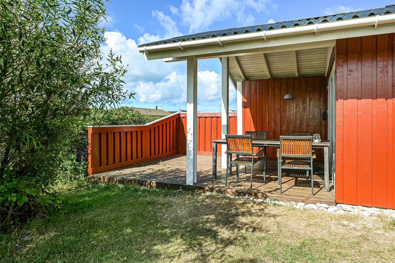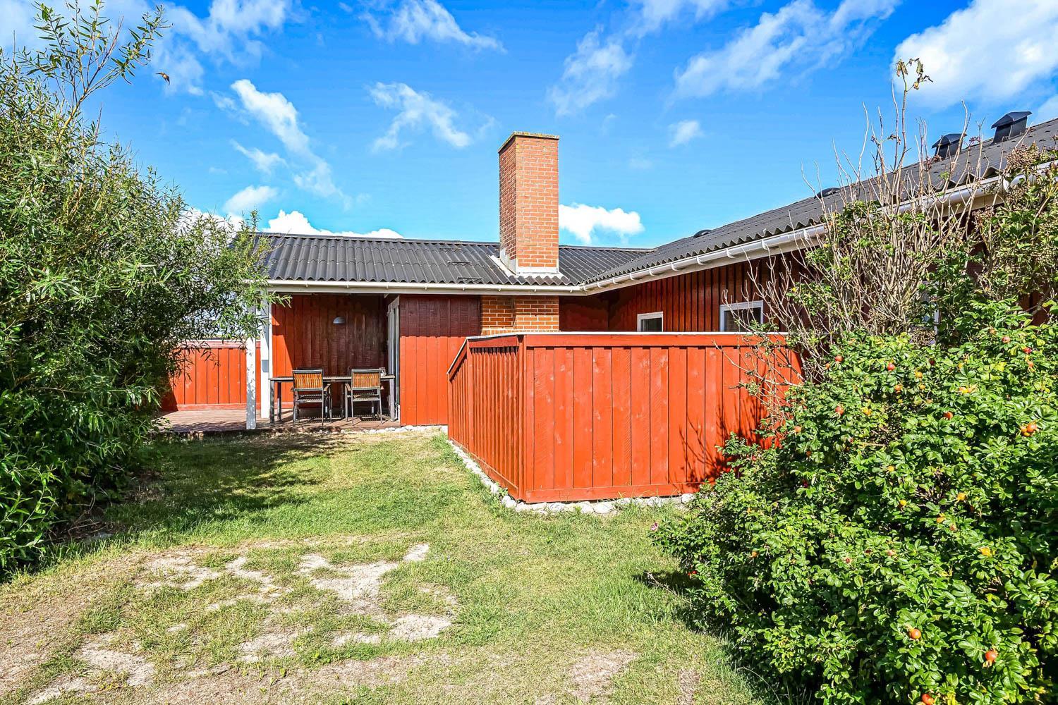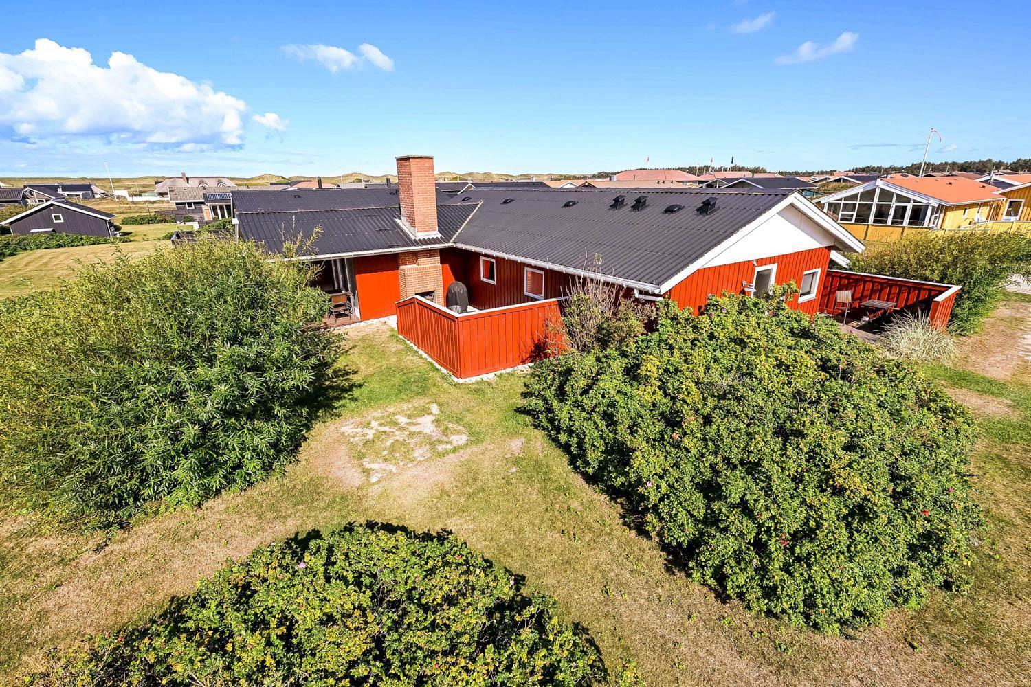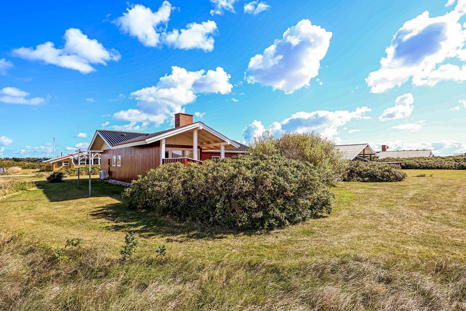 Das Haus wurde Jahr 1989 erbaut und in 2012 renoviert. Es liegt auf einem etwa 1.000 m² großen Grundstück. Vom Wohnraum gibt es einen Ausgang zur teilweise überdachten Holzterrasse mit Grill, Gartenmöbeln und Sonnenliegen. Offenes Grundstück mit Krokket und Stangentennis für die Kinder. Es gibt die Möglichkeit die Terrasse einzuzäunen mit einem abnehmbaren Drahtzaun. Das Haus liegt mitten in Vejlby Klit dicht am Ferring See und nur 400 m von der Nordsee entfernt. In der Saison gibt es ein Café bloss 200 m entfernt. Die zentrale Lage des Hauses bietet viele Möglichkeiten etwas zu unternehmen, zu Fuss oder mit dem Fahrrad. Außerdem gibt es in 50 m Entfernung einen Spielplatz und einen Petanqueplatz.