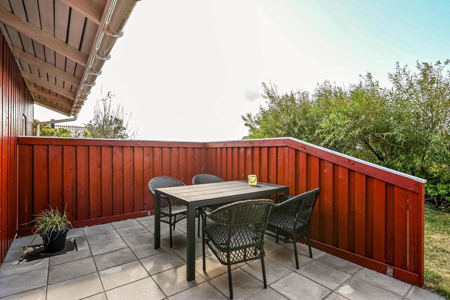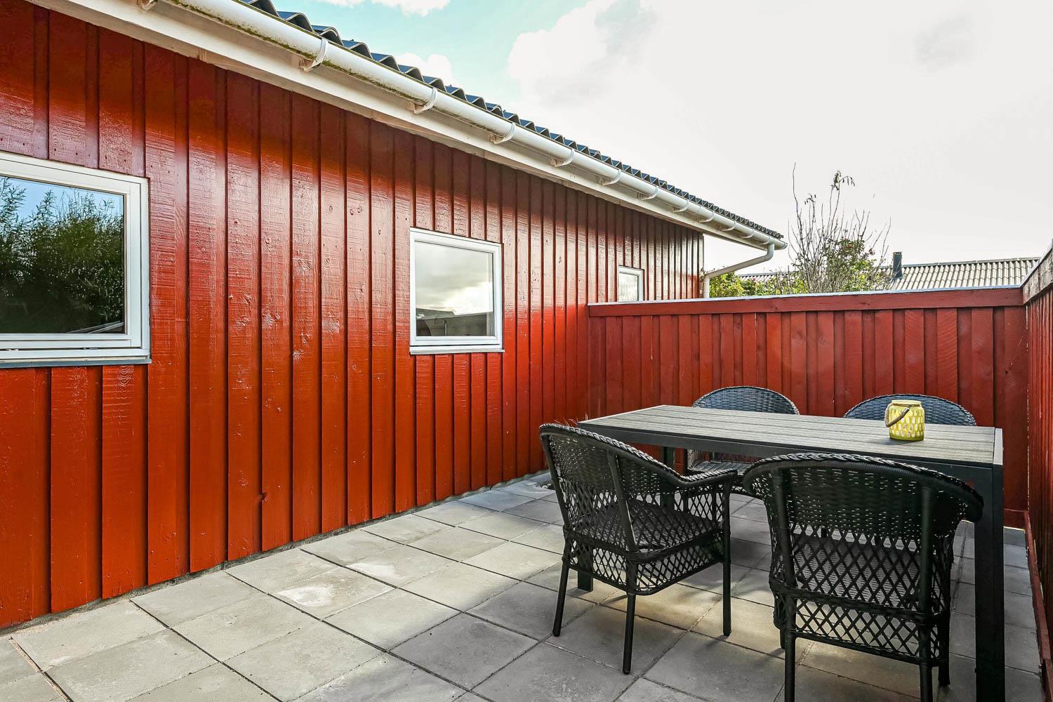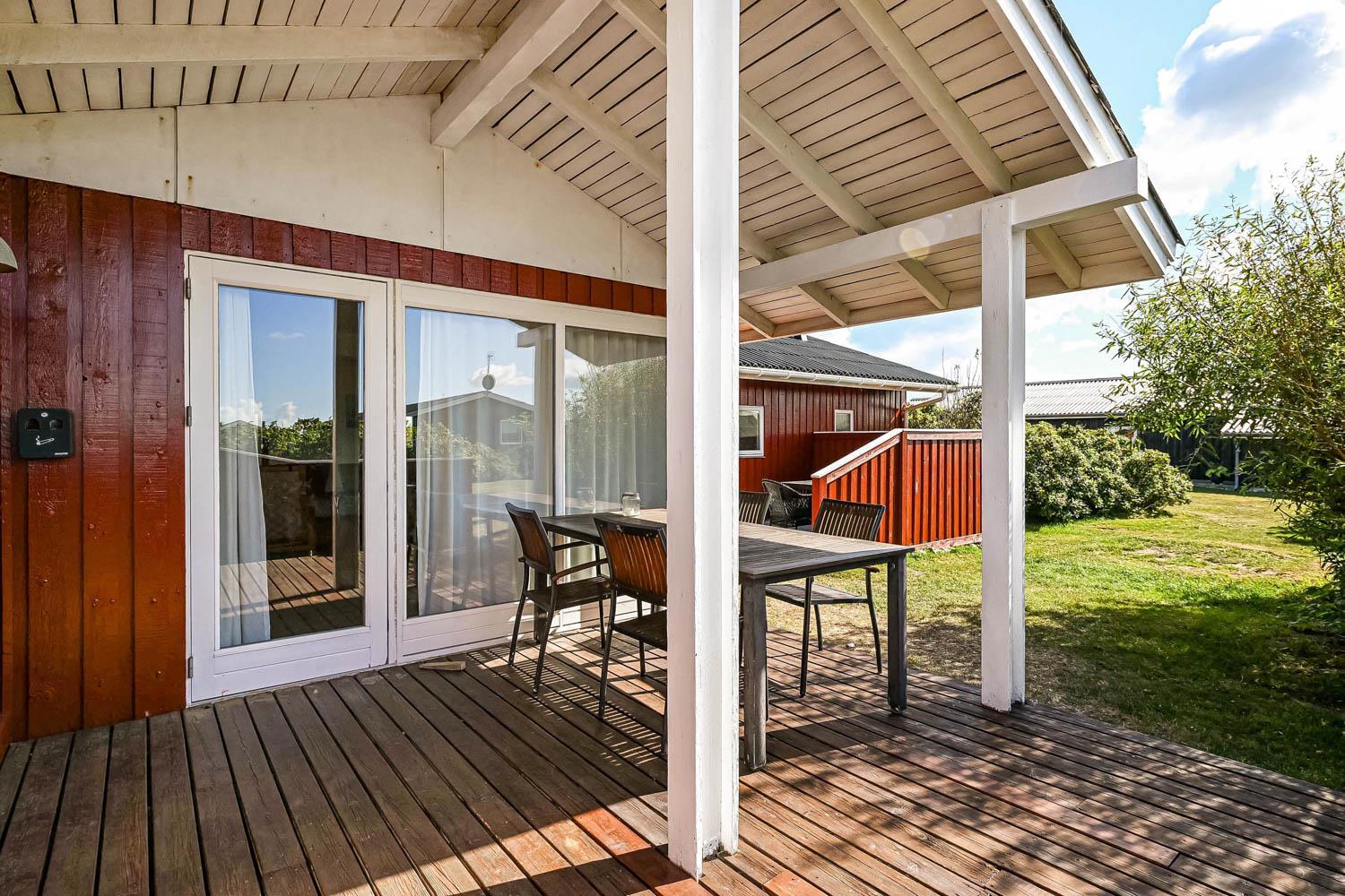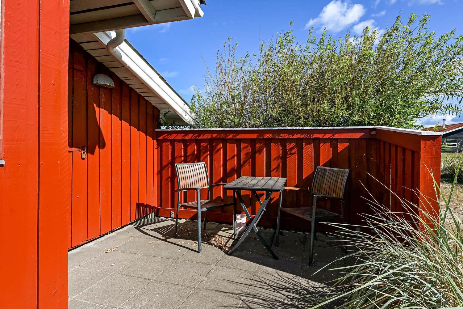 Das Haus wurde Jahr 1989 erbaut und in 2012 renoviert. Es liegt auf einem etwa 1.000 m² großen Grundstück. Vom Wohnraum gibt es einen Ausgang zur teilweise überdachten Holzterrasse mit Grill, Gartenmöbeln und Sonnenliegen. Offenes Grundstück mit Krokket und Stangentennis für die Kinder. Es gibt die Möglichkeit die Terrasse einzuzäunen mit einem abnehmbaren Drahtzaun. Das Haus liegt mitten in Vejlby Klit dicht am Ferring See und nur 400 m von der Nordsee entfernt. In der Saison gibt es ein Café bloss 200 m entfernt. Die zentrale Lage des Hauses bietet viele Möglichkeiten etwas zu unternehmen, zu Fuss oder mit dem Fahrrad. Außerdem gibt es in 50 m Entfernung einen Spielplatz und einen Petanqueplatz.