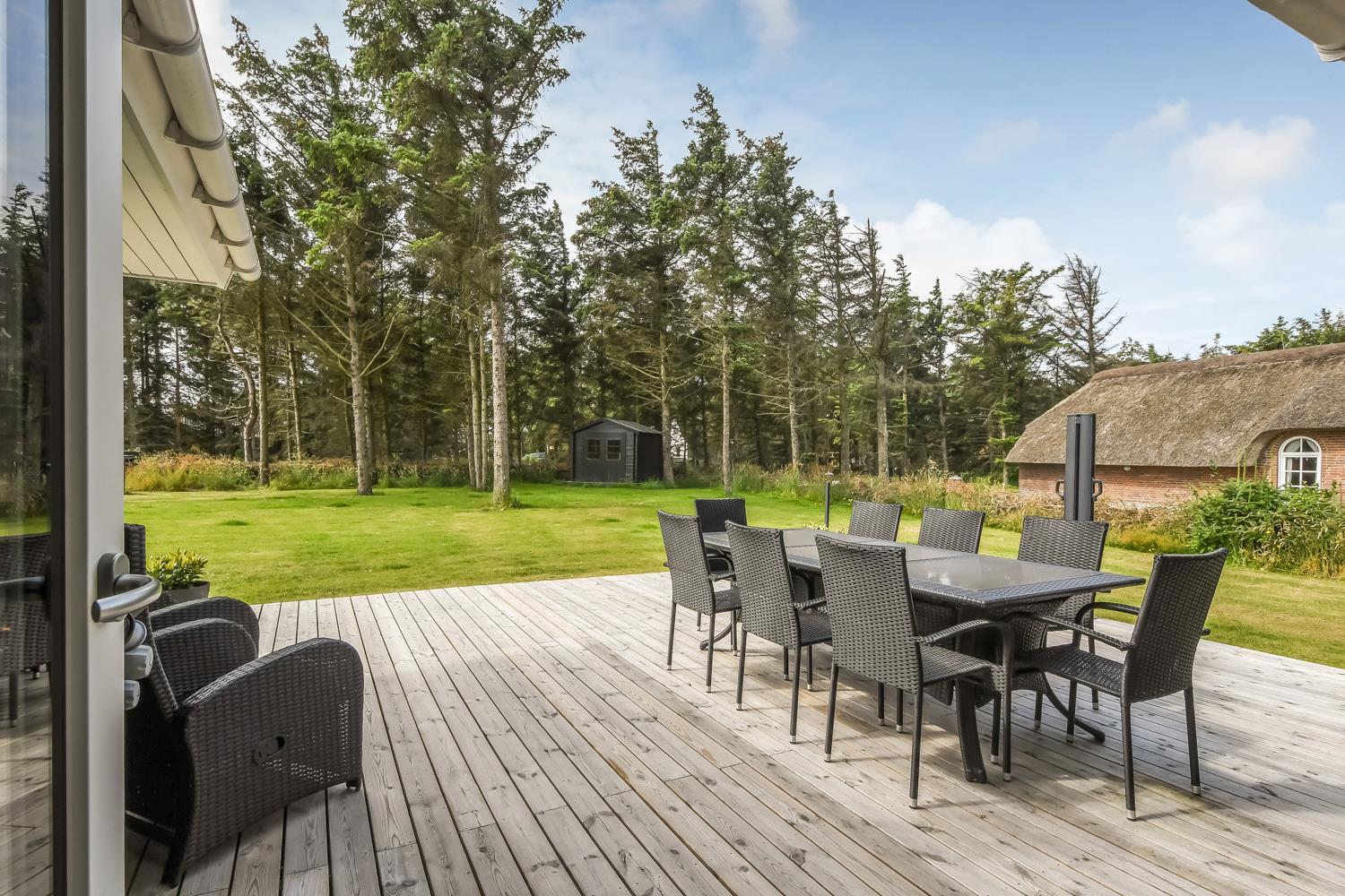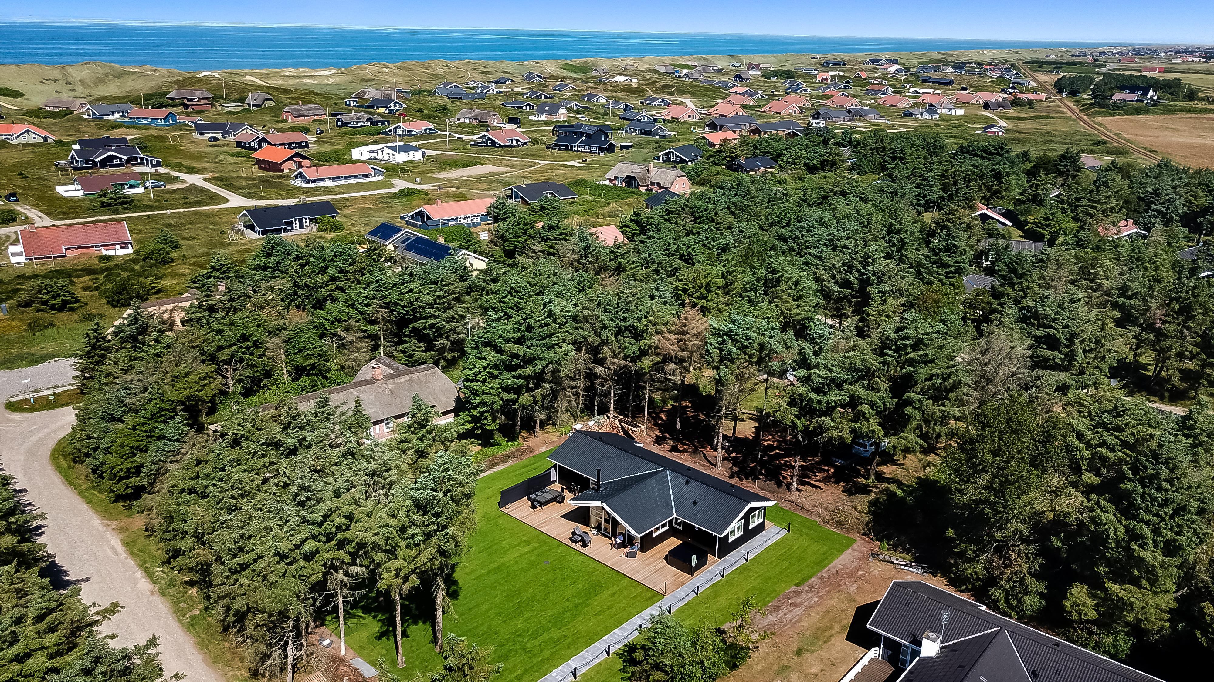 Es gibt viel Platz auf dem 1.202 qm großen, einzigartigen Naturgrund und auf der tollen Terrassenanlage und viele Möglichkeiten für einen Platz in der Sonne oder vielleicht im Schatten. Von hier aus haben Sie auch einen schönen Ausblick und es ist an das Meiste gedacht. Großer Gasgrill, viele Gartenmöbel und Sonnenliegen. Der Außen-Whirlpools bietet Ihnen ein ganz spezielles Erlebnis, besonders auch in den dunklen Abendstunden mit einem klaren Sternenhimmel. Dieses Erlebnis ist eine wahre Therapie für Körper und Seele. Das Haus liegt auf einem der besten Grundstücke in Vejlby Klit. Vom Grundstück gelangen Sie über Kieswege direkt über die Dünen zur Nordsee. So ist es nicht weit zu Strandvergnügungen wie baden, Drachen steigen lassen, angeln oder wandern in der frischen Luft. Die Wasserkante der Nordsee ist etwa 200 m vom Haus entfernt. Außerdem liegt das Haus dicht an einer von Westjütlands schönsten Fahrrad-/Wanderrouten. Es bietet z. B. die Möglichkeit, See und Nordsee zur gleichen Zeit zu beobachten und und es liegt unweit von Einkauf und Restaurant. Der nächste saisonal geöffnete Kaufladen liegt bloß 400 m entfernt; hier gibt es auch ein kleines Cafe/Restaurant. Wir empfehlen auch einen Besuch des Hafenortes Thyborøn -15 km nördlich vom Ferienhaus - oder der alten Handelsstadt Lemvig - etwa 13 km östlich vom Haus - entfernt. Dieses Haus bietet einen wunderbaren Luxus und ist geeignet für Paare oder die Familie, die gerne ein einmaliges Erlebnis wünschen, das Sie nicht vergessen werden, und die dicht an der Nordsee wohnen möchten.
