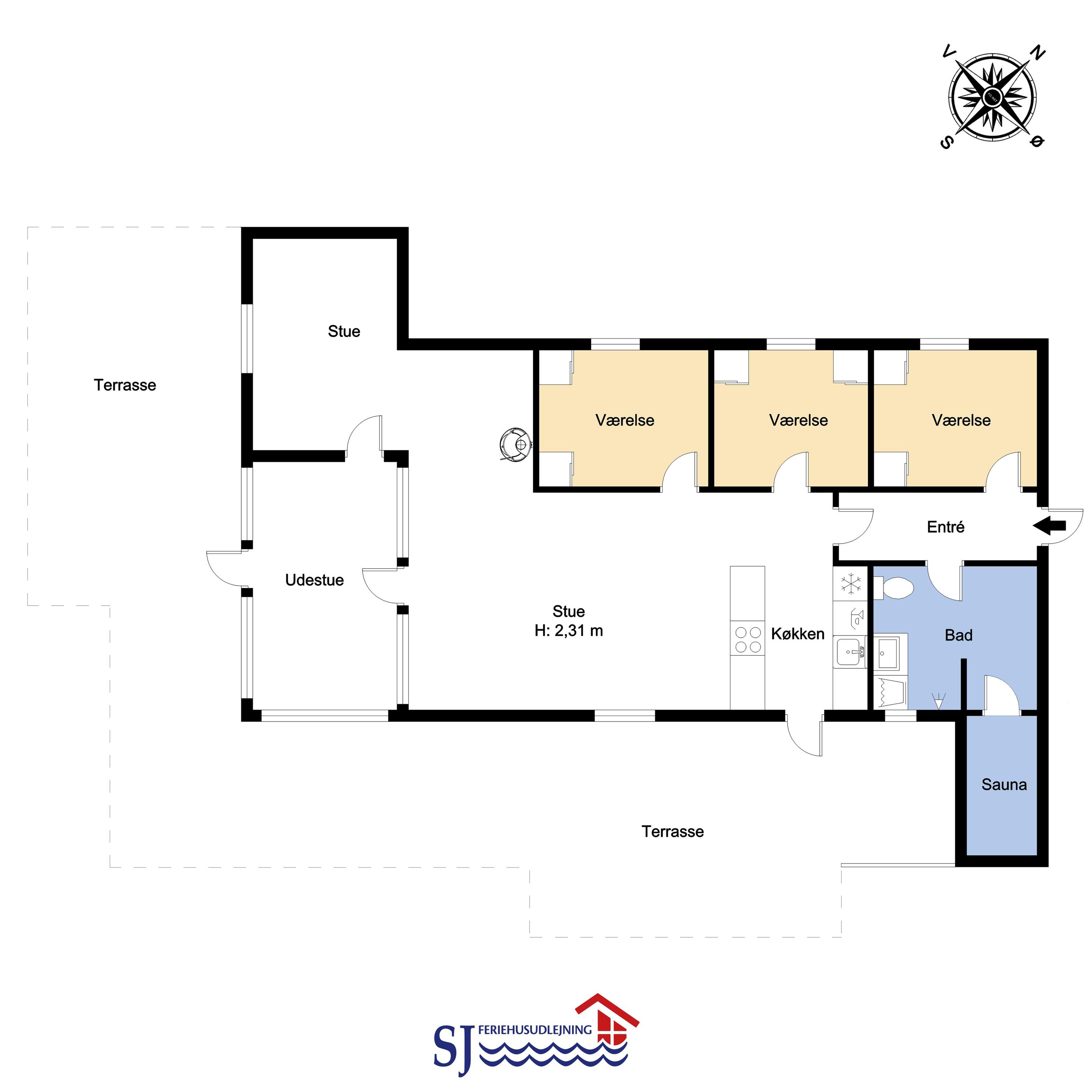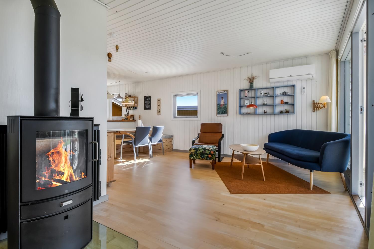 Parken Sie das Auto im Carport und ein Verteilerflur heißt Sie willkommen. Das Haus ist für 6 Personen und hat 3 Schlafräume: 1DB + 1DB + 1E. Badezimmer mit Dusche, Toilette, Waschbecken, Fliesenboden mit Fußbodenheizung, Waschmaschine und direkten Zugang zu einer kleinen Sauna. Gut ausgestattete Küche mit Geschirrspüler, Miniofen, Herd mit Ceranfeld-Kochplatten, Abzugshaube, Kühlschrank mit Gefrierfach, allem an Geschirr und Kochgeschirr und Ausgang zu einer schönen Terrasse. Schön möblierter Wohnraum mit Polstermöbeln, TV mit dänischen und deutschen Programmen und eine gemütliche Ecke mit einem Kaminofen, eine perfekte Stelle um hier ein Buch zu lesen oder ein Spiel zu spielen. Esstisch mit Eckbank direkt an der Küche. Zugang zur schönen Gartenstube mit noch einem Esstisch und schönen Holzmöbeln. Das Ferienhaus wird mit einer Wärmepumpe beheizt. Es gibt Pergolaboden in allen Aufenthaltsräumen und in den Schlafräumen. Nichtraucher-Haus. Max. 2 Haustiere sind erlaubt.