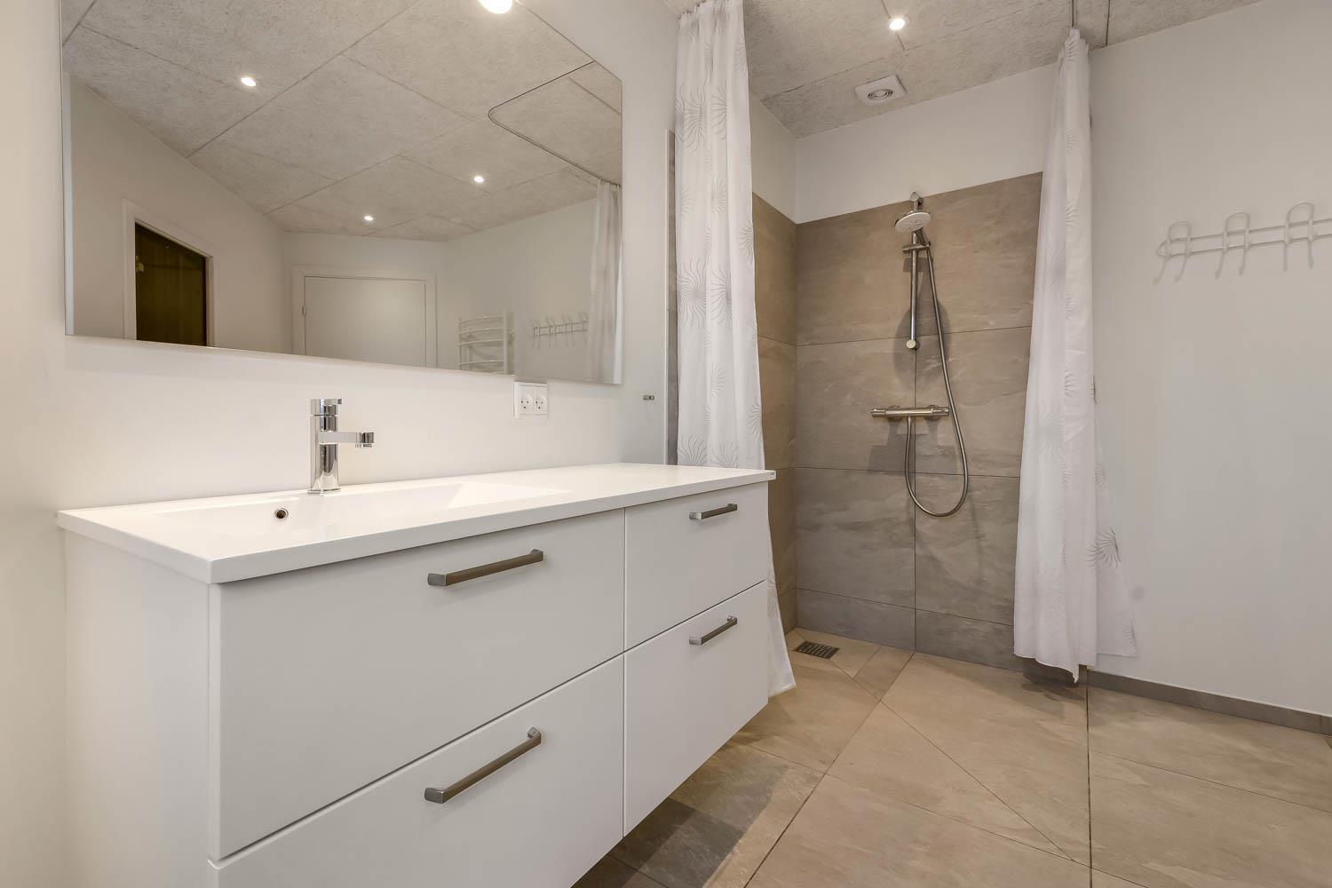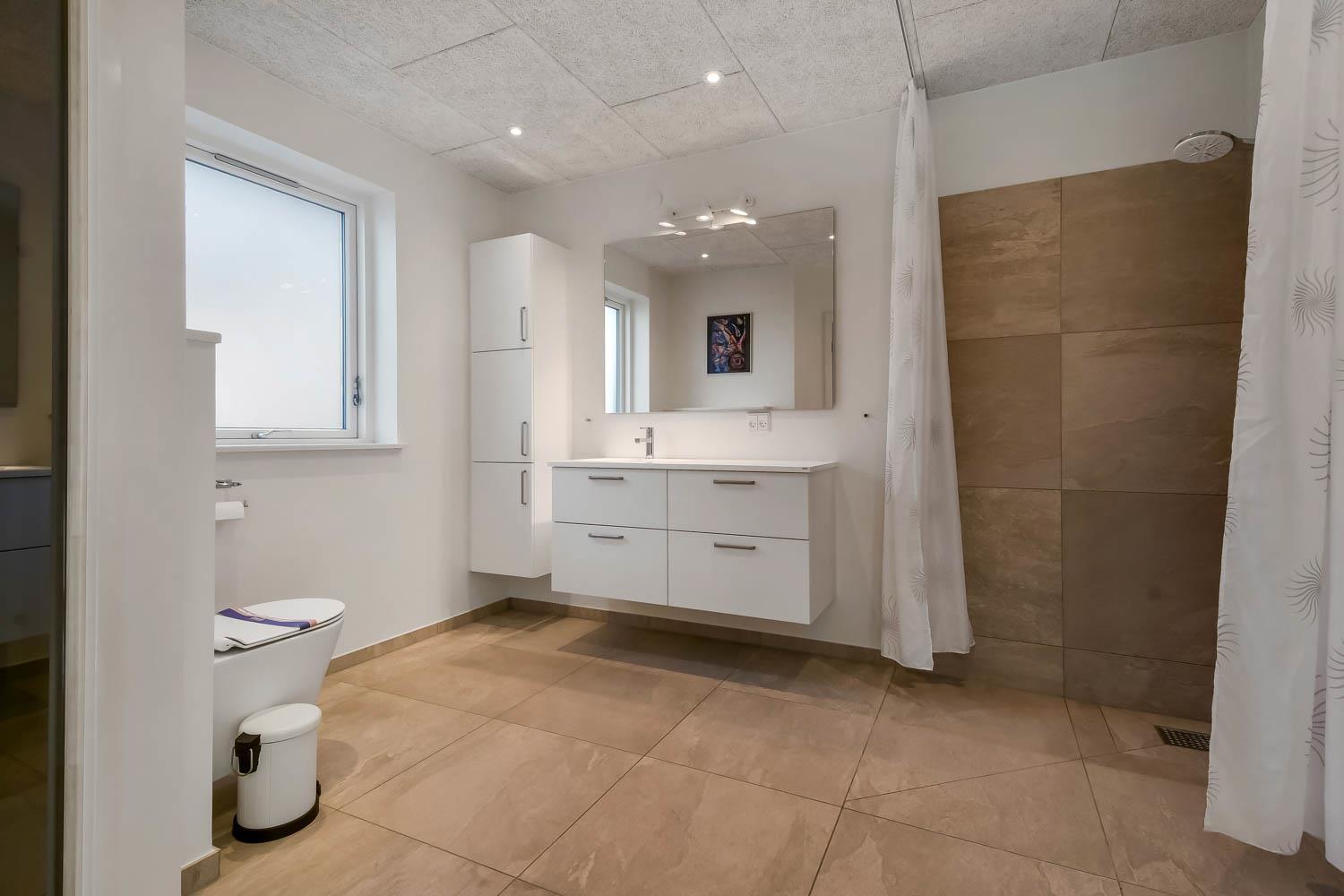 Energieverbrauch sorgt. Schöner Küchenbereich mit prachtvollem Blick über die Landschaft. Es gibt alles an Geschirr und Kochgeschirr, Geschirrspüler, Herd mit Cerankochfeld, eingebauten Ofen, Abzugshaube, Kühlschrank mit Gefrierfach und Mikrowelle. Es gibt Fenster oben an der Decke,die zusammen mit der Höhe des Raumes für ein gutes Innenklima sorgen. Grosses schönes Badezimmer mit Dusche, Waschbecken, Toilette, direkter Zugang zur Sauna und Fliesenboden mit Fussbodenheizung. Vom Flur aus gibt es einen Eingang zum extra Badezimmer mit Dusche, Toilette, Waschbecken und Fliesenboden mit Fussbodenheizung. Das Haus hat 3 schöne Schlafräume: 1DB + 1DB + 1DB – eins von den Betten hat eine extra Länge (220 cm). Ausserdem, gibt es einen offenen Schlafboden, der für Begeisterung von Kindern und Kinderseelen sorgt. Es gibt freies WLAN. Nichtraucher-Haus. Haustiere sind nicht erlaubt. In der Garage stehen Aktivitäten wie Tischtennis, Darts, Bob-Spiel und Sitzgelegenheiten zur Verfügung. Rauchen ist verboten