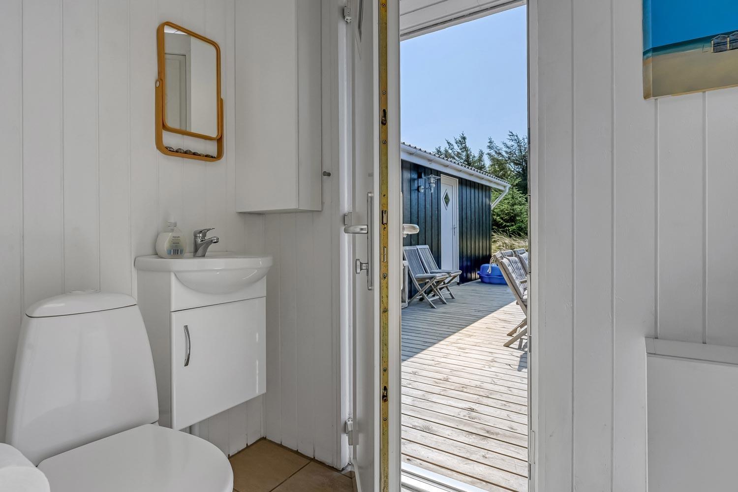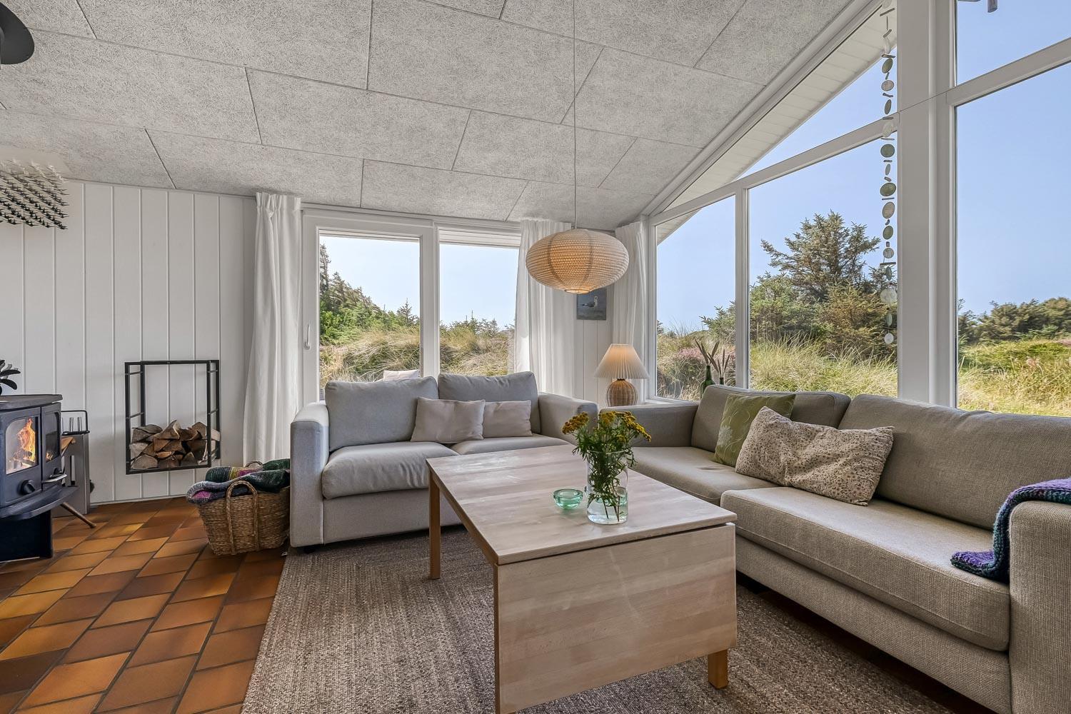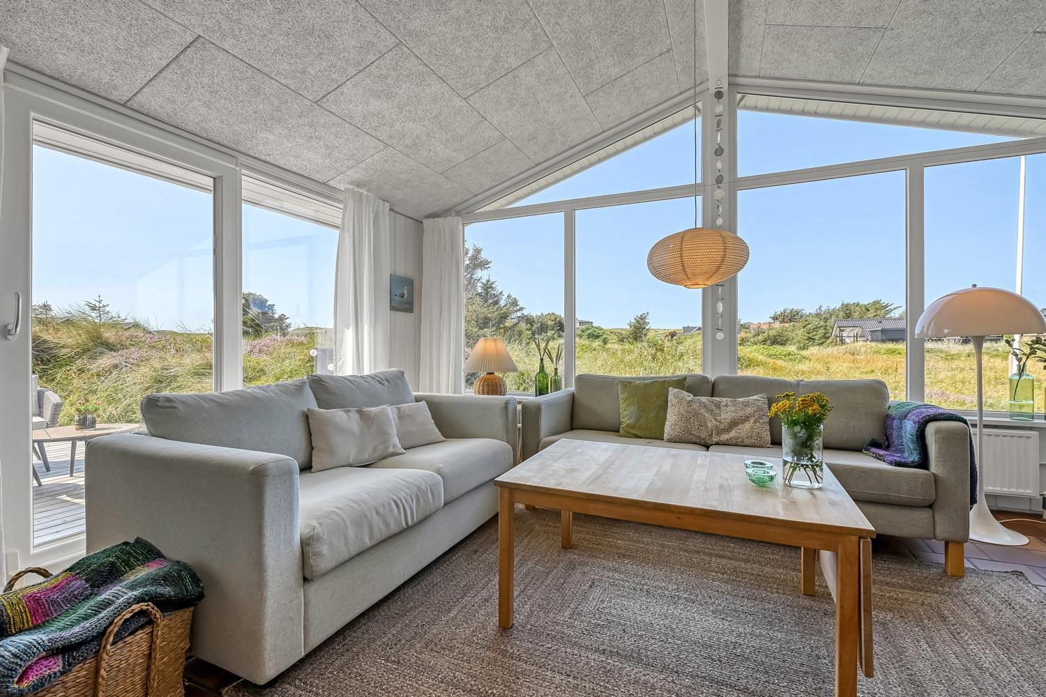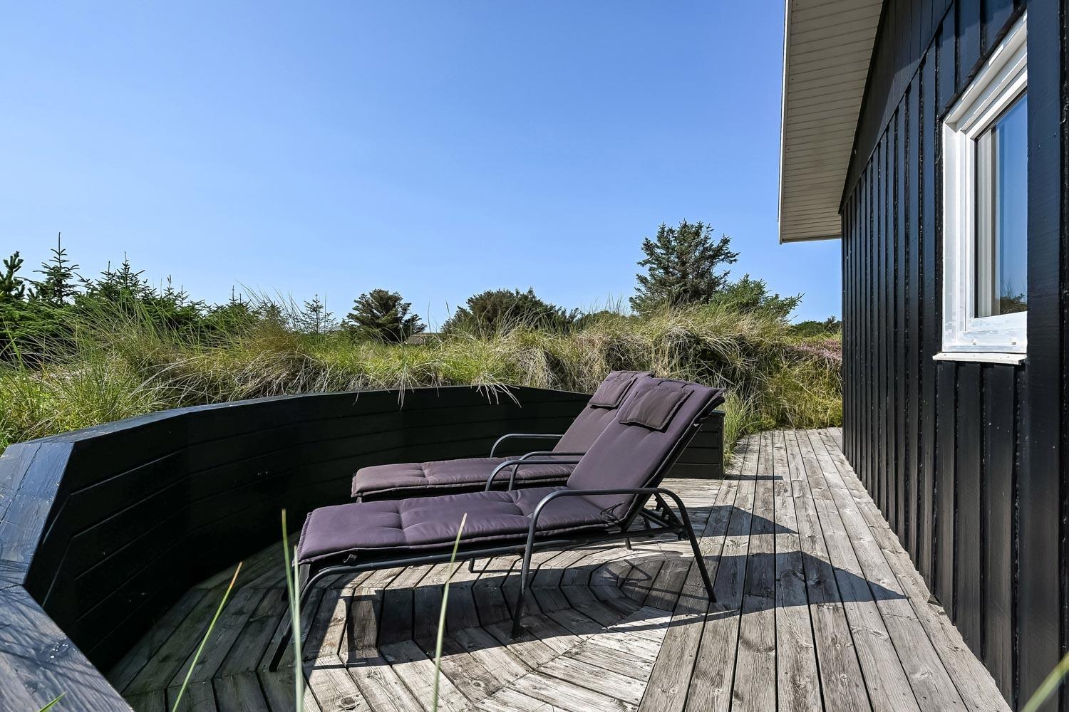 Das Haus liegt auf einem etwa 2.500 m2 grossen Naturgrundstück . Vom Flur gibt es einen Ausgang zu einer ganz fantastischen, geschlossenen und überdachten Terrassenanlage von etwa 60 m2 mit guten Gartenmöbeln, Sonnenliegen, Sonnenschirm und Grill. Eine Anlage, wo Sie immer Windschutz finden, auch an den windigen Tagen. Geniessen Sie einen Grillabend, egal wie das Wetter ist,Ein schönes Naturgrundstück mit vielen Möglichkeiten. In Vejlby Klit und Umgebung gibt es gute Möglichkeiten um Fahrrad zu fahren, Wanderungen zu unternehmen oder zu laufen. Das Haus liegt bloss etwa 200 m von der Nordsee entfernt, die jeden Tag aufs neue malerische Erlebnisse bietet. Bloss 400 m vom Haus liegt Ferring See hier ist gute möglichkeiten für Kite Surfing. In der Saison können Sie Ihre Brötchen und Lebensmitteln beim Kaufladen besorgen, oder Sie können im kleinen Restaurant John Wayne zum Essen gehen. Dieses sehr spezielle und sehr charmante Haus ist eine Klasse für sich und bietet ein Urlaubserlebniss, egal zu welcher Jahreszeit.
