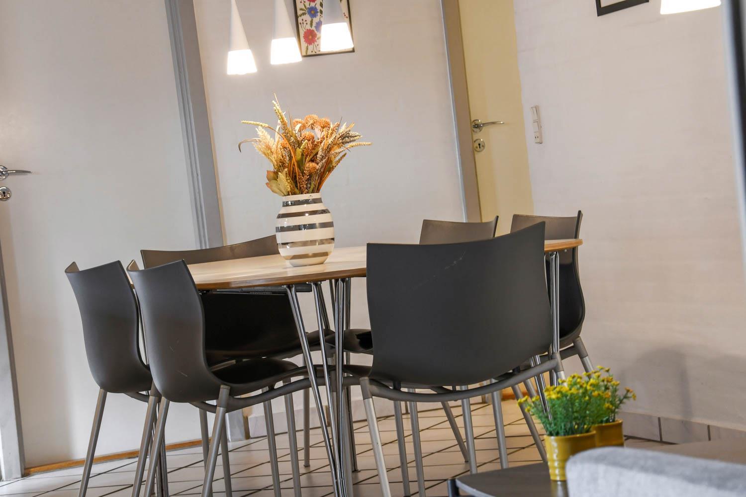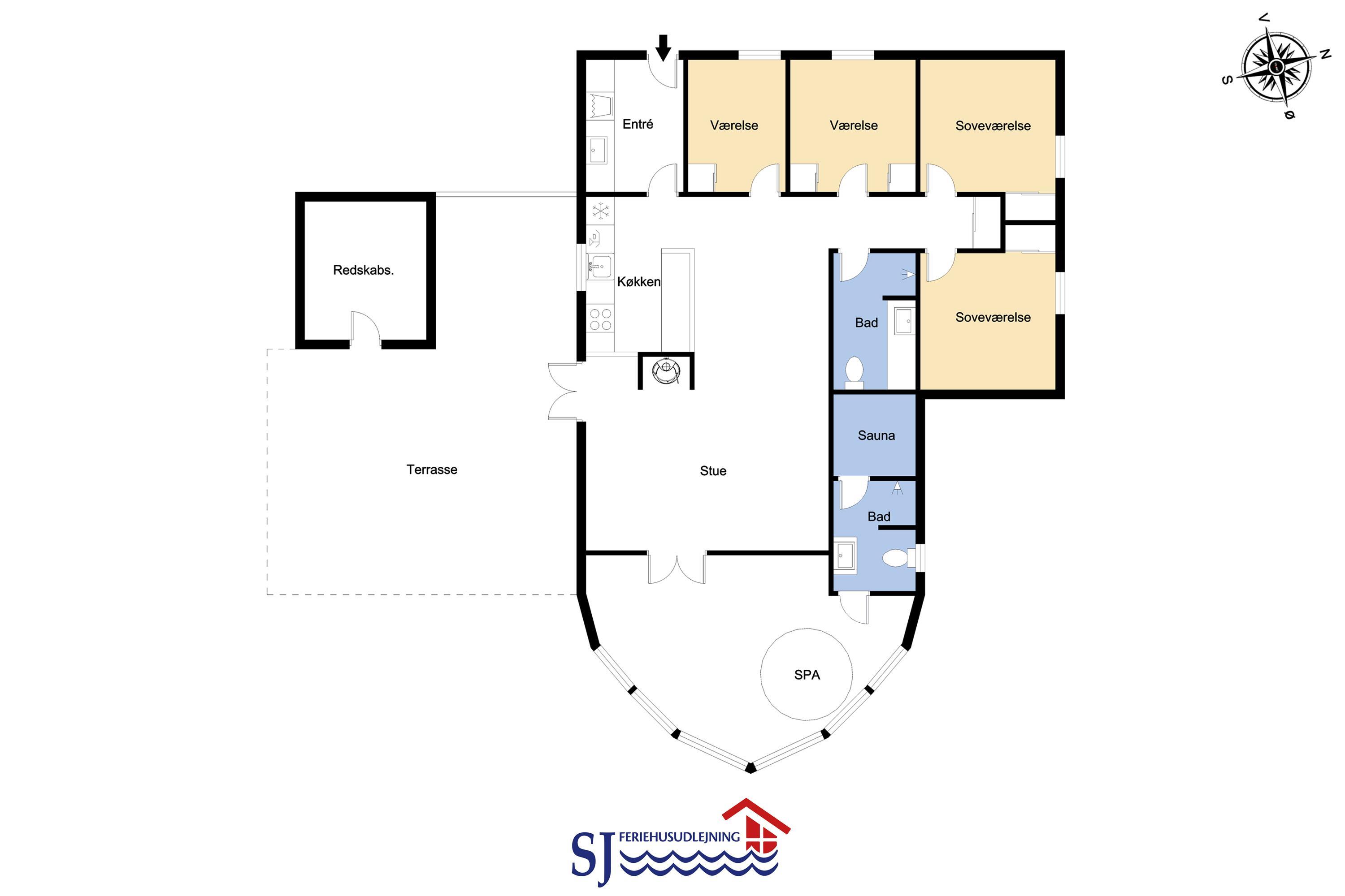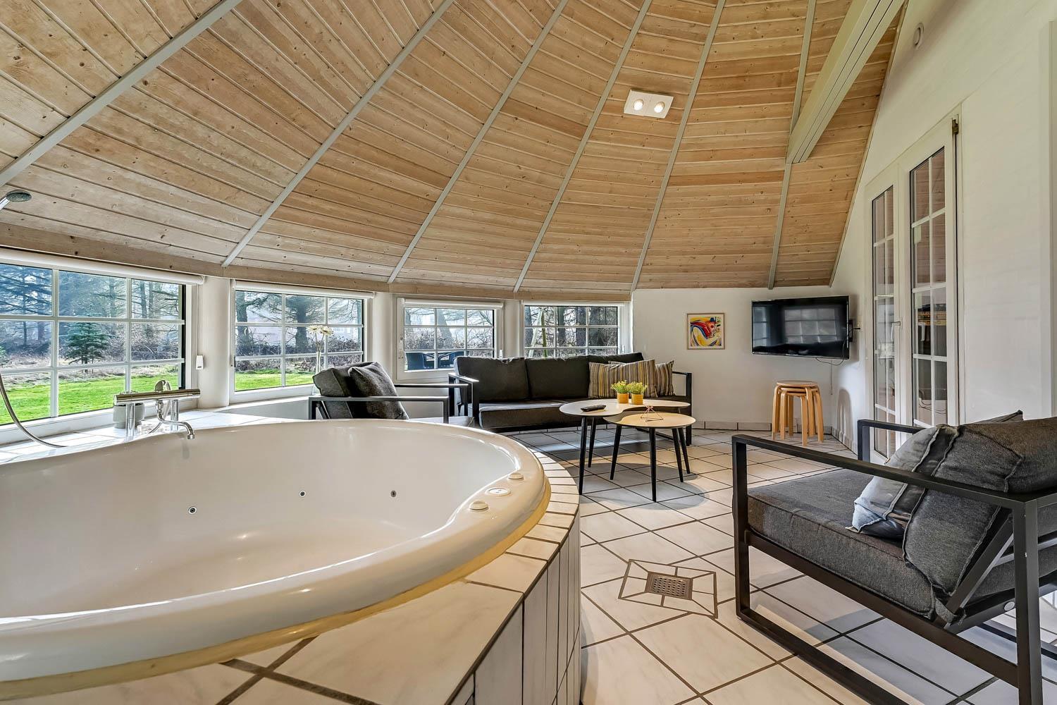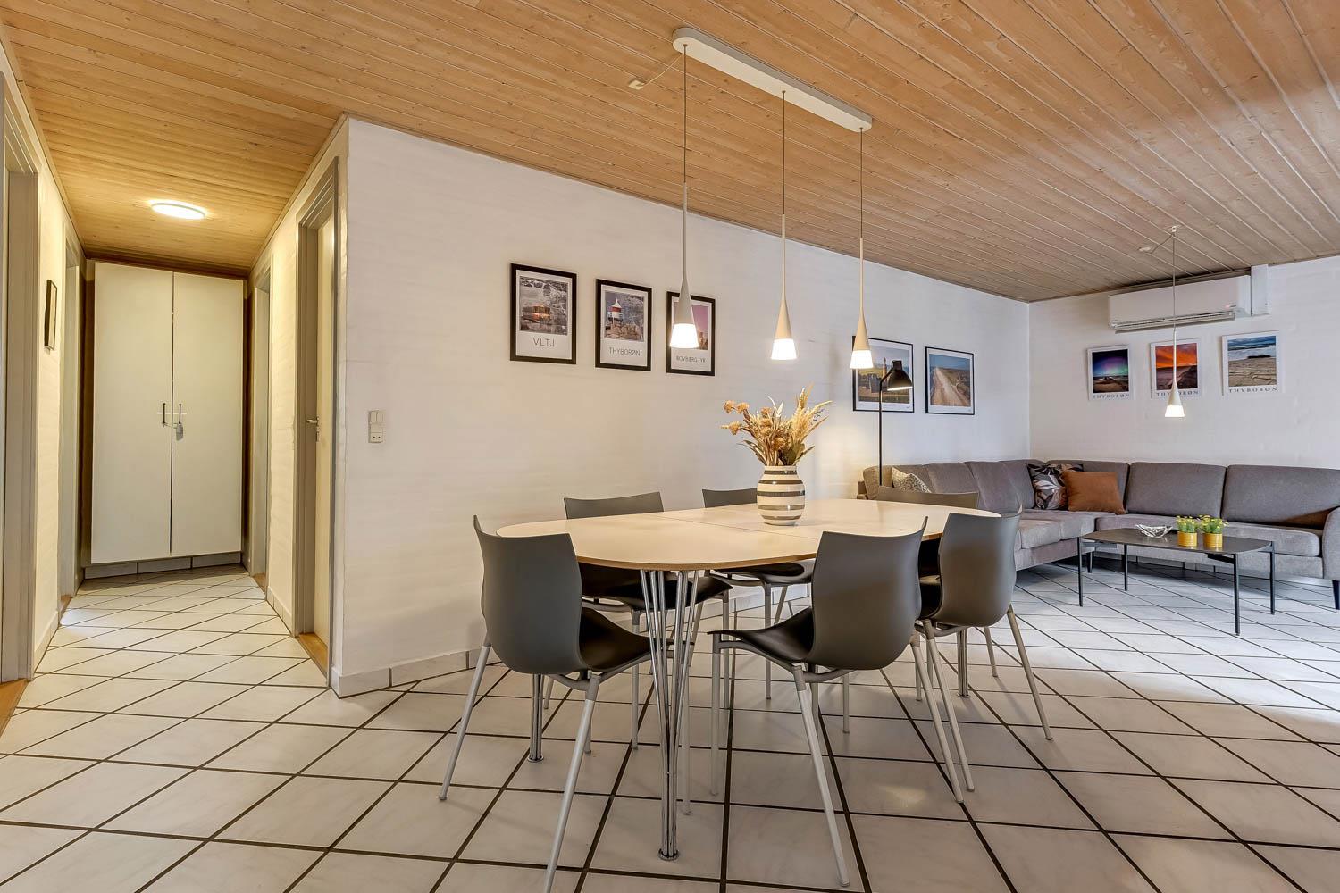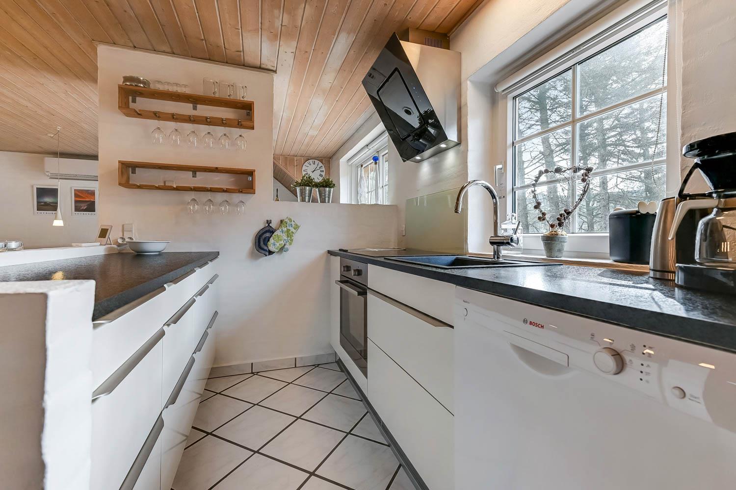 Parken Sie das Auto auf dem angelegten Hofplatz und beginnen Sie mit dem Auspacken. Ein schöner Eingangbereich mit Waschbecken, Waschmaschine und Trockner heißt Sie willkommen und führt direkt in die neue, moderne Küche aus 2018. Hier gibt es alles an Geschirr und Kochgeräten. Die schicke, offene Küche ist ausgestattet mit Cerankochfeld, Backofen, Dunstabzugshaube, Mikrowelle, Kühlschrank mit Gefrierfach und Geschirrspüler. Neben der Küche befindet sich der Esstisch für 8 Personen mit ausreichend Platz für die ganze, hungrige Familie. Der Wohnraum hat ein schönes Ecksofa, von dem Sie dänische und deutsche Programme auf dem Flachbild-Schirm sehen können, der an der Wand hängt. Ein schöner Kaminofen und eine stromsparende Wärmepumpe sorgen dafür, dass Sie das Haus aufwärmen können und die Wärme an kalten Tagen halten können; die moderne Genvexanlage sorgt im Haus für einen Luftaustausch bis zu 92%, schafft ein fantastisches Raumklima und hilft, bei der Stromrechnung zu sparen. Vier große und helle Zimmer (1 DB, 1 DB, 2 EB, 1 Etagenbett). Das Badezimmer verfügt über Dusche, Toilette, Waschbecken und Fliesenboden mit Fußbodenheizung. Gehen Sie am Fernseher vorbei und schließen Sie die Tür zu einem ganz besonderen und einzigartigen Wellnessraum mit großem Whirlpool, Sauna sowie einem zusätzlichen Badezimmer mit Dusche, Toilette, Waschbecken und Fliesenboden mit Fußbodenheizung. Im Wellnessbereich gibt es auch bequeme Sitzmöglichkeiten. Das Haus hat Fliesenböden im Wohnzimmer und in der Küche sowie Holzböden in den Schlafzimmern. Es ist daher sehr pflegeleicht. Nichtraucherhaus. 2 Haustiere erlaubt.