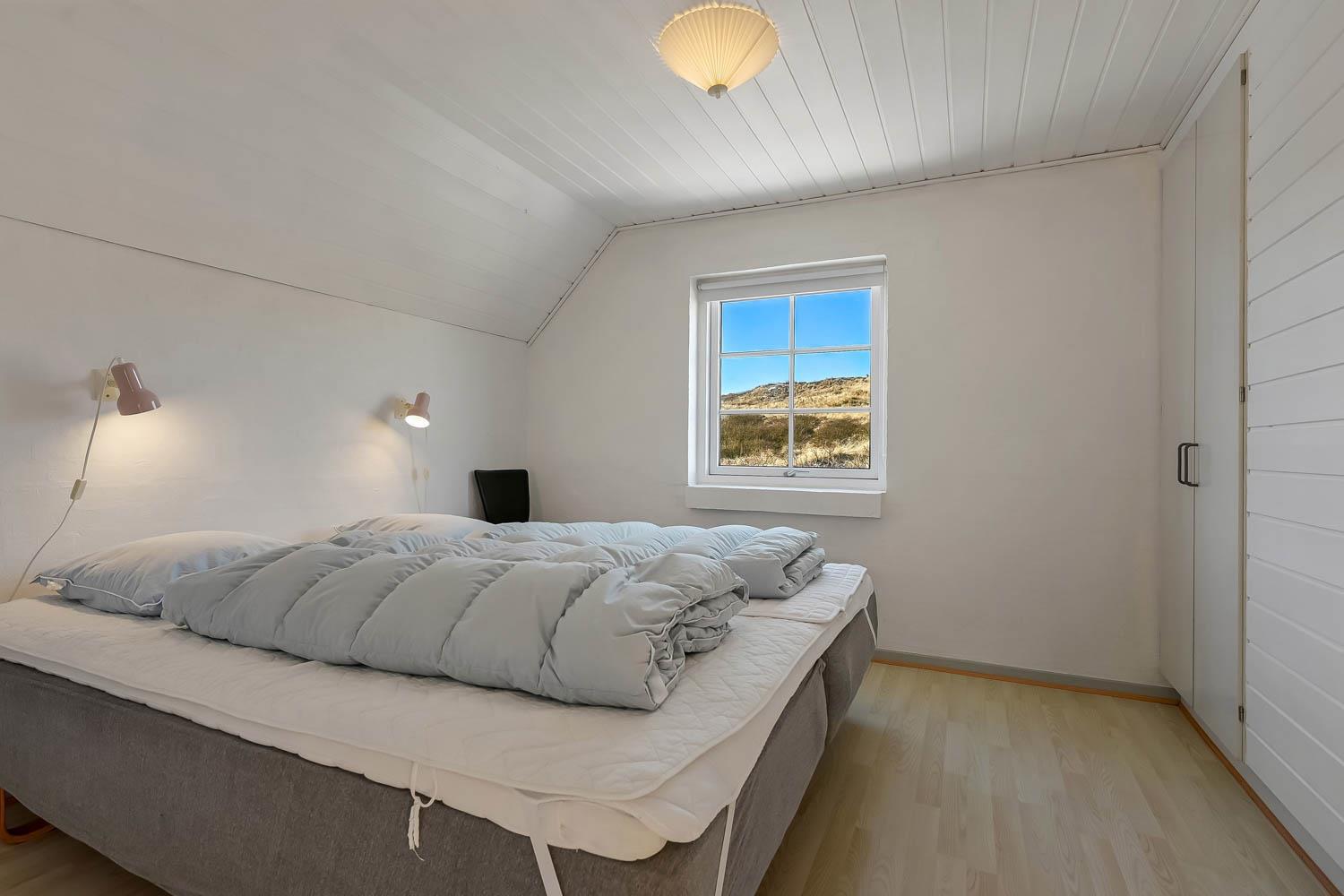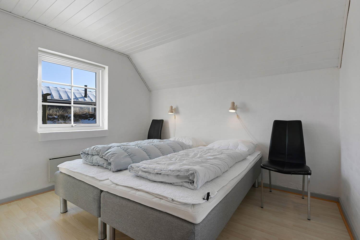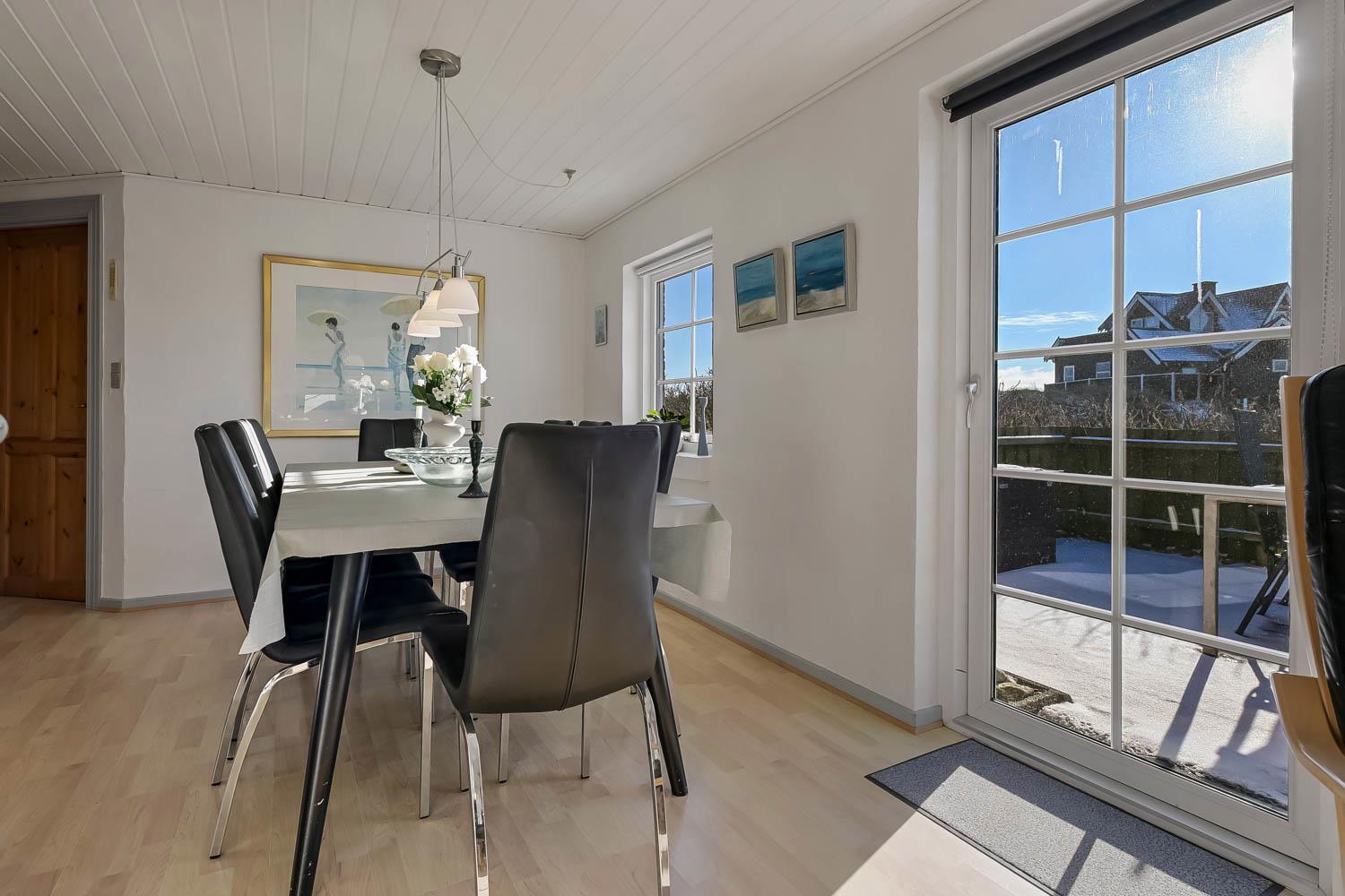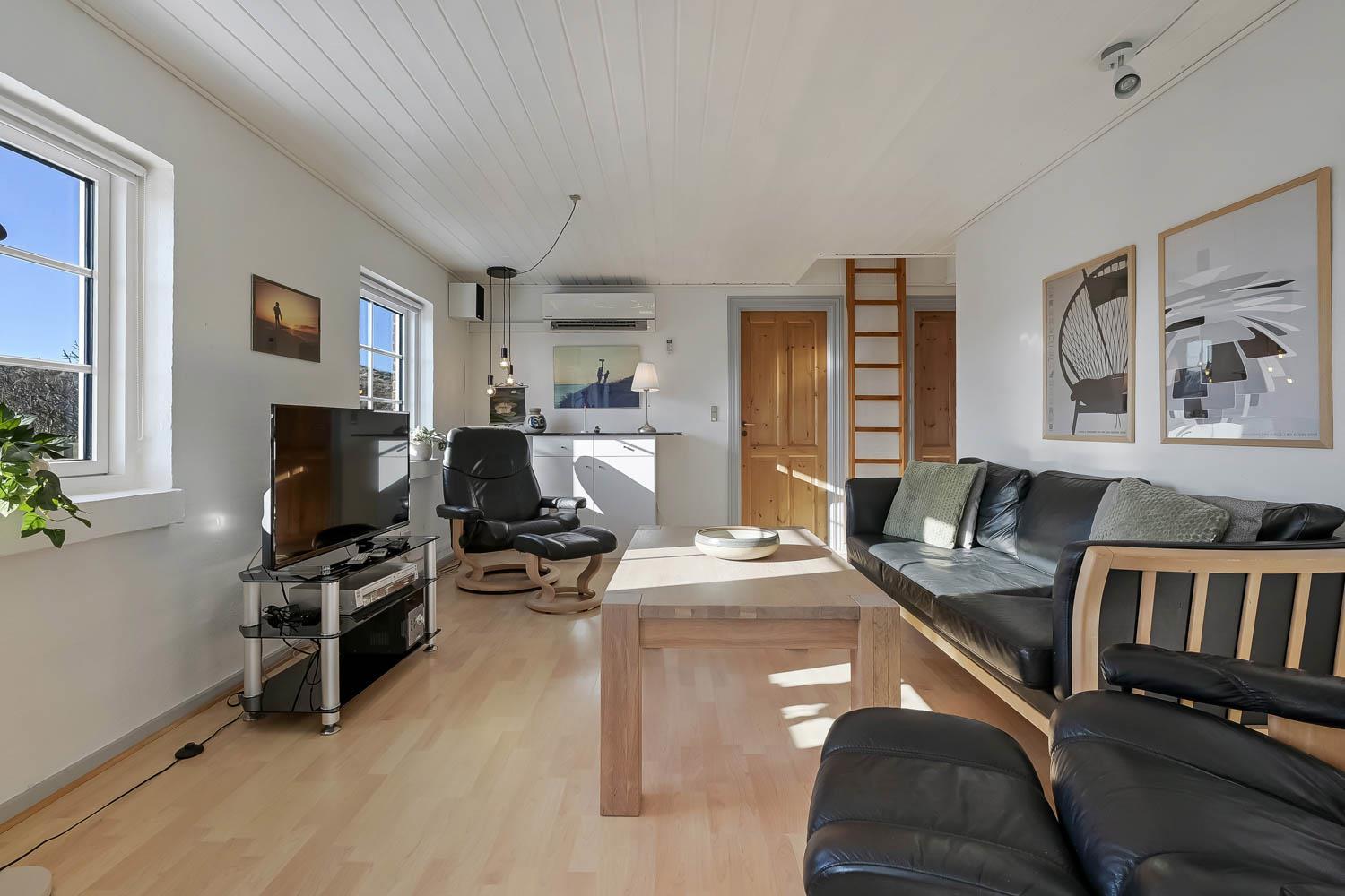 Dieses 120 m² große Haus wurde 1991 gebaut und im Jahr 2015 kontinuierlich renoviert. Es bietet ein helles und gemütliches Wohnzimmer mit Linoleumboden, das mit Ledermöbeln und einem Fernseher mit dänischen und deutschen Kanälen ausgestattet ist. Außerdem gibt es einen DVD- und CD-Player sowie ein Radio. Im Wohnzimmer befindet sich auch ein gemütlicher Kaminofen sowie eine Wärmepumpe, die zur Beheizung des Hauses beitragen. Die offene Küche ist in das Wohnzimmer und den Essbereich integriert, wo alle Gäste des Hauses Platz finden. Die Küche ist mit einem Glaskeramikherd, Abzugshaube, Mikrowelle, Kühl-/Gefrierschrank, Geschirrspüler und Fliesenboden ausgestattet. Das Haus verfügt über 3 gute Schlafzimmer, jedes mit einem Doppelbett. Im Wohnzimmer befindet sich der Aufgang zum Schlafboden, wo zwei weitere Schlafmöglichkeiten vorhanden sind. An beiden Enden des Hauses befindet sich ein Badezimmer. Eines der Badezimmer ist mit Toilette, Waschbecken, Dusche und Fliesenboden ausgestattet. Das andere Badezimmer verfügt ebenfalls über Toilette, Waschbecken, Dusche sowie einen Whirlpool und eine Sauna. Auch hier ist der Boden mit Fliesen belegt. Außerdem gibt es für die kleinsten Gäste einen Hochstuhl, ein Kinderbett, eine Babybadewanne und einen Wickeltisch. Sollte während des Urlaubs Wäsche gewaschen werden müssen, stehen Waschmaschine und Trockner zur Verfügung.