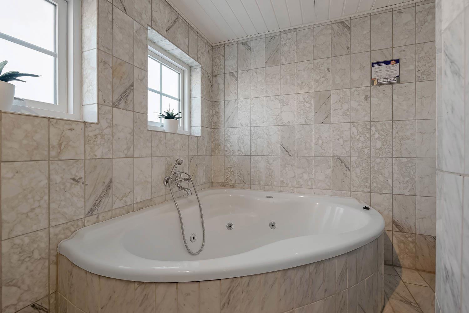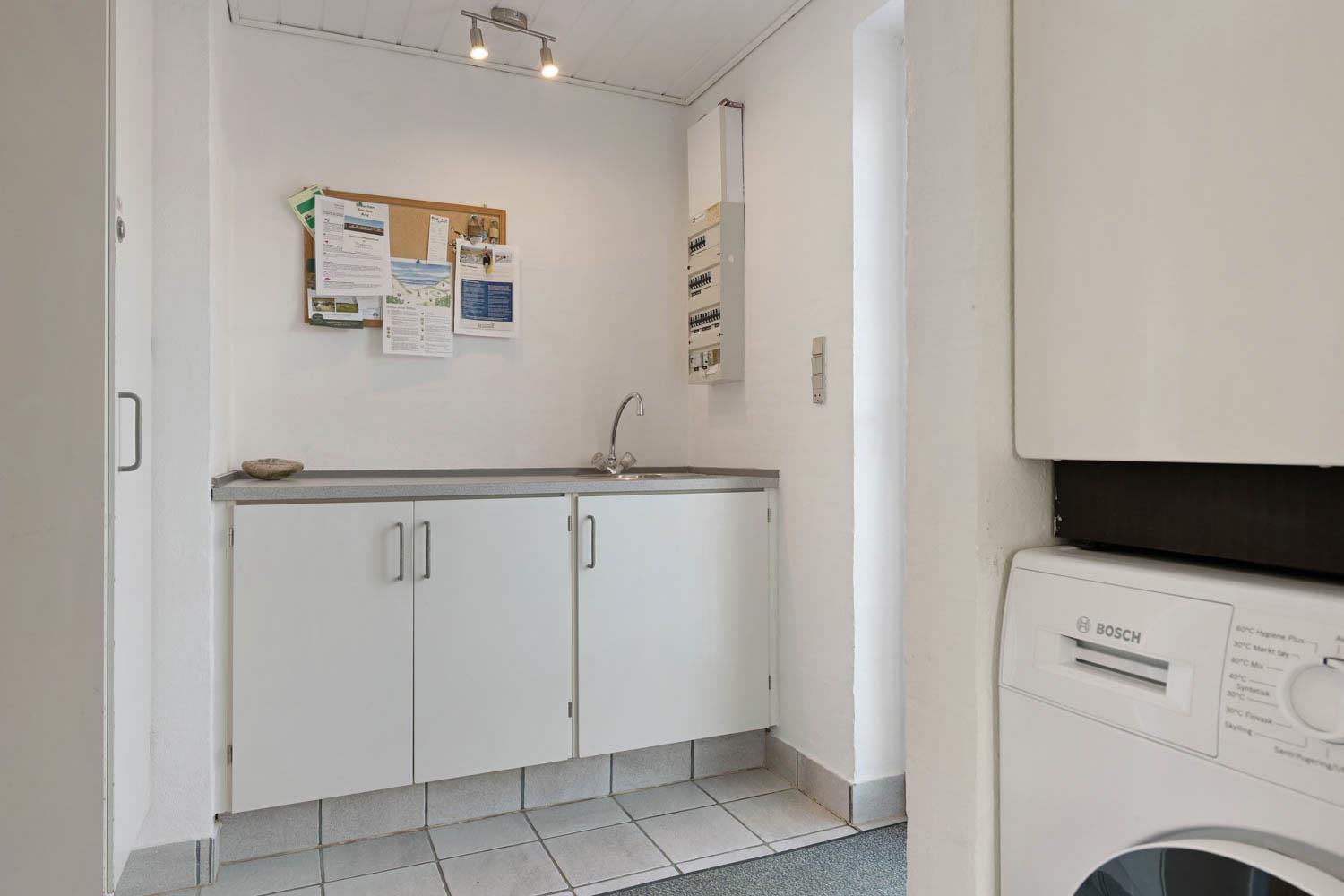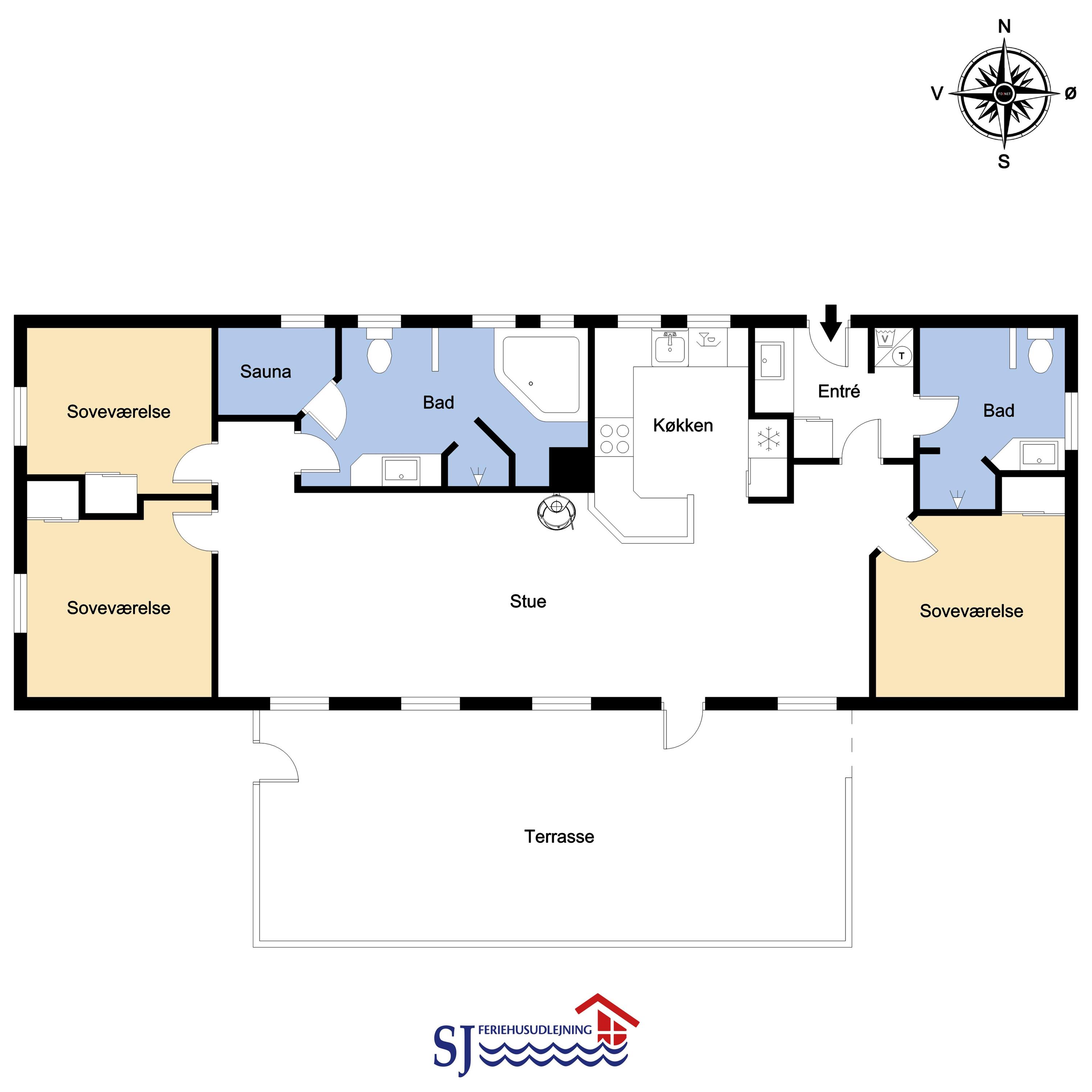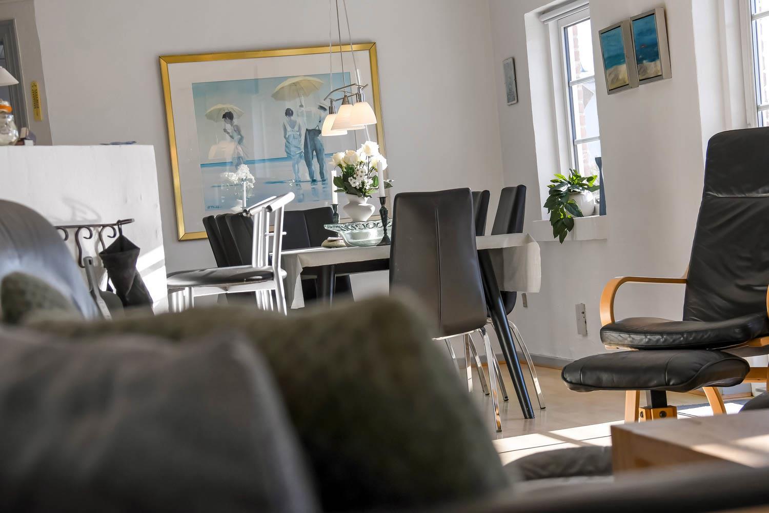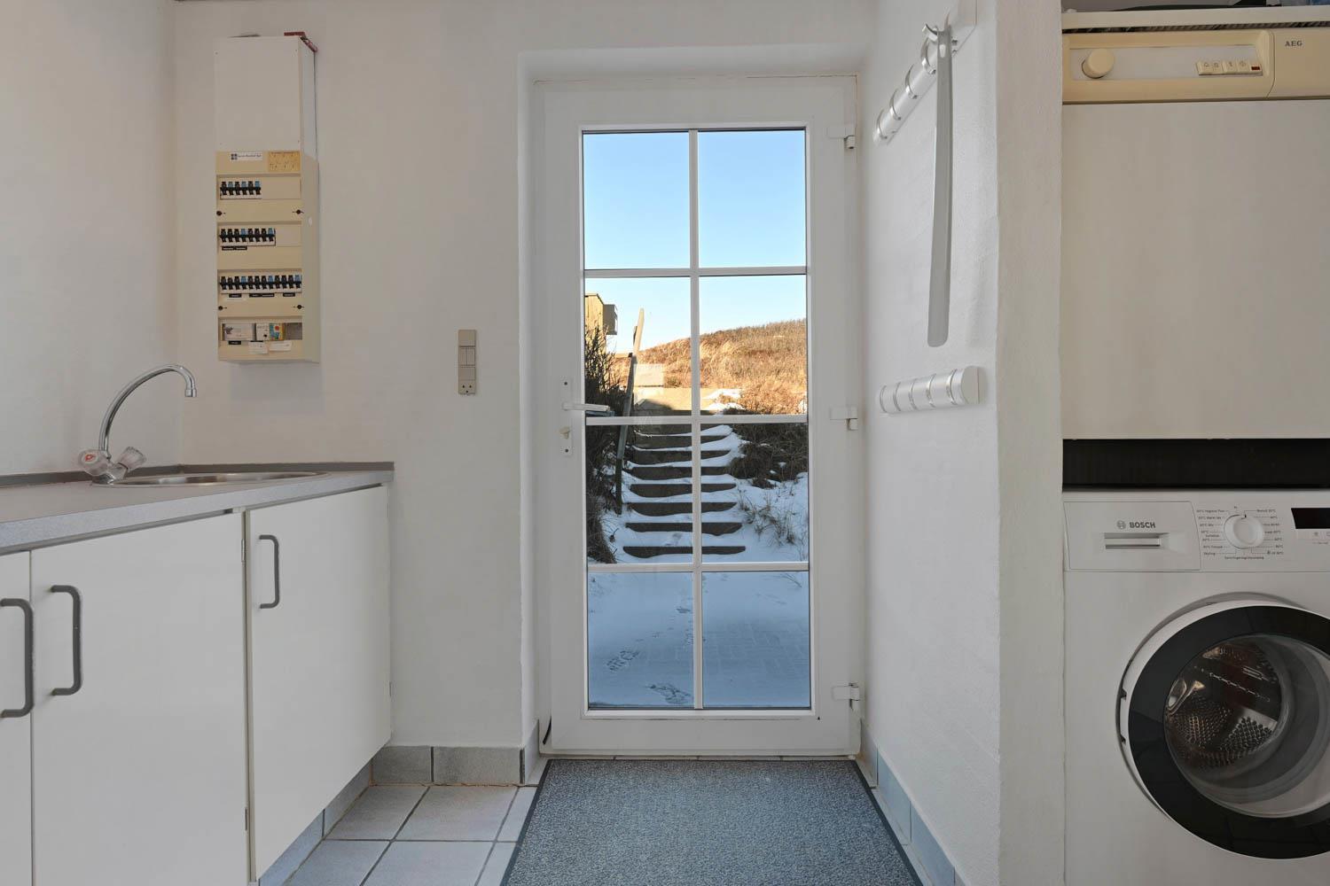 Dieses 120 m² große Haus wurde 1991 gebaut und im Jahr 2015 kontinuierlich renoviert. Es bietet ein helles und gemütliches Wohnzimmer mit Linoleumboden, das mit Ledermöbeln und einem Fernseher mit dänischen und deutschen Kanälen ausgestattet ist. Außerdem gibt es einen DVD- und CD-Player sowie ein Radio. Im Wohnzimmer befindet sich auch ein gemütlicher Kaminofen sowie eine Wärmepumpe, die zur Beheizung des Hauses beitragen. Die offene Küche ist in das Wohnzimmer und den Essbereich integriert, wo alle Gäste des Hauses Platz finden. Die Küche ist mit einem Glaskeramikherd, Abzugshaube, Mikrowelle, Kühl-/Gefrierschrank, Geschirrspüler und Fliesenboden ausgestattet. Das Haus verfügt über 3 gute Schlafzimmer, jedes mit einem Doppelbett. Im Wohnzimmer befindet sich der Aufgang zum Schlafboden, wo zwei weitere Schlafmöglichkeiten vorhanden sind. An beiden Enden des Hauses befindet sich ein Badezimmer. Eines der Badezimmer ist mit Toilette, Waschbecken, Dusche und Fliesenboden ausgestattet. Das andere Badezimmer verfügt ebenfalls über Toilette, Waschbecken, Dusche sowie einen Whirlpool und eine Sauna. Auch hier ist der Boden mit Fliesen belegt. Außerdem gibt es für die kleinsten Gäste einen Hochstuhl, ein Kinderbett, eine Babybadewanne und einen Wickeltisch. Sollte während des Urlaubs Wäsche gewaschen werden müssen, stehen Waschmaschine und Trockner zur Verfügung.