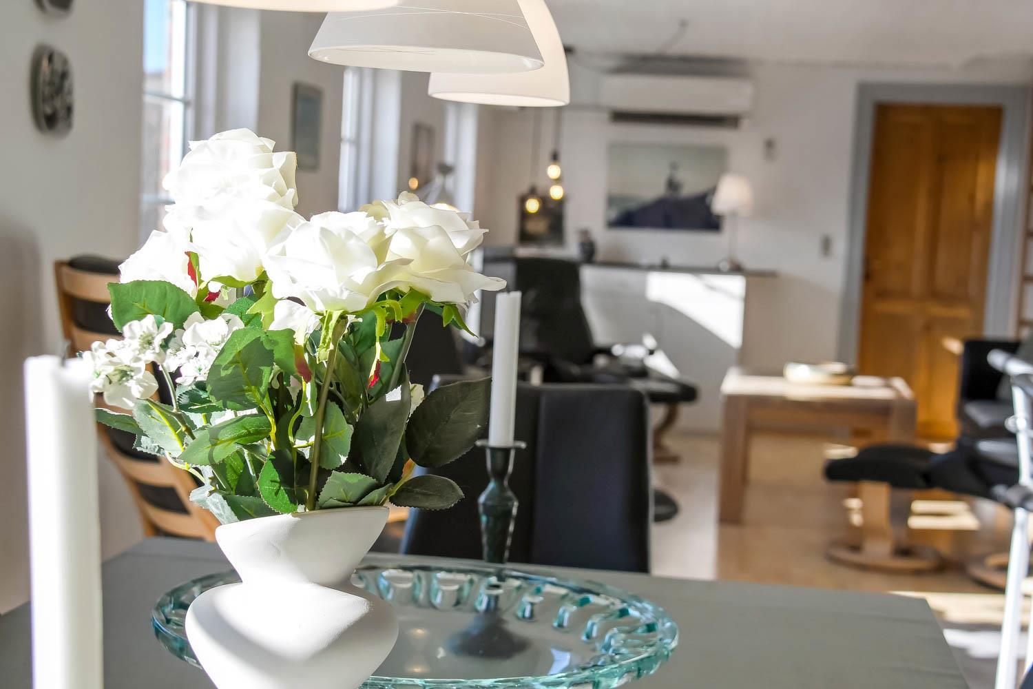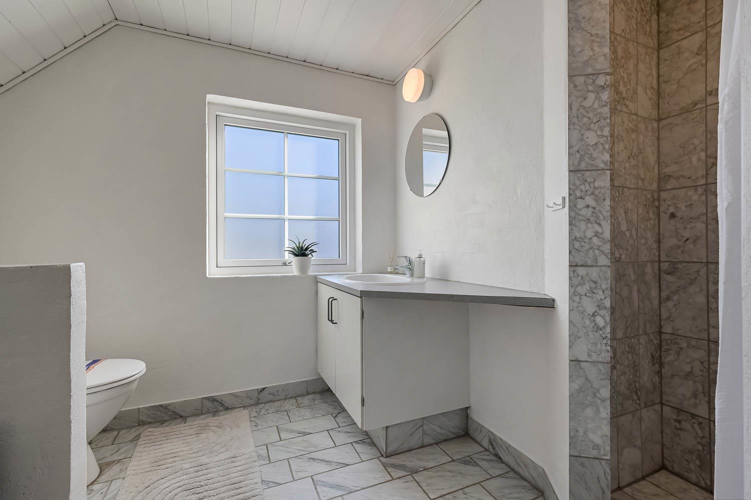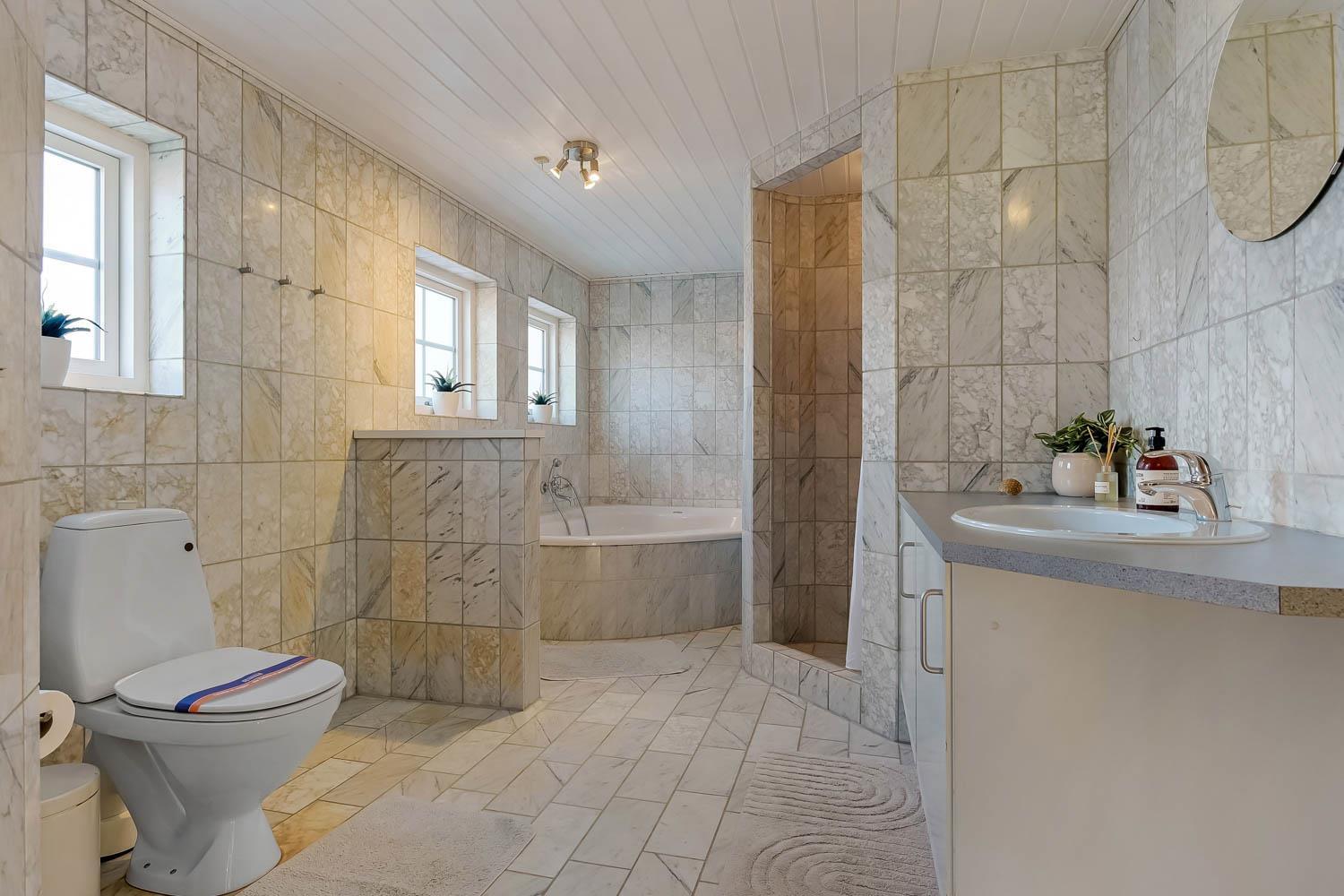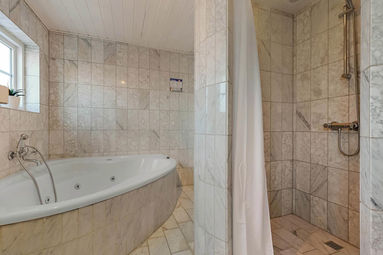 Dieses 120 m² große Haus wurde 1991 gebaut und im Jahr 2015 kontinuierlich renoviert. Es bietet ein helles und gemütliches Wohnzimmer mit Linoleumboden, das mit Ledermöbeln und einem Fernseher mit dänischen und deutschen Kanälen ausgestattet ist. Außerdem gibt es einen DVD- und CD-Player sowie ein Radio. Im Wohnzimmer befindet sich auch ein gemütlicher Kaminofen sowie eine Wärmepumpe, die zur Beheizung des Hauses beitragen. Die offene Küche ist in das Wohnzimmer und den Essbereich integriert, wo alle Gäste des Hauses Platz finden. Die Küche ist mit einem Glaskeramikherd, Abzugshaube, Mikrowelle, Kühl-/Gefrierschrank, Geschirrspüler und Fliesenboden ausgestattet. Das Haus verfügt über 3 gute Schlafzimmer, jedes mit einem Doppelbett. Im Wohnzimmer befindet sich der Aufgang zum Schlafboden, wo zwei weitere Schlafmöglichkeiten vorhanden sind. An beiden Enden des Hauses befindet sich ein Badezimmer. Eines der Badezimmer ist mit Toilette, Waschbecken, Dusche und Fliesenboden ausgestattet. Das andere Badezimmer verfügt ebenfalls über Toilette, Waschbecken, Dusche sowie einen Whirlpool und eine Sauna. Auch hier ist der Boden mit Fliesen belegt. Außerdem gibt es für die kleinsten Gäste einen Hochstuhl, ein Kinderbett, eine Babybadewanne und einen Wickeltisch. Sollte während des Urlaubs Wäsche gewaschen werden müssen, stehen Waschmaschine und Trockner zur Verfügung.