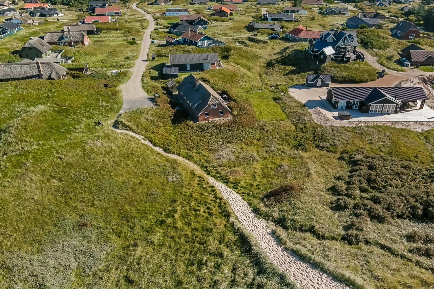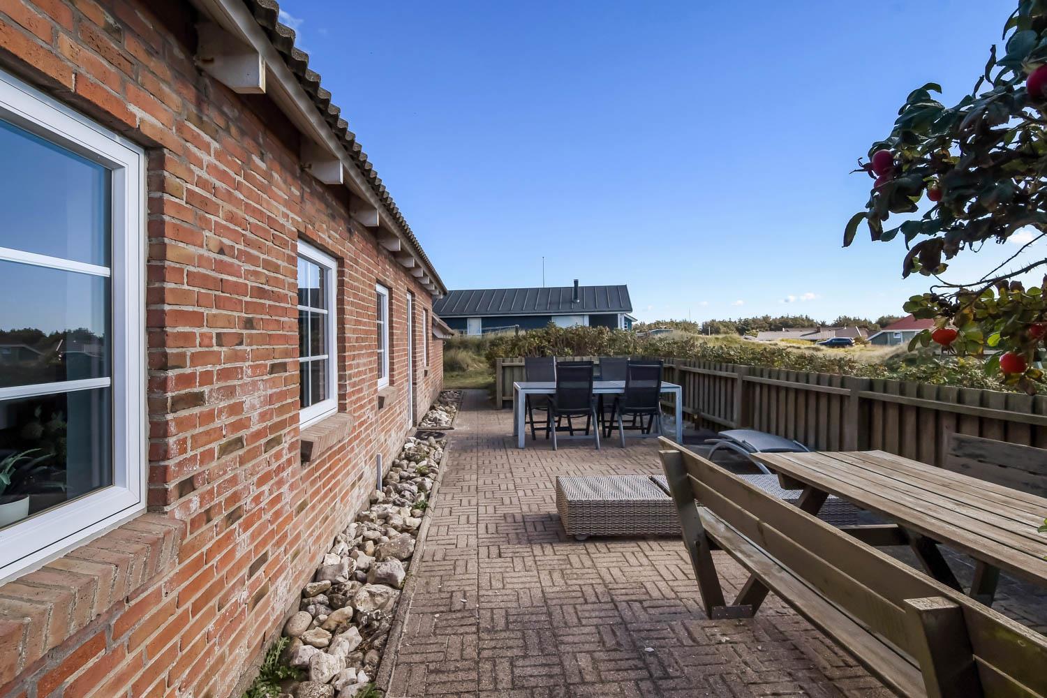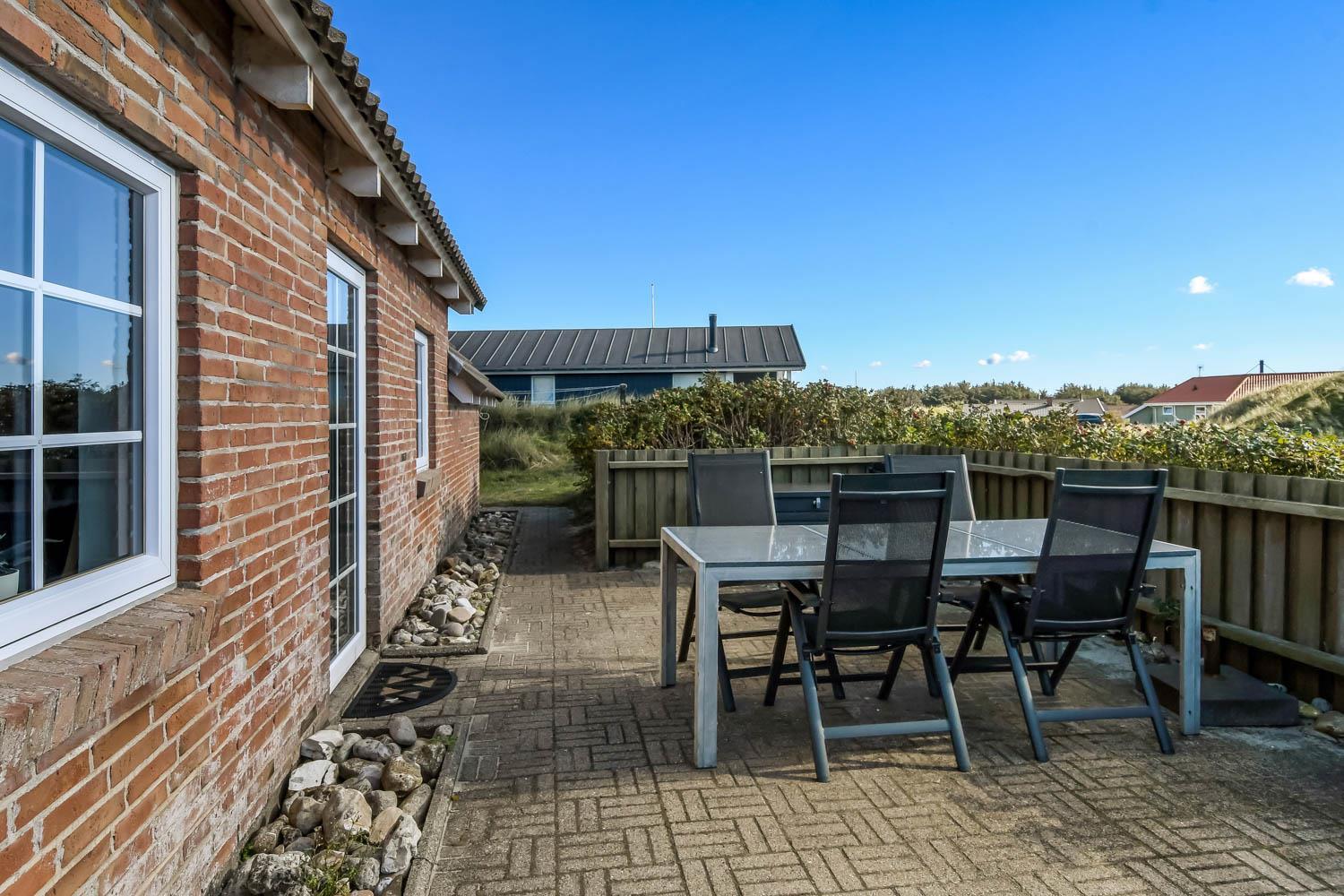Das Haus liegt auf einem großen 1200 m² Dünengrundstück, mit den Dünen und der rauschenden Nordsee direkt im Hintergarten. Es gibt eine schöne, südliche Terrasse mit Gartenmöbeln, Grill und 2 Sonnenliegen. Hier kann man die Sonnenstrahlen genießen, während man dem fernen Rauschen des Meeres zuhört. Für die kleinen Gäste gibt es eine Schaukel, einen Sandkasten und eine Wippe im Garten. Die Lage des Hauses am Ende der Straße, direkt an den Dünen, lädt dazu ein, an den Strand zu gehen, entlang des Wassers zu spazieren, zu baden, Sandburgen zu bauen, zu fischen oder Drachen steigen zu lassen. Auch das Gebiet Vejlby Klit bietet viele weitere Aktivitäten. Man kann auf einer der schönsten Rad-/Wanderstrecken Westjütlands radfahren oder wandern und dabei sowohl den Ferring See als auch das Meer gleichzeitig sehen. In der Hauptsaison hat der lokale Kaufmann geöffnet, wo man verschiedene Mahlzeiten einkaufen kann. Zudem kann man sich bei einer Runde Minigolf herausfordern oder wetten, wer als Erster einen Fisch im Vejlby Klit Feriepark fängt. Ein kurzer Ausflug mit dem Auto oder der örtlichen Bahn VLTJ bringt Sie in die Hafenstädte Lemvig und Thyborøn, wo Sie in den örtlichen Geschäften shoppen, frischen Fisch kaufen, ein Eis genießen oder in den feinen Restaurants und Cafés essen können.