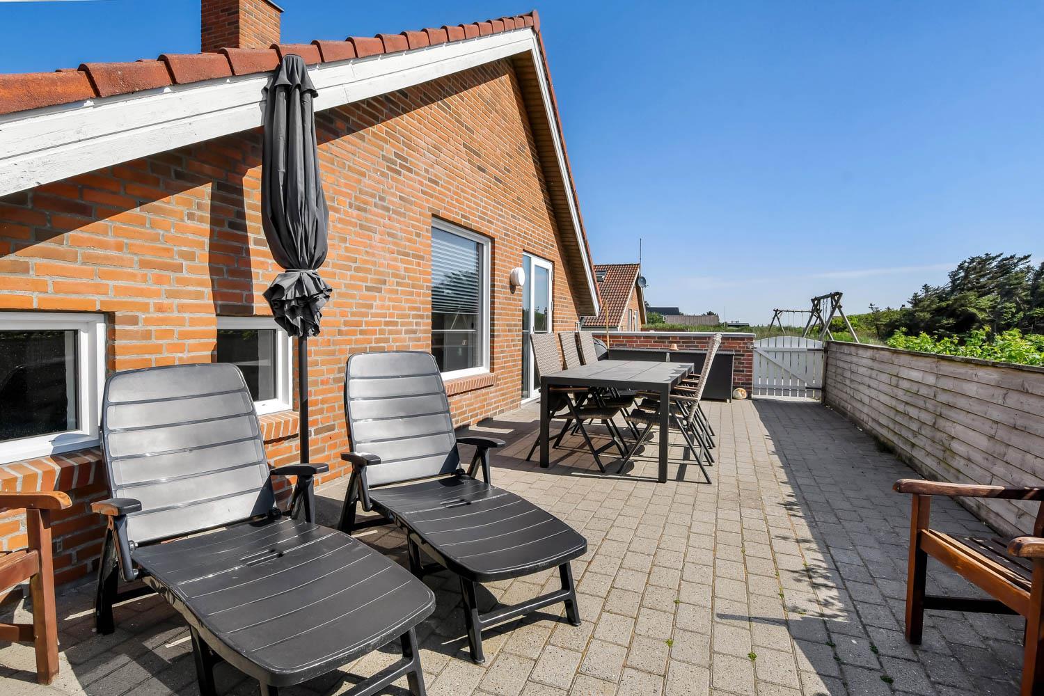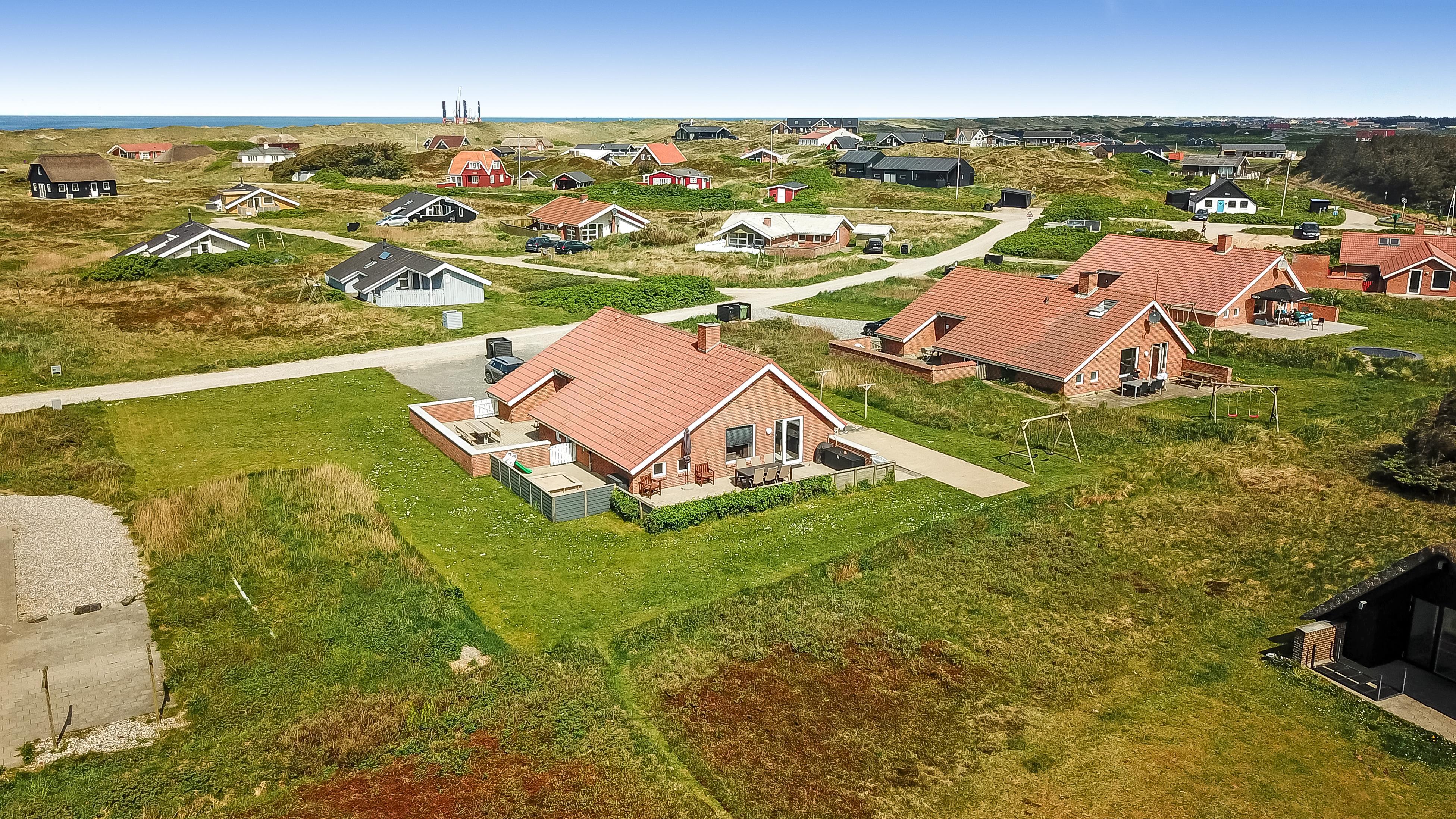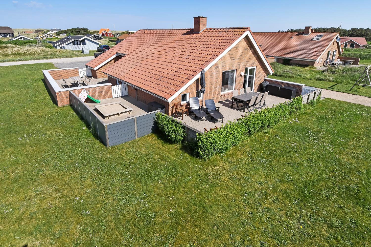 Das Ferienhaus liegt auf einem Naturgrundstück mit direktem Zugang zu einer ummauerten, geschlossenen Terrasse. Sie ist mit Gartenmöbeln, Sonnenliegen und Grill ausgestattet. Für die Kinder gibt es Schaukeln und Sandkasten. Es sind nur 200 m zur Nordsee, 400 m zum Restaurant und einem Lebensmittelgeschäft. Wenn Sie etwas erleben möchten, erreichen Sie nach kurzer Fahrzeit Lemvig. Eine schicke und gemütliche Einkaufsstadt mit einer schönen Hafenpromenade. Hier gibt es auch ein Bowlingcenter und eine Outdoorskaterbahn. Nicht weit vom Hause befindet sich eine Haltestelle der kleinen lokalen Eisenbahn. Sie könnne mit eine Familiekarte für den Zug einen ganzen Tag damit umherzufahren. Der Zug fährt nach Lemvig und Thyborøn, eine richtige Hafenstadt, wo Sie noch die einheimischen Fischer mit ihren Booten erleben können