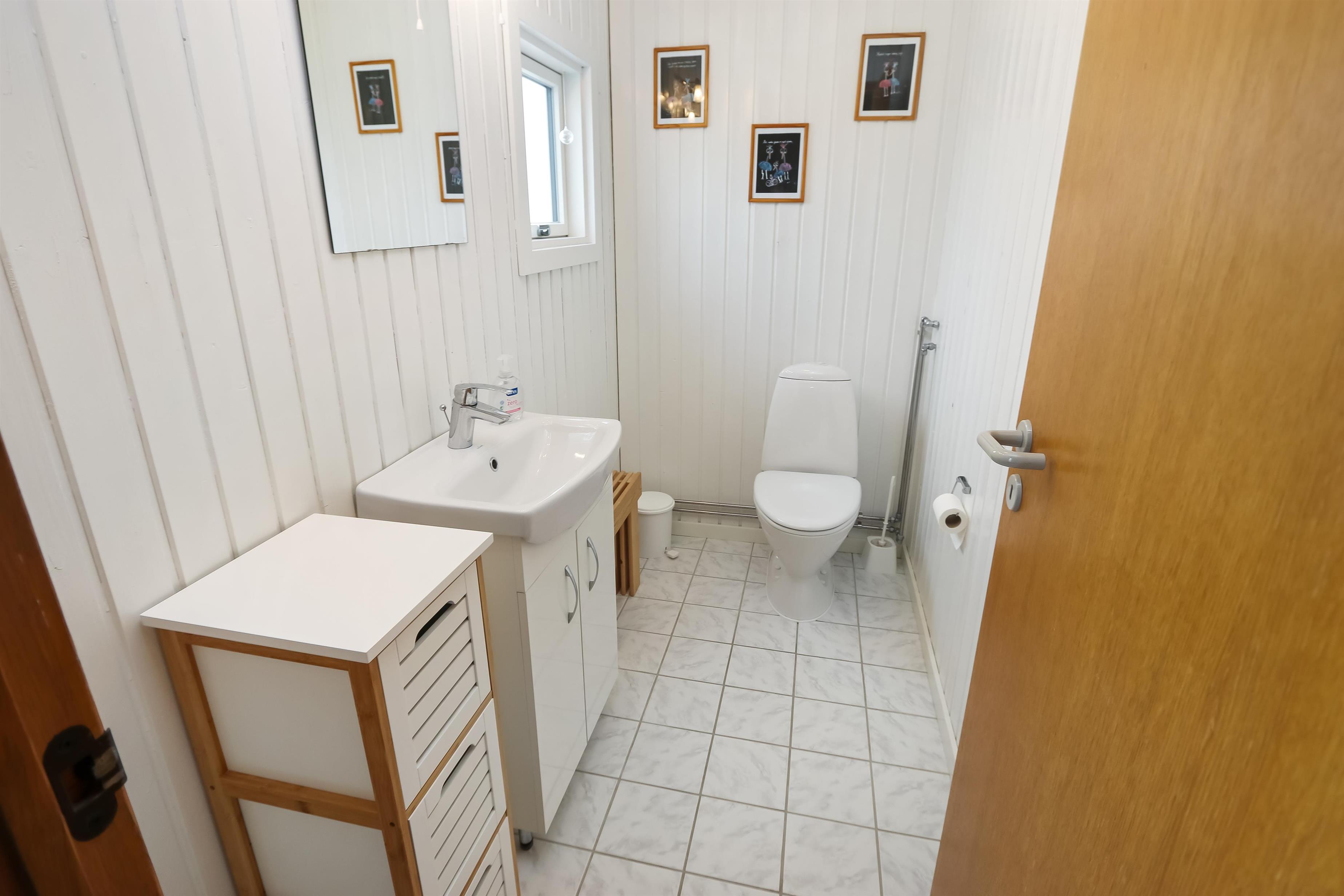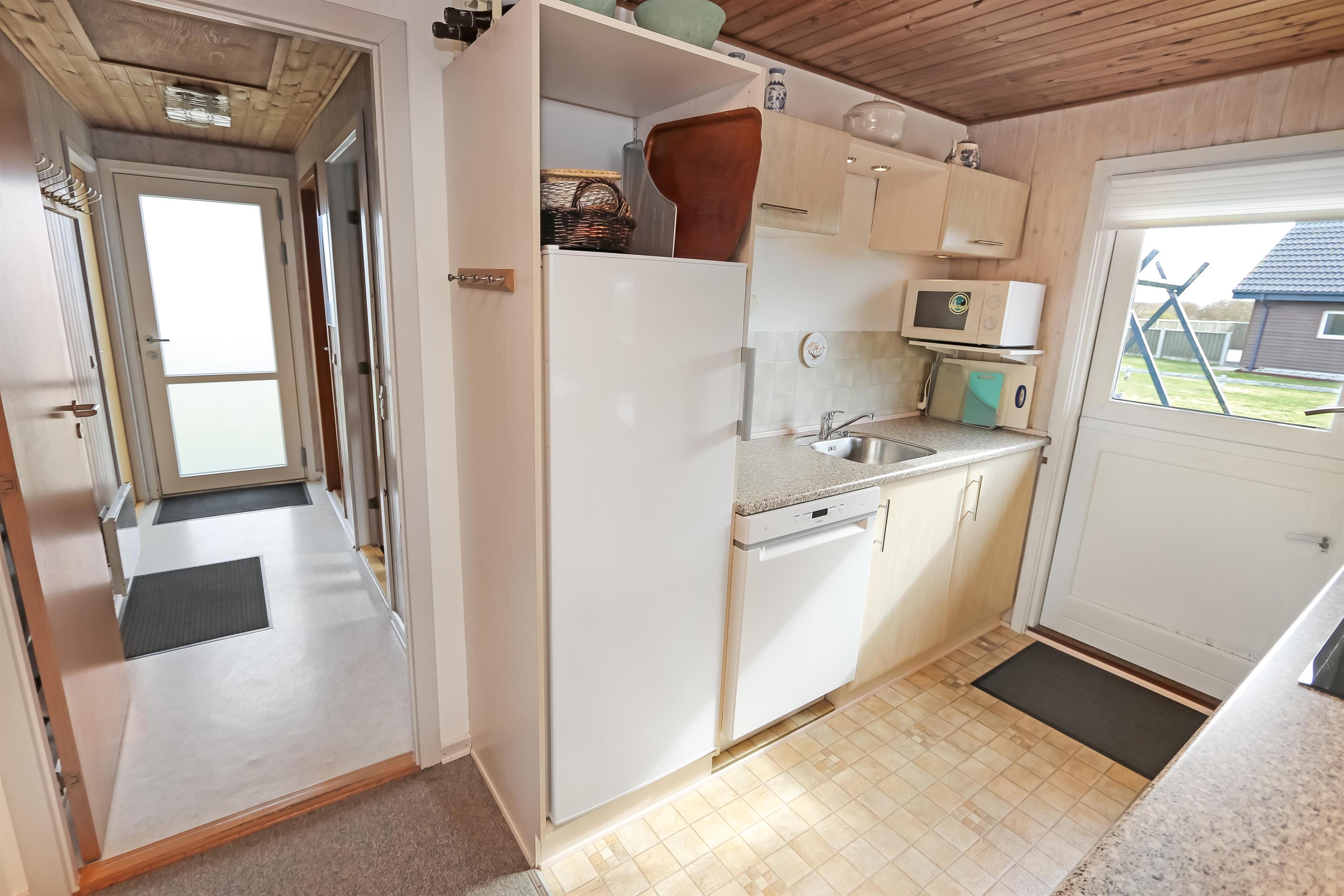 Draußen erwartet Sie eine herrliche Terrasse mit Gartenmöbeln, Liegestühlen, Sonnenschirm und Grill – perfekt für lange Sommerabende oder einen Kaffee am Morgen in der Sonne. Die Umgebung lädt zu Wander- und Radtouren ein, und der nahegelegene Ferring-See mit seinem schönen Rundweg bietet die Möglichkeit, die Natur hautnah zu erleben. Die Nordsee zeigt sich täglich von ihrer schönsten Seite, und wer noch etwas mehr erleben möchte, kann den charmanten Fischerort Thyborøn oder die Handelsstadt Lemvig besuchen, die beide Restaurants, Einkaufsmöglichkeiten und Sehenswürdigkeiten bieten.