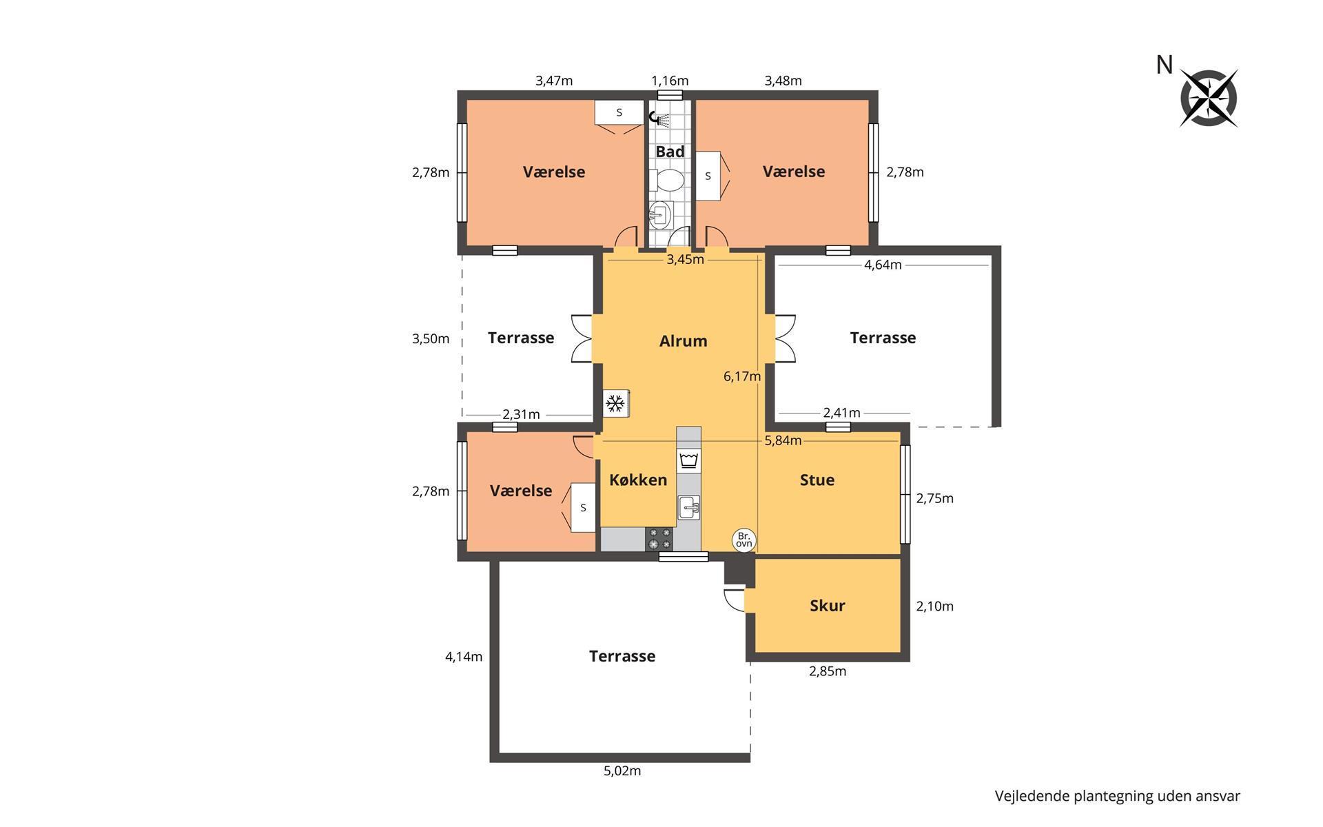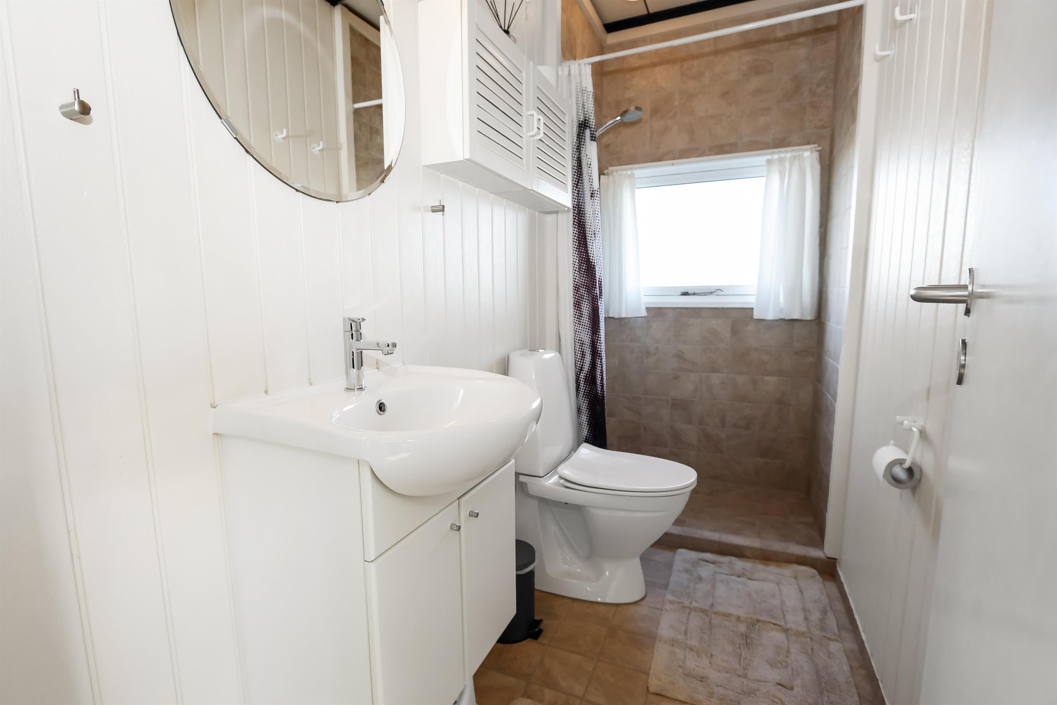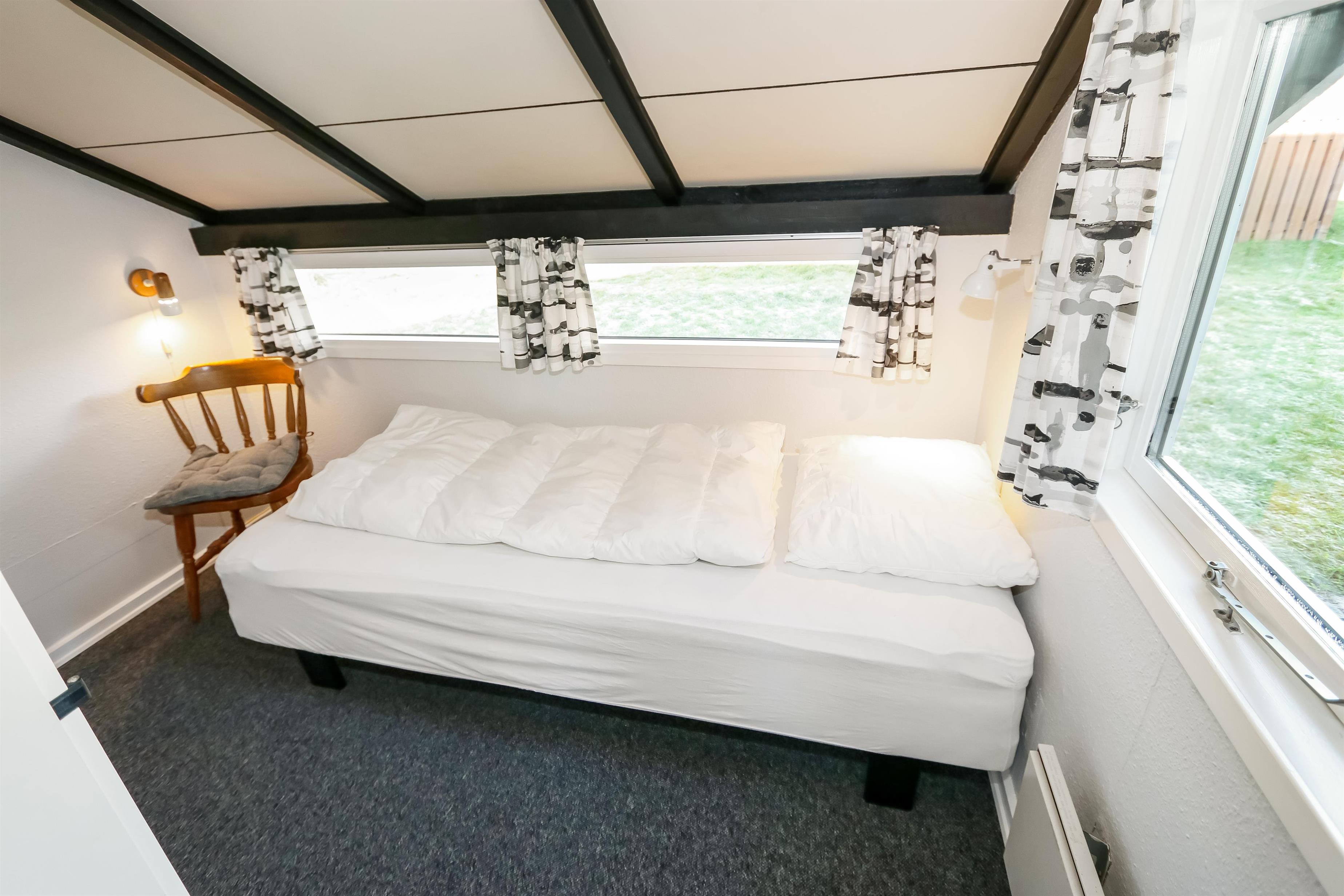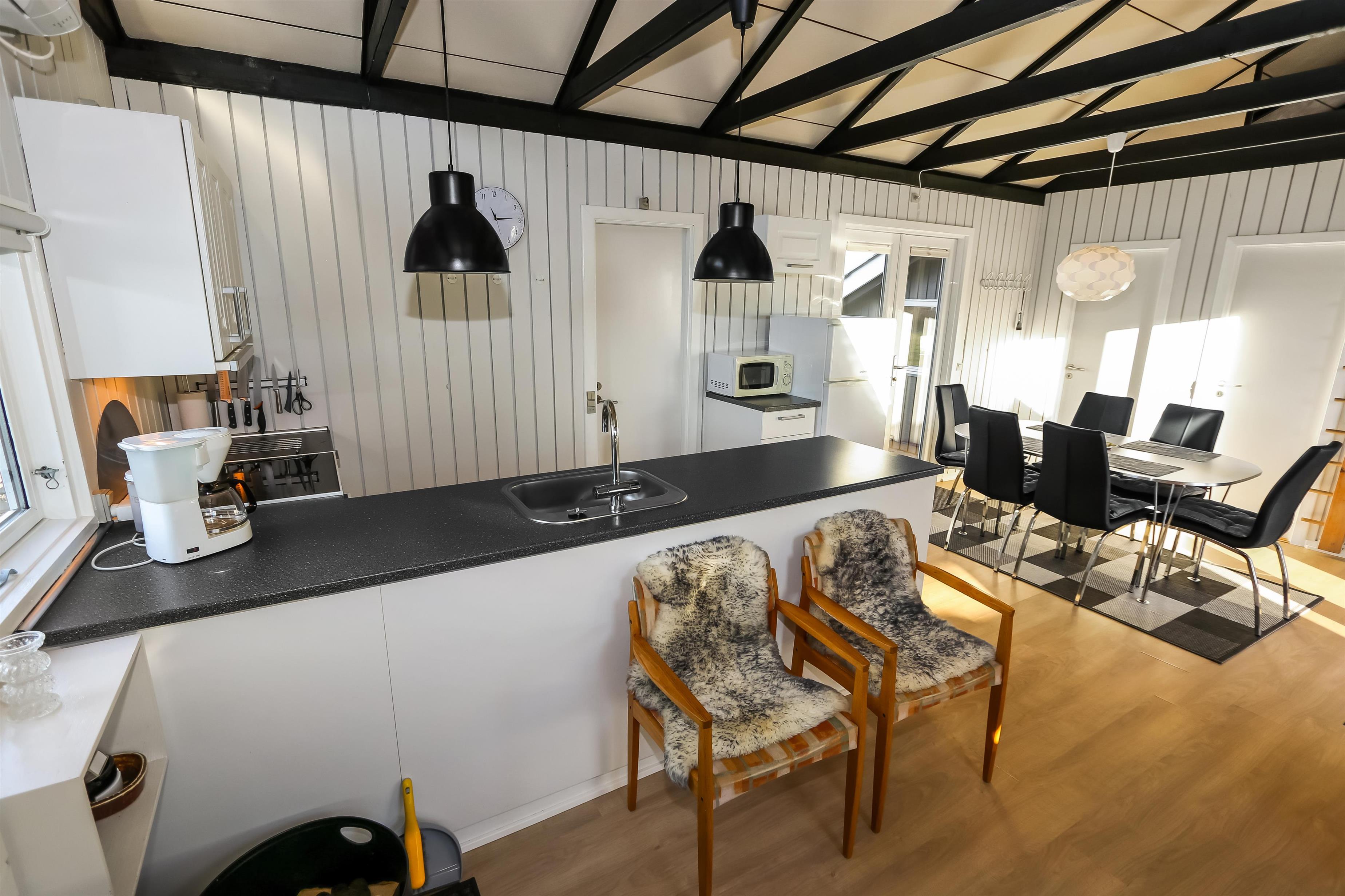 Ein gut ausgenutztes Holzhaus mit 64 m² und mit freiem WLAN. Sie parken das Auto gerade am Haus und den Eingang zum Haus erreichen Sie über die geschlossene Terrasse. 3 Schlafräume: 1DB + 2B + 1B mit Teppichböden. Gemütlicher Wohnraum mit neuen Ledermöbeln, TV mit dänischen und deutschen Programmen. Der neue schöne Kaminofen betont den Komfort des Raumes und zusammen mit der neuen Wärempumpe wird der Verbrauch im Haus minimiert. Gute Küchenecke mit Herd mit Cerankochfeld, Abzugshaube, Kühlschrank mit kleinem Gefrierfach, Geschirrspüler und Waschmaschine. Es gibt praktische Holzböden im Küchenbereich und dem Aufenthaltsraum. Das Badezimmer ist neu renoviert in wunderschön abgestimmten Farben und hat Fliesenboden mit Fussbodenheizung, Toilette, Waschbecken und Dusche. 2 Haustier ist erlaubt. Nichtraucher-Haus.