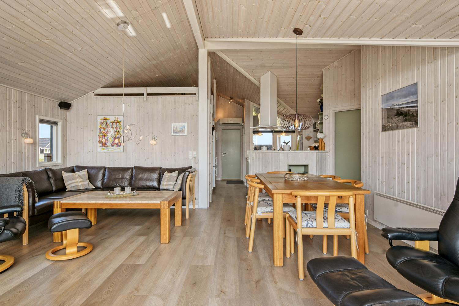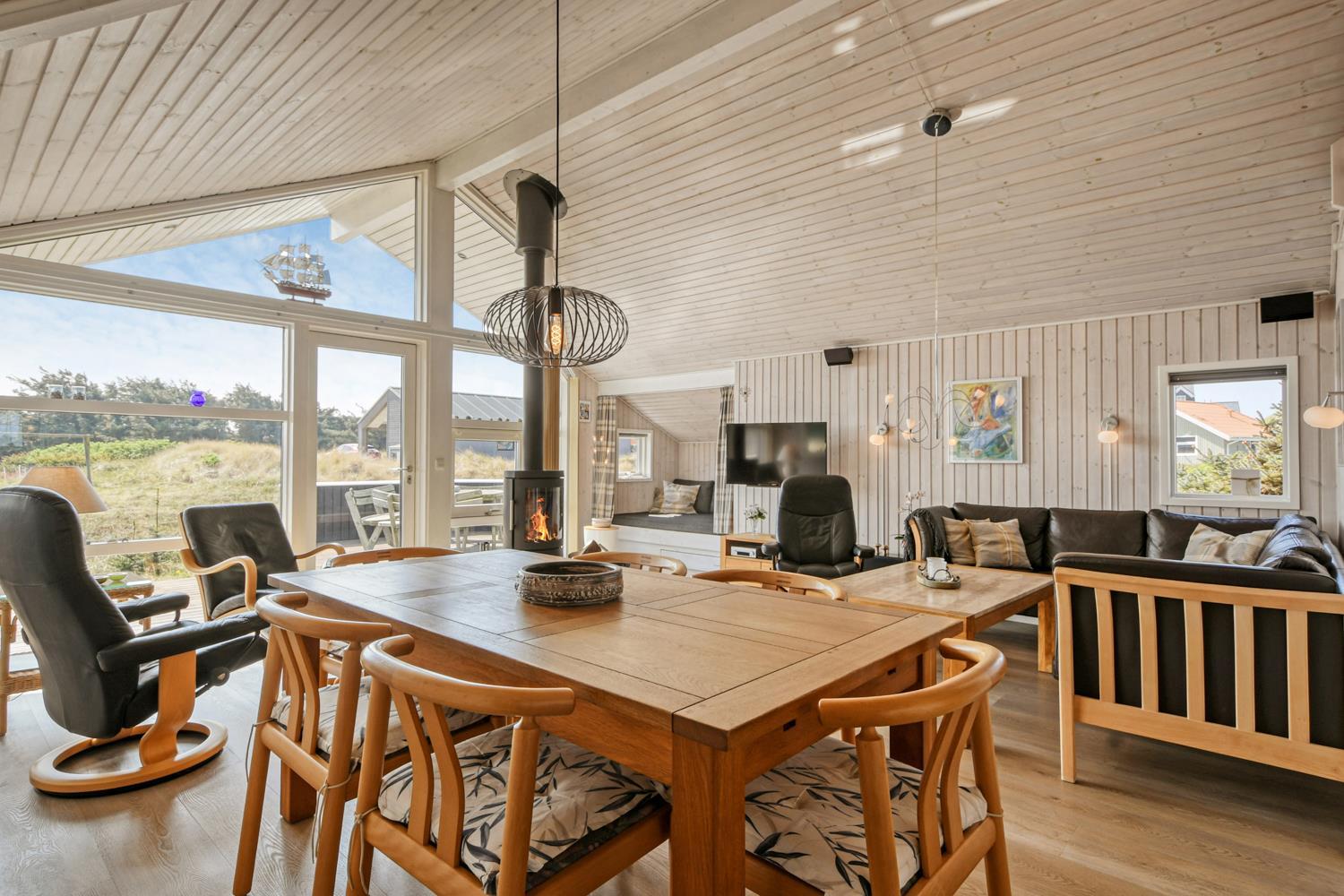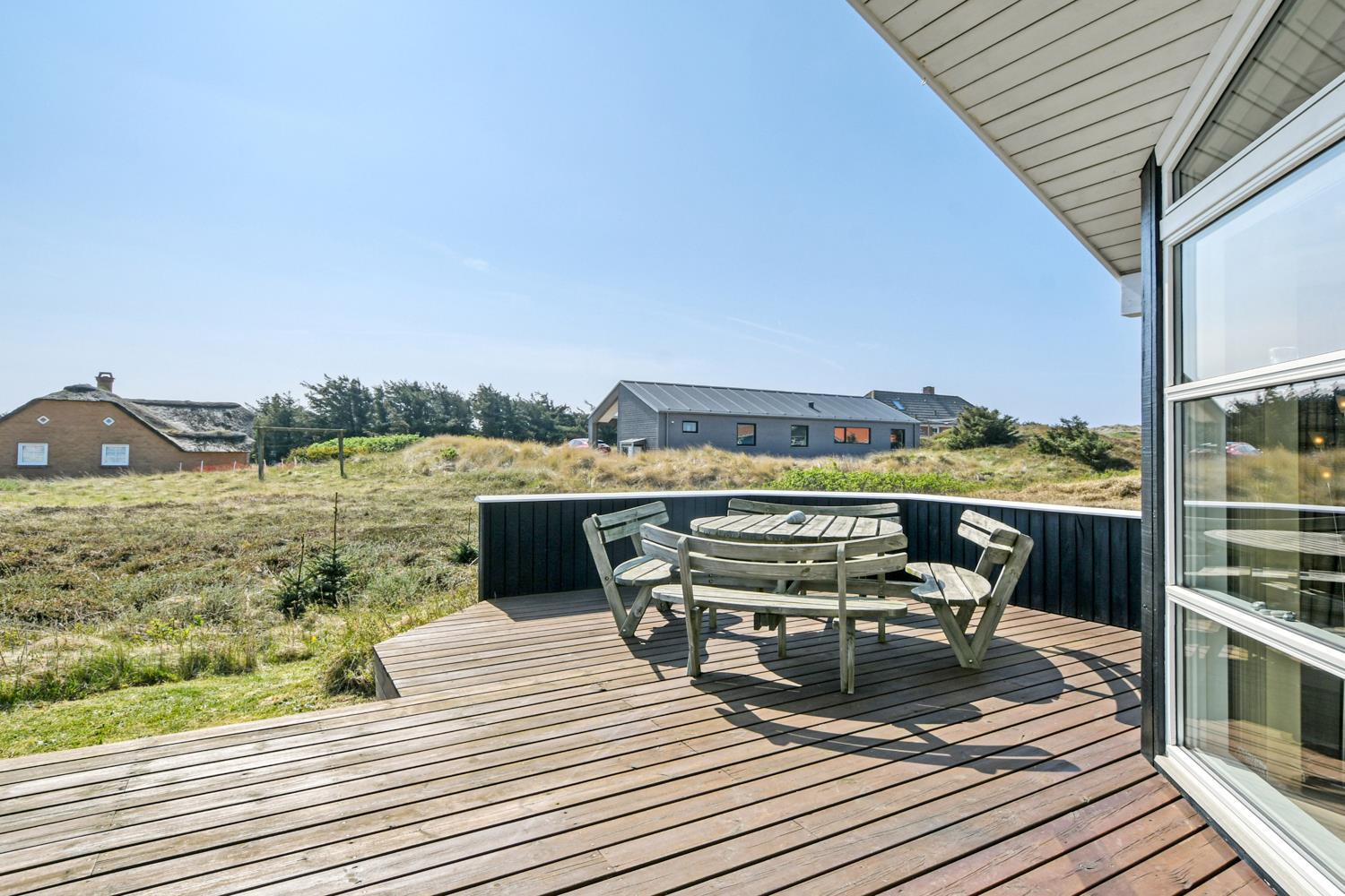Schönes Ferienhaus in einem sehr attraktiven Dünengebiet auf einem 1.200 qm großen Dünengrundstück gelegen, bloß 250 m von einem der besten Strände und auch bloß 500 m vom Supermarkt, der in der Saison geöffnet hat, entfernt. Vom Wohnraum gibt es einen Ausgang zu einer teilweise überdachten und eingezäunten Terrasse mit Gartenmöbeln, 3 Sonnenliegen, Sonnenschirm und kleinem Gasgrill (die Gasflache hierfür muss man selber mitbringen). Für die kleinsten Gäste gibt es eine Schaukel. Genießen Sie, dass Sie die Nordsee fußläufig erreichen können. Von der Terrasse haben Sie einen sehr schönen Blick über das Gebiet und die hohen Dünen an der Nordsee. Mit dem Auto ist es bloß eine kurze Fahrt nach Thyborøn oder Lemvig. Beide Orte bieten die Möglichkeit, frischen Fisch zu kaufen. Ein schönes Haus für 6 Personen, die gerne in ruhiger Umgebung dicht an der Nordsee wohnen möchten.